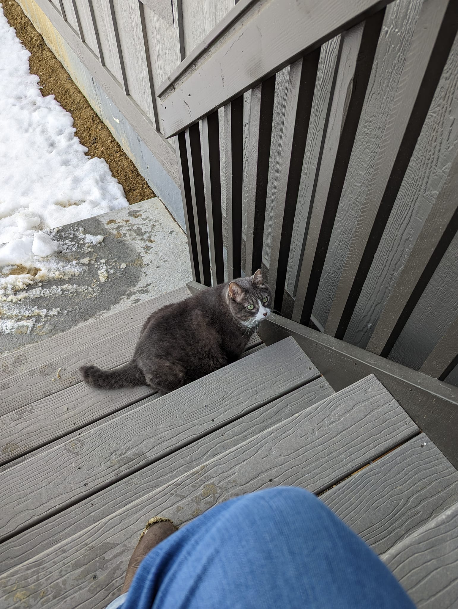 Another adventure complete! This one started at the front door and ended with Mike letting us in by the patio door. I had to redirect a disappointed cat away from the basement door and upstairs.