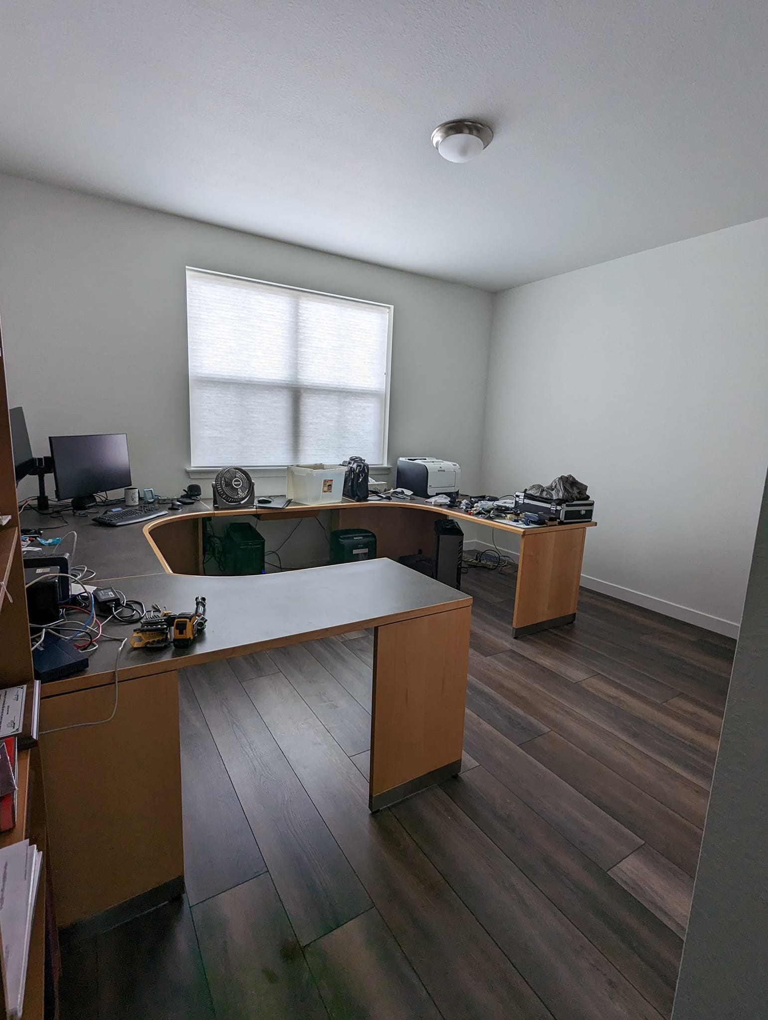 We were quite busy today.... curtains in the living room and office; Mike started constructing the cabinets in the basement. We ran into a problem with the curtain installation in the dining room. We'll see if Lennar will fix it.
