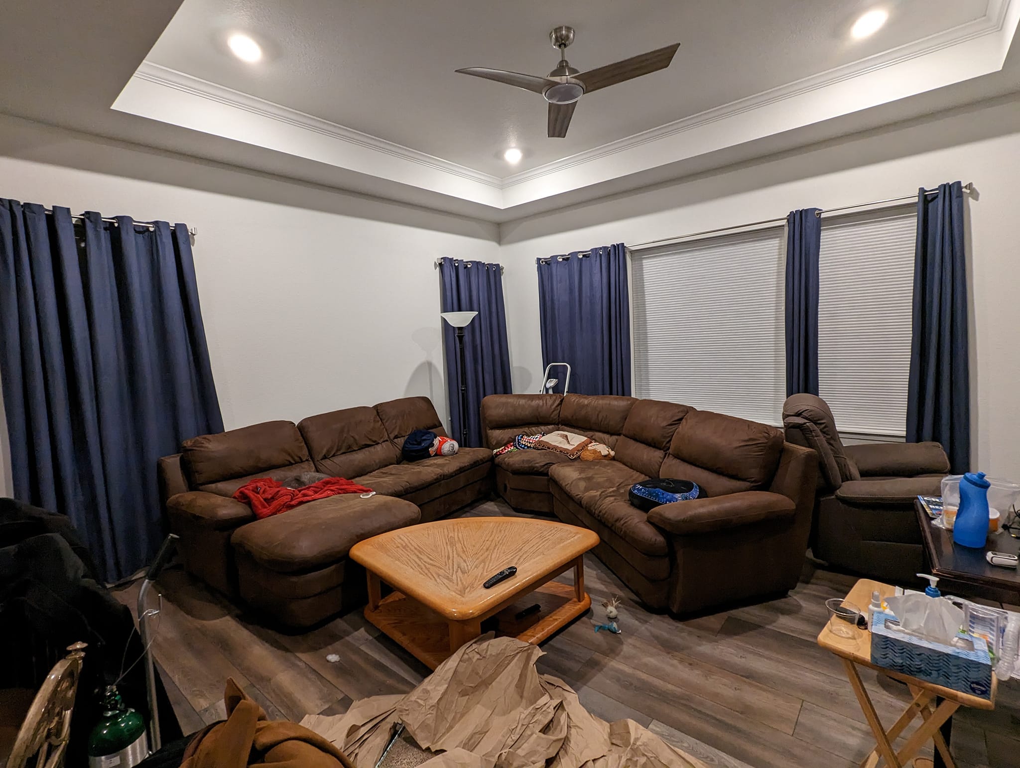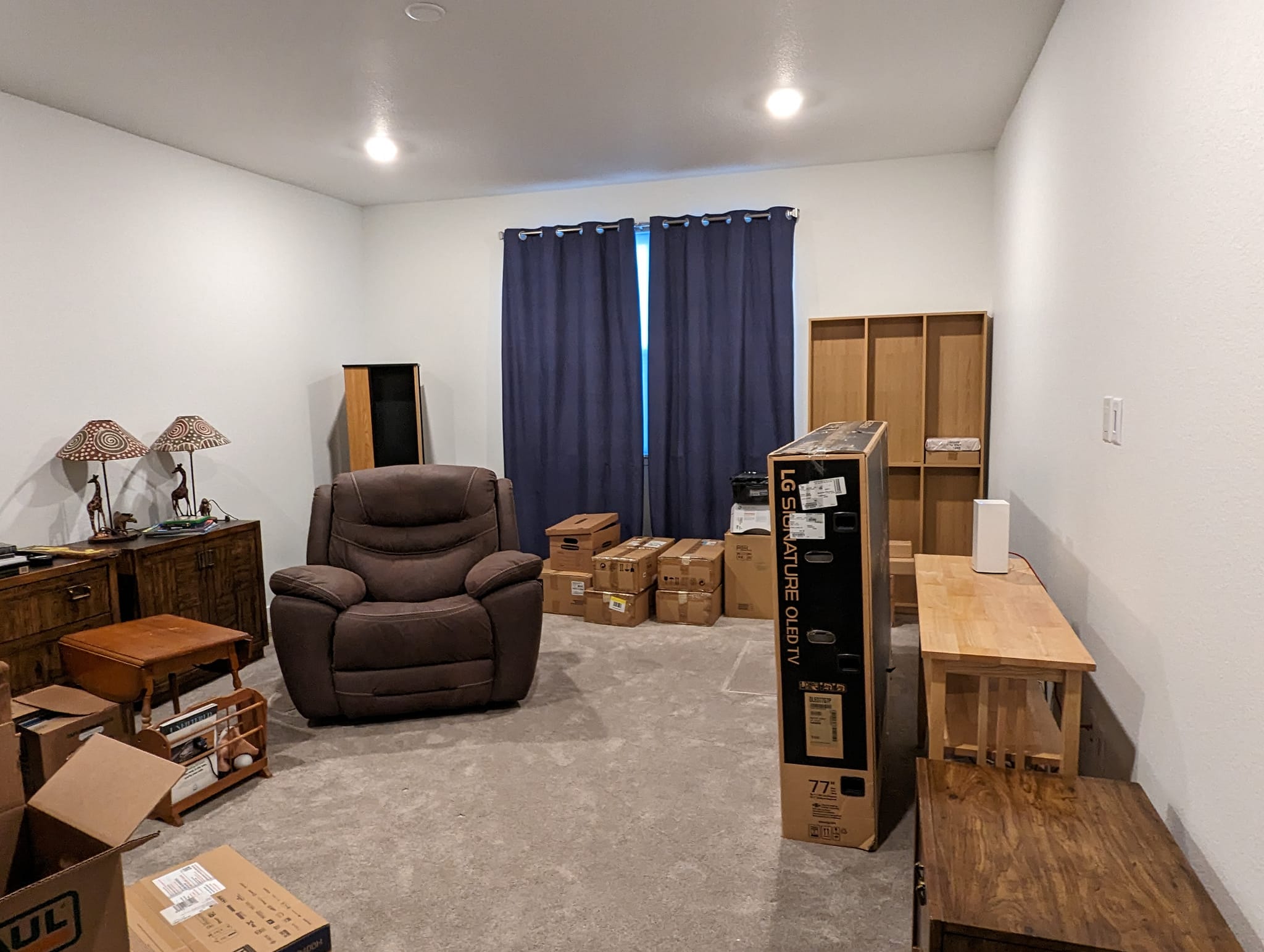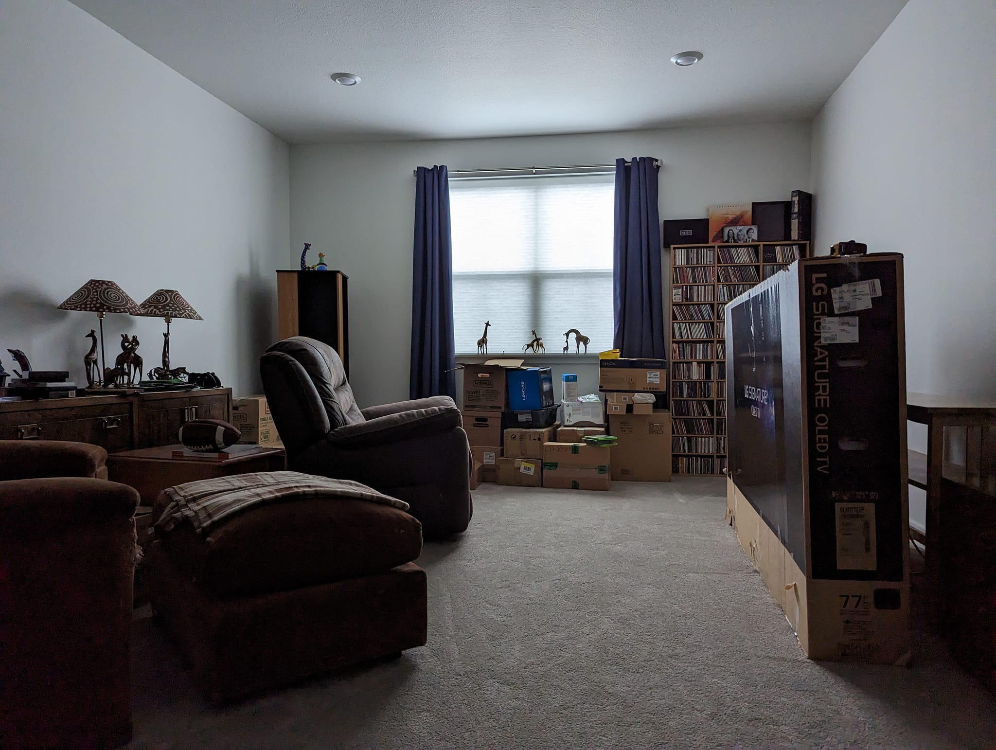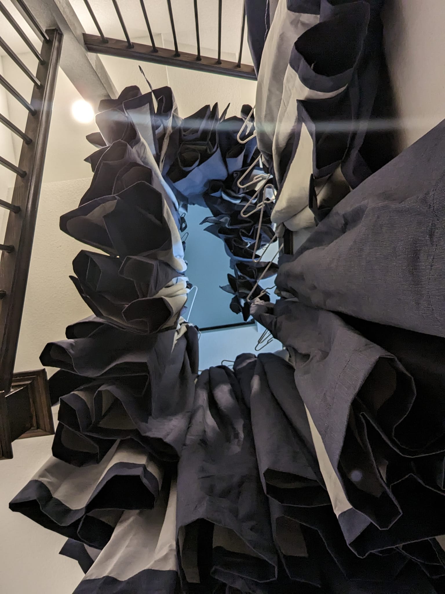 All of the curtains are now hanging. 5 more panels left to steam, and then the curtains project will be complete. Mary E Strange - what I have learned is a brand new house is a ton of setup effort. Normally, there is some landscaping or window coverings or something from previous owners when you move into a house. But here, there were no previous owners, so everything has to be done. To your question, we have put more of a priority on window coverings than our neighbors, who have yet to put up any. Didn't want to get to know them that well ??