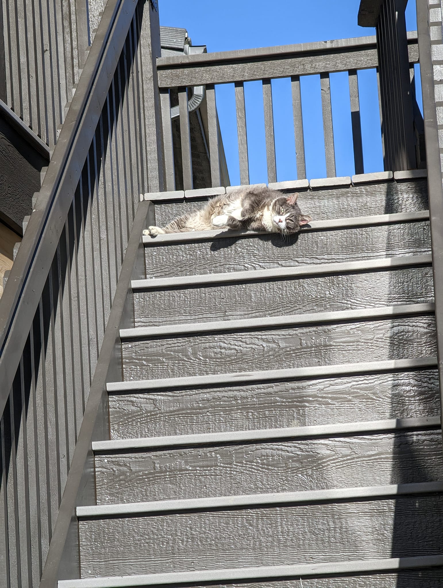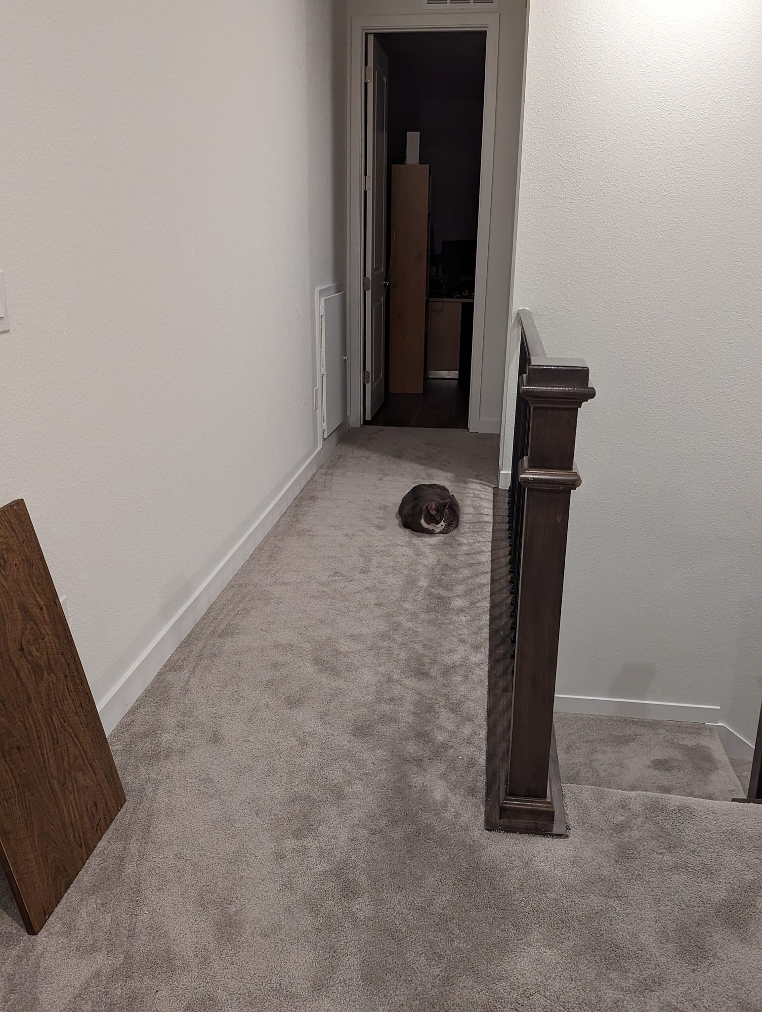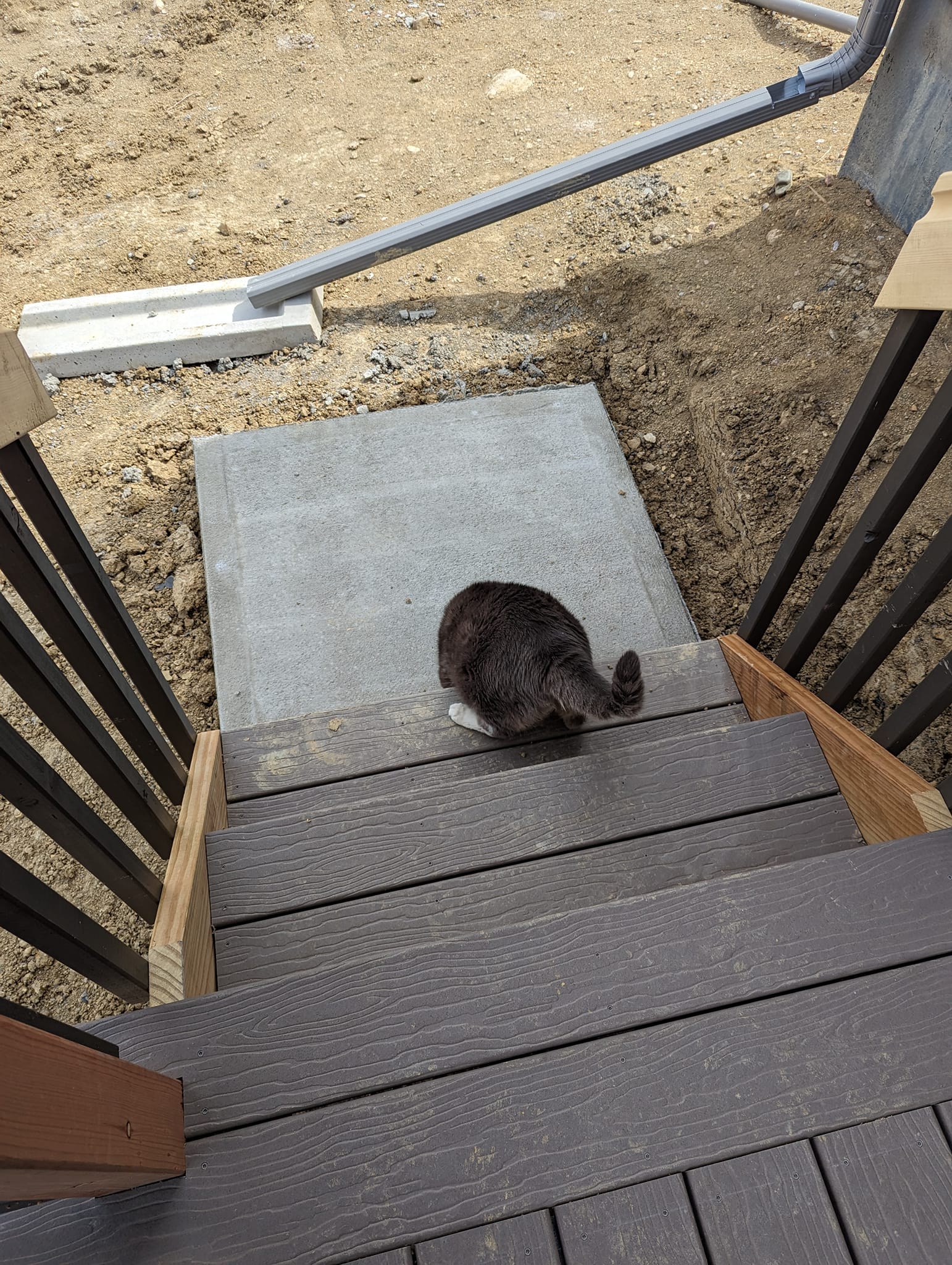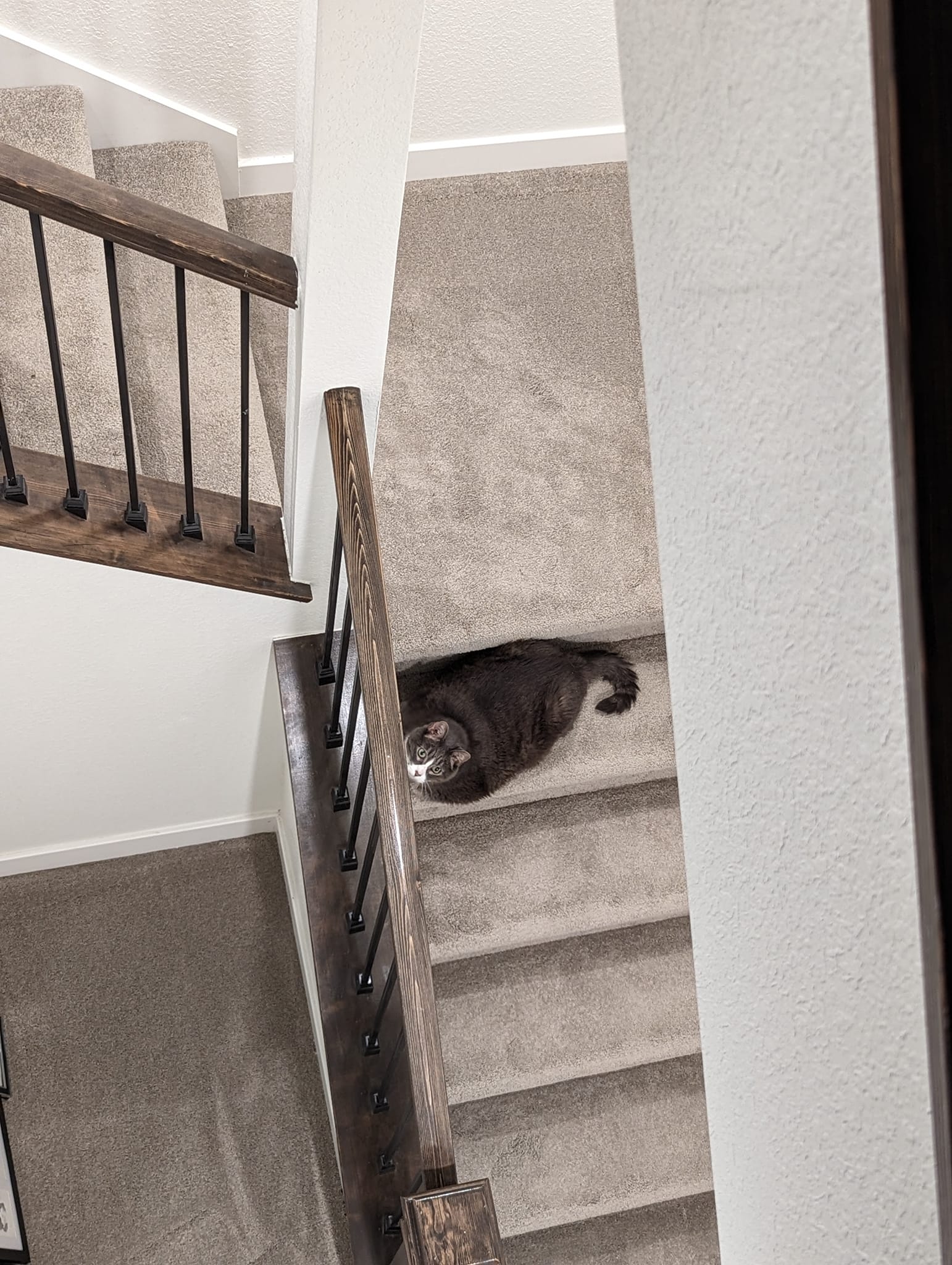 Ziggy's infinity stairs project was a success! Go out the basement door, walk to the stairs. Pause at the bottom of the stairs for an existential crisis....what comes after the project is complete? Sit on the stairs and relish the moment. Then, finish the job! In through the dining room door! ....well, and for good measure, drive the project manager in your life a little crazy through scope creep ...we had to go sit outside the front door, too.
