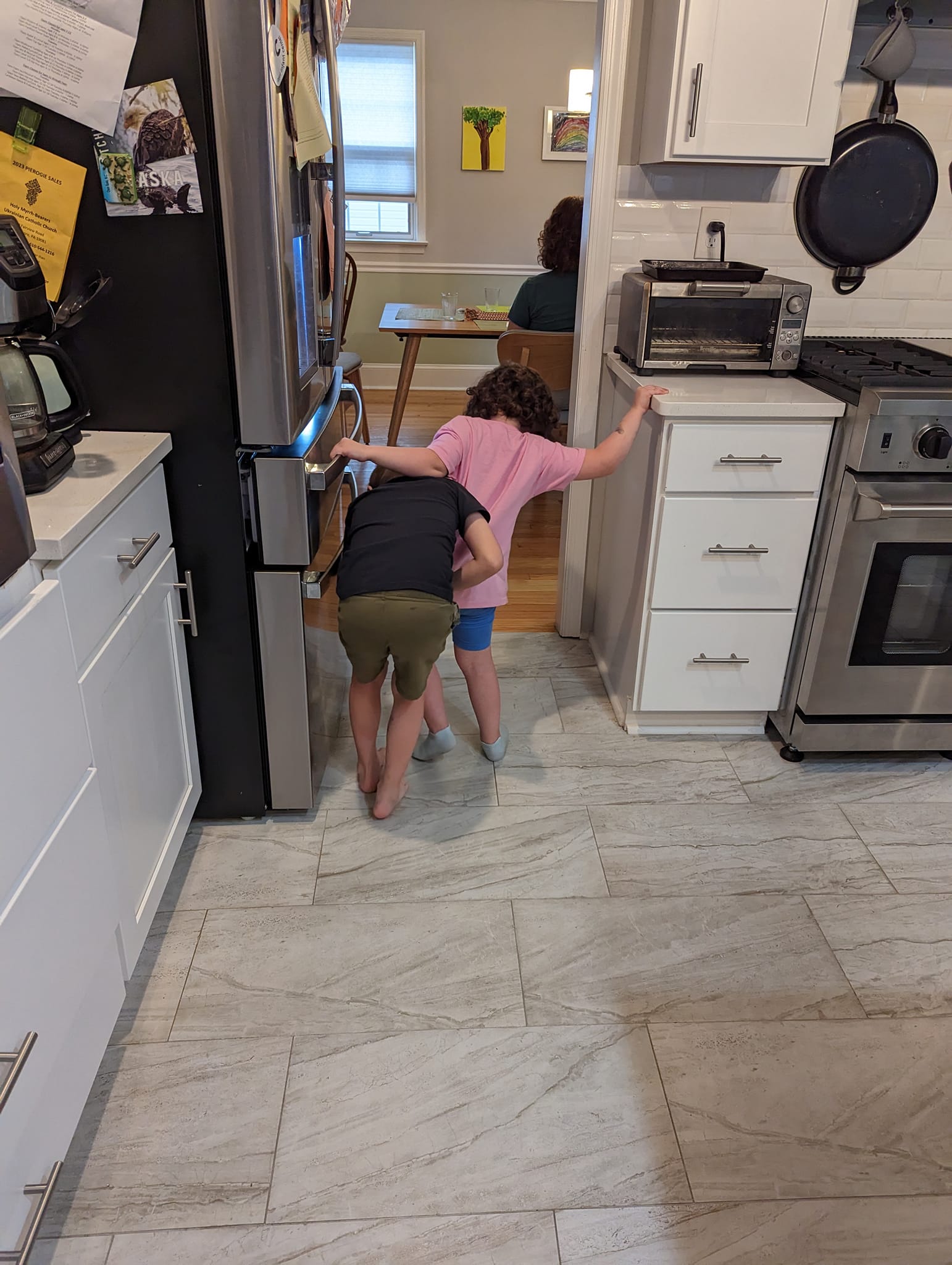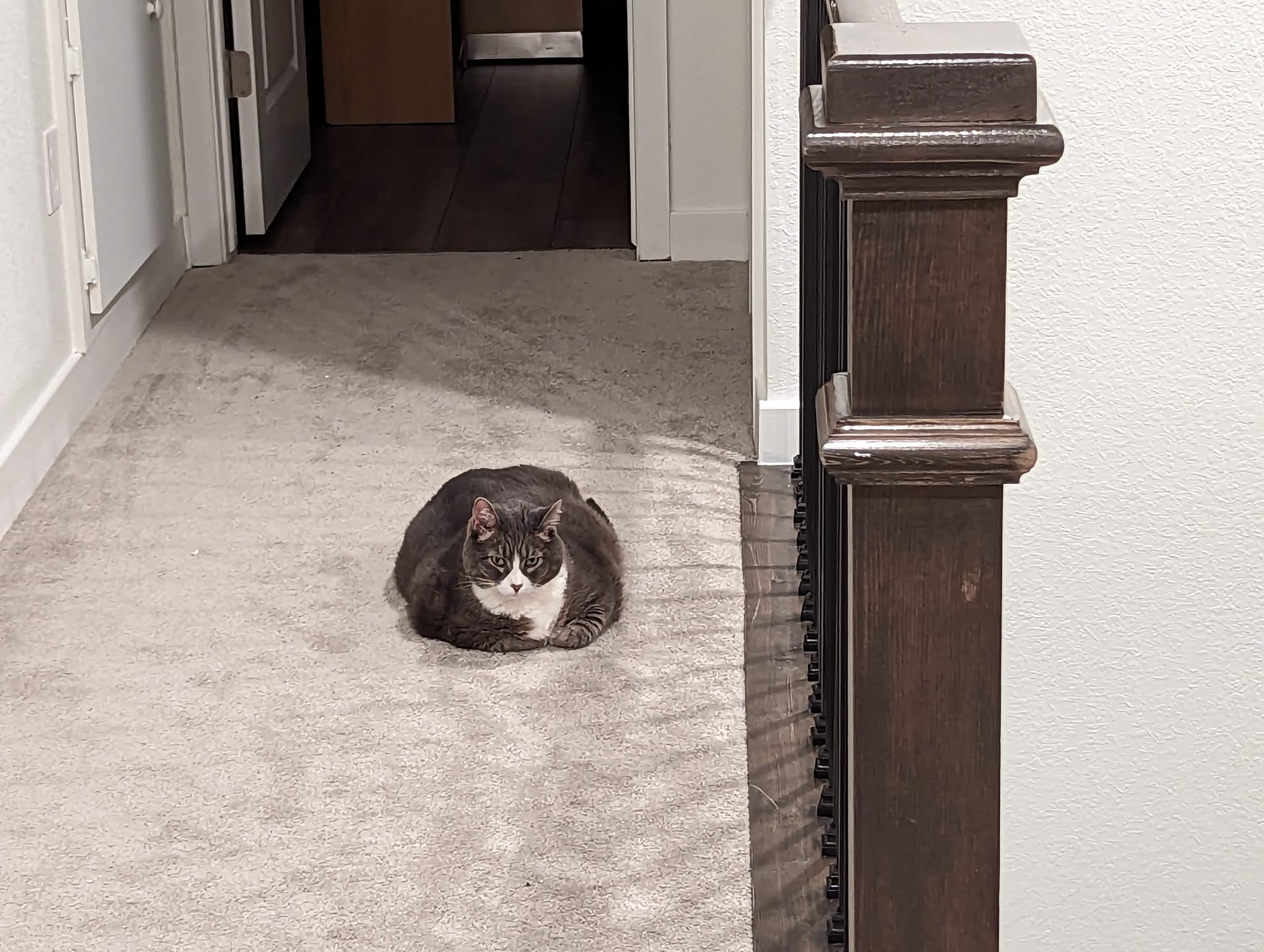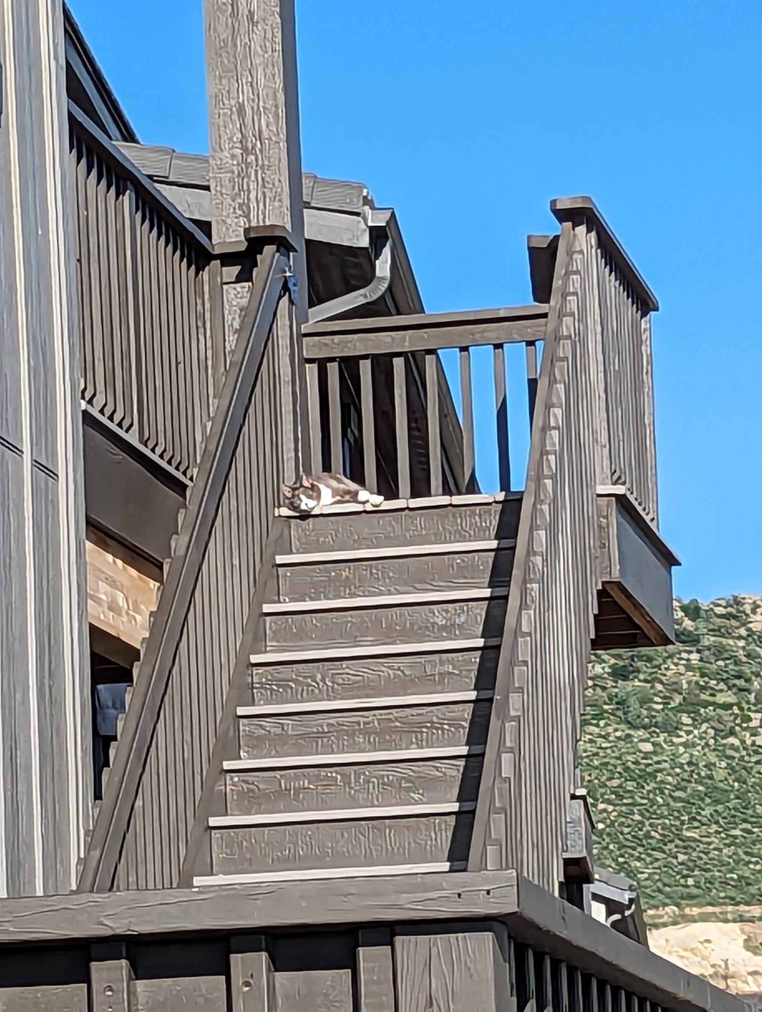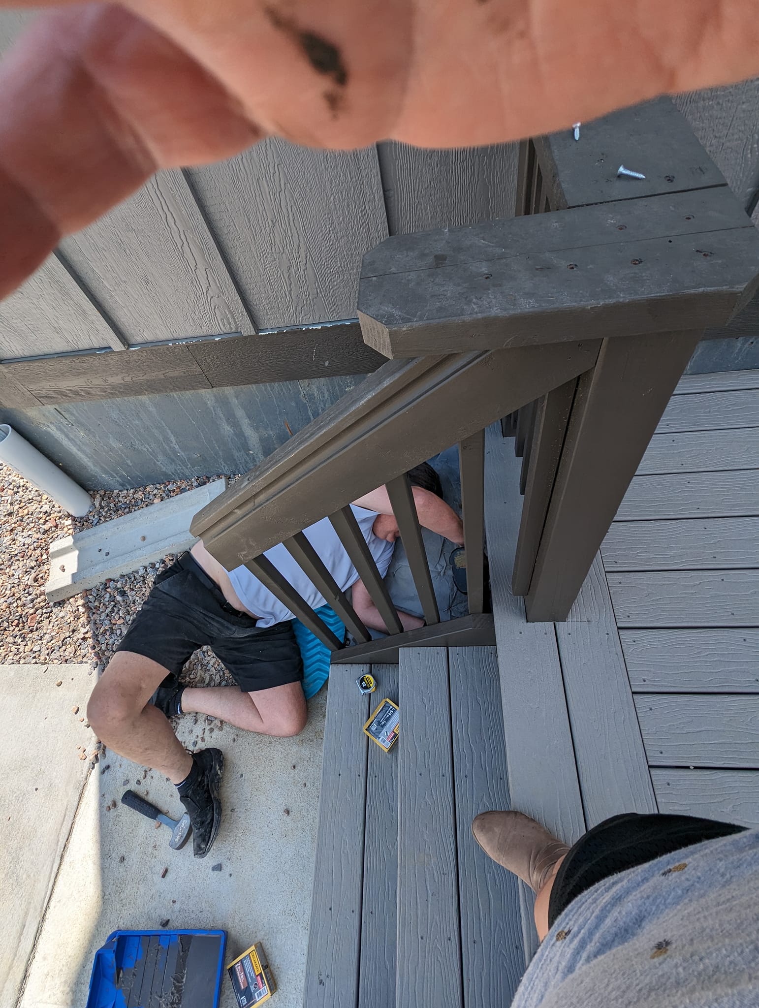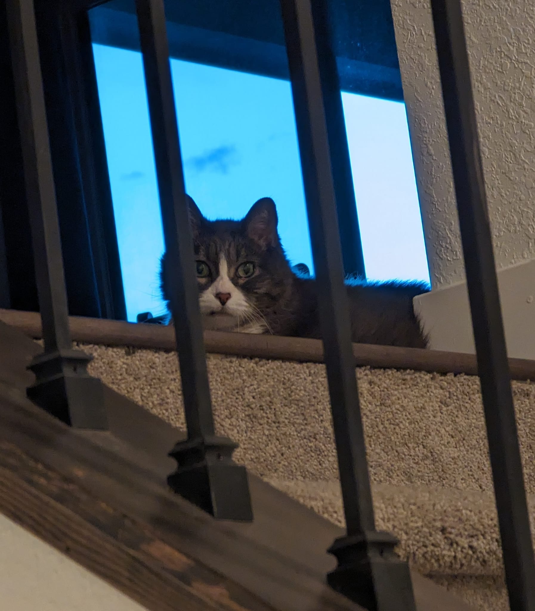 Ziggy's infinity stairs project was a success! Go out the basement door, walk to the stairs. Pause at the bottom of the stairs for an existential crisis....what comes after the project is complete? Sit on the stairs and relish the moment. Then, finish the job! In through the dining room door! ....well, and for good measure, drive the project manager in your life a little crazy through scope creep ...we had to go sit outside the front door, too.