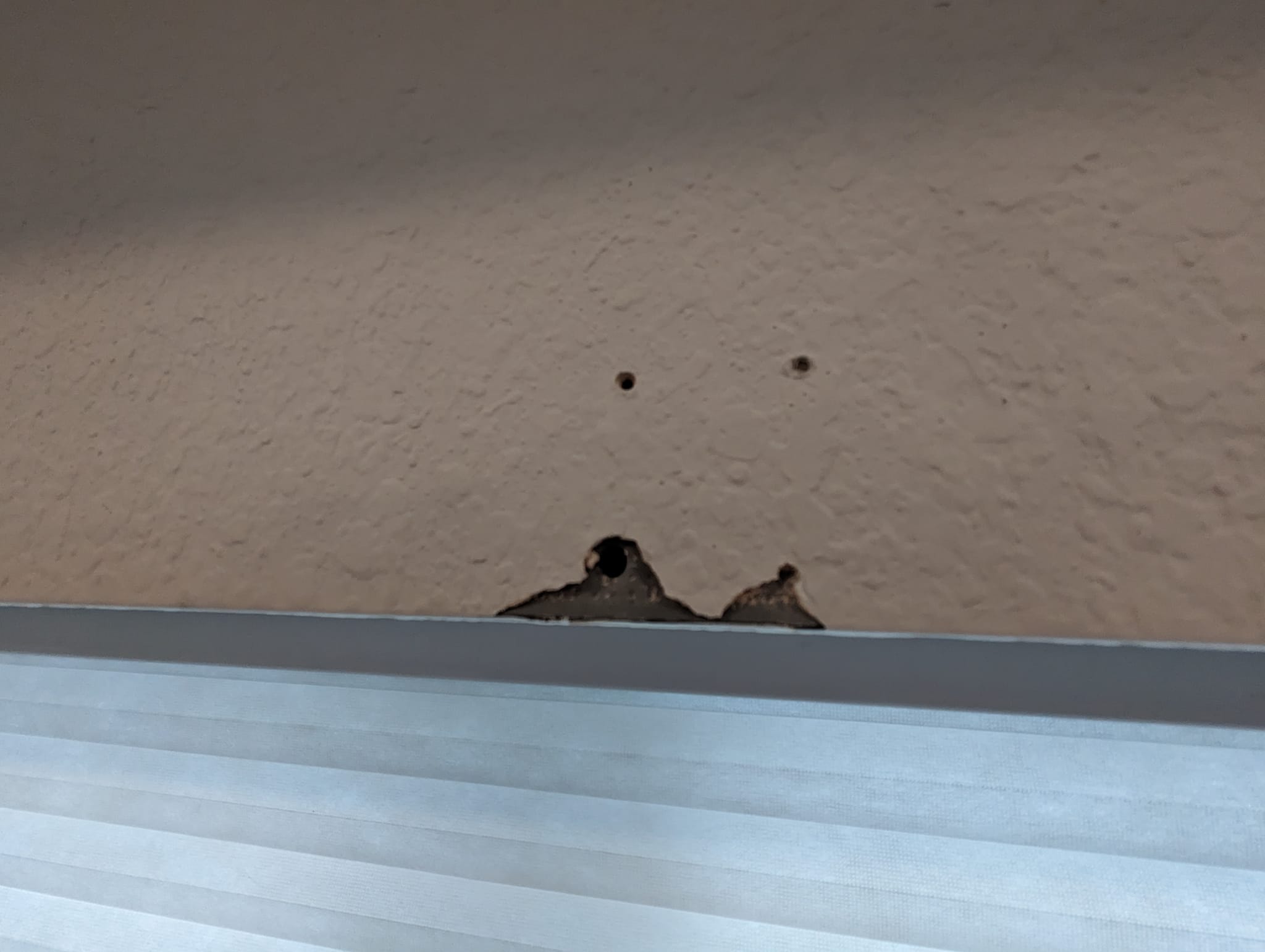 Thanks to my hubby for his help with the curtains! He made a template for the hole placement and put up the first two brackets. They are supposed to be light blocking curtains. We'll see how well they work in the morning! ??