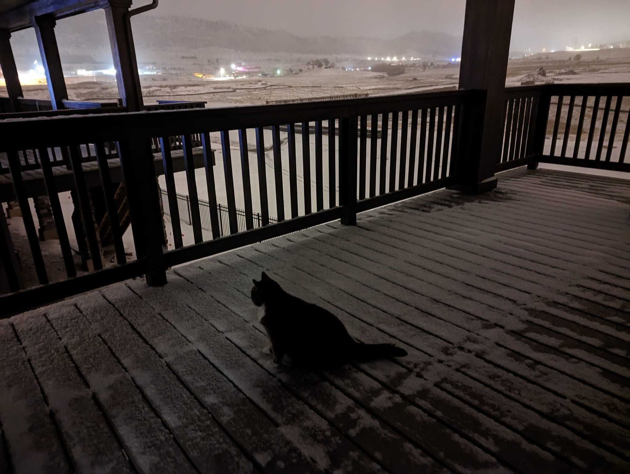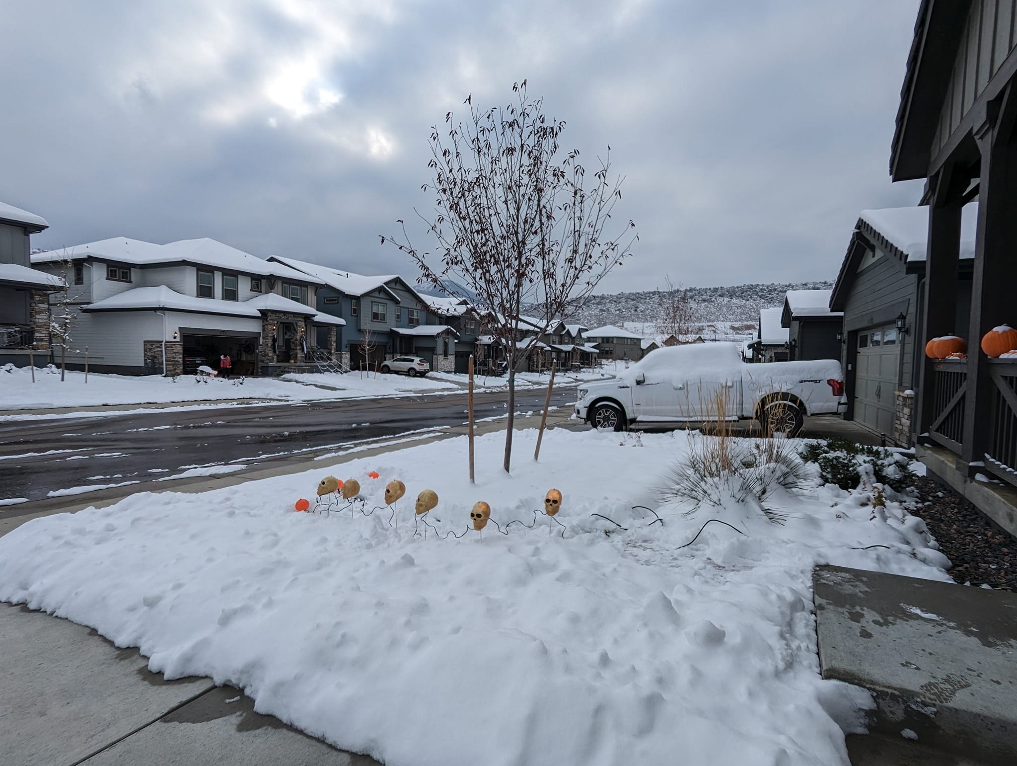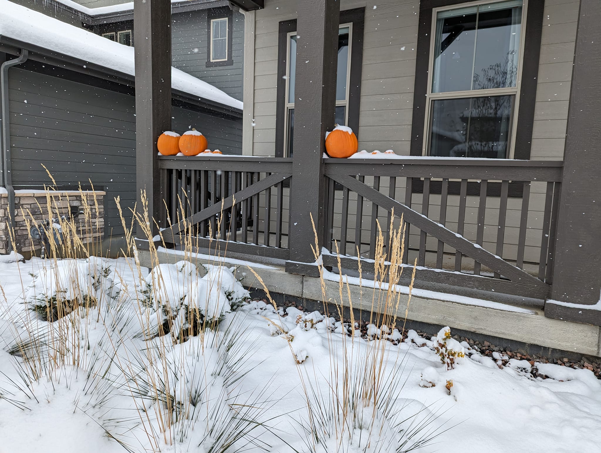 Snow last night! I was out shoveling to ease Mike's travel to the garage after he went to the Nuggets game with his mom