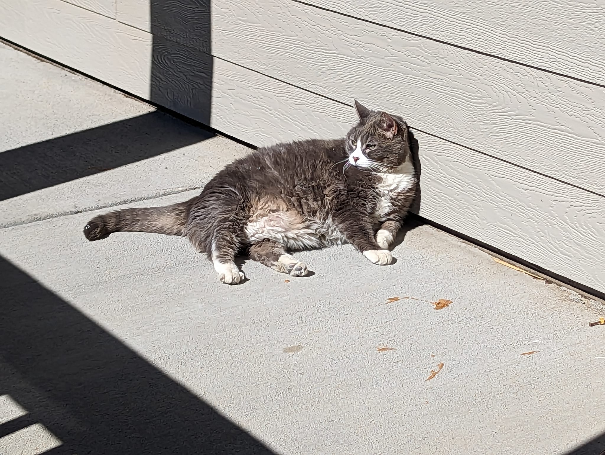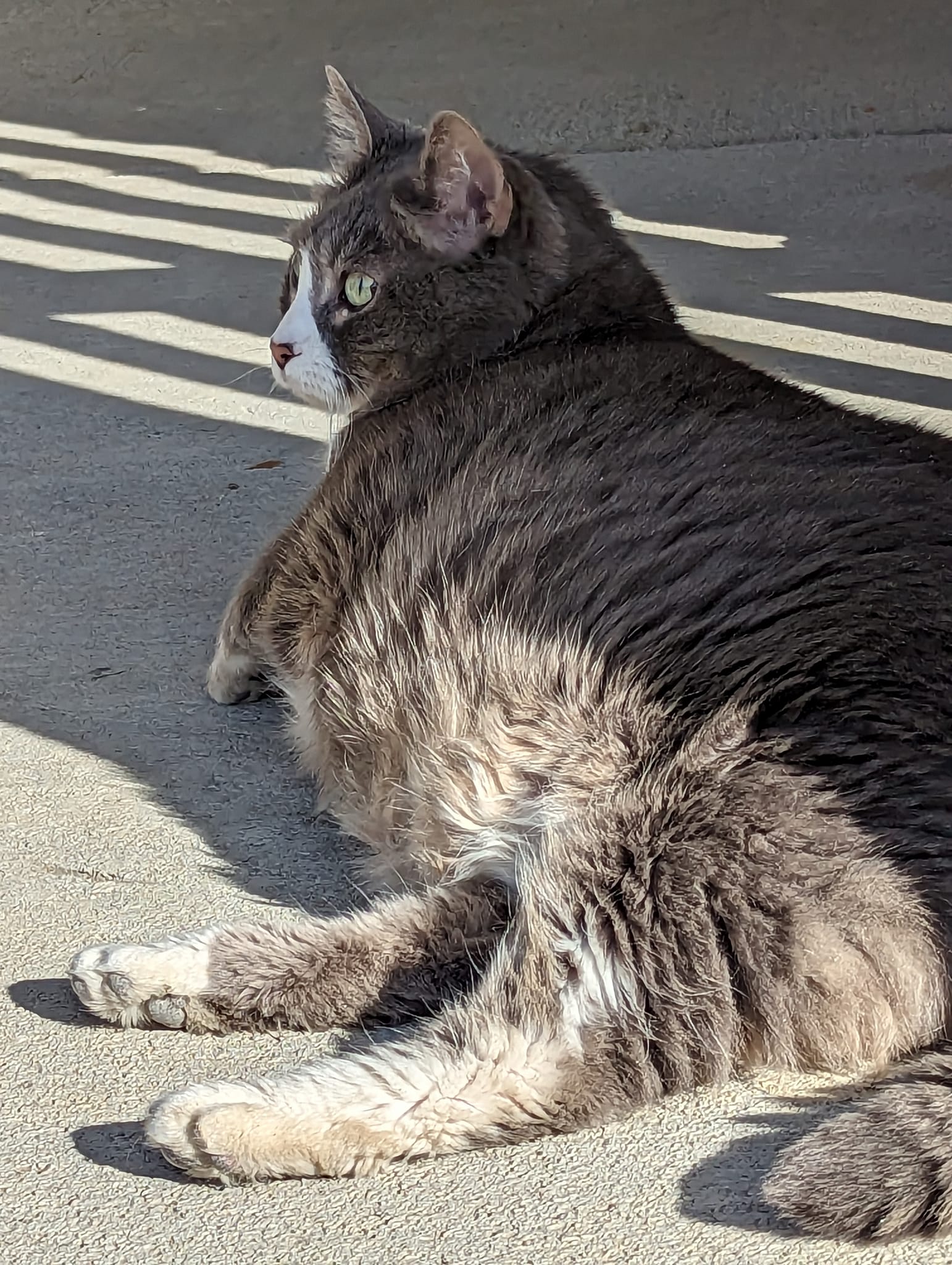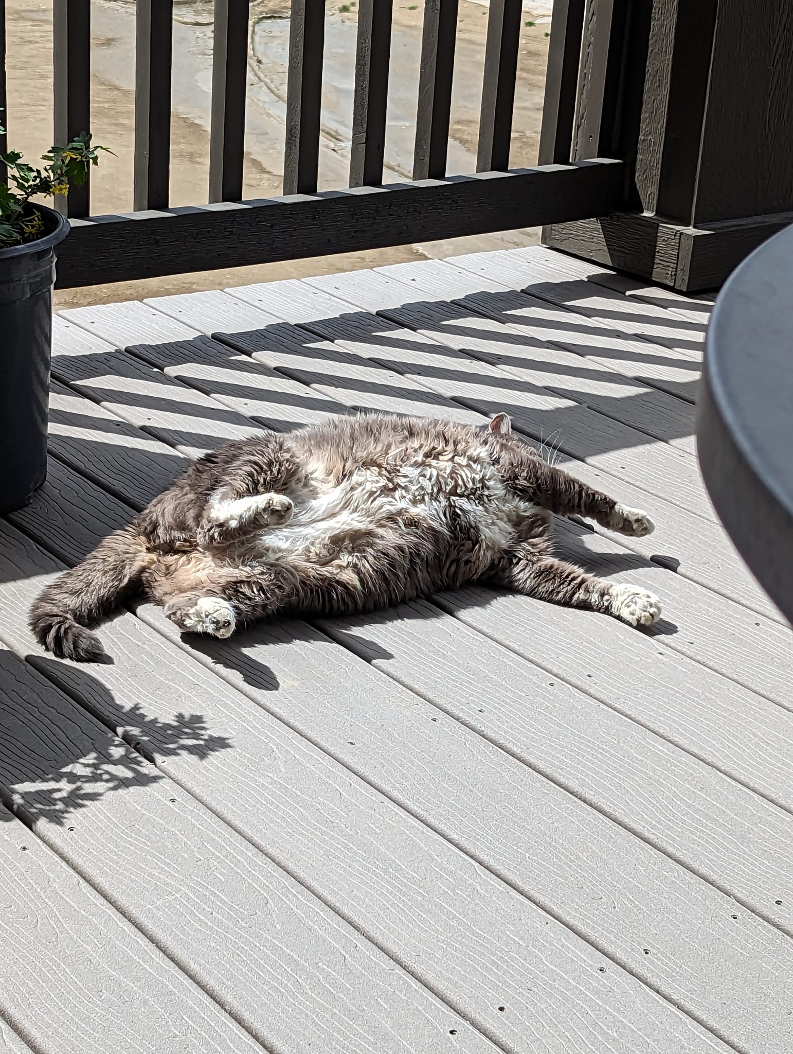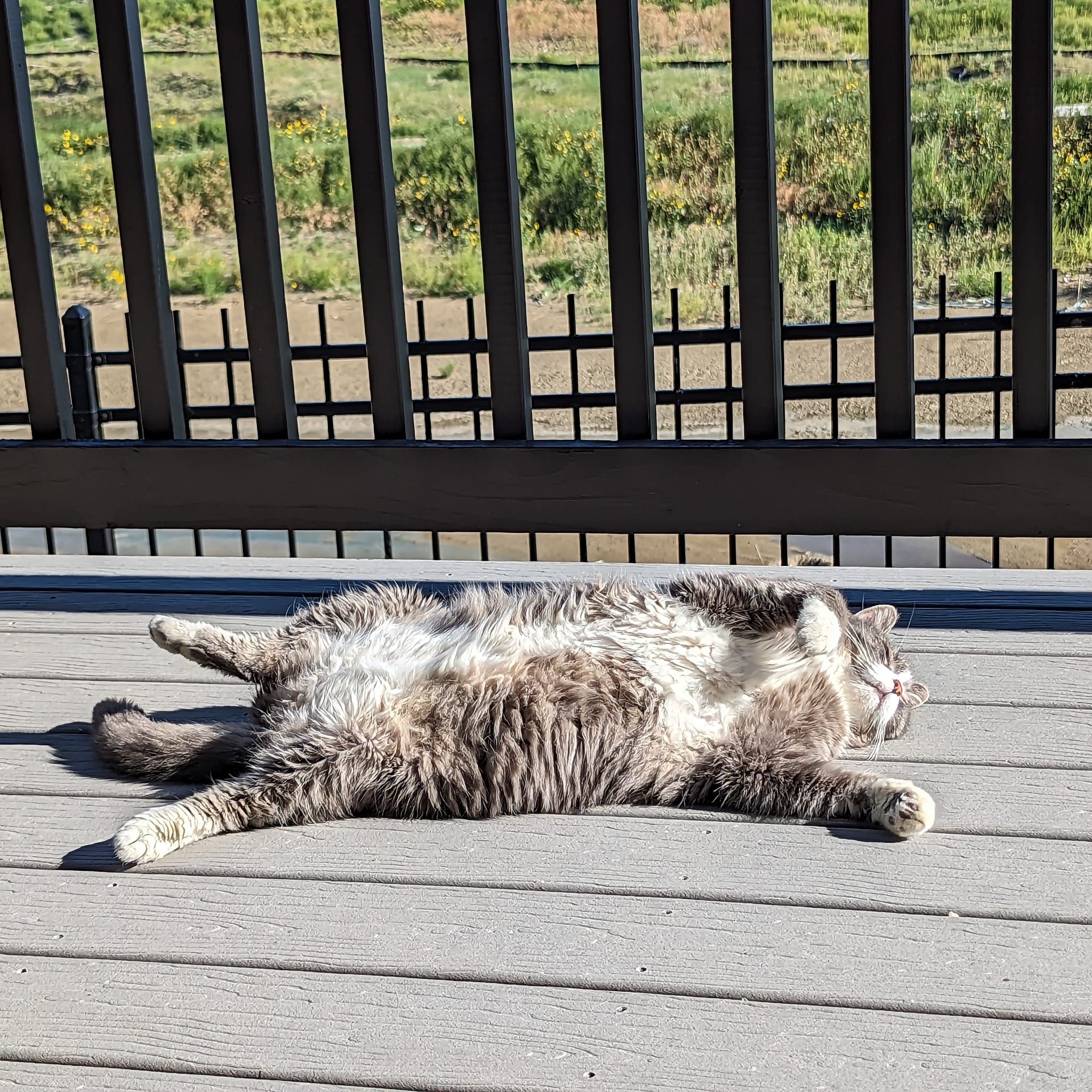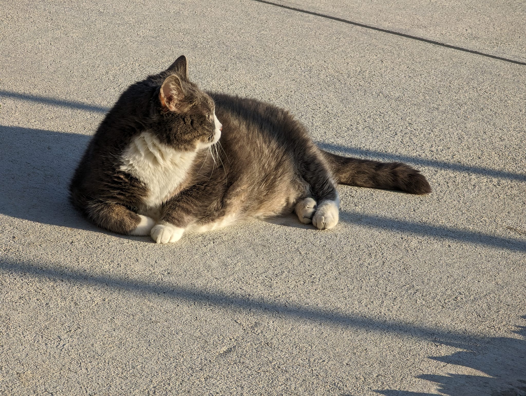 So far, so good. The fluids and anti nausea meds seem to have helped. Ziggy had a large lunch, followed by a sun bath.