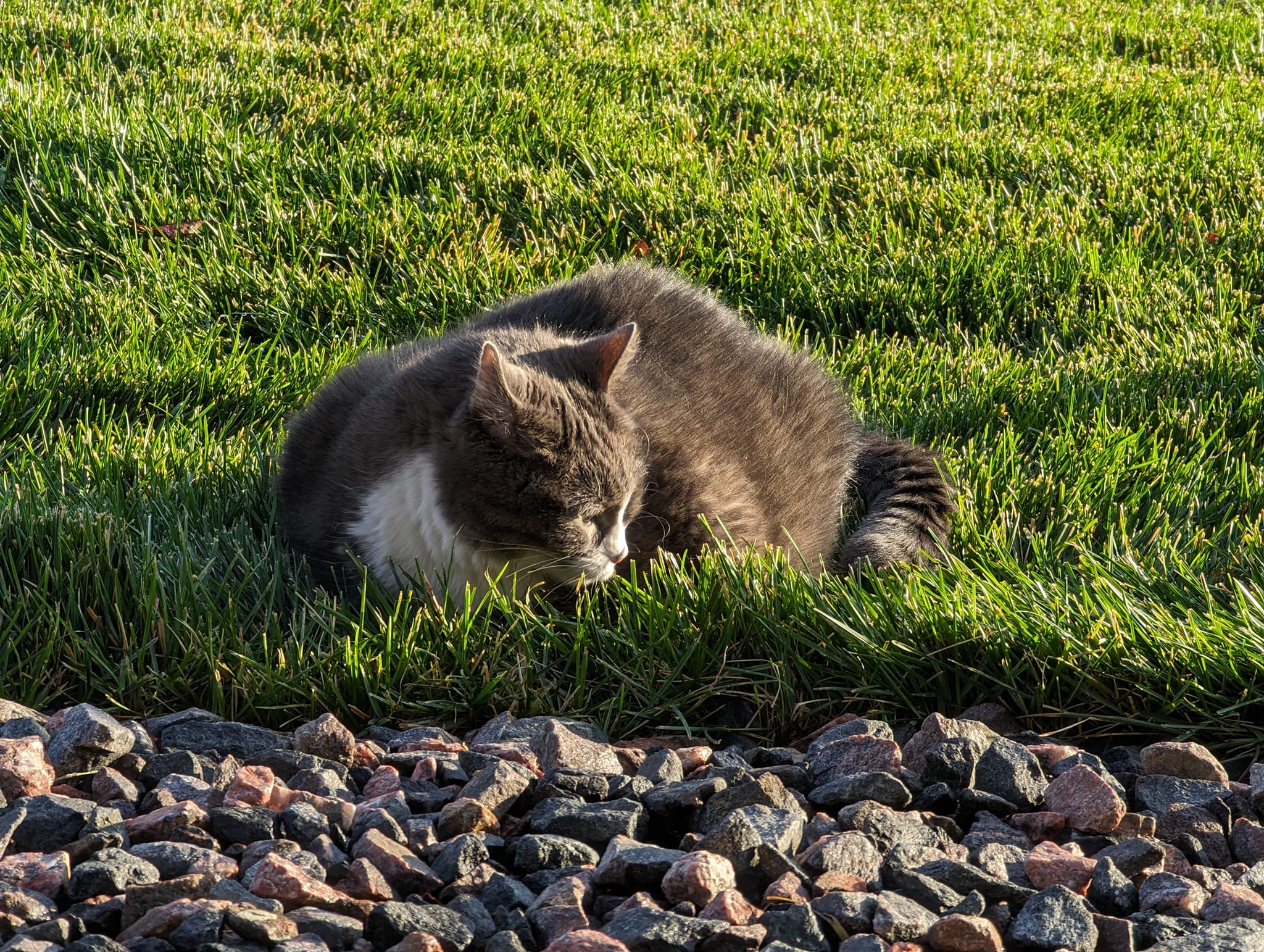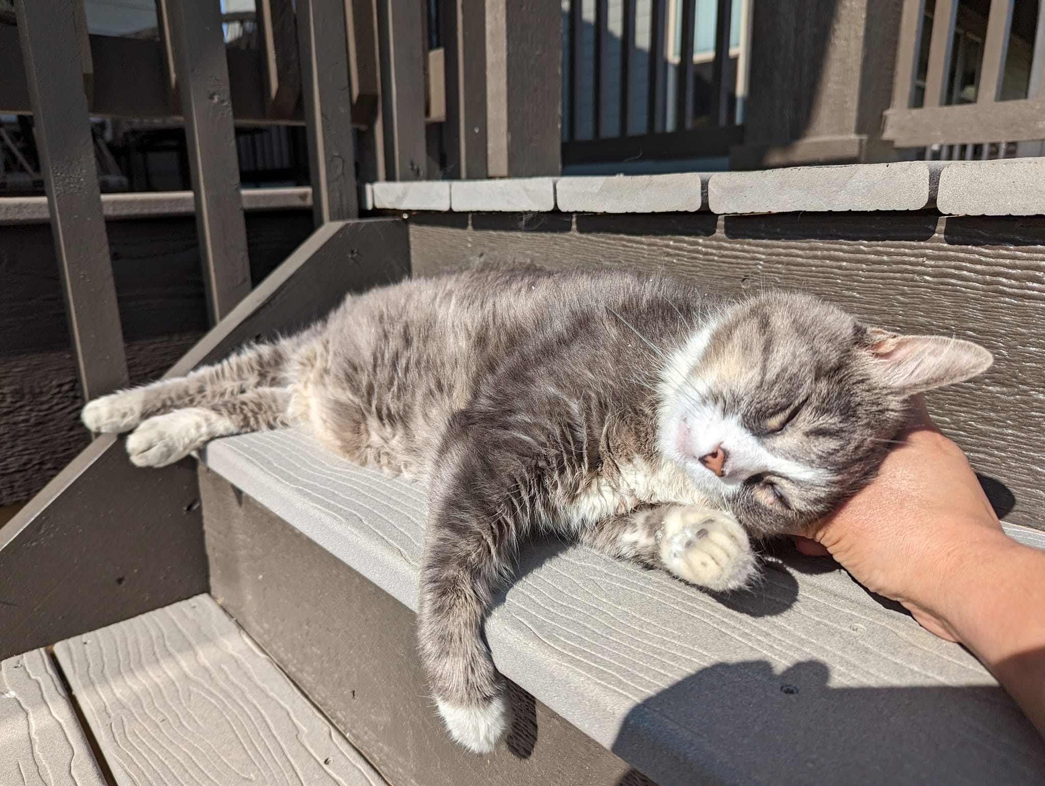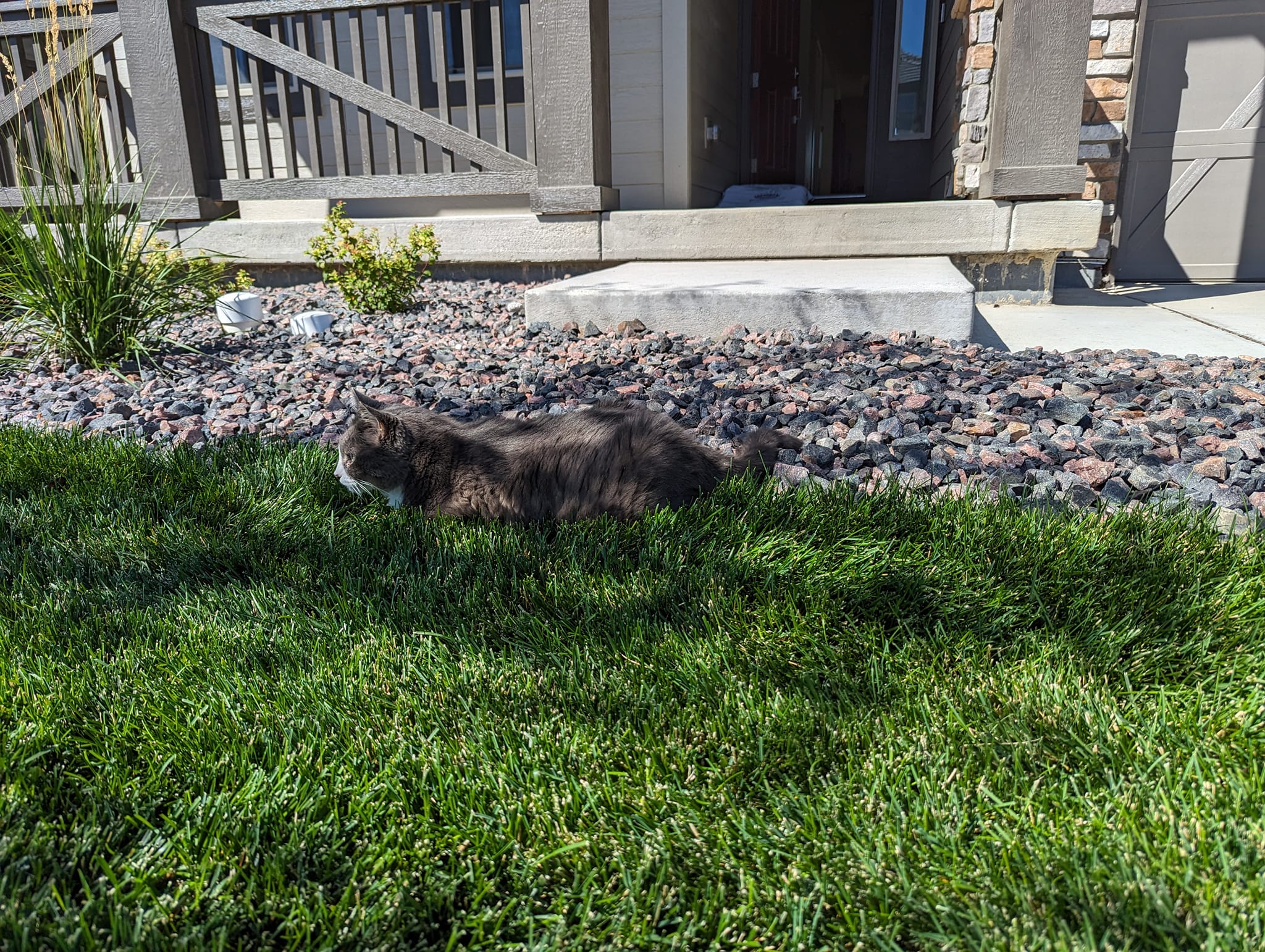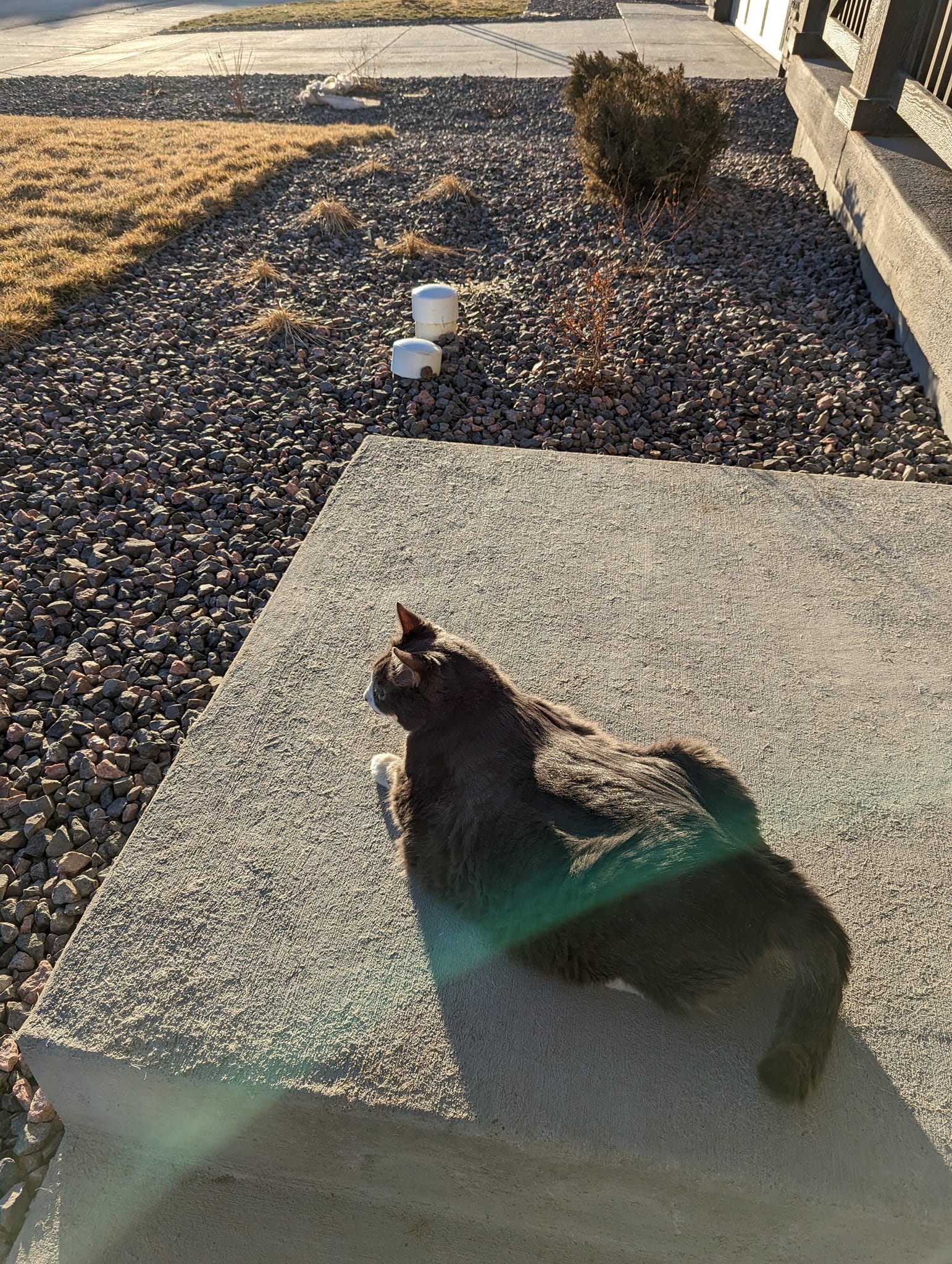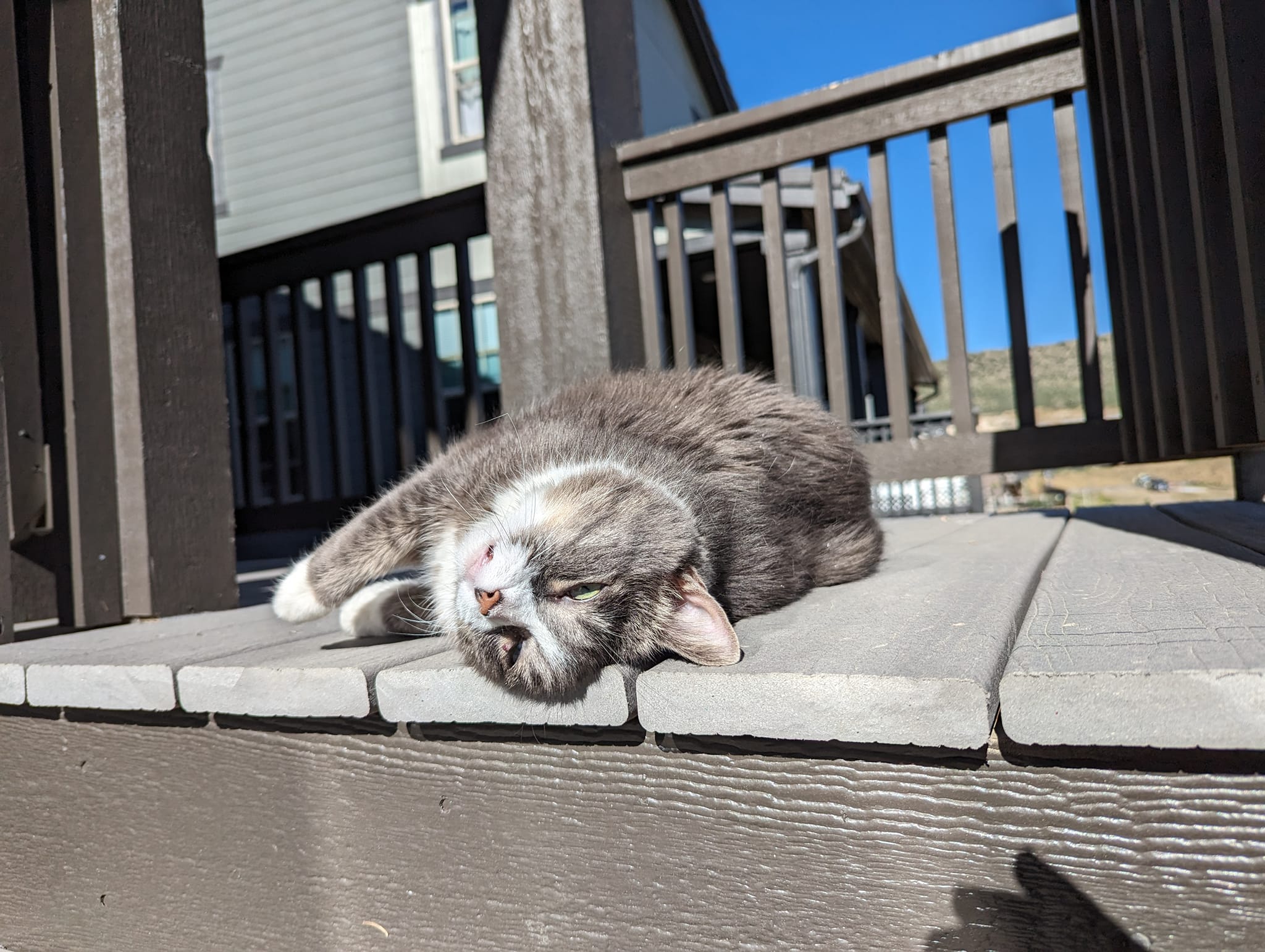 So far, so good. The fluids and anti nausea meds seem to have helped. Ziggy had a large lunch, followed by a sun bath.