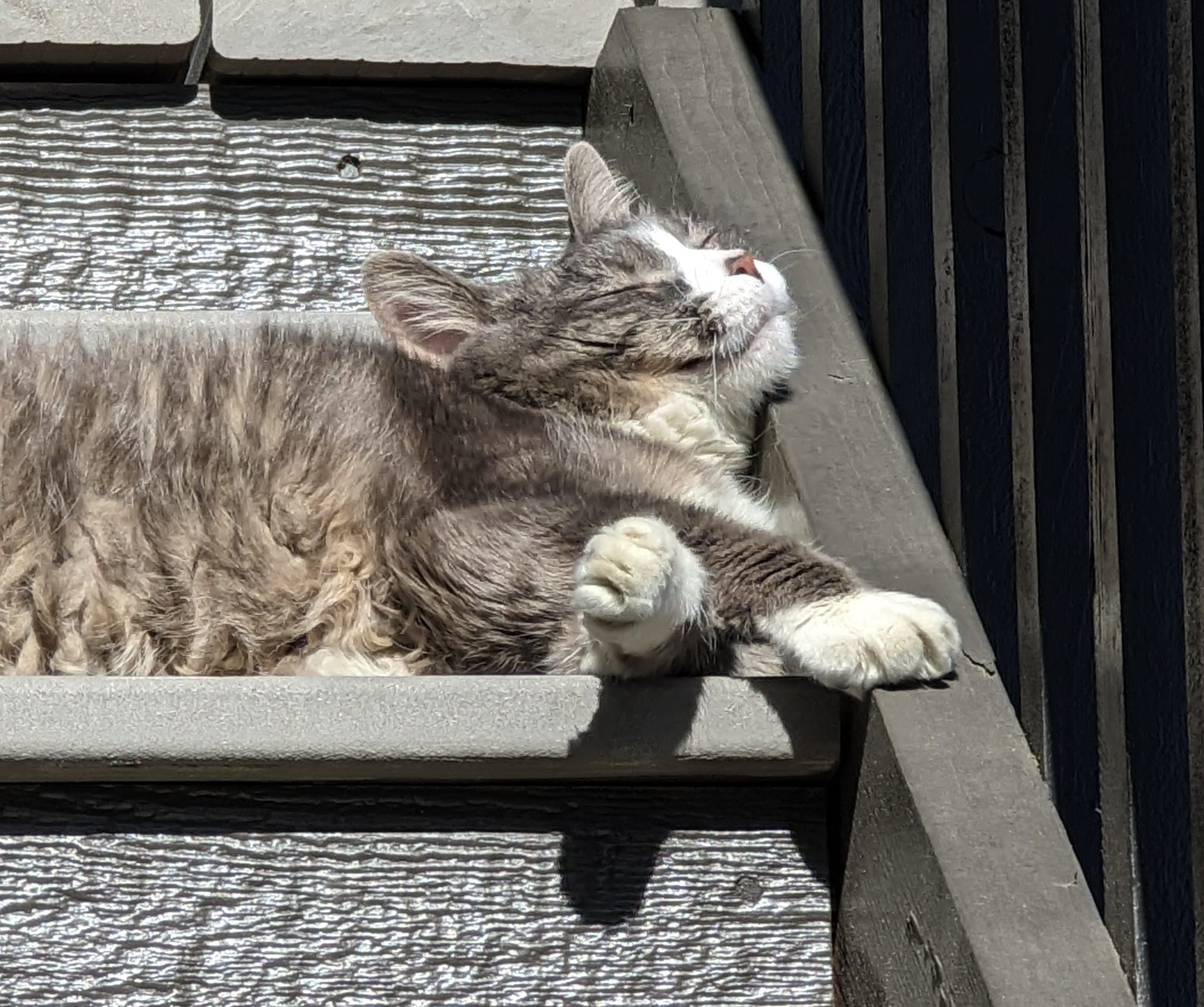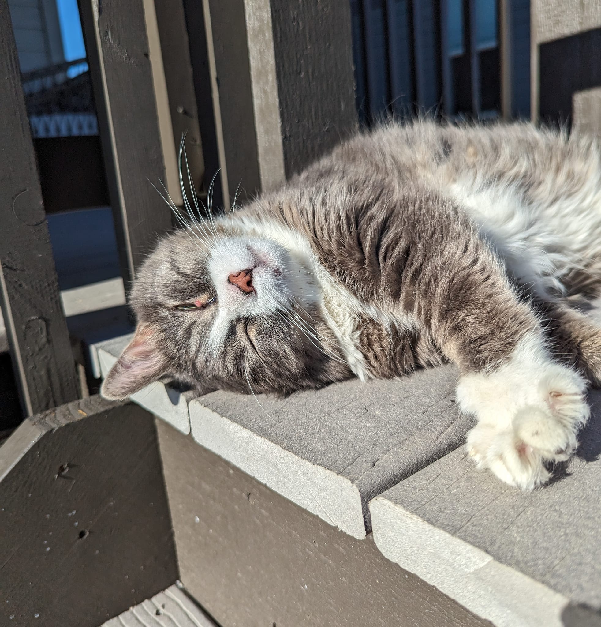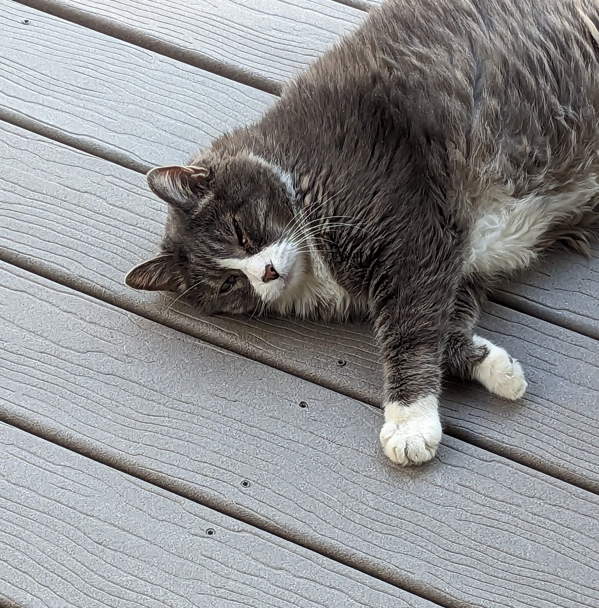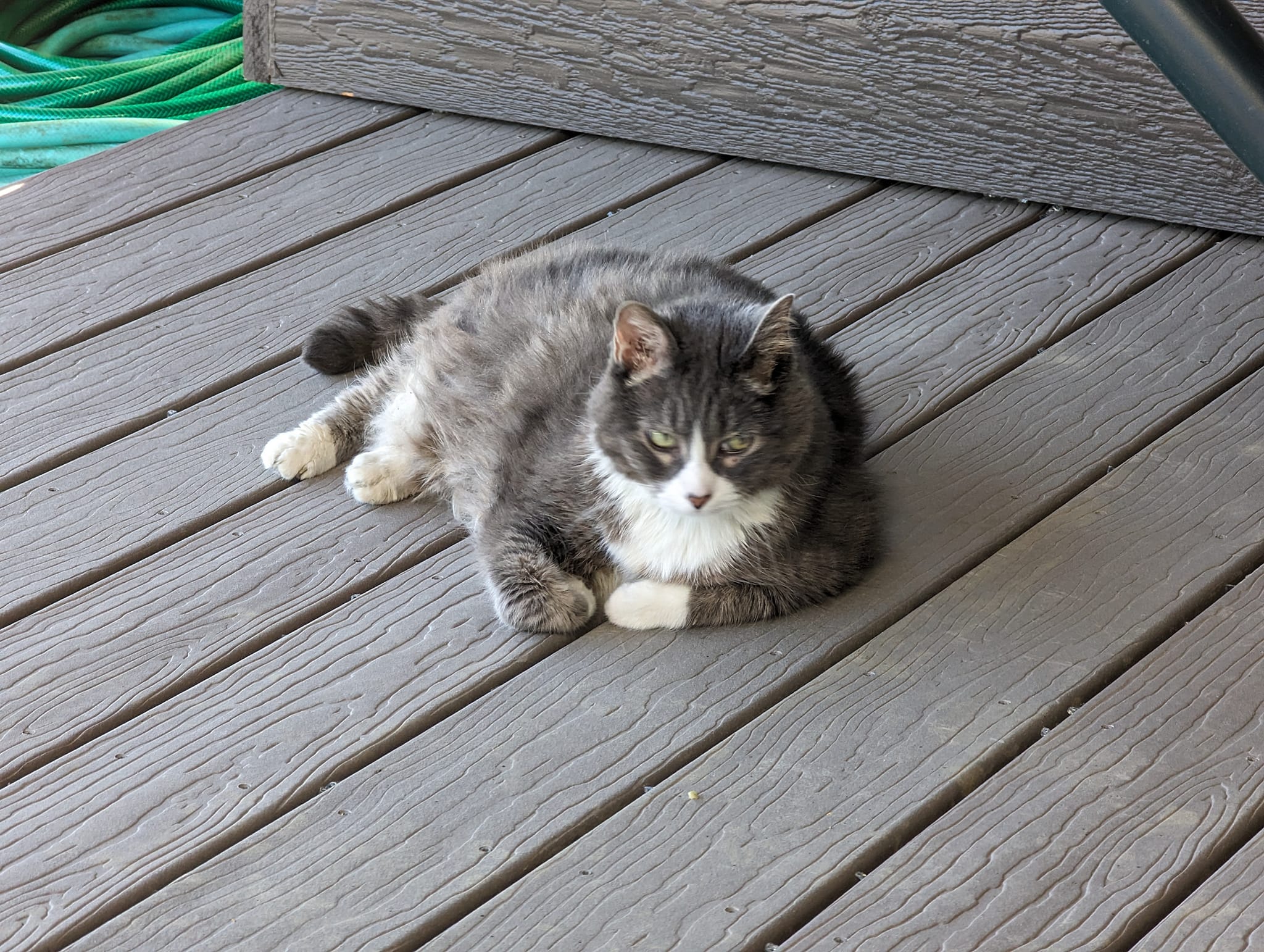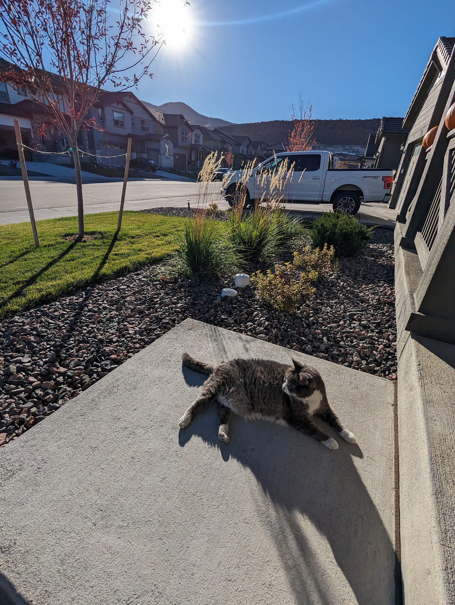 So far, so good. The fluids and anti nausea meds seem to have helped. Ziggy had a large lunch, followed by a sun bath.