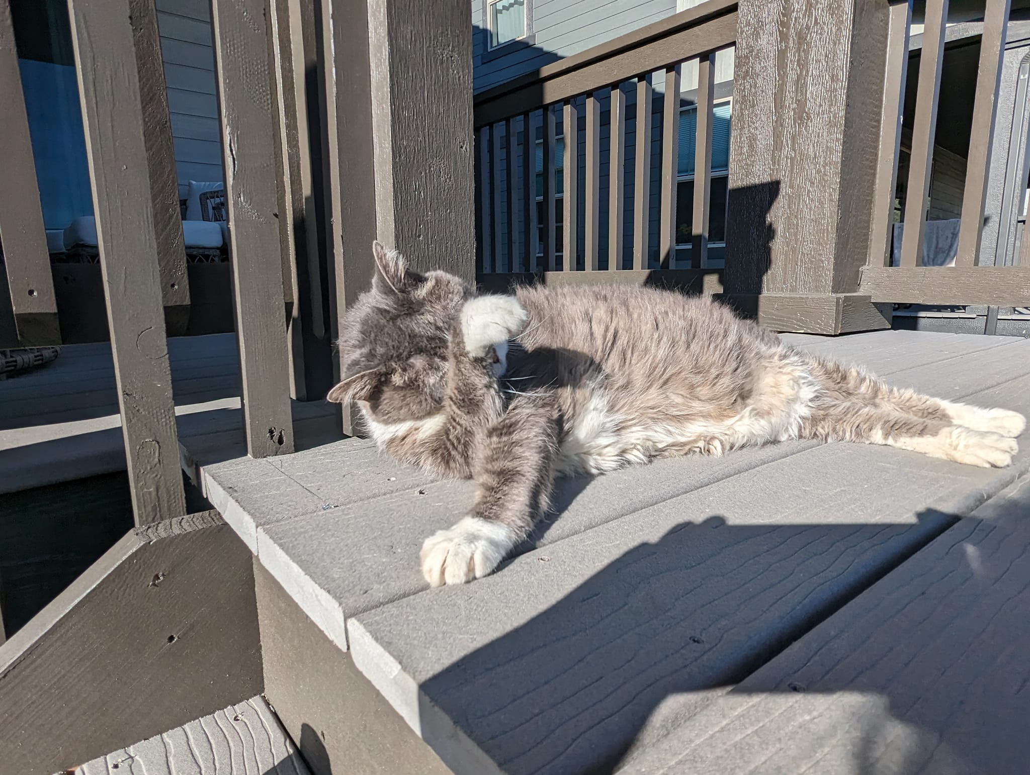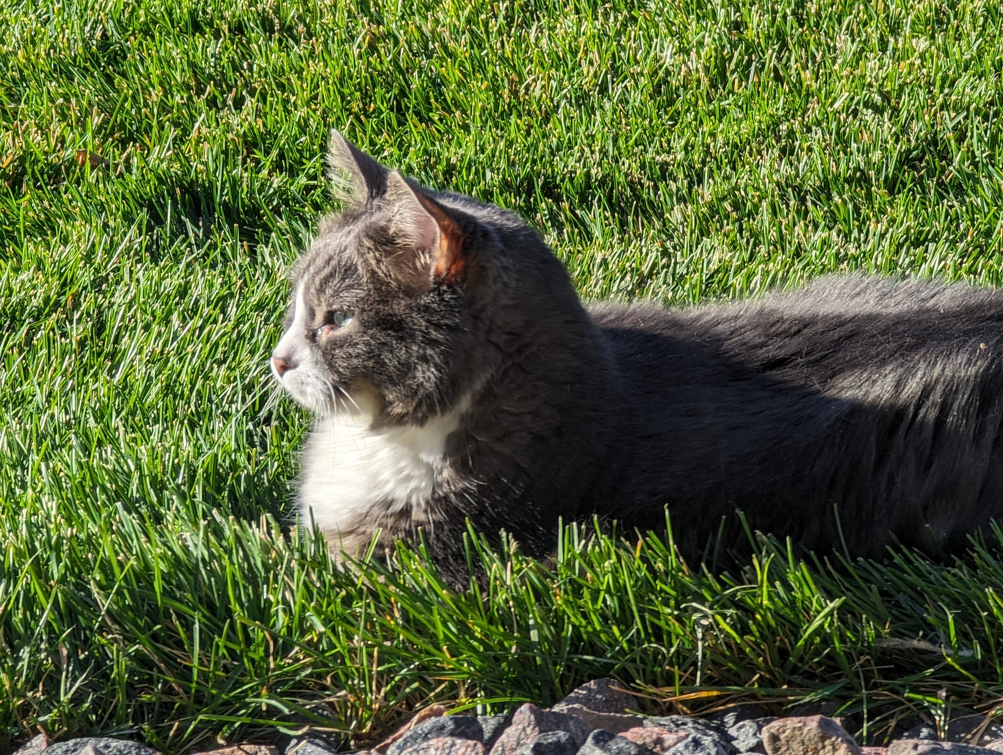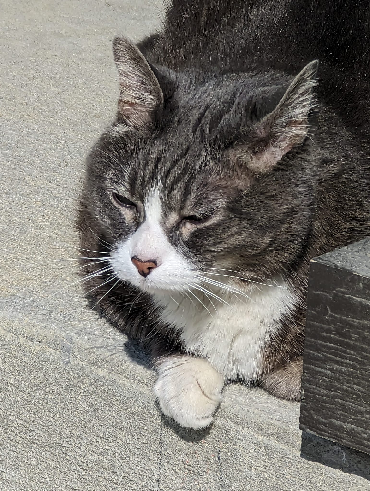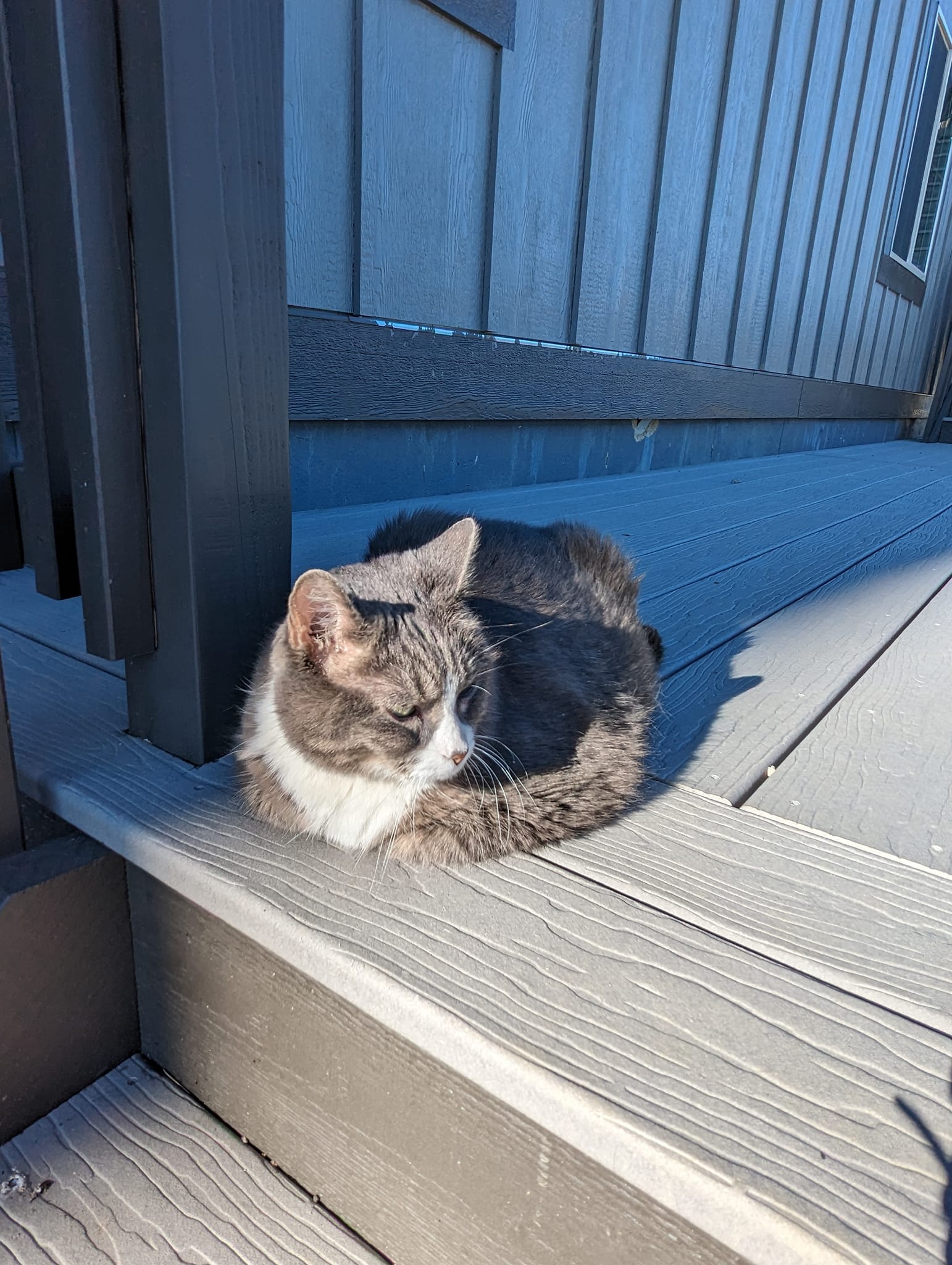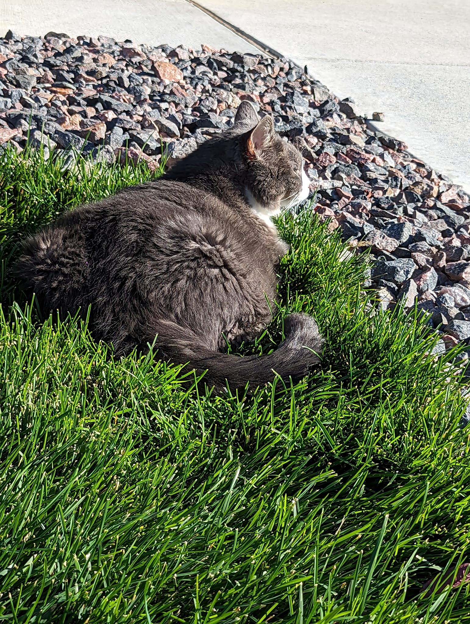 So far, so good. The fluids and anti nausea meds seem to have helped. Ziggy had a large lunch, followed by a sun bath.