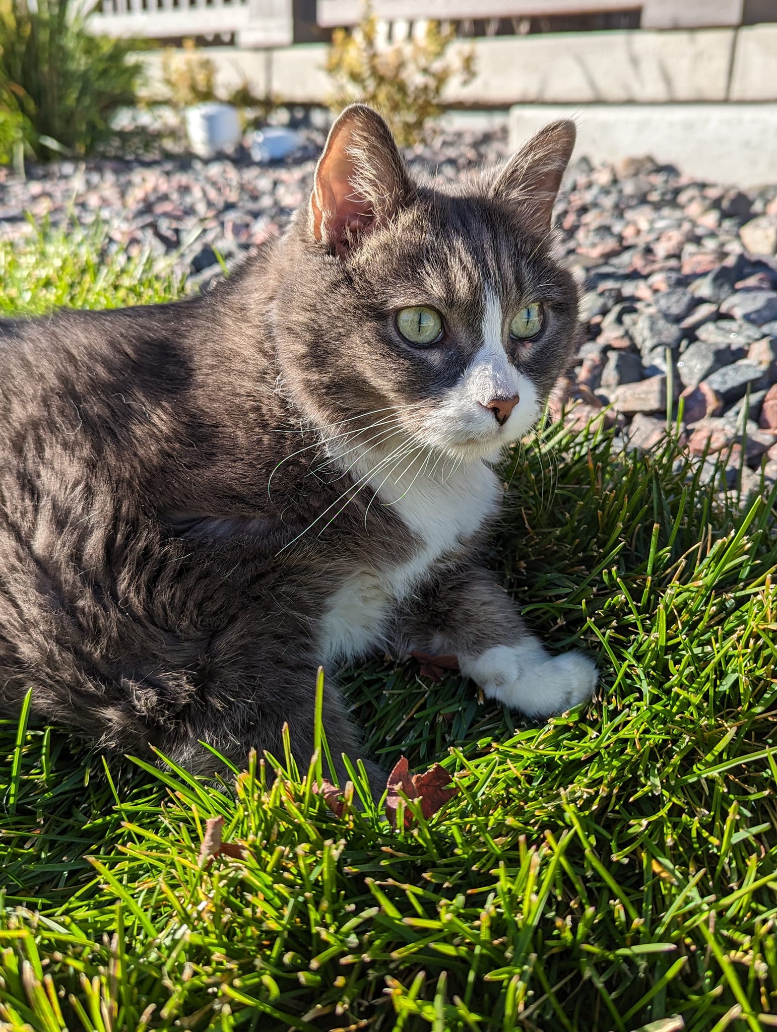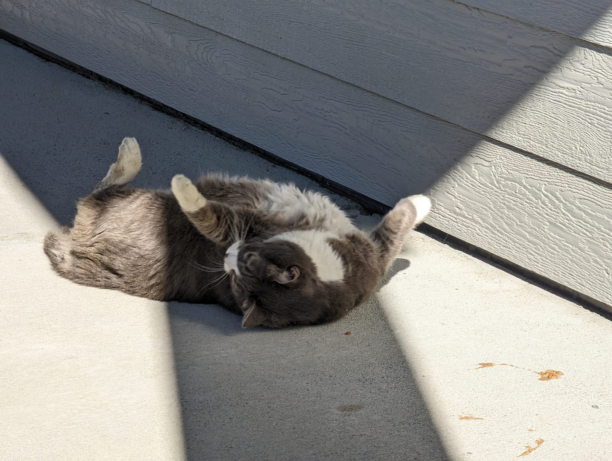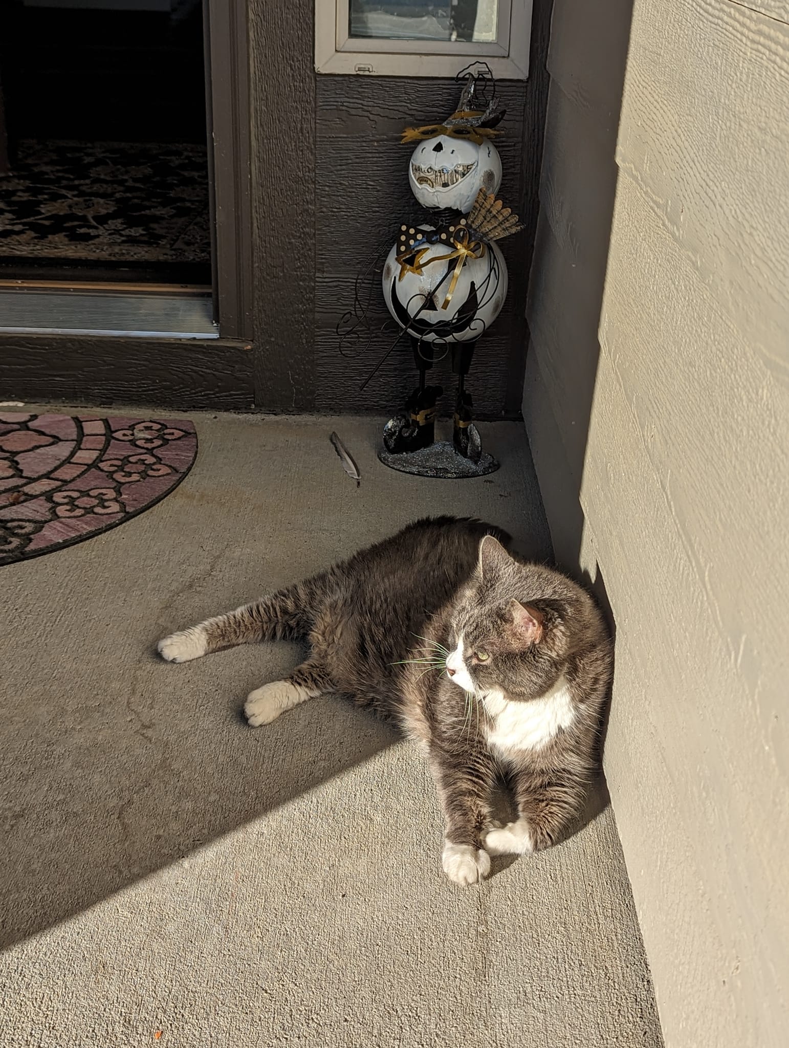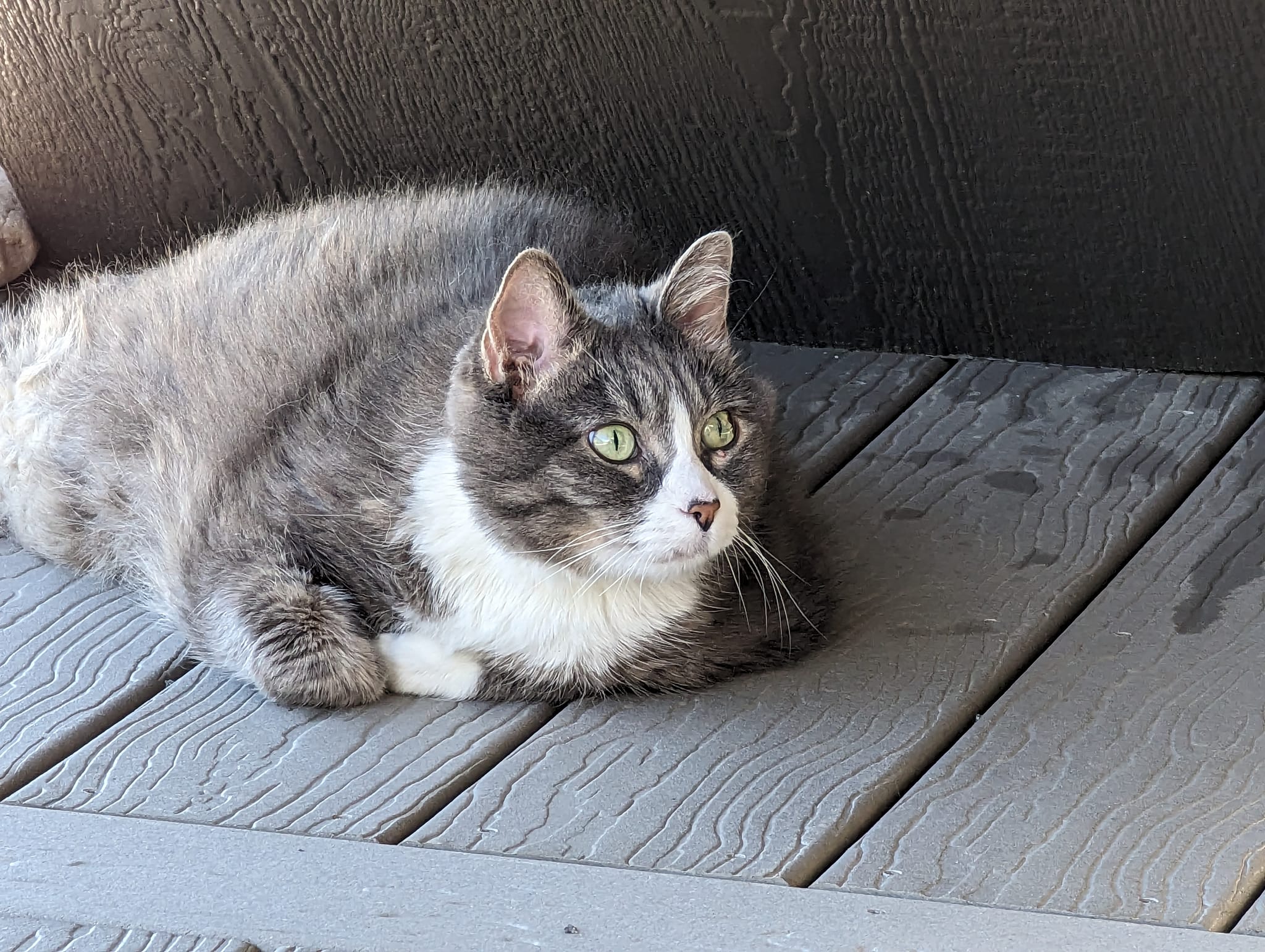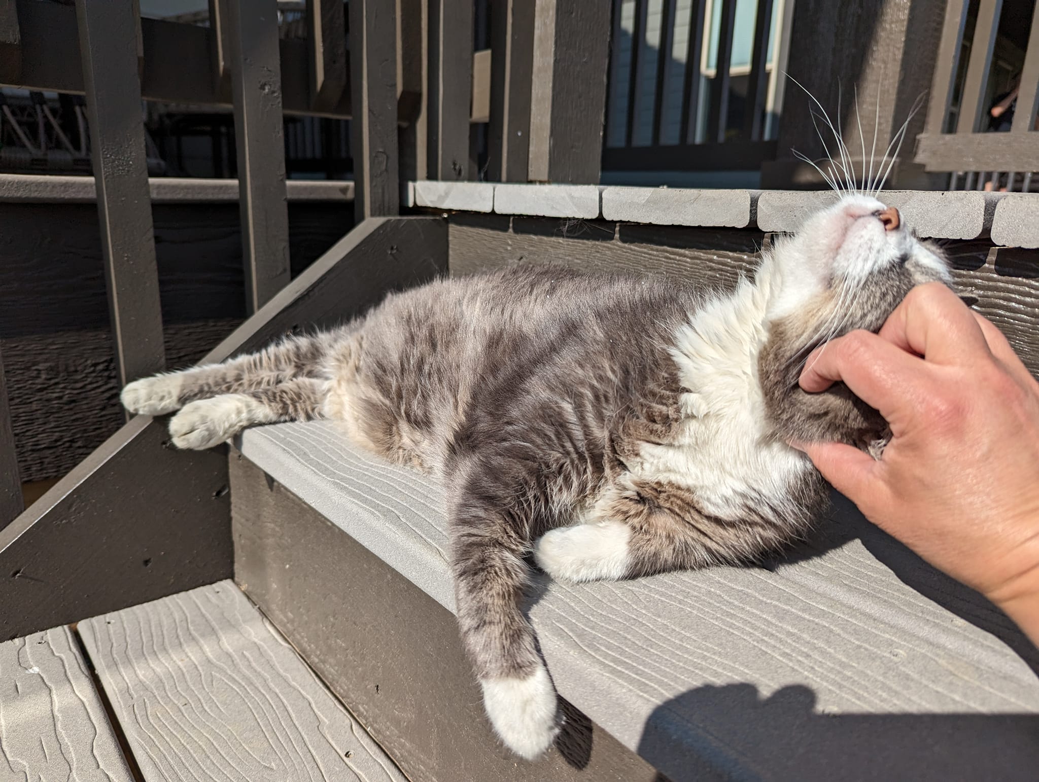 So far, so good. The fluids and anti nausea meds seem to have helped. Ziggy had a large lunch, followed by a sun bath.