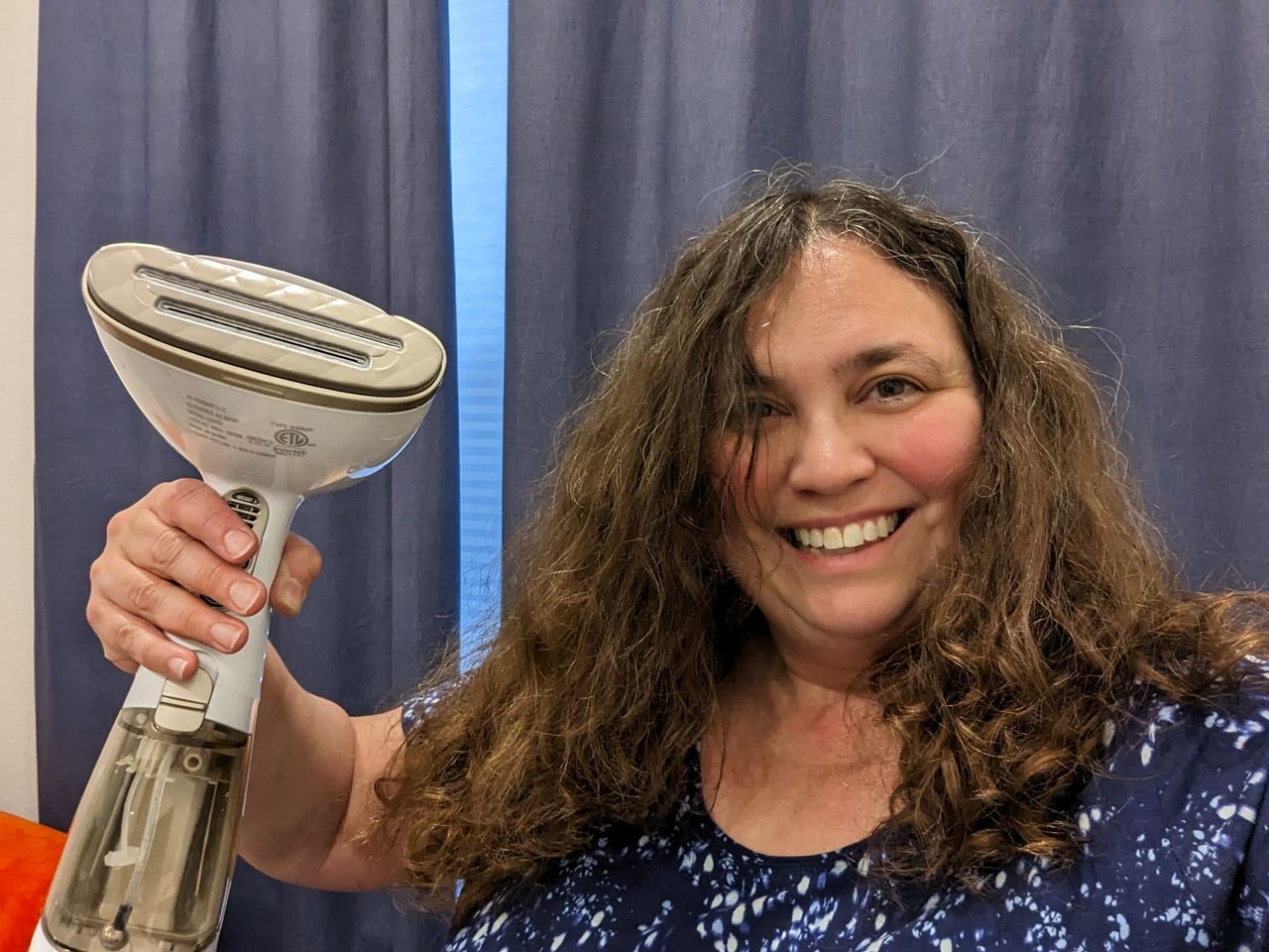 Many thanks to my hubby for the idea! Bought my first ever steamer and steamed the curtains in place instead of trying to iron them and then hang them. Wish I had known about this decades ago! So much easier. ?? Ziggy is not yet convinced about the noise it makes.