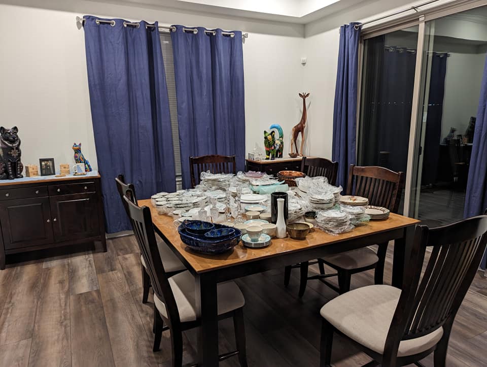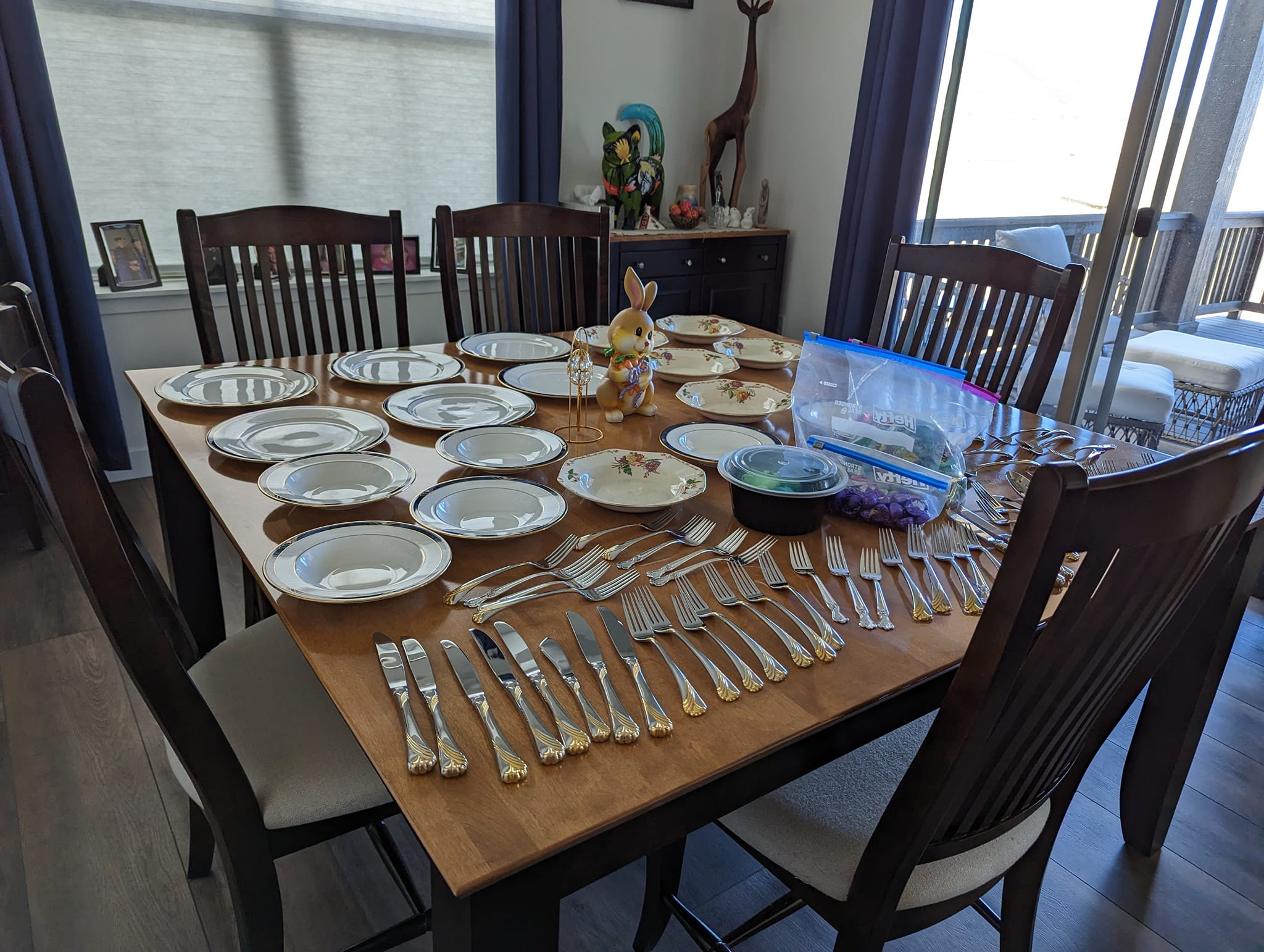 Feeling elegant.....the china is unpacked! I will play Tetris tomorrow to put it away in the cabinets. Well, this elegant display makes up for being in my PJs with wet hair. So, I feel an elegance glow from the table ??