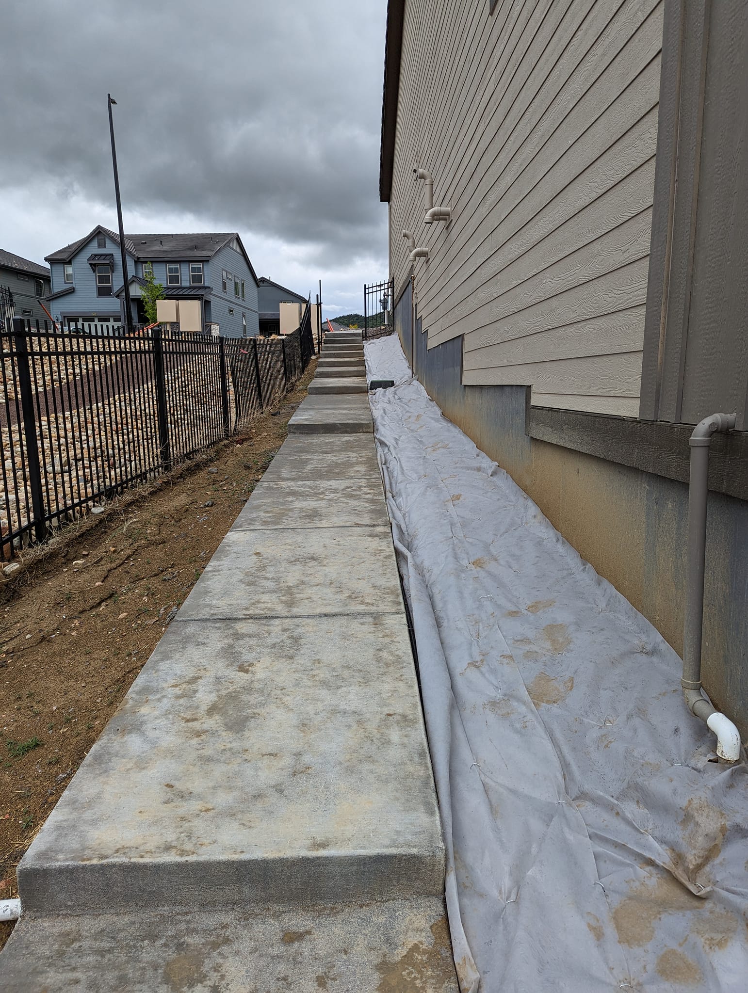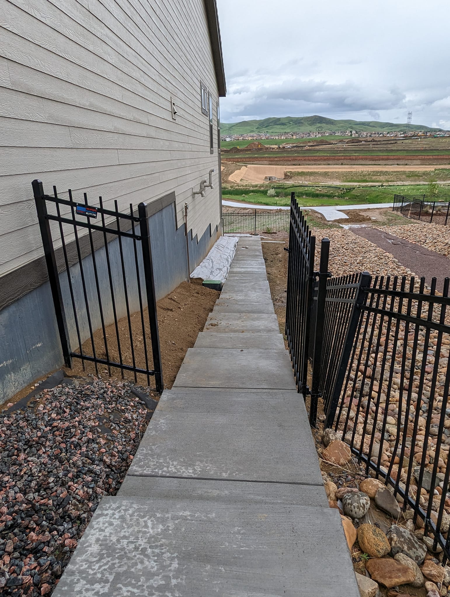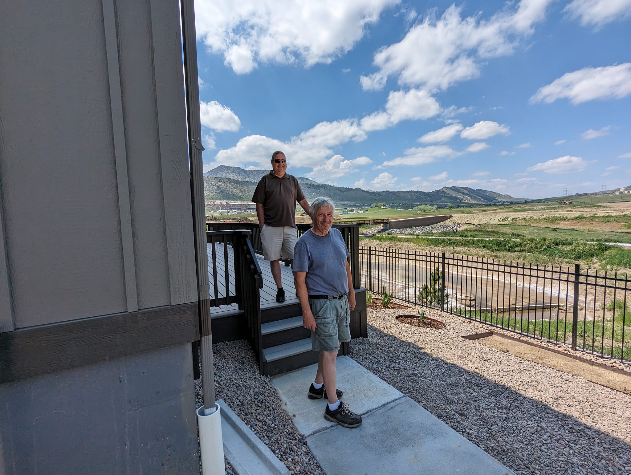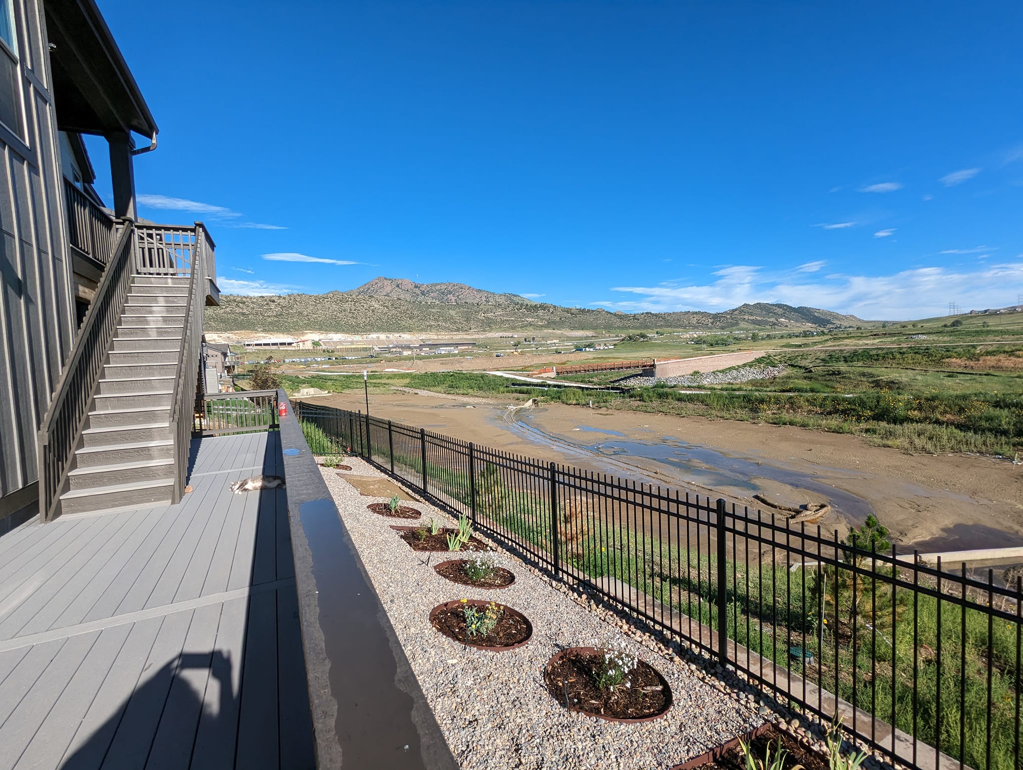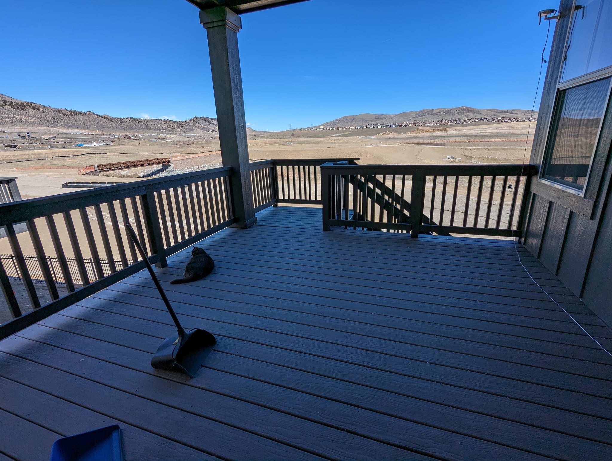 It's deck day! When we bought the house, the builder had landscaped the front yard, but the sides and back have been mud. Part 1 of our landscaping plan is to install a new deck in the back yard. It will come out from the basement door and wrap around the back of the house. (Foundation warranty and HOA rules are that we can't change the grade of the dirt, and it is a pretty steep slope, so we are going over the top with a deck in order to get some usable level ground)