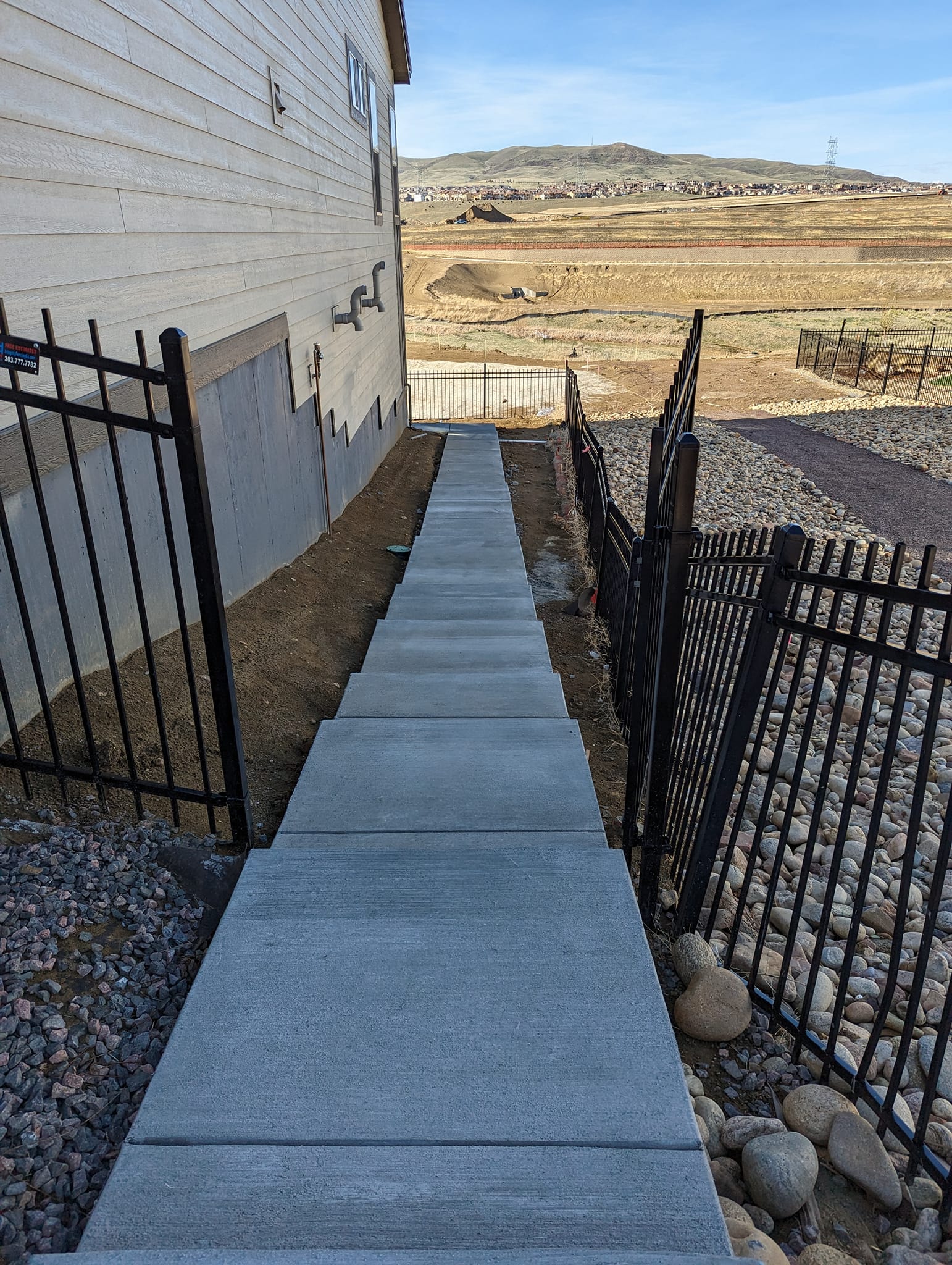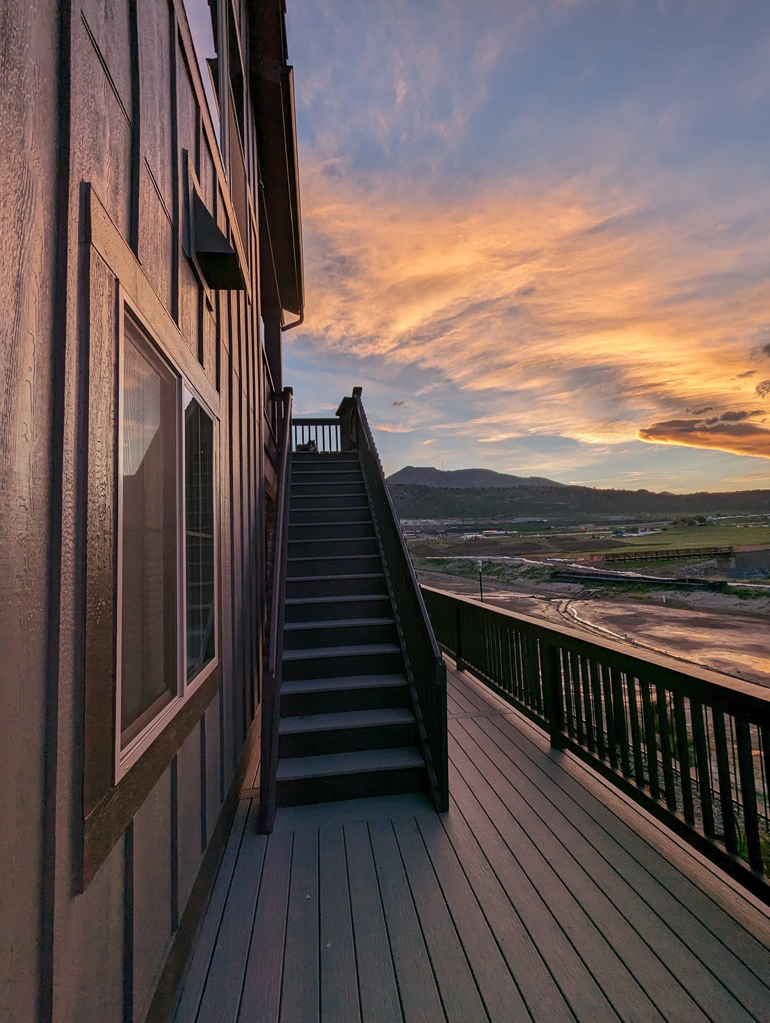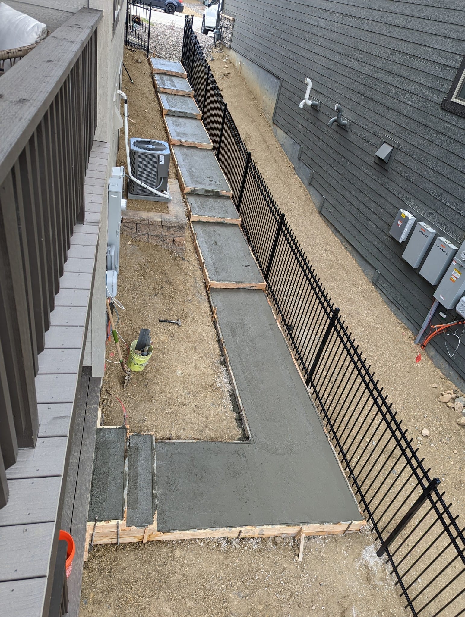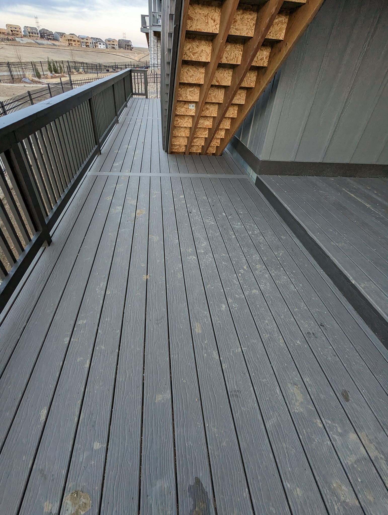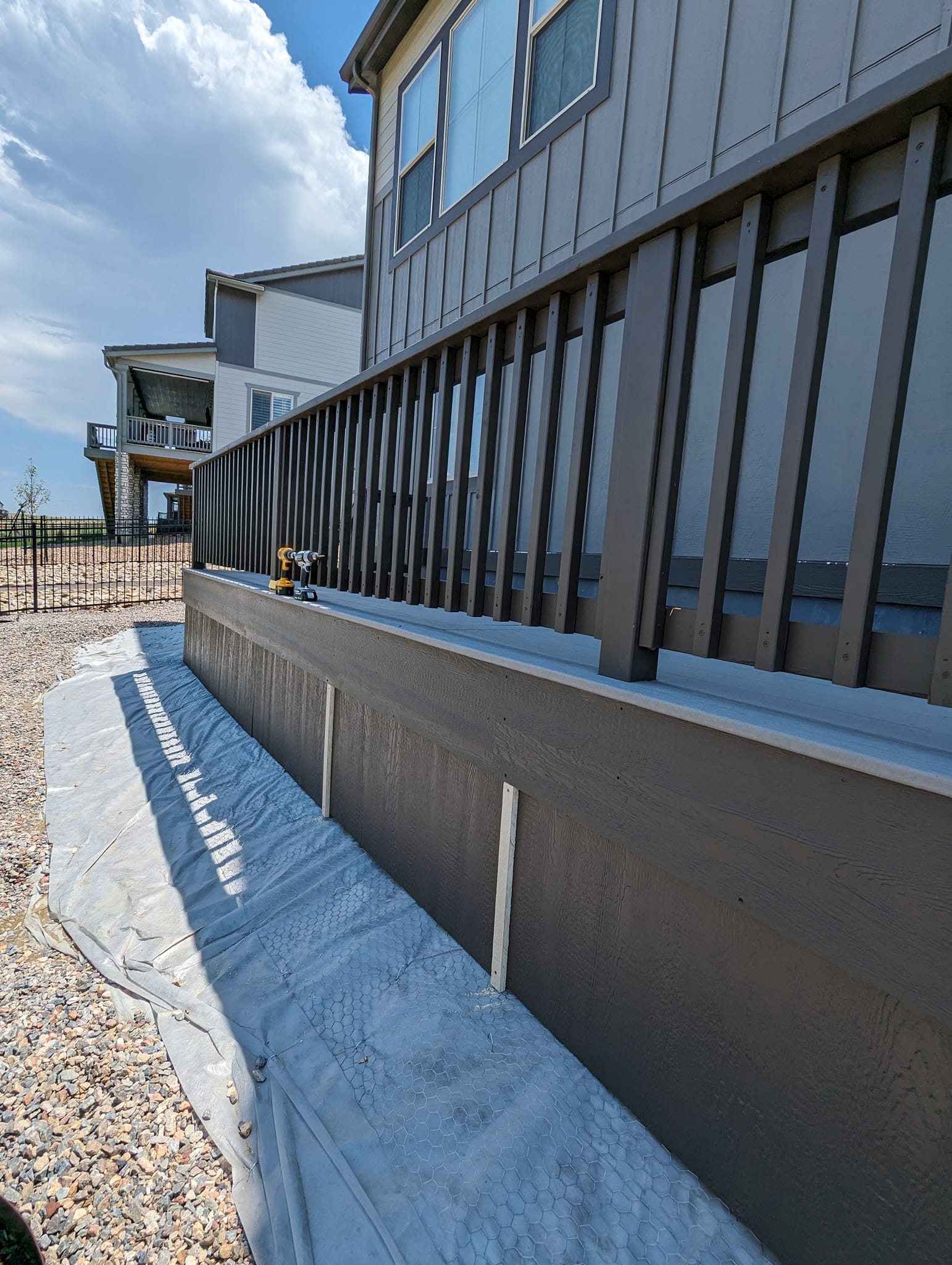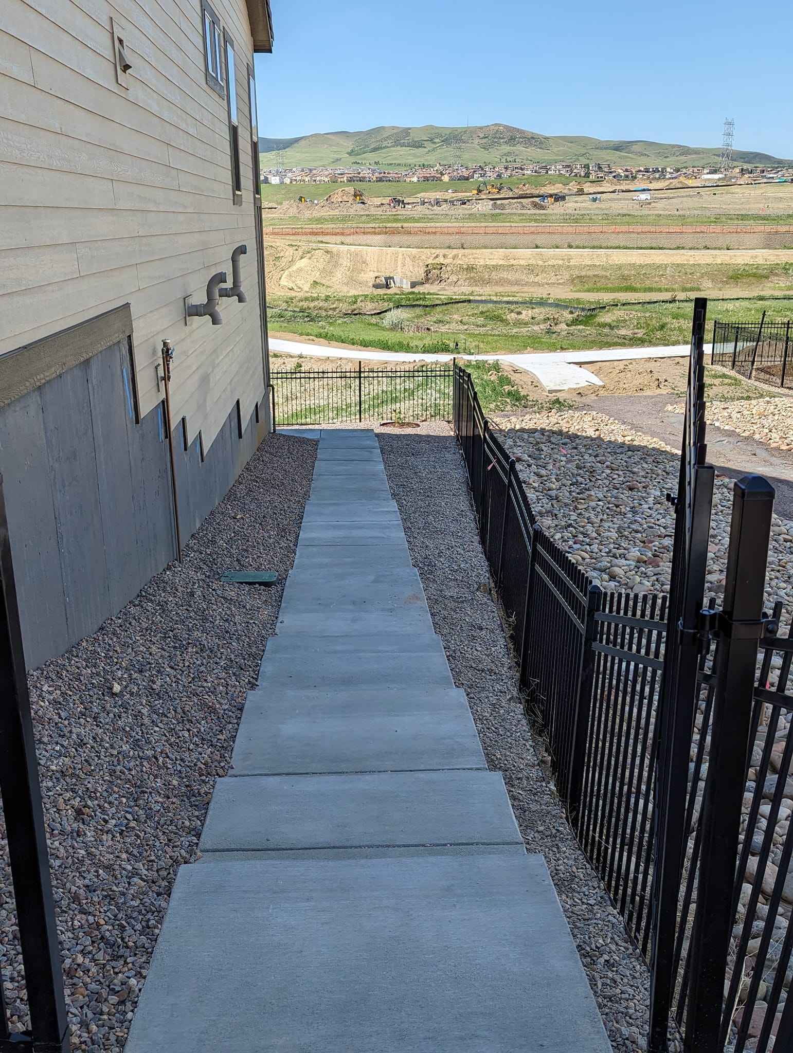 It's deck day! When we bought the house, the builder had landscaped the front yard, but the sides and back have been mud. Part 1 of our landscaping plan is to install a new deck in the back yard. It will come out from the basement door and wrap around the back of the house. (Foundation warranty and HOA rules are that we can't change the grade of the dirt, and it is a pretty steep slope, so we are going over the top with a deck in order to get some usable level ground)