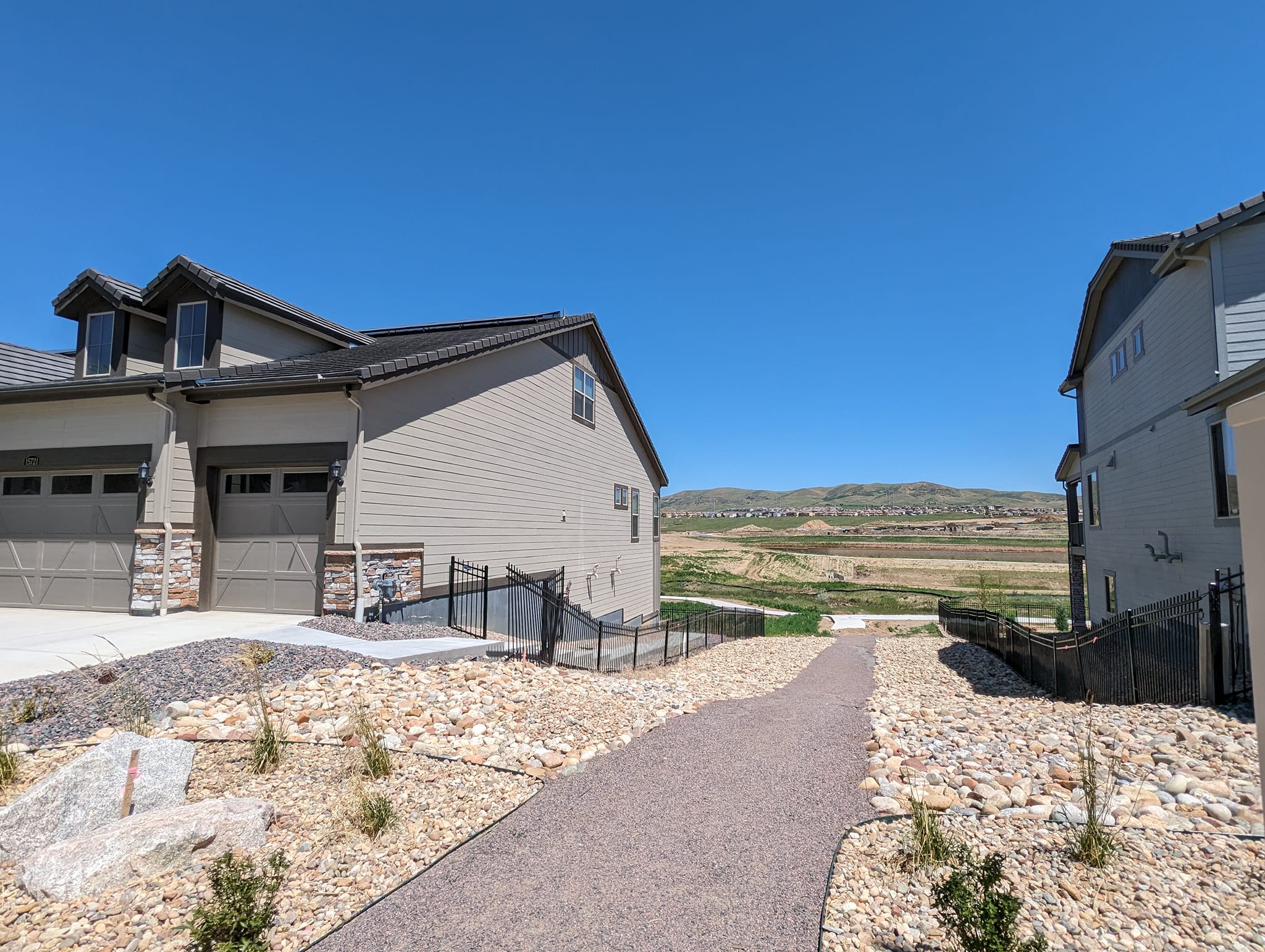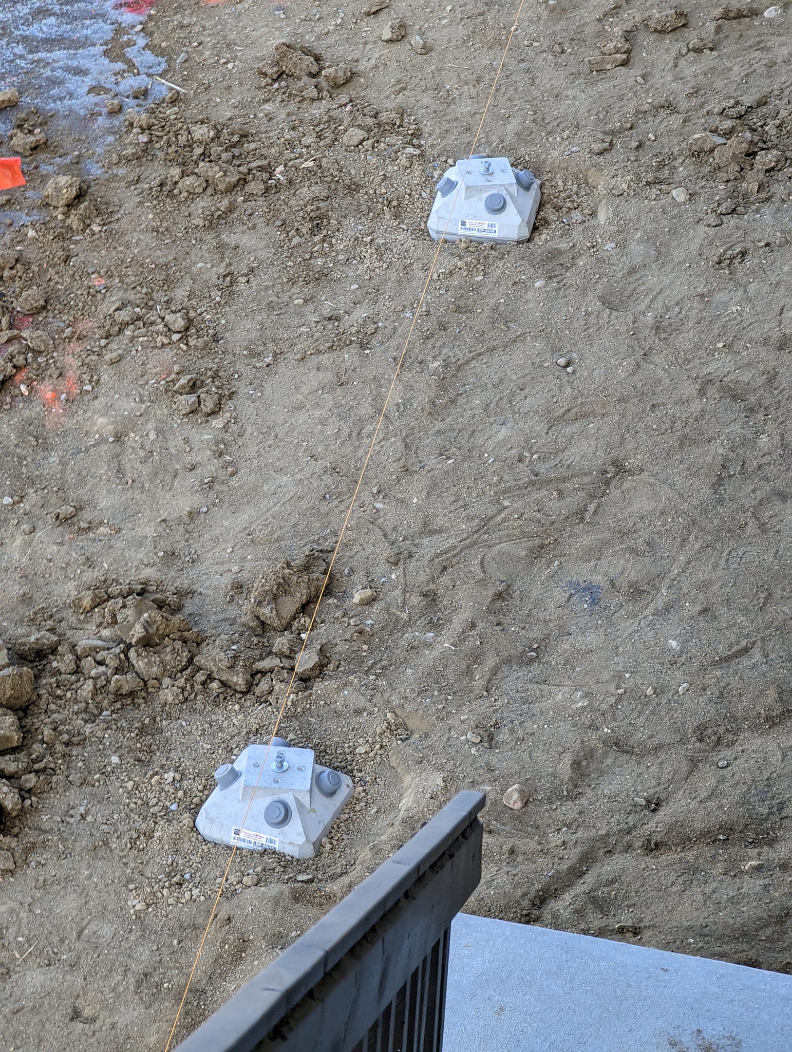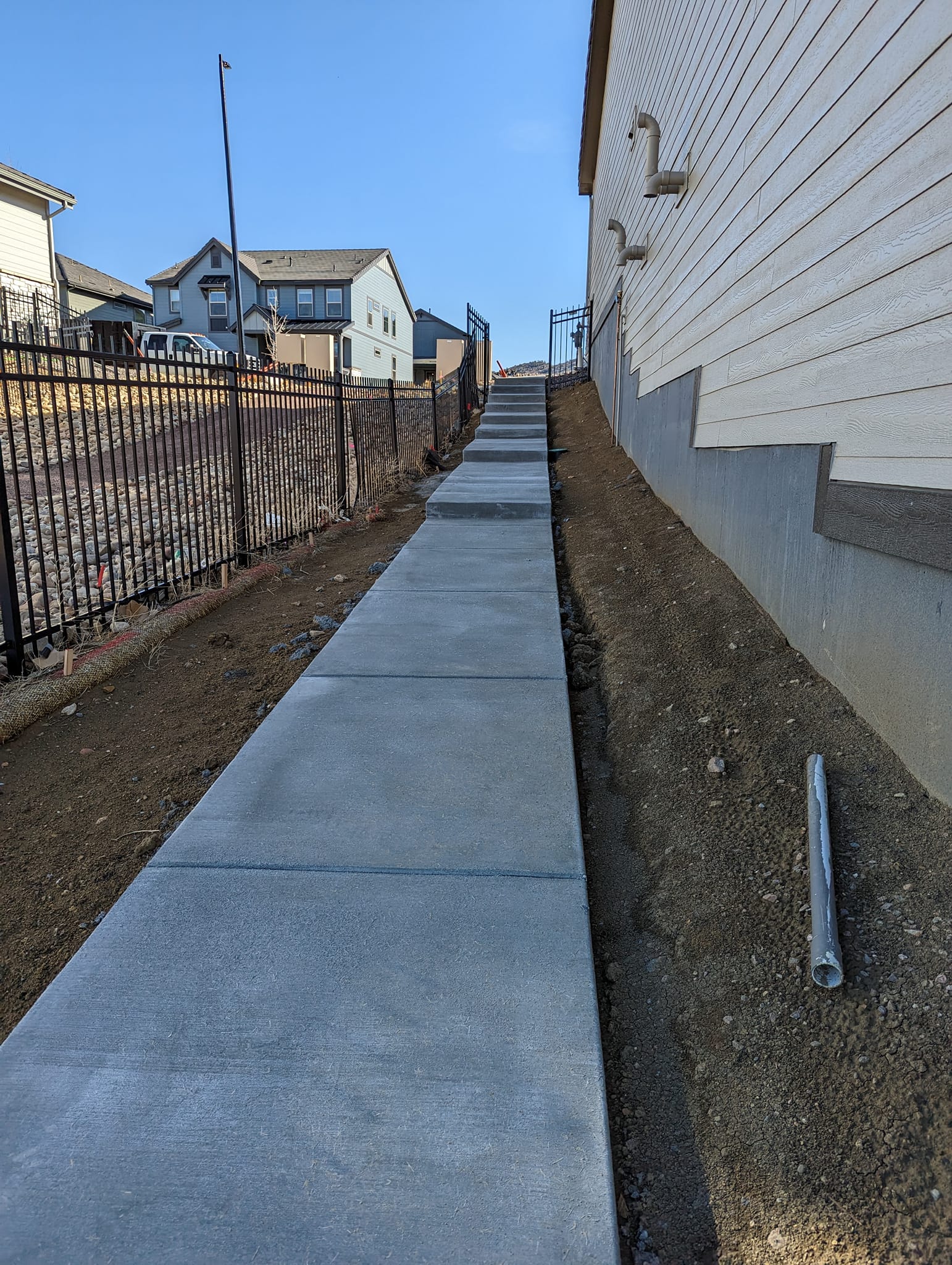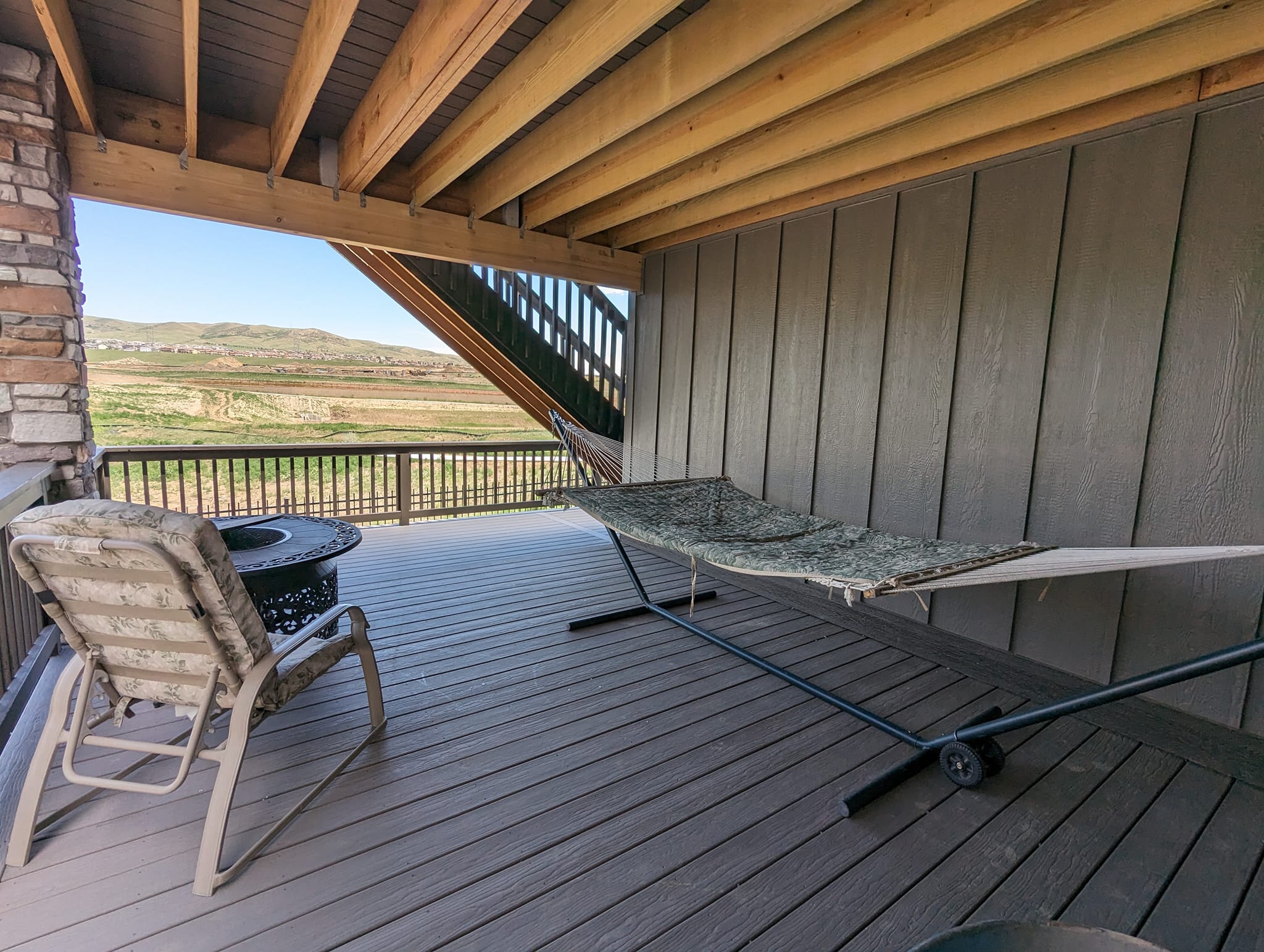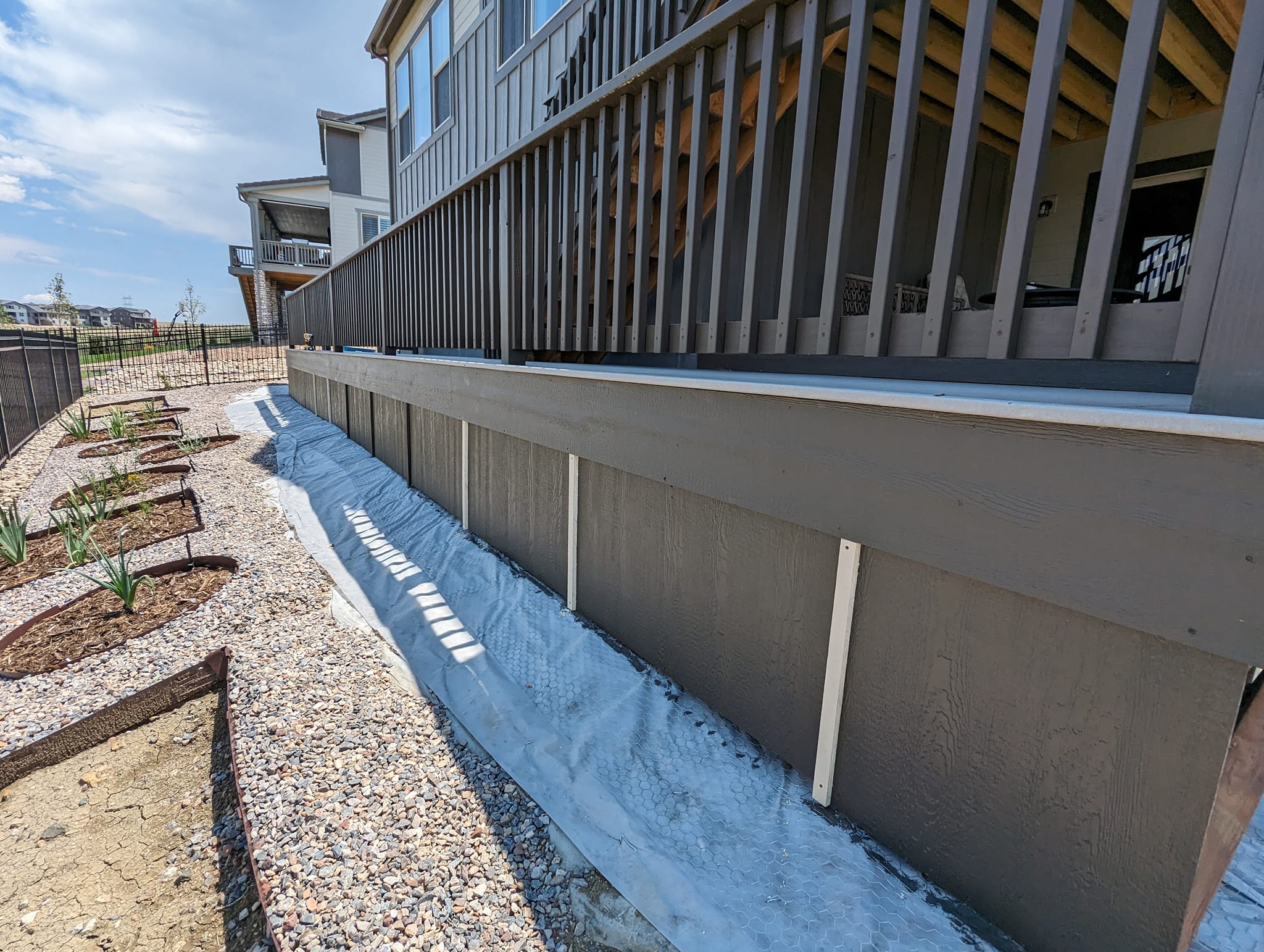 It's deck day! When we bought the house, the builder had landscaped the front yard, but the sides and back have been mud. Part 1 of our landscaping plan is to install a new deck in the back yard. It will come out from the basement door and wrap around the back of the house. (Foundation warranty and HOA rules are that we can't change the grade of the dirt, and it is a pretty steep slope, so we are going over the top with a deck in order to get some usable level ground)