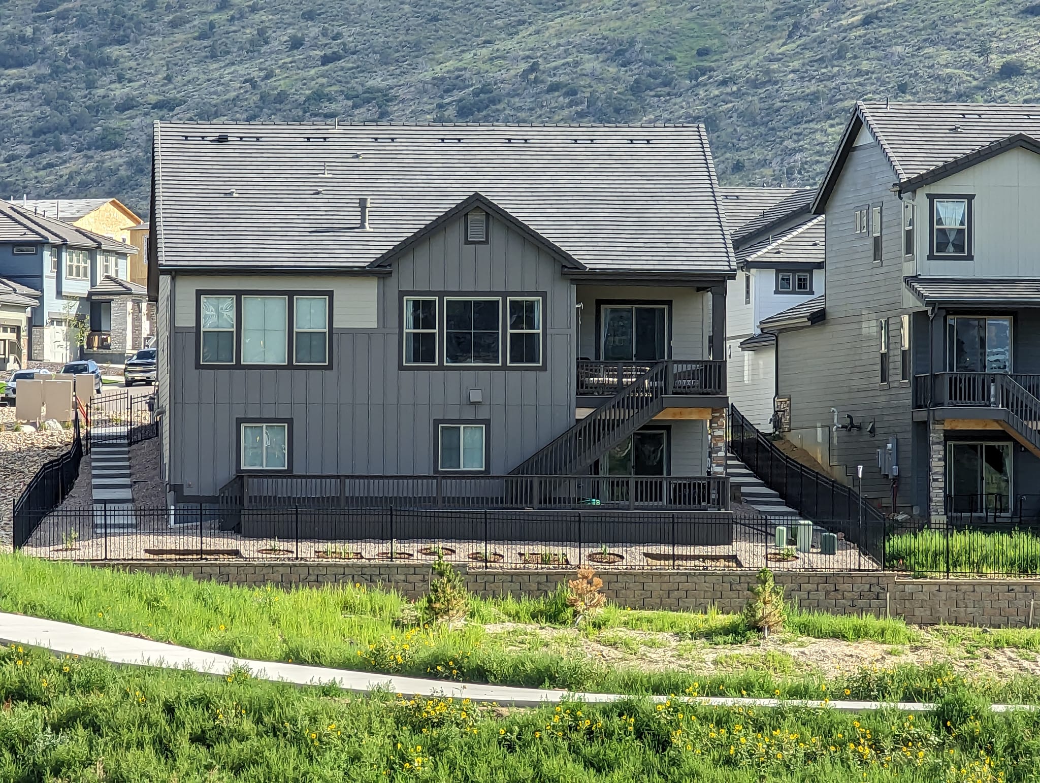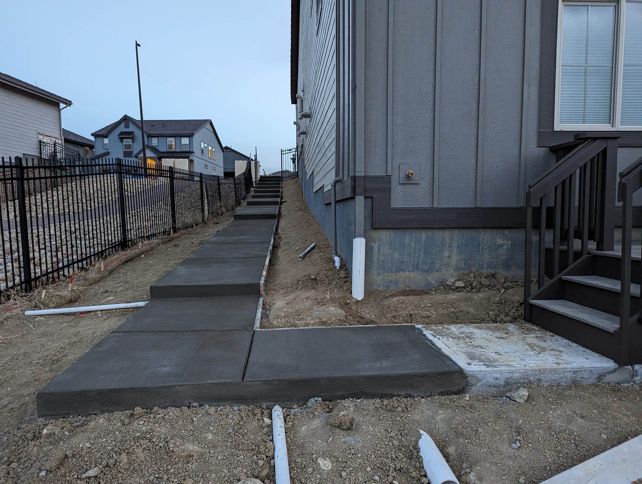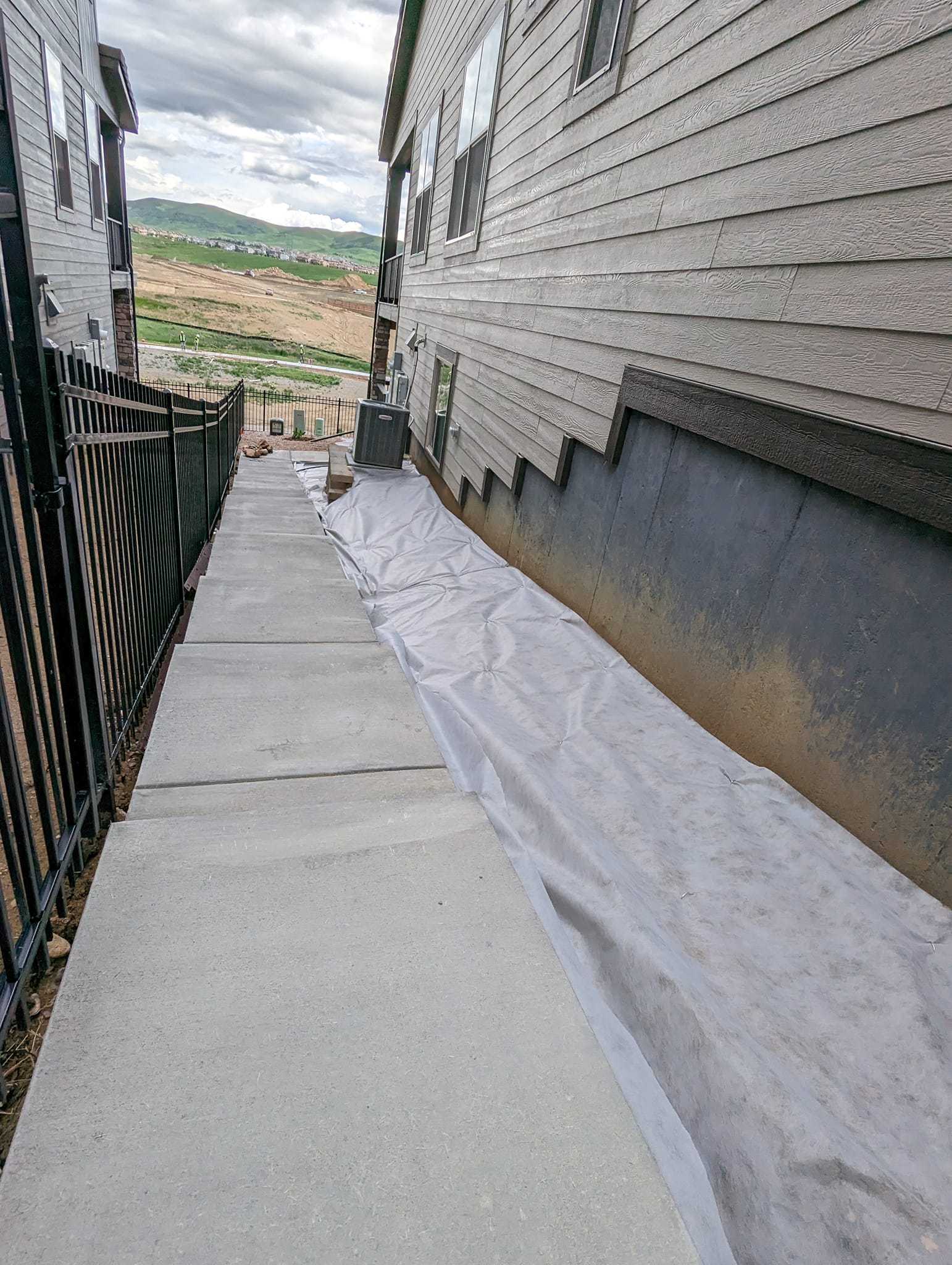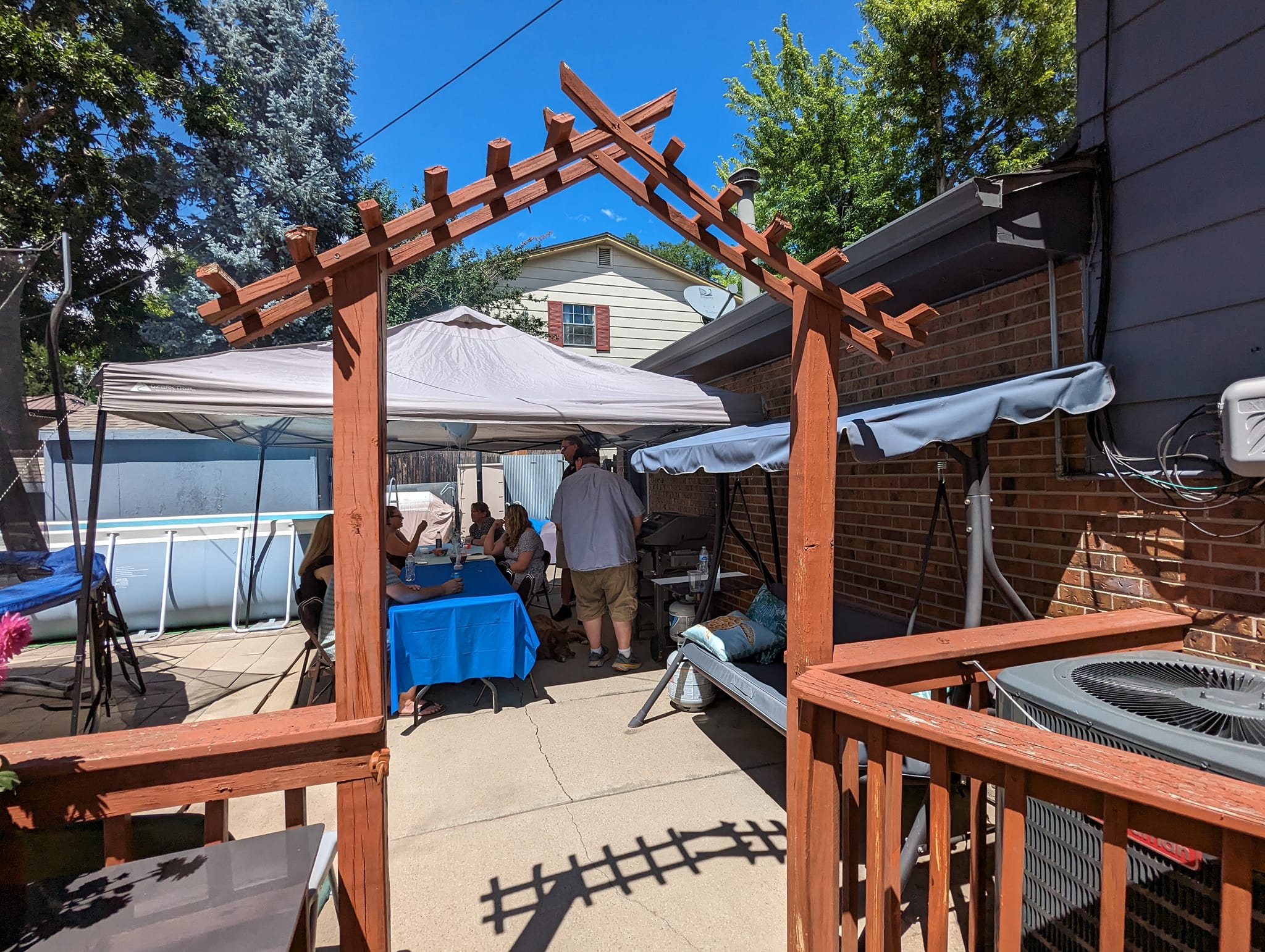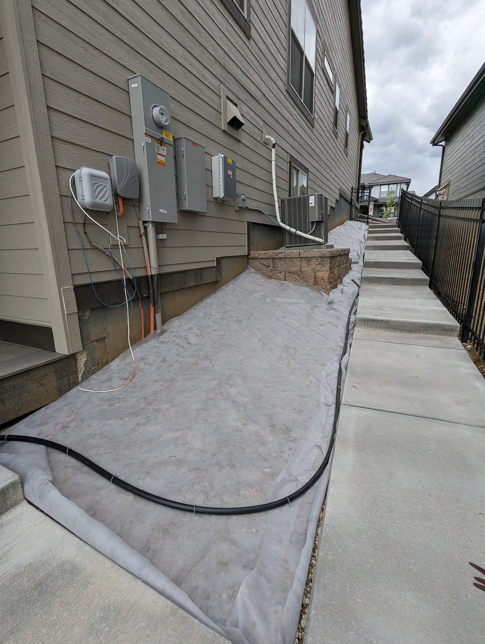 It's deck day! When we bought the house, the builder had landscaped the front yard, but the sides and back have been mud. Part 1 of our landscaping plan is to install a new deck in the back yard. It will come out from the basement door and wrap around the back of the house. (Foundation warranty and HOA rules are that we can't change the grade of the dirt, and it is a pretty steep slope, so we are going over the top with a deck in order to get some usable level ground)