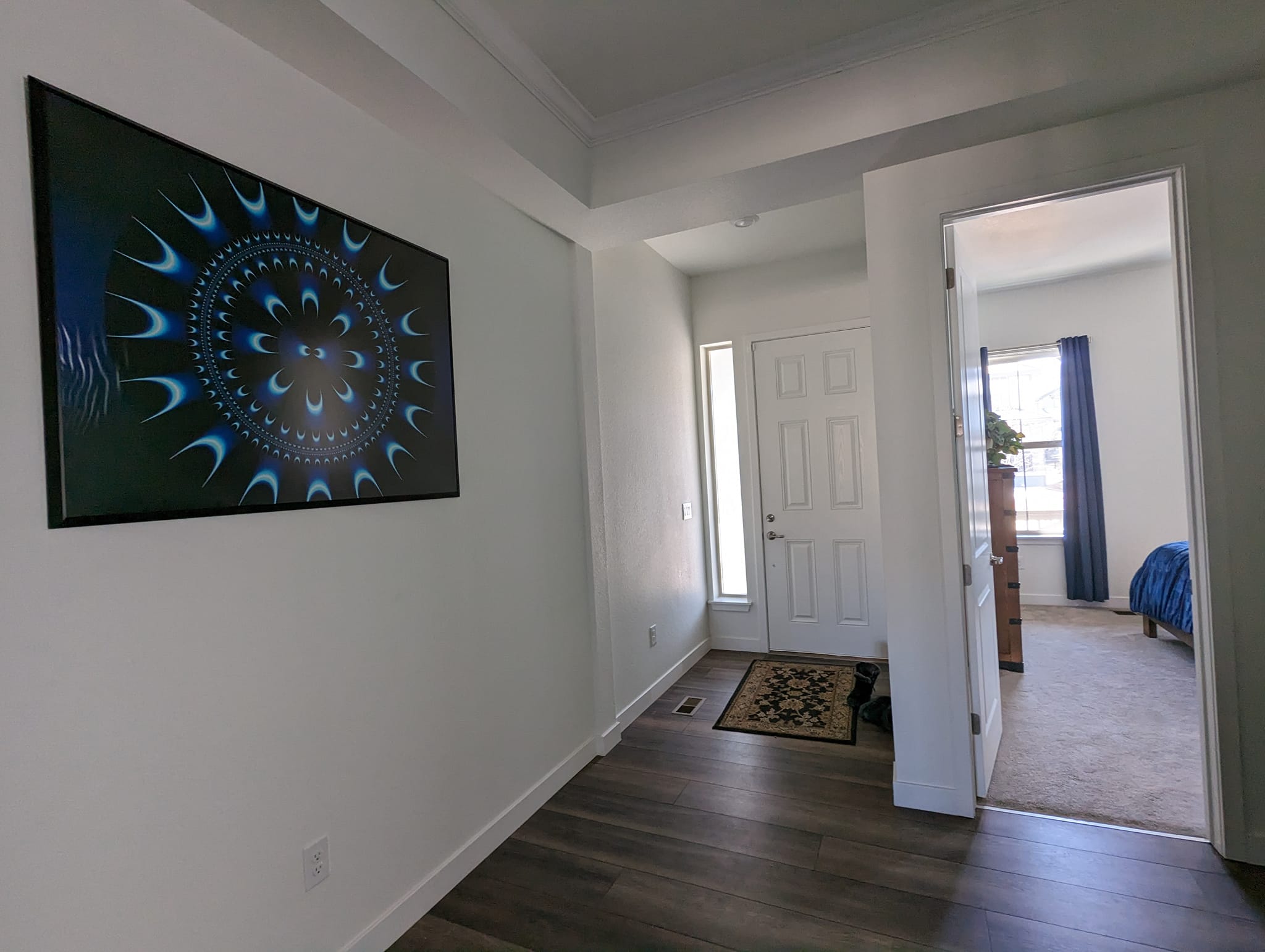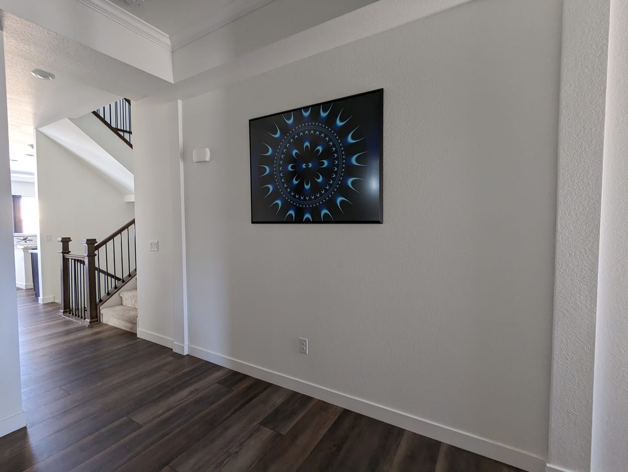 First piece of art hung in the new house. Am debating on putting a larger piece there and that one upstairs. Decorating is always an arduous process