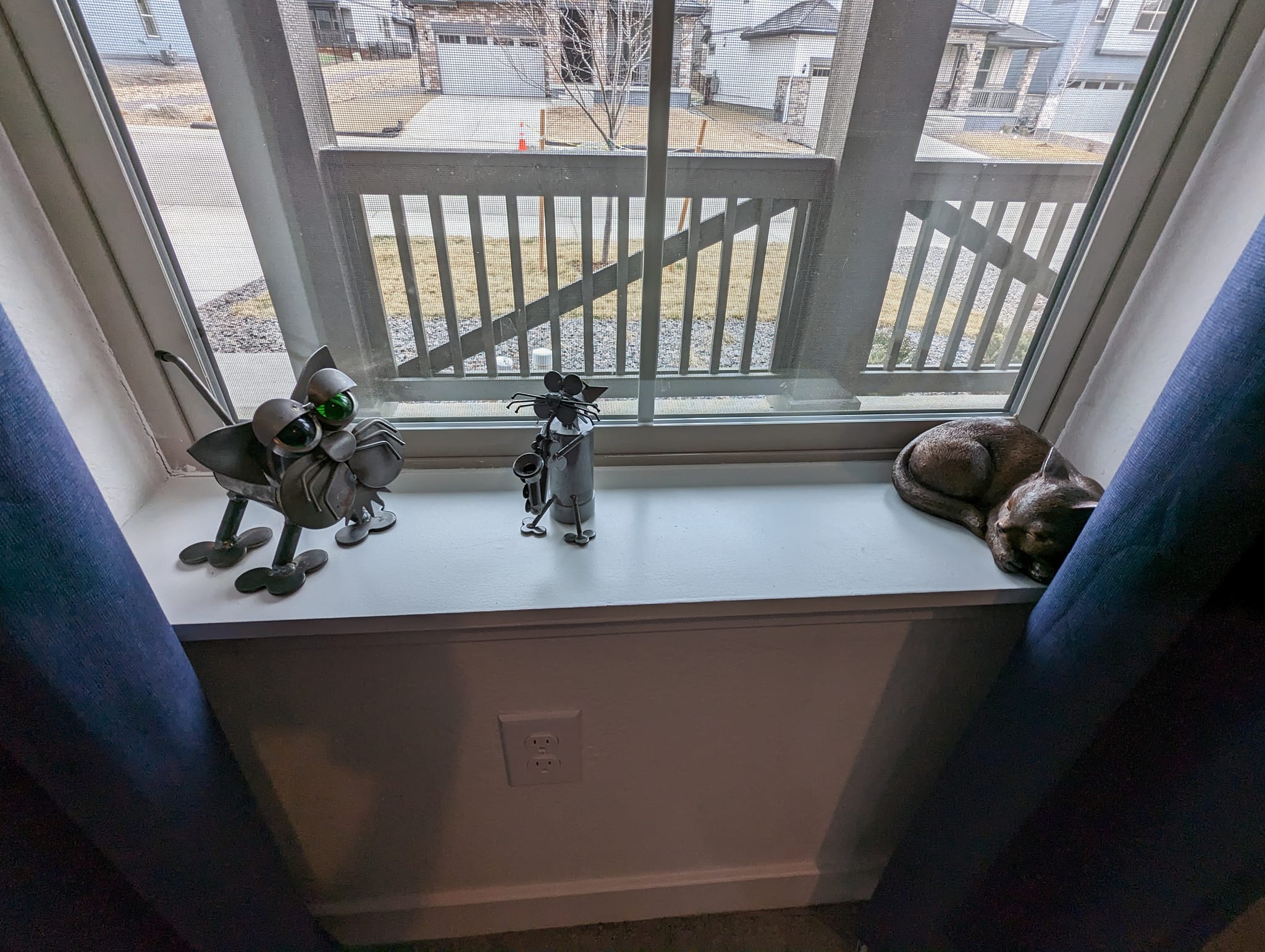 Cleaning day, put up the basement blinds, and we found a cricket! Busy afternoon...