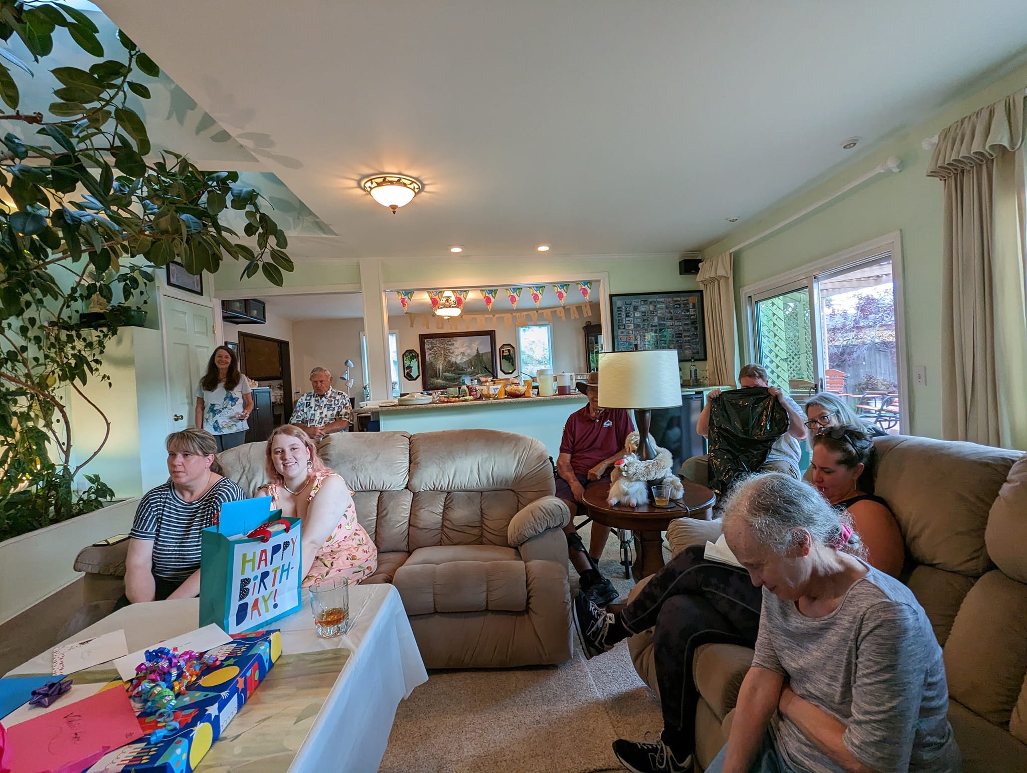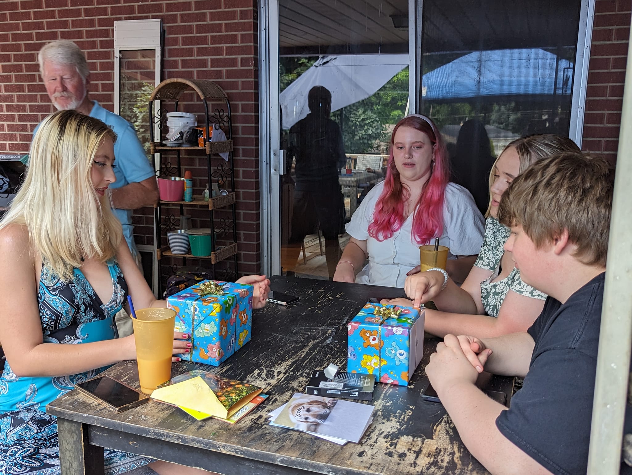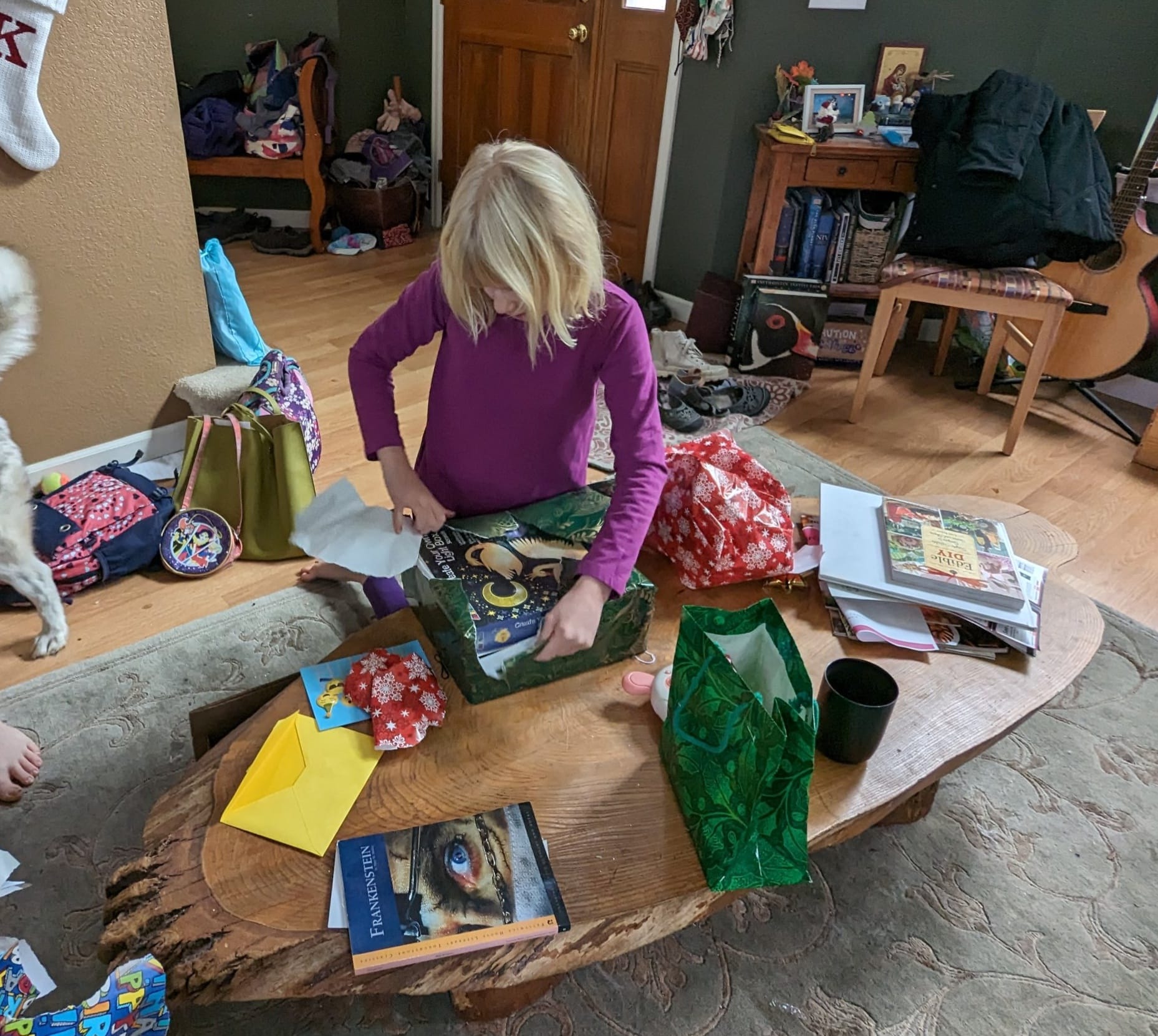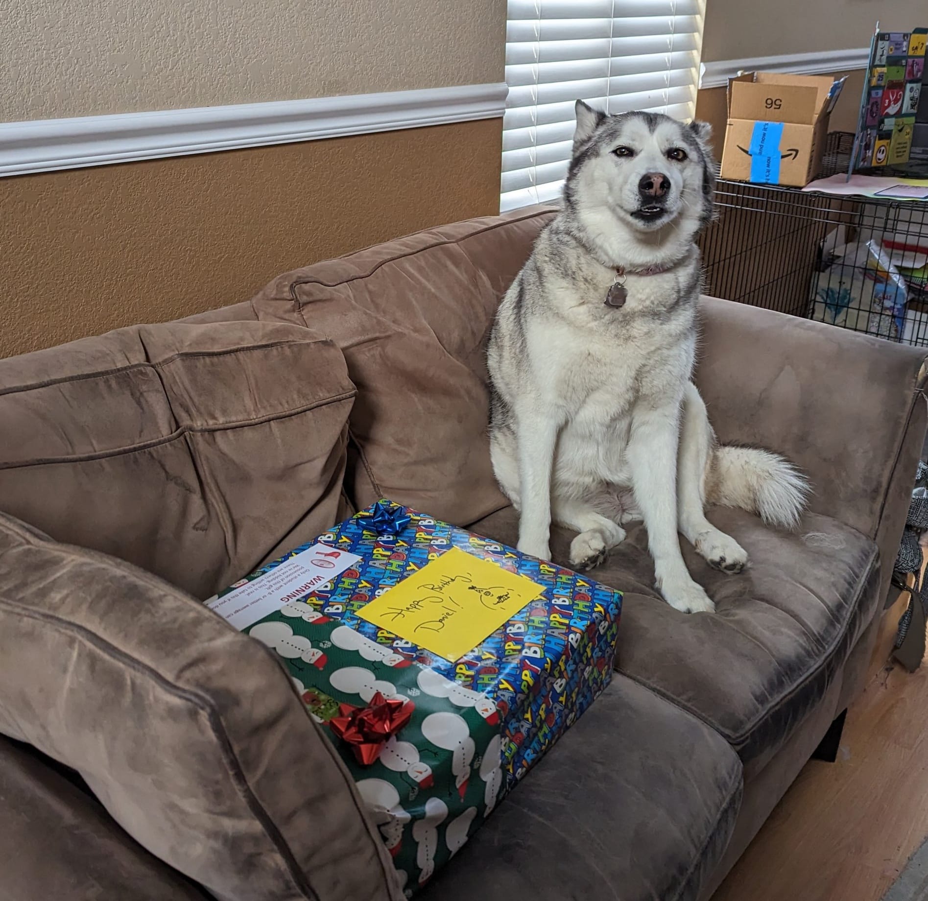 Happy birthday! Merry Christmas! Great to see Jarl, Christy, Daniel, and Katrina! And Laika, who tried to take possession of Daniel's present. ?? Daniel is getting older..... Now presents come in a single box for multiple occasions, but hopefully it's a good "router with two pieces of paper" (his description of the PS5 design). ??