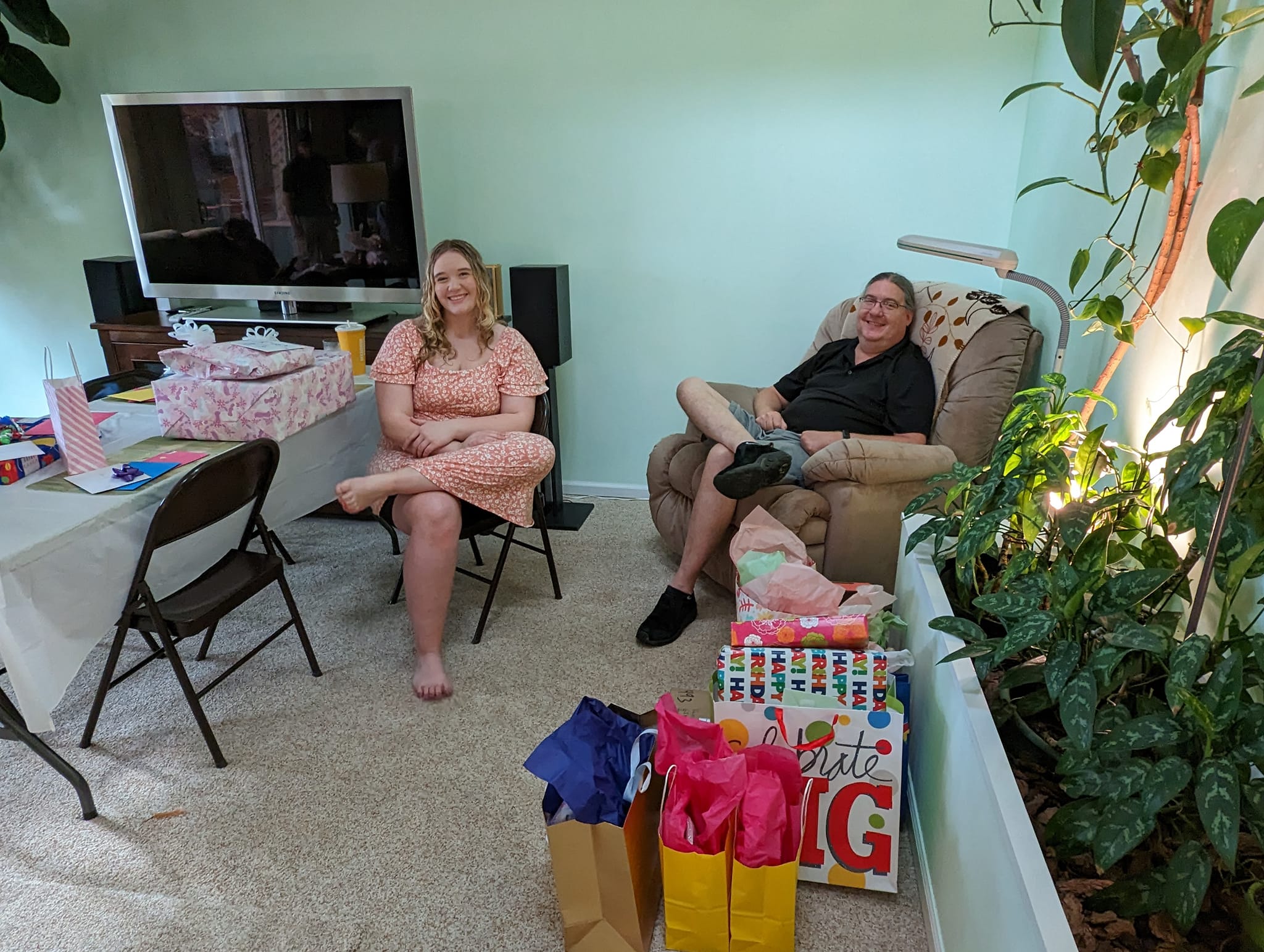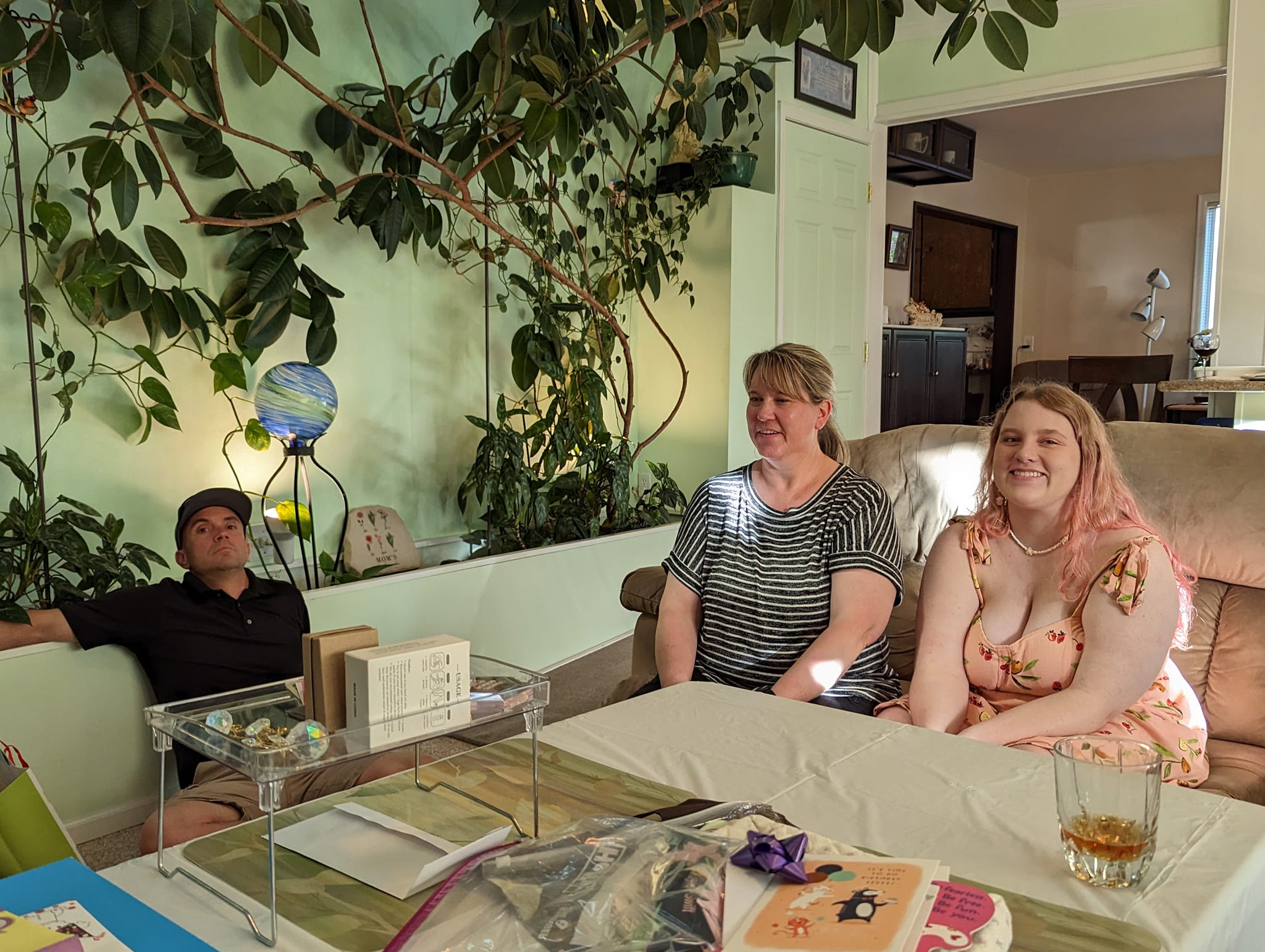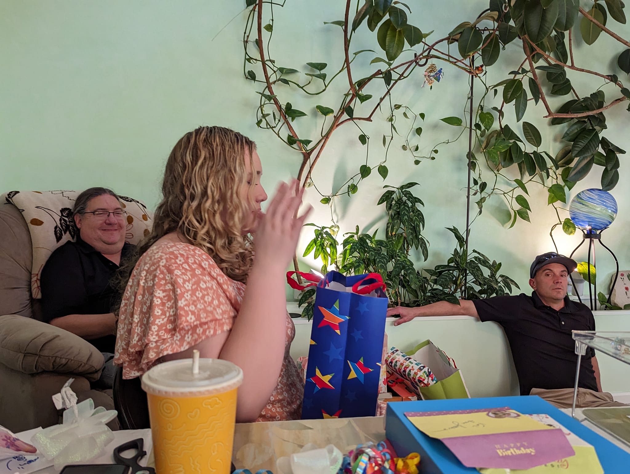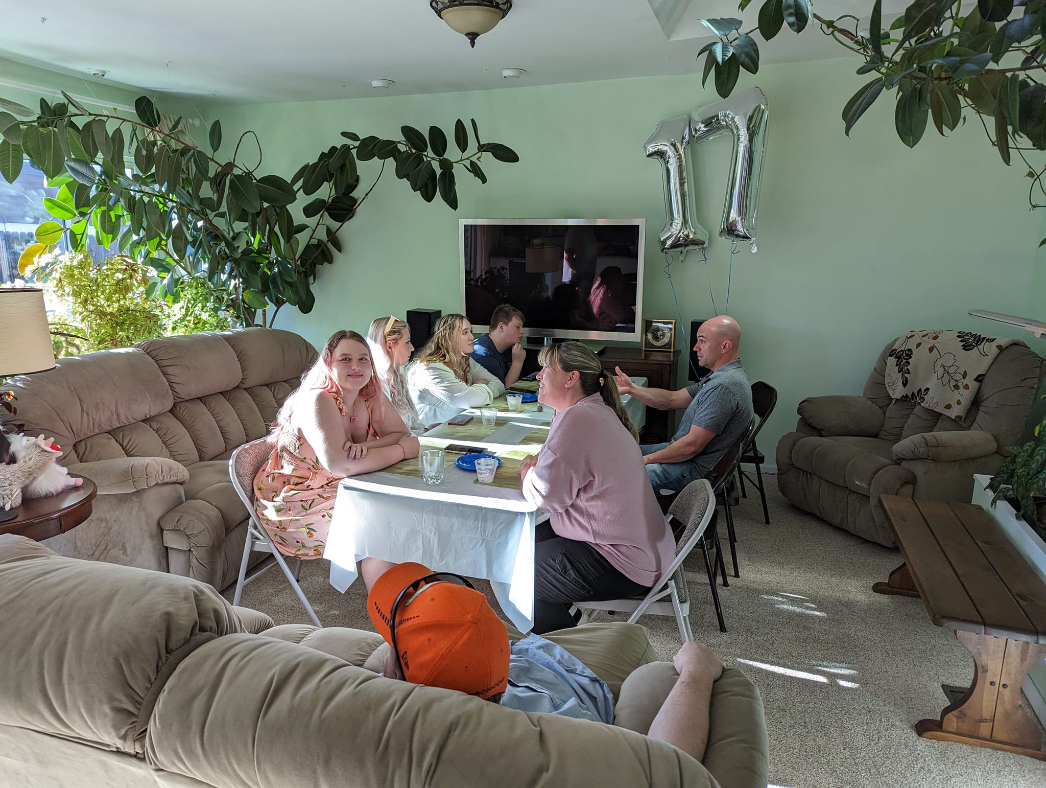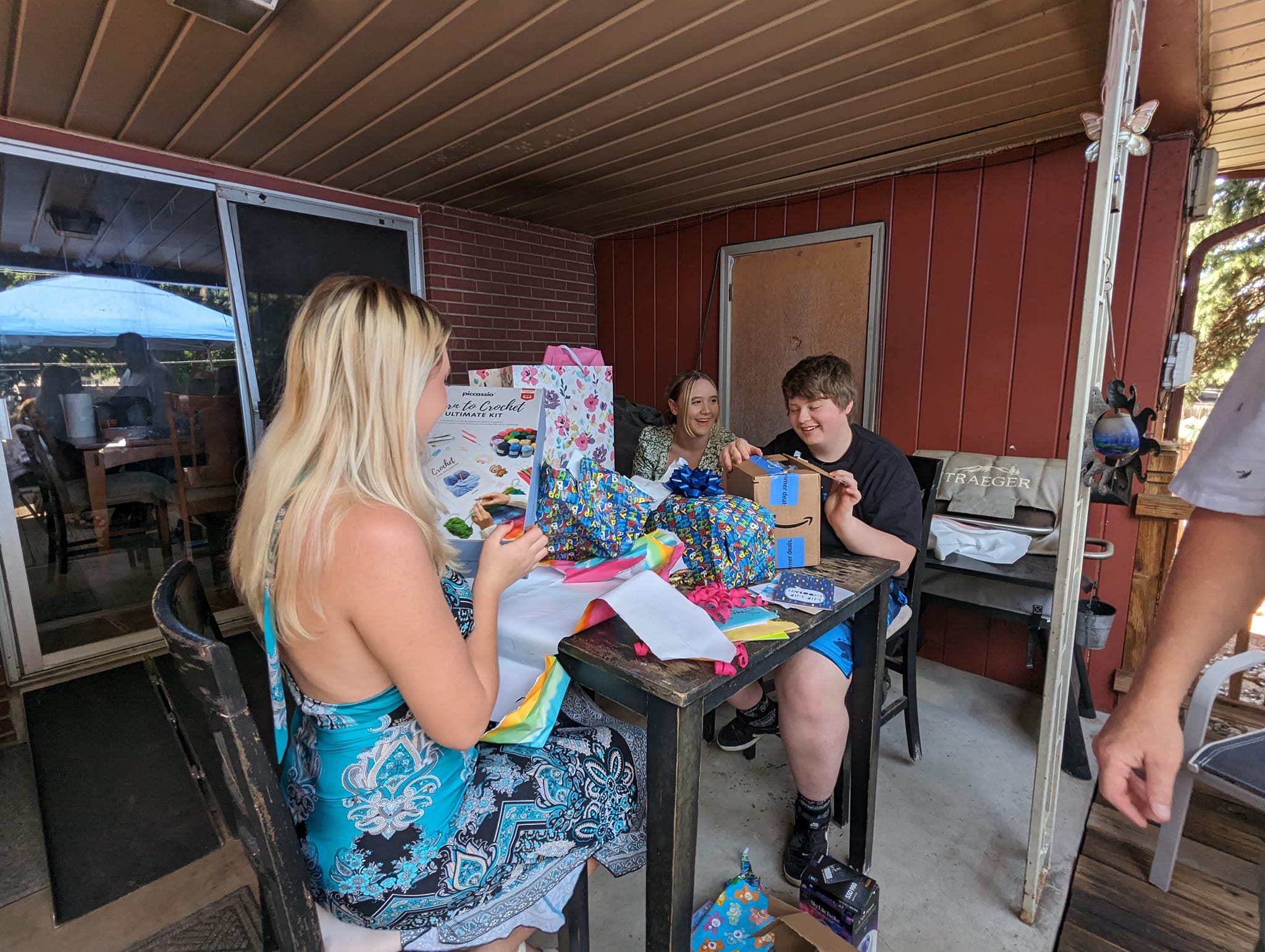 Happy birthday! Merry Christmas! Great to see Jarl, Christy, Daniel, and Katrina! And Laika, who tried to take possession of Daniel's present. ?? Daniel is getting older..... Now presents come in a single box for multiple occasions, but hopefully it's a good "router with two pieces of paper" (his description of the PS5 design). ??