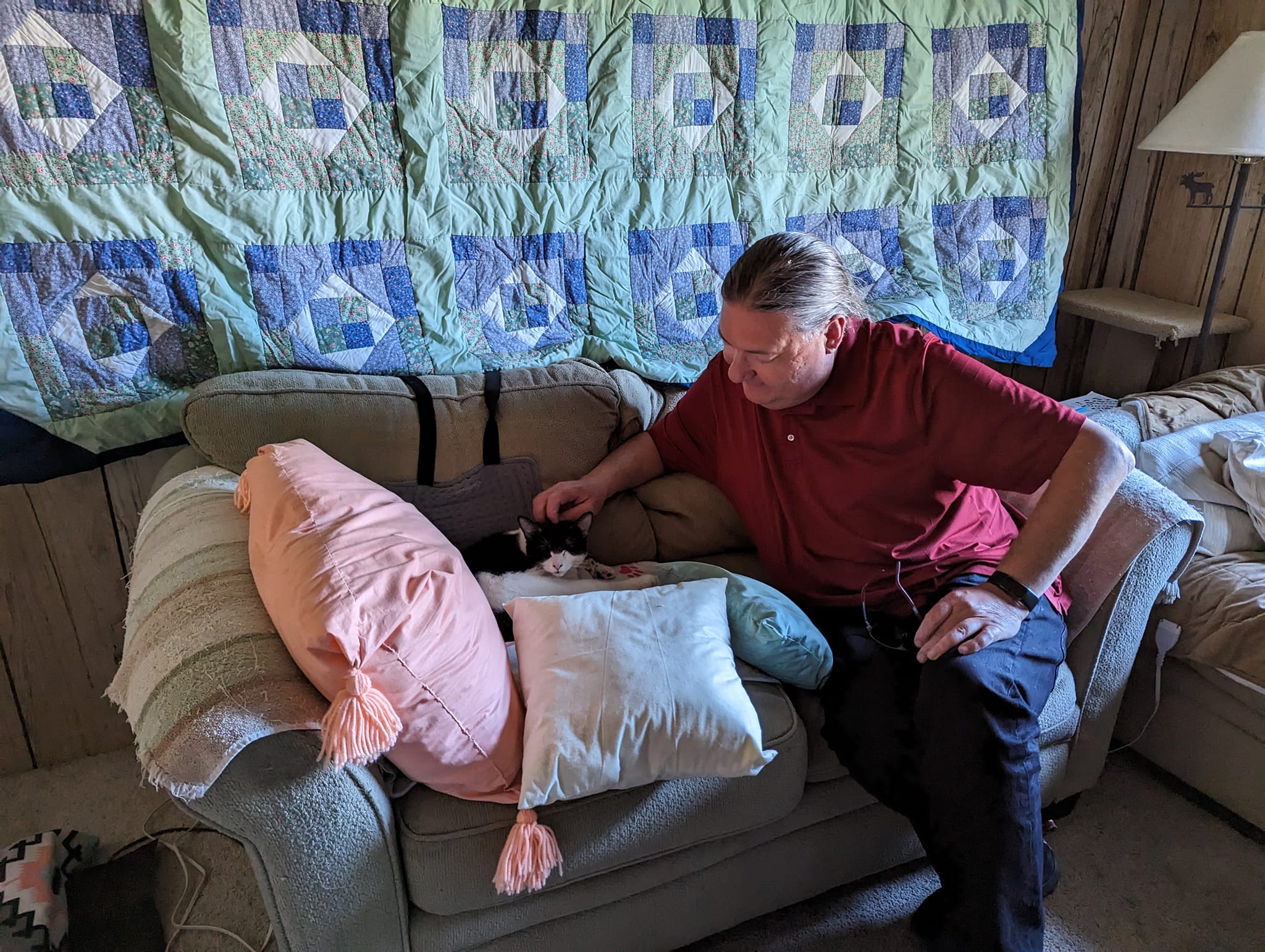 Ziggy is happy to have Mike home and happy to have me back in the office.