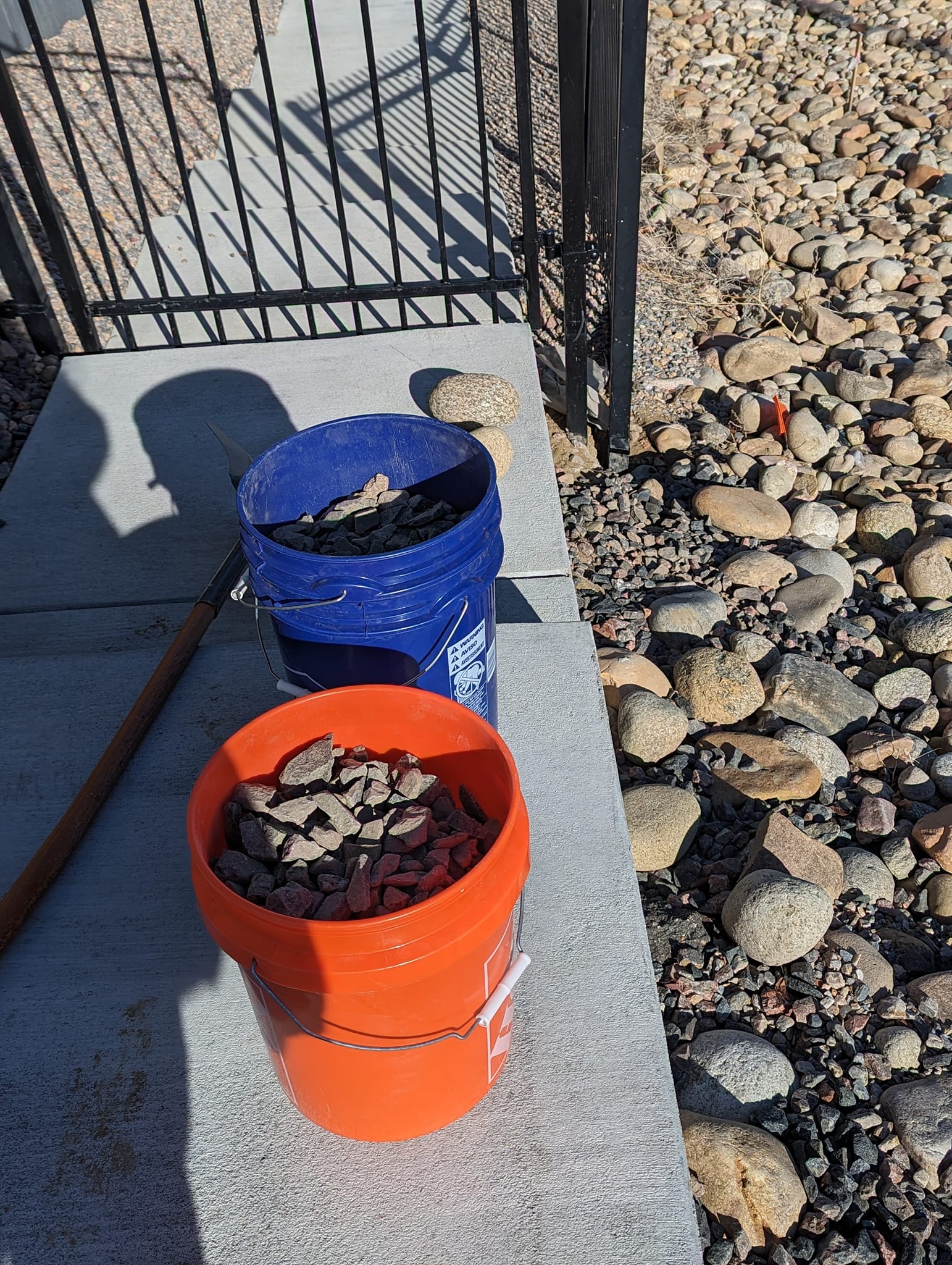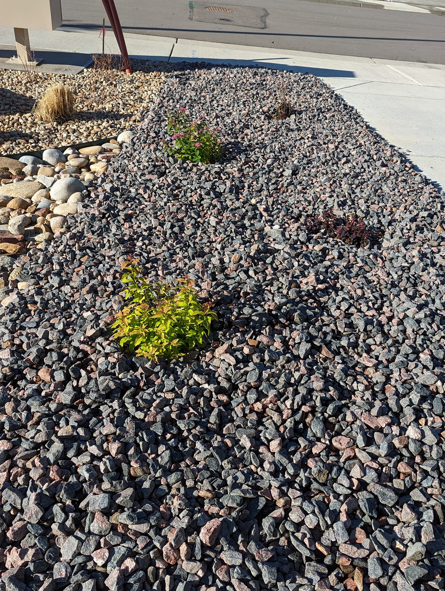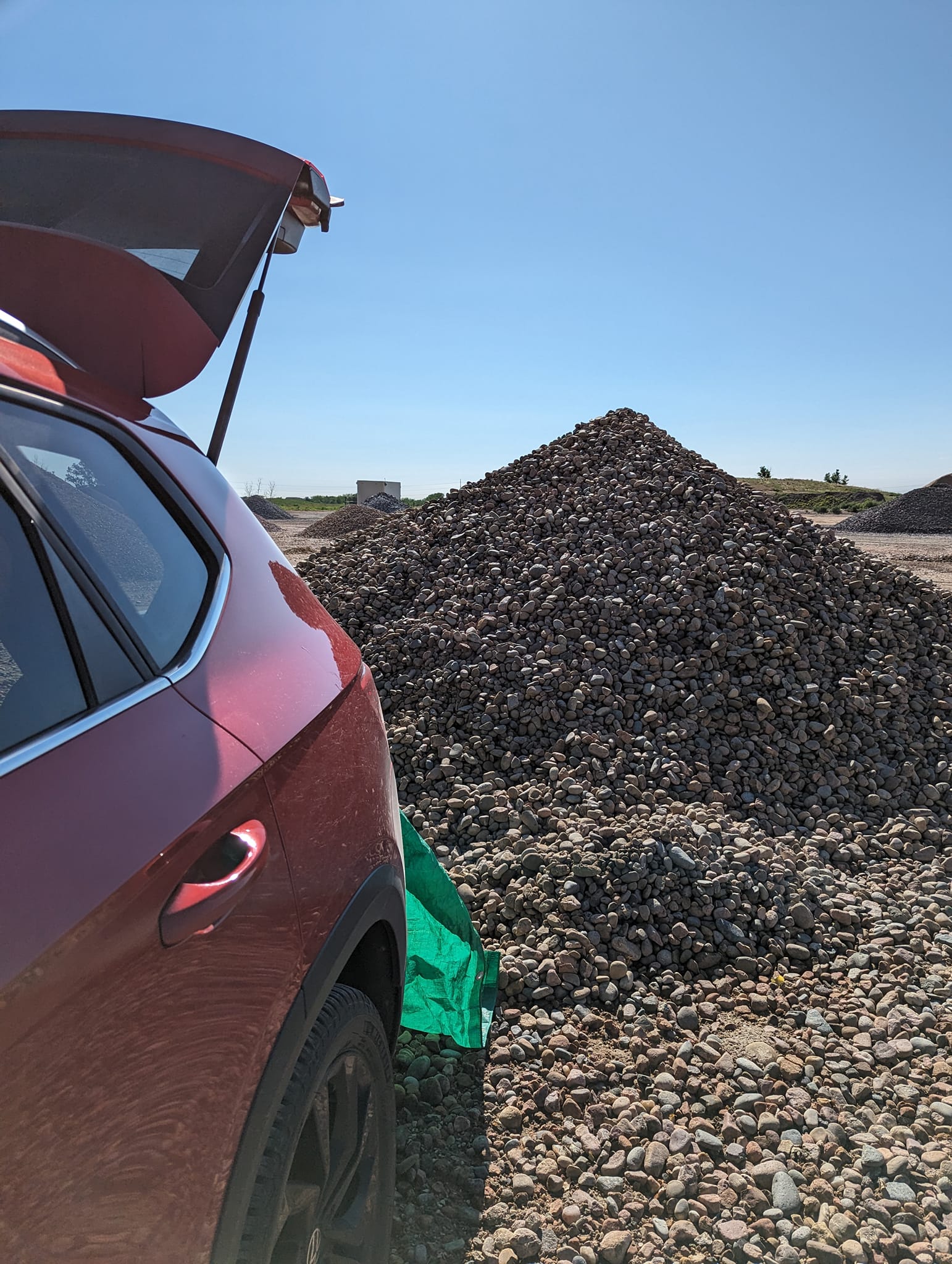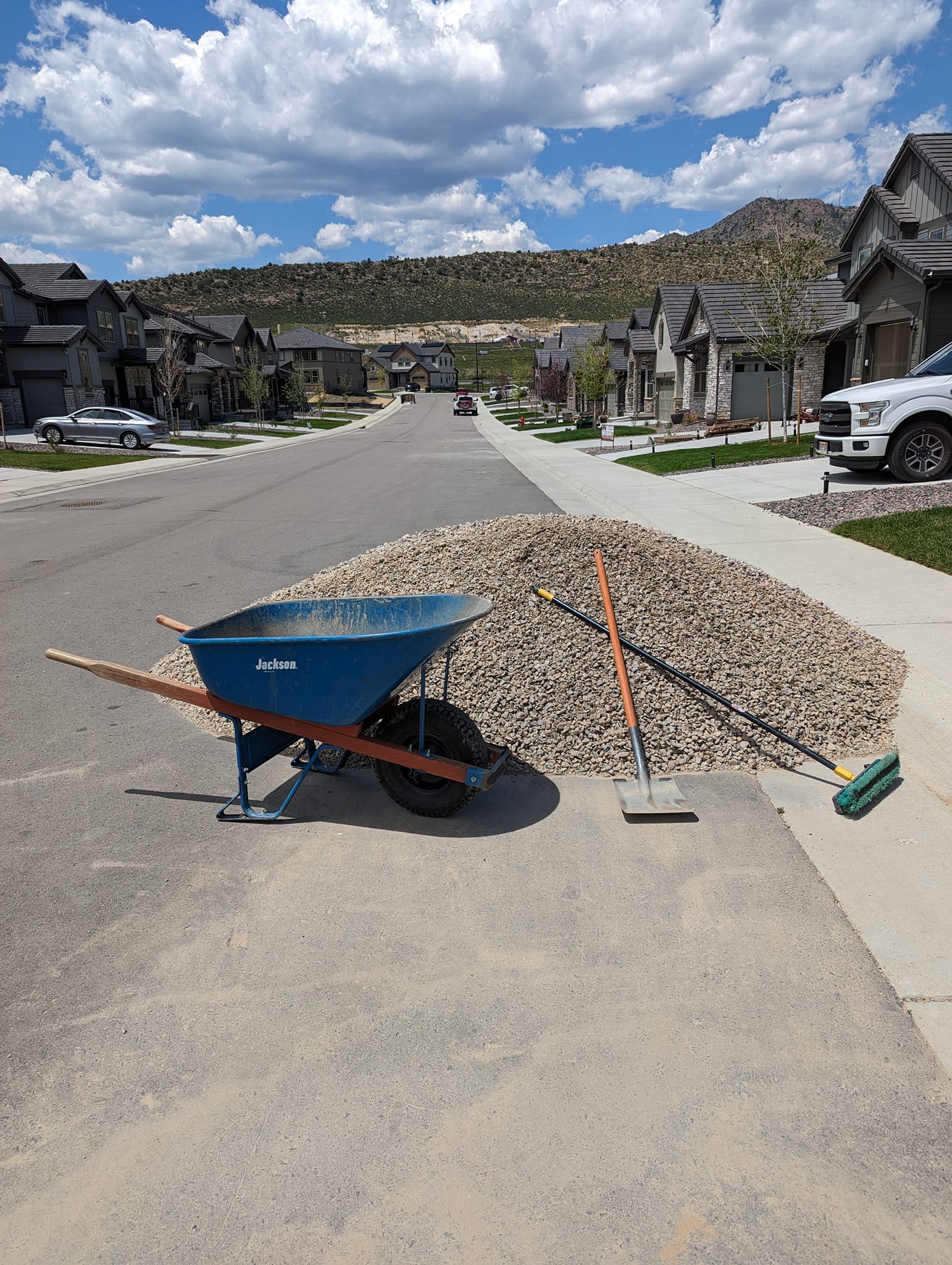 A little bit of landscaping cleanup this morning, which included a very windy trip to Pioneer to get some rock! The spot where the HOA post was fixed is now all rocked up. ??