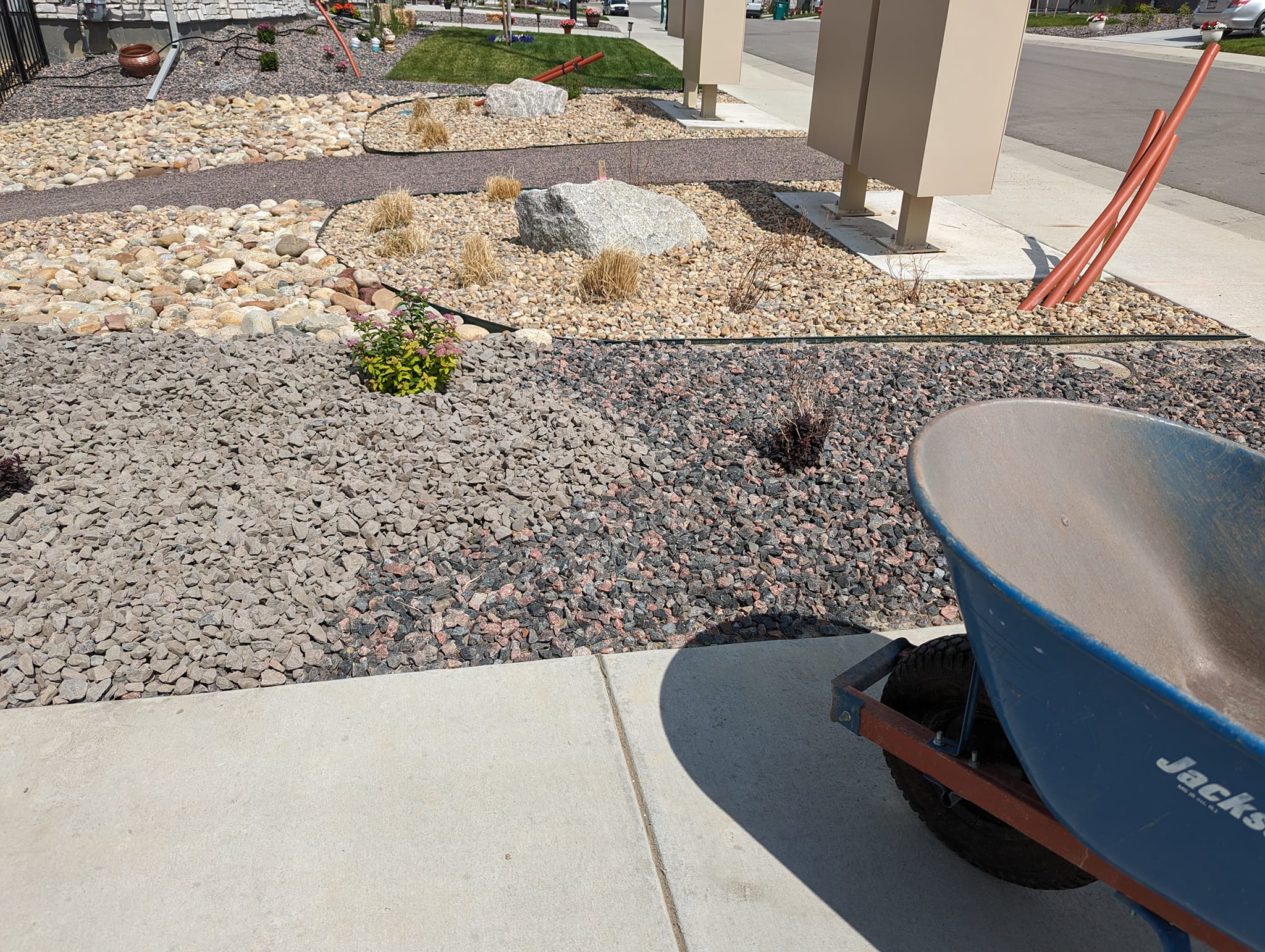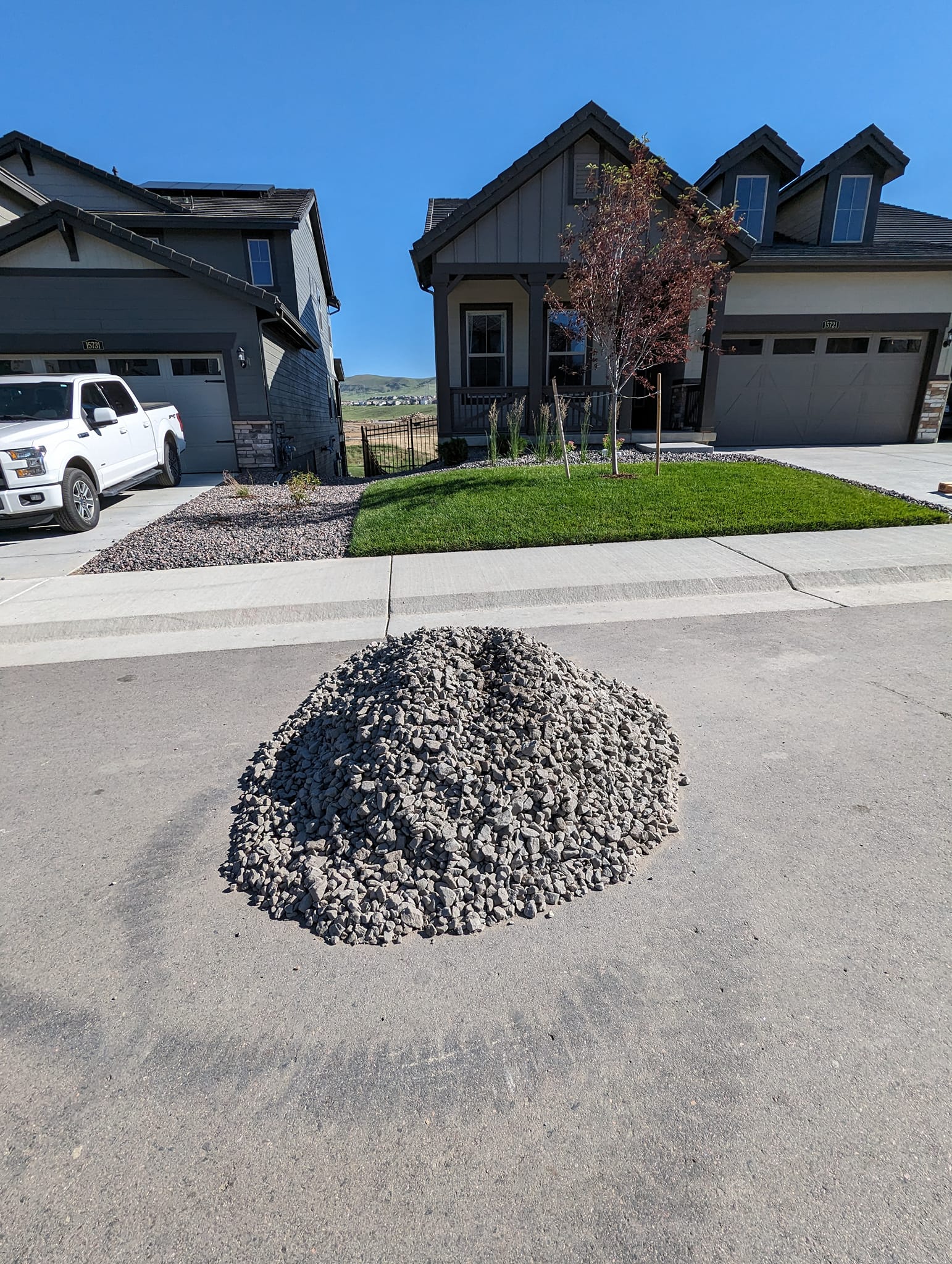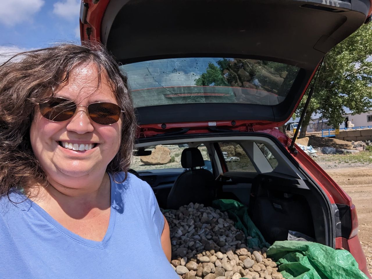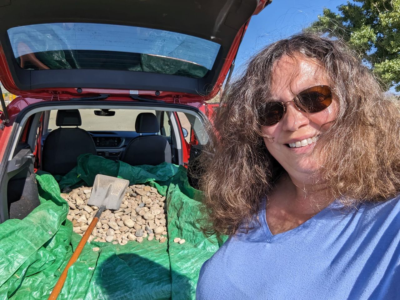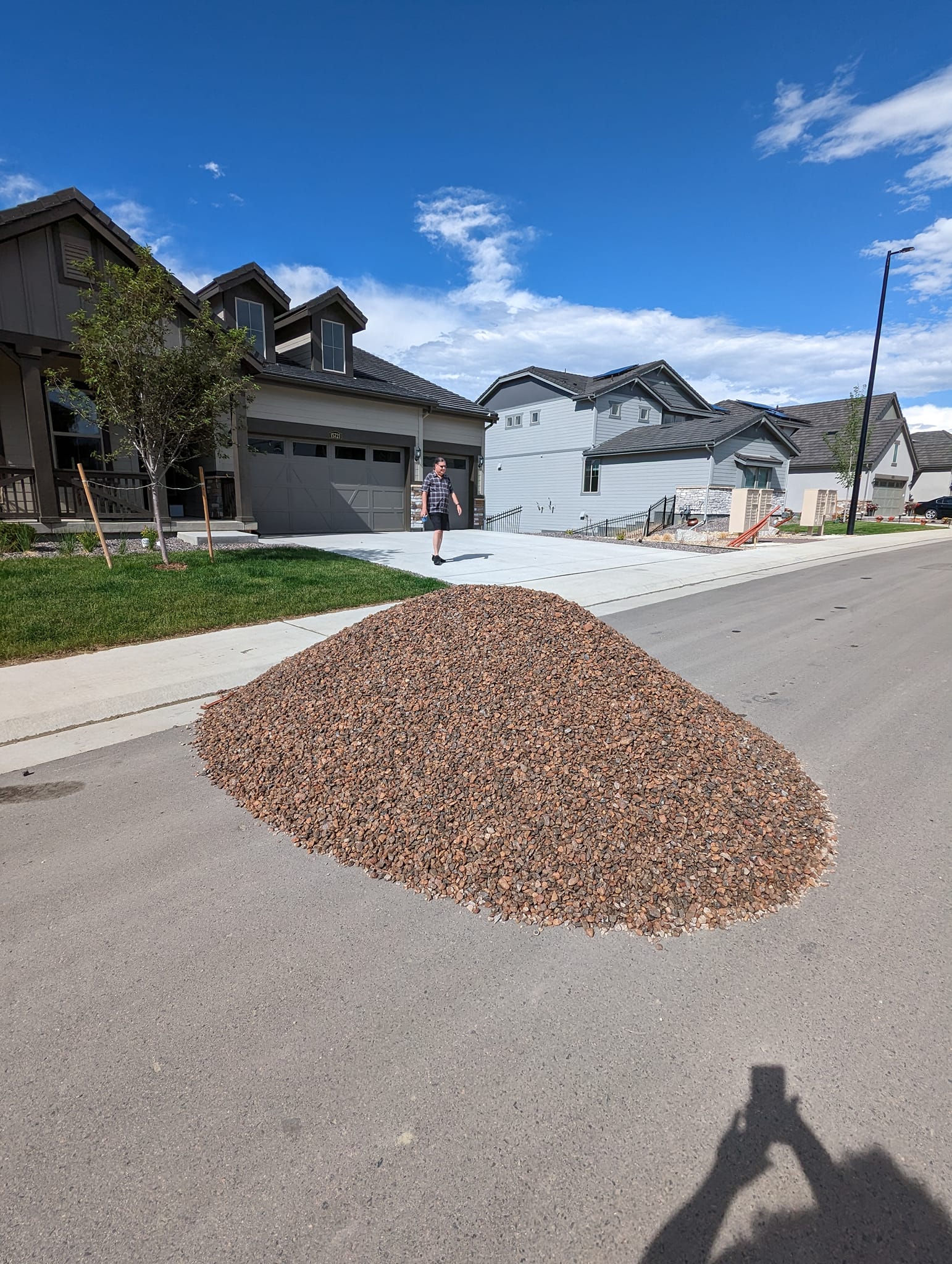 A little bit of landscaping cleanup this morning, which included a very windy trip to Pioneer to get some rock! The spot where the HOA post was fixed is now all rocked up. ??