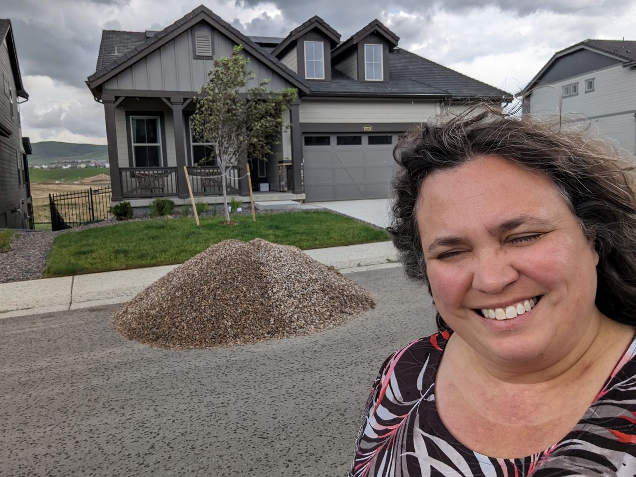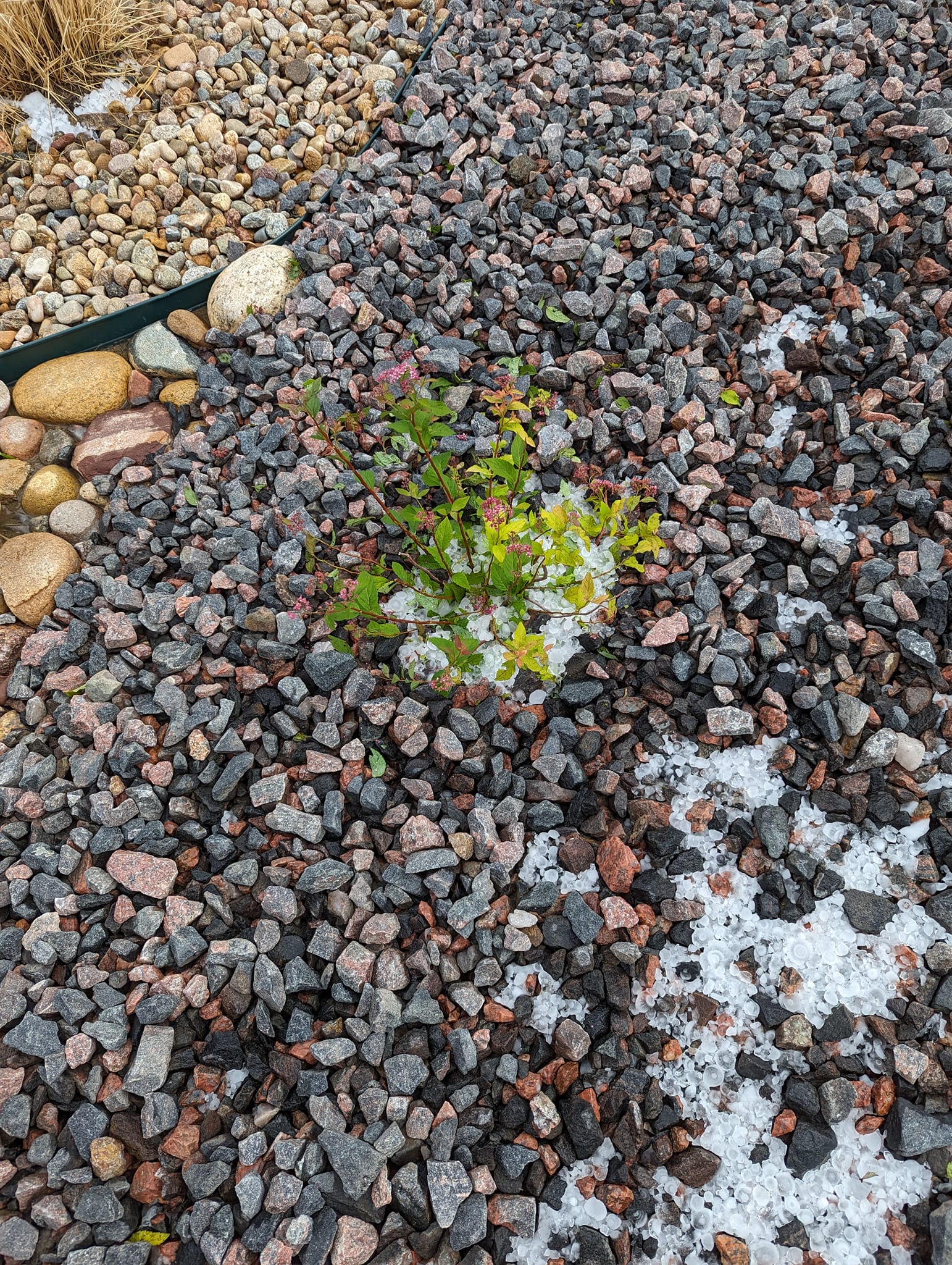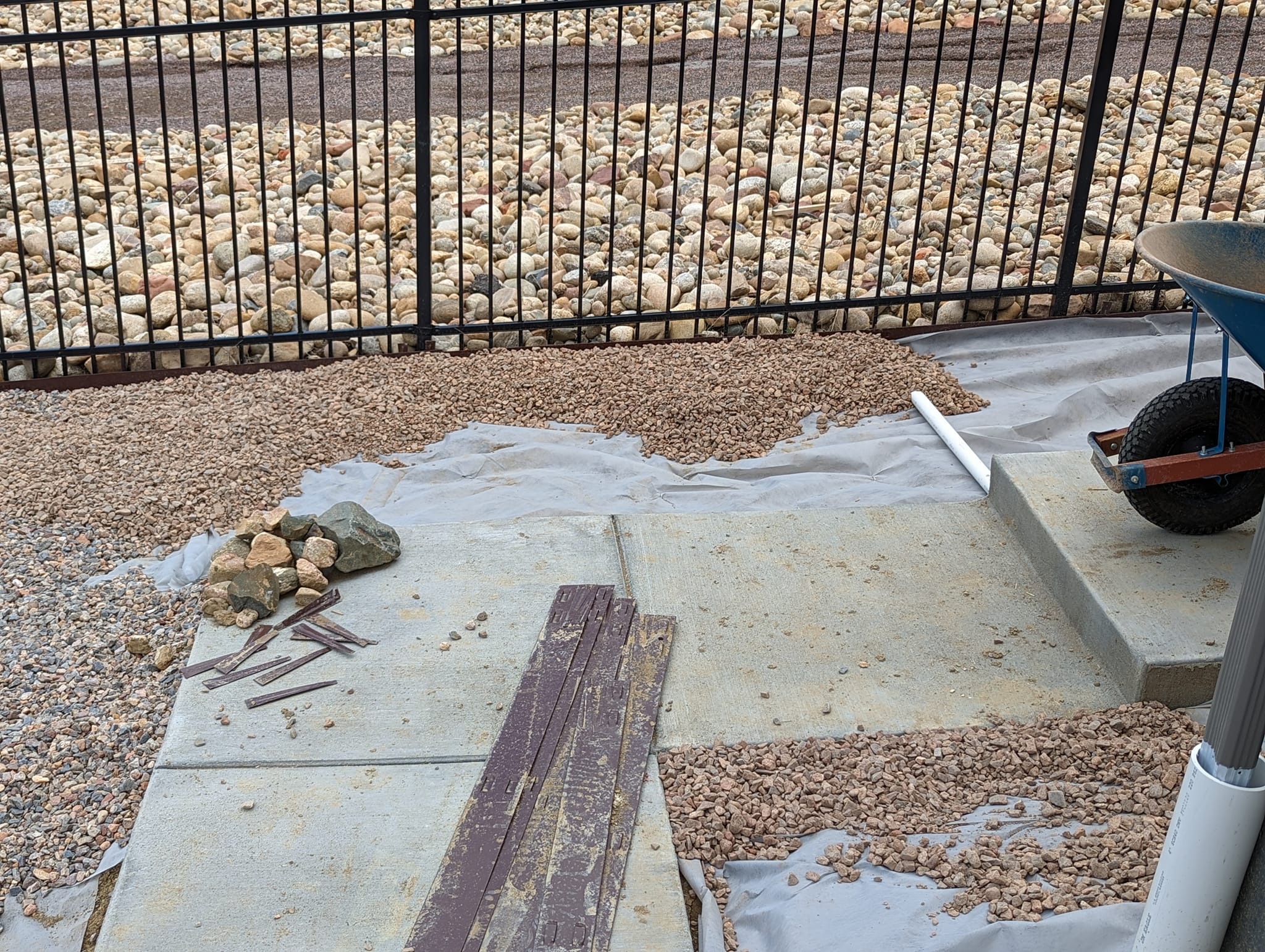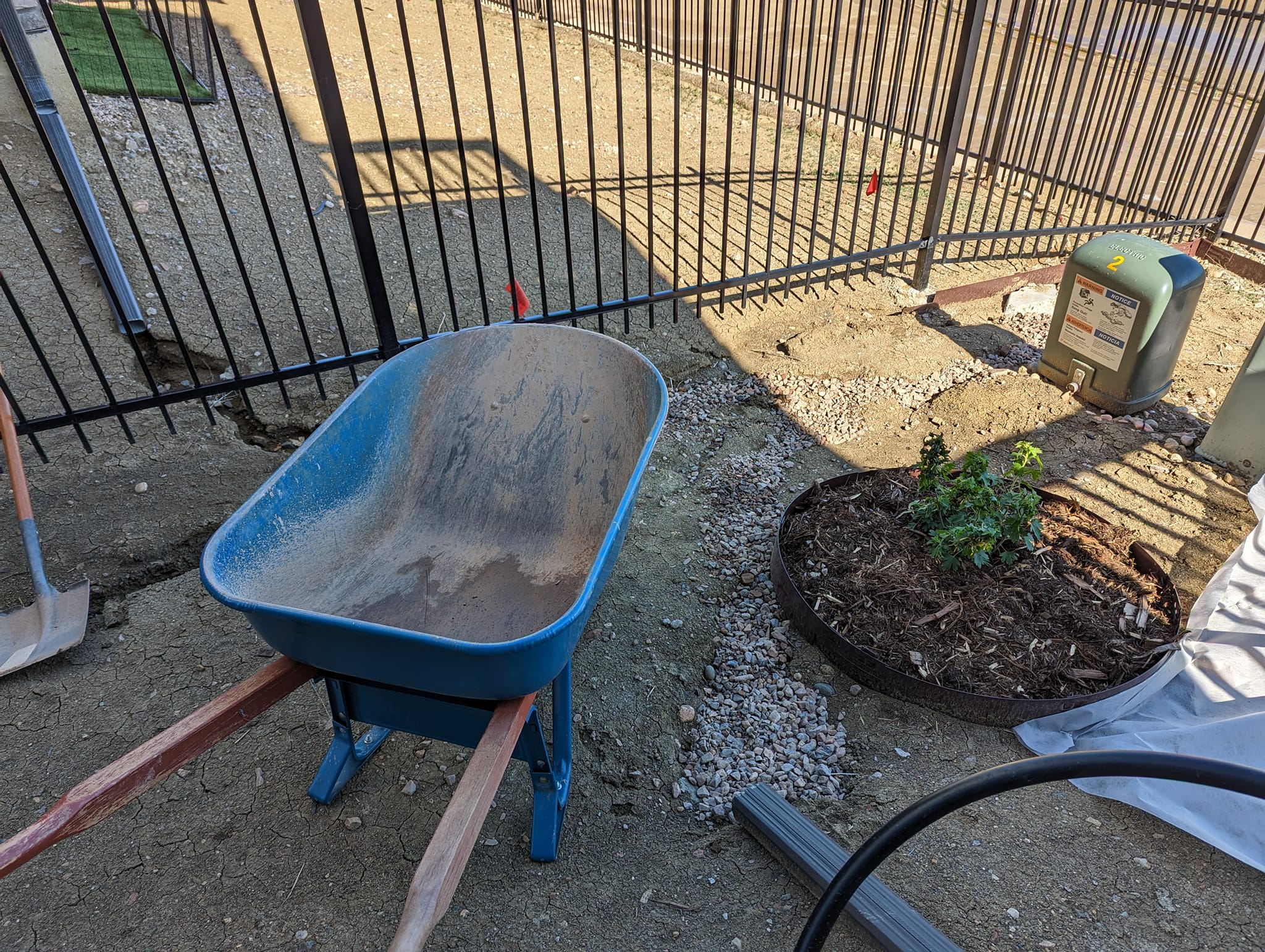 A little bit of landscaping cleanup this morning, which included a very windy trip to Pioneer to get some rock! The spot where the HOA post was fixed is now all rocked up. ??