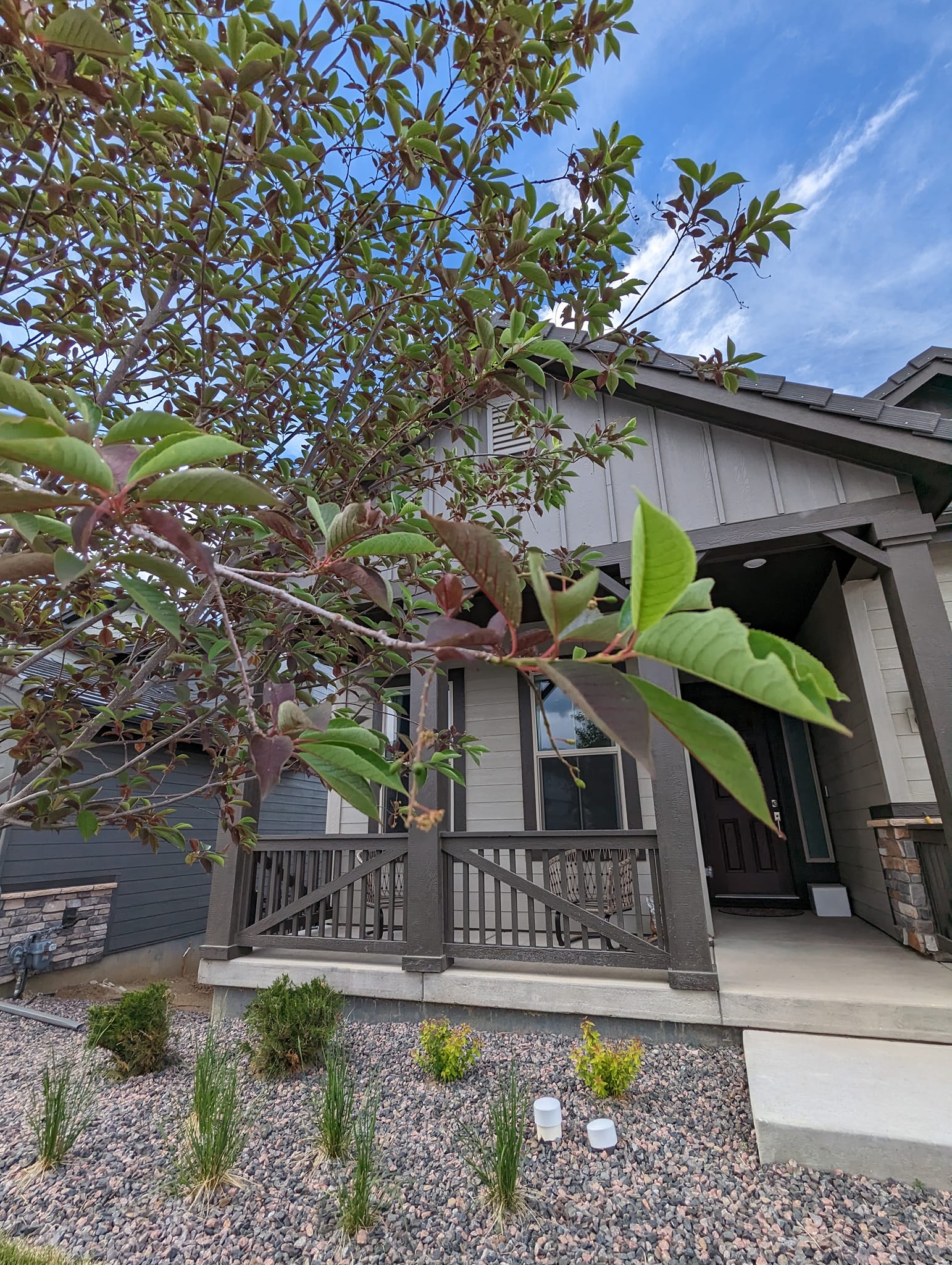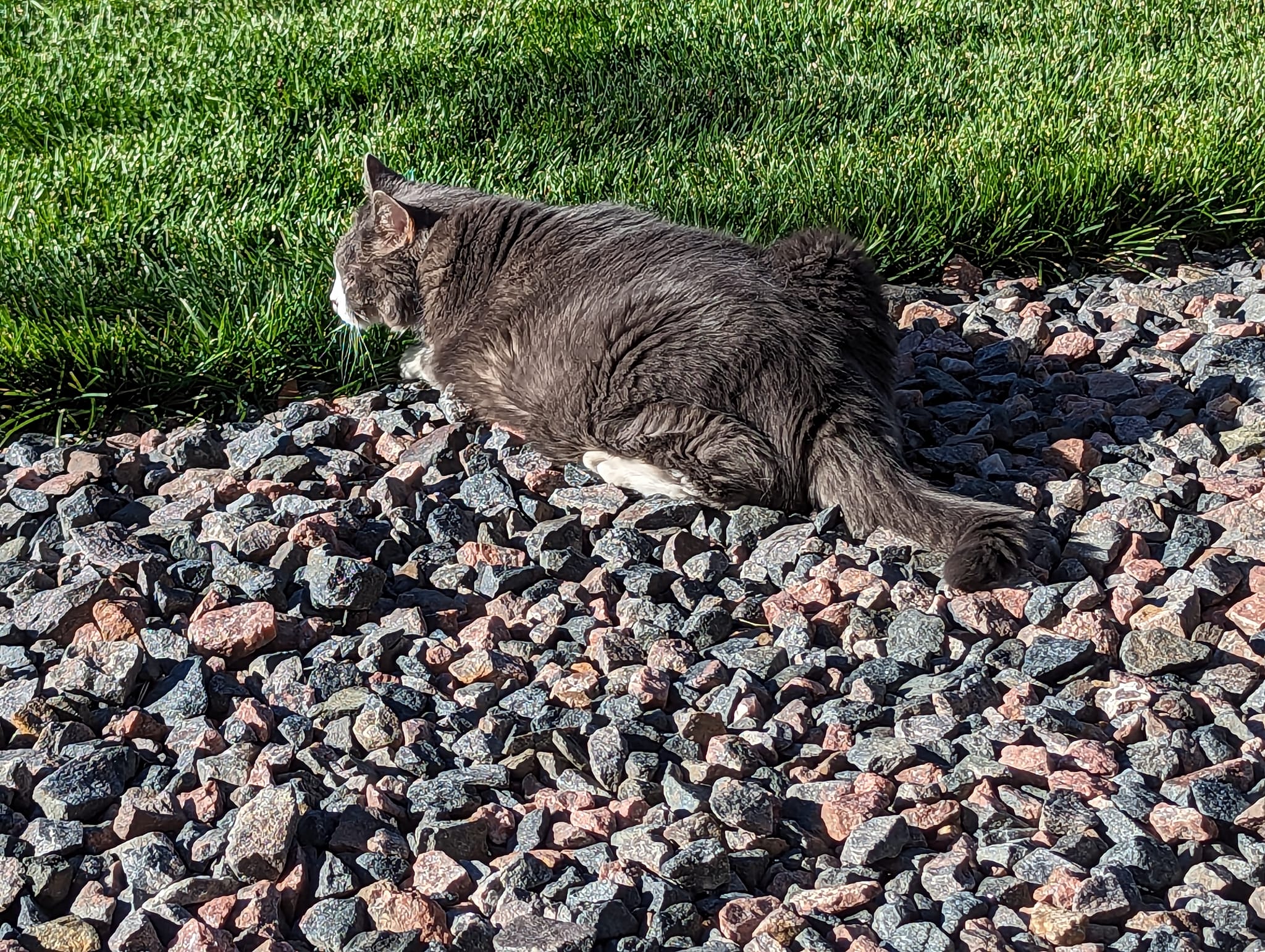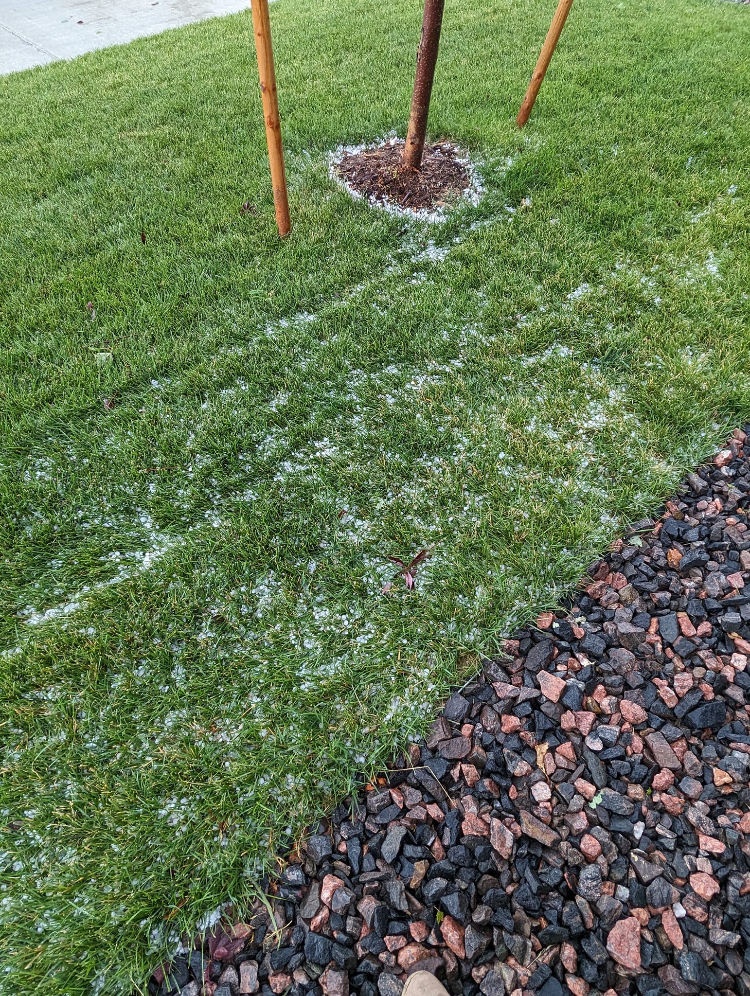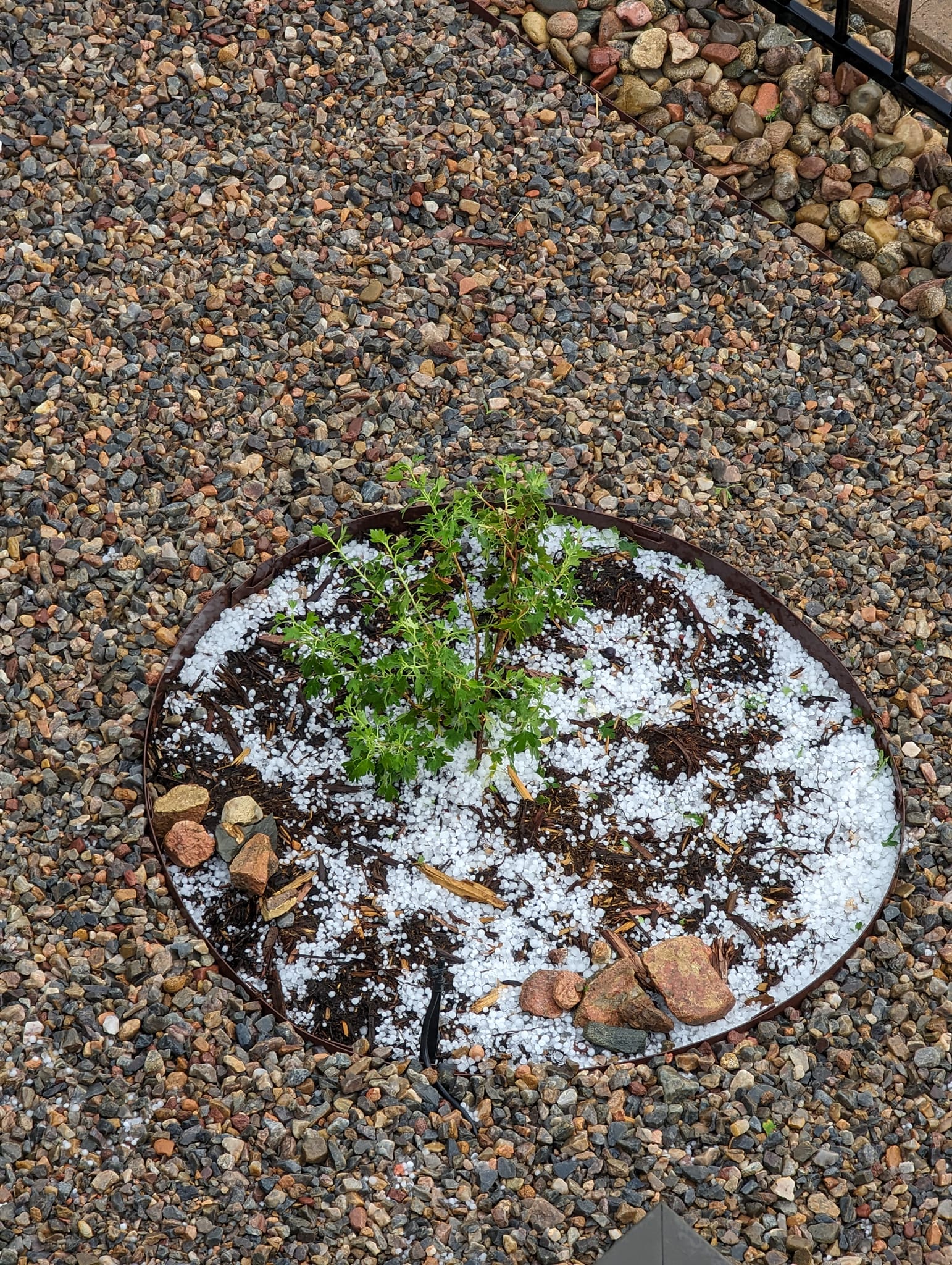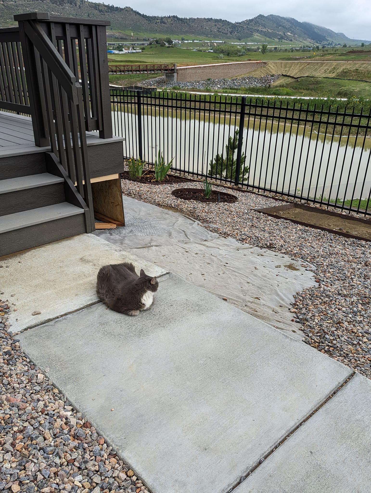 A little bit of landscaping cleanup this morning, which included a very windy trip to Pioneer to get some rock! The spot where the HOA post was fixed is now all rocked up. ??