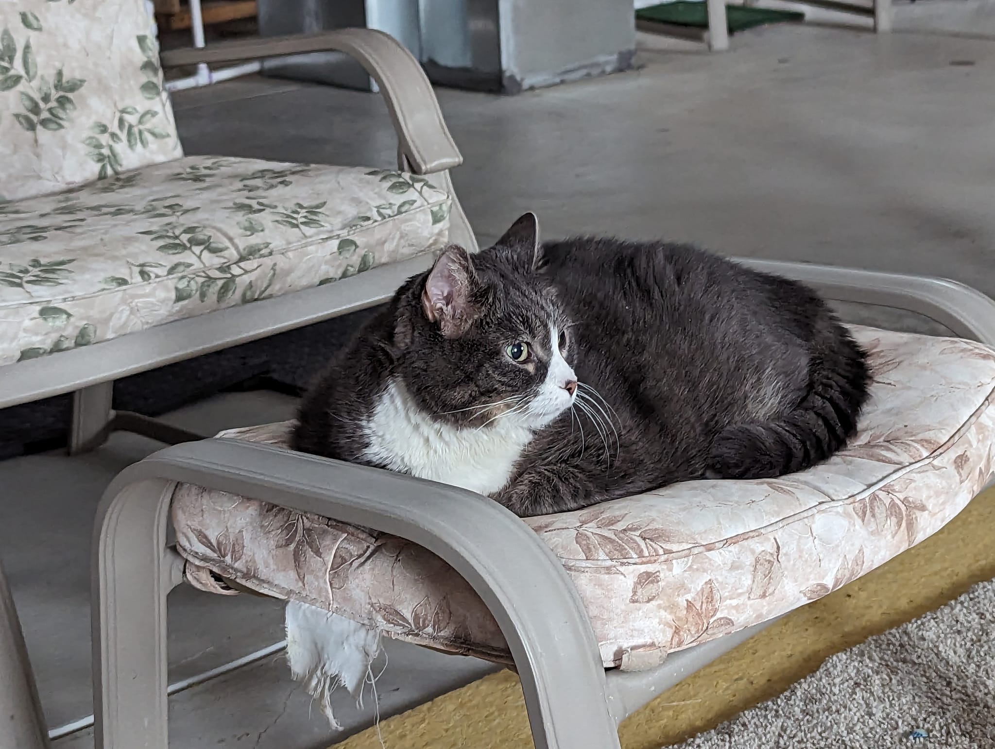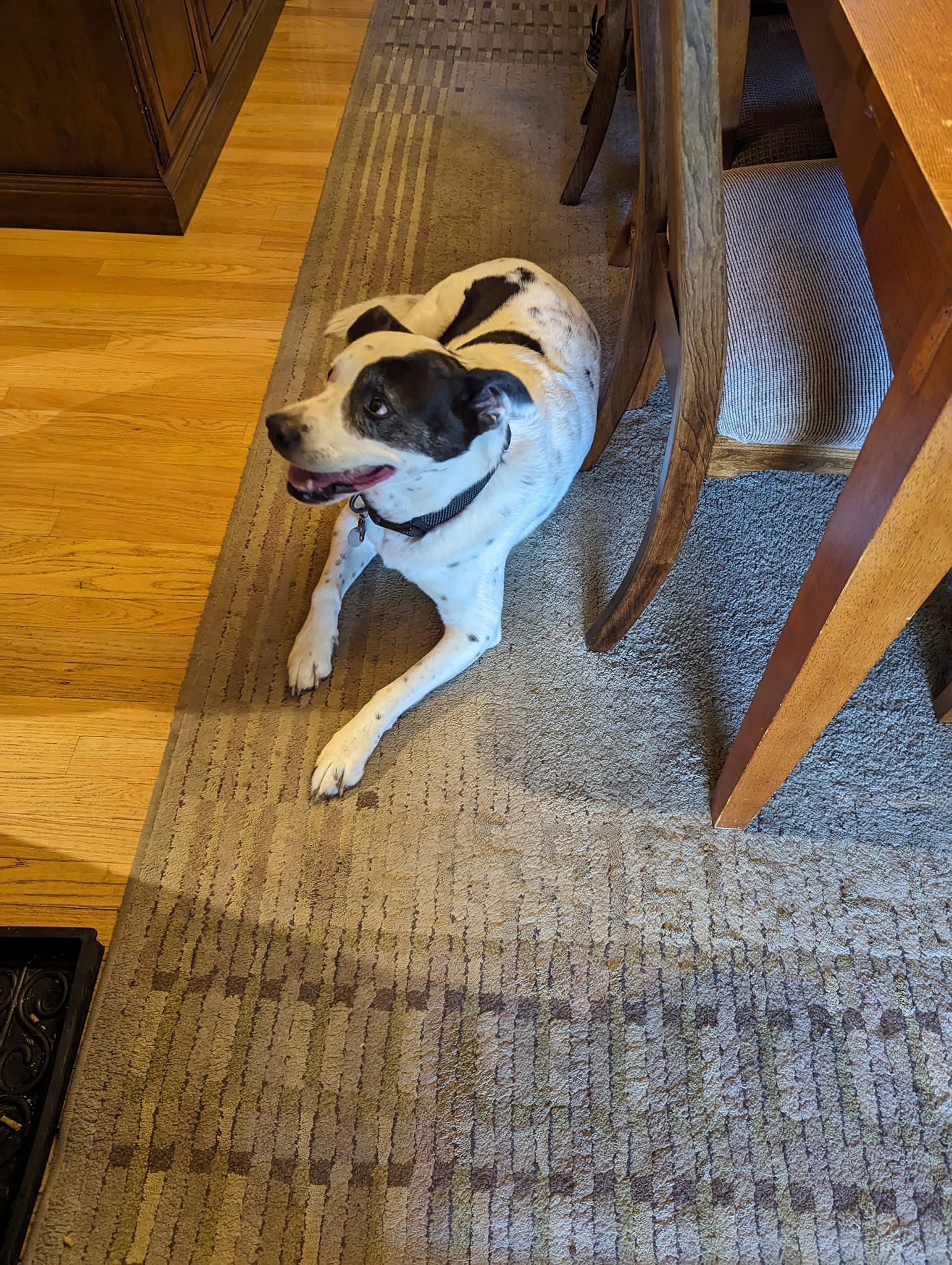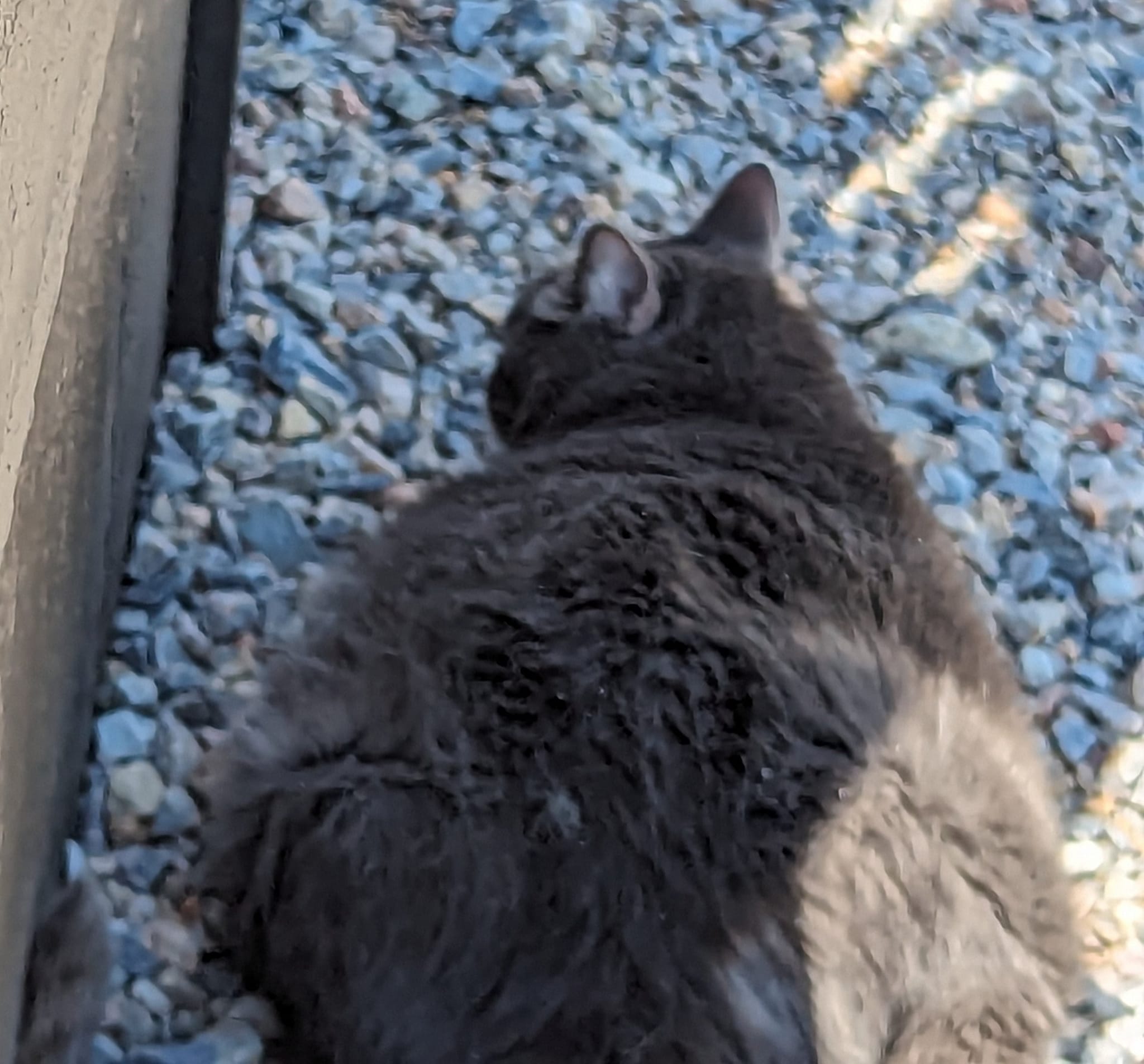 When we adopted Muggins, @[100001847848825:2048:Suellen Scott] said he keeps to himself but would let us know when he needed attention. .....:)