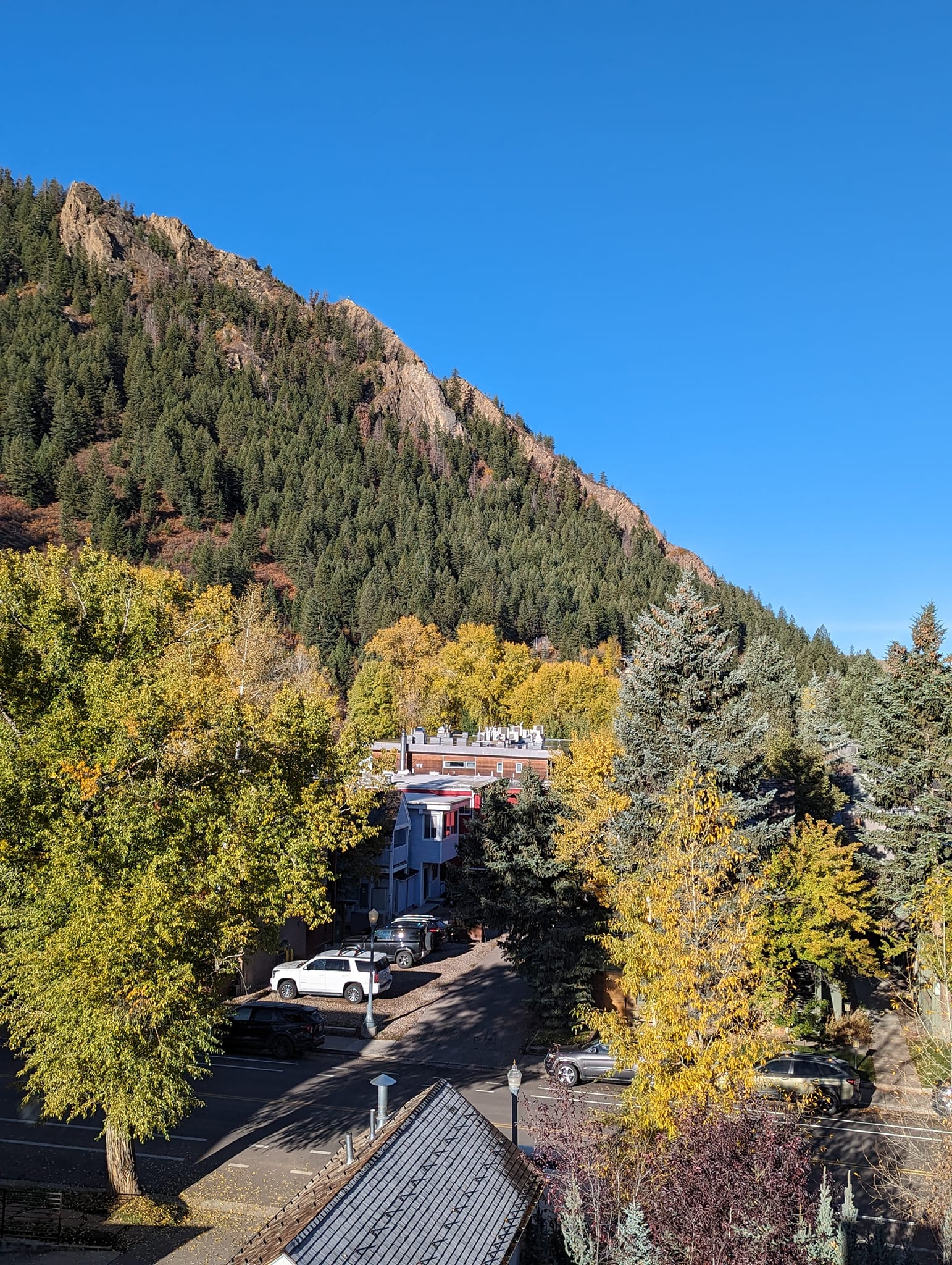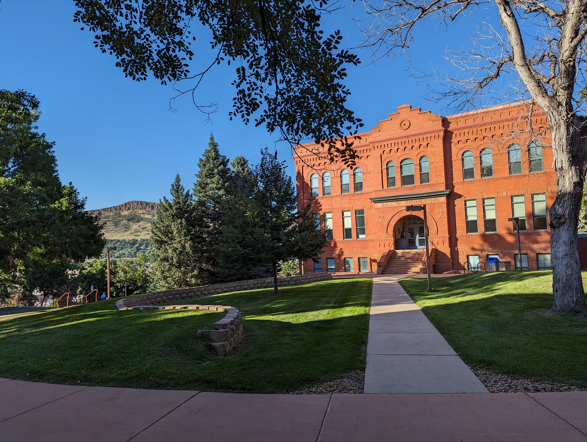 28 years ago, I met my hubby on the campus tour for the Colorado School of Mines. I had asked my tour guide, Shannon, for detailed information about the labs in the physics department. She said, "Honestly, I stay as far away from that building as possible, but Mike can answer your questions." Here are some pictures from my photo album. My main notes seem to have been "It was windy." "It's so dry on the plains that you have to water the trees, and the grass goes crunch!" (As observed by someone from Long Island, where you spend your time desperately trying to stop things from growing.)