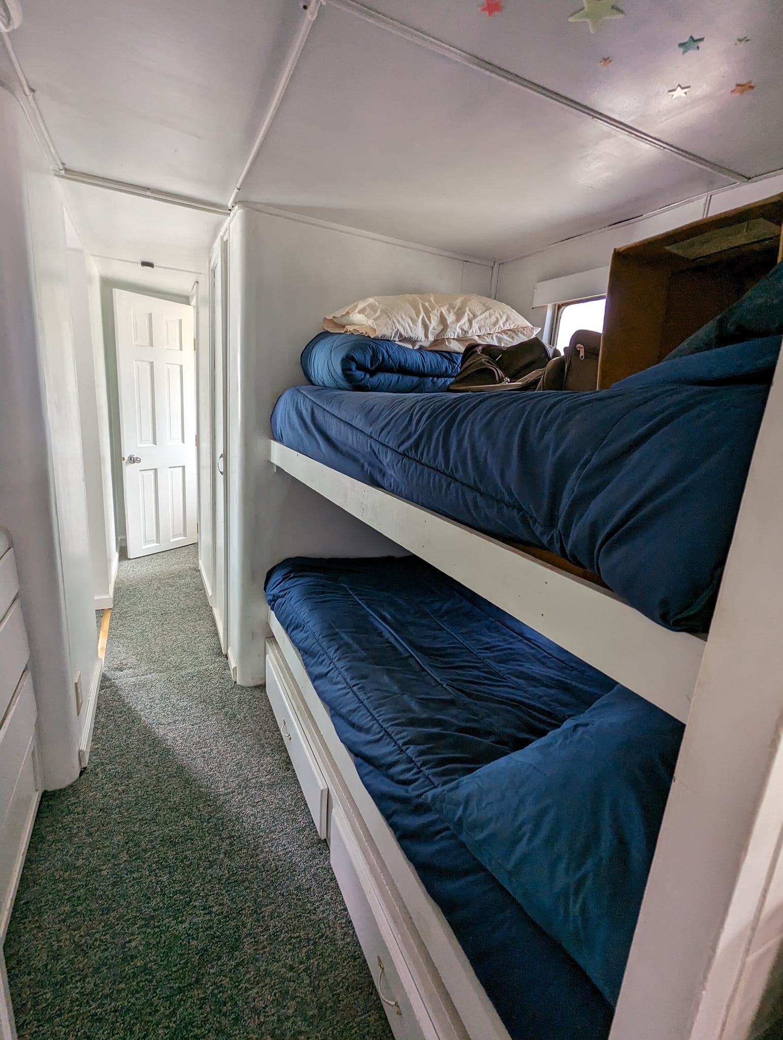 Back on the curtain steaming beat... With the best little helper. Upstairs is done, and I put the loft furniture in place.
