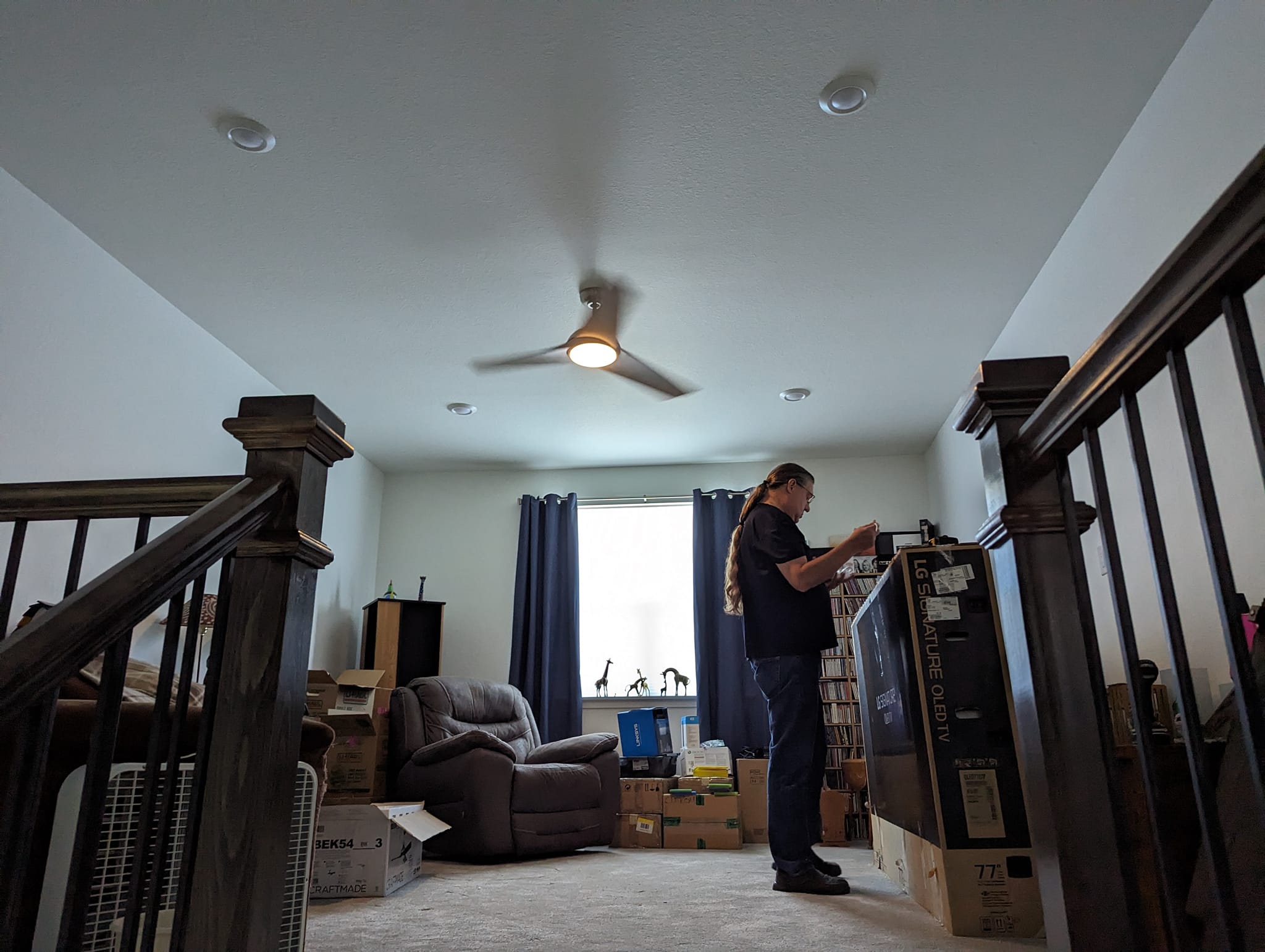 Ceiling fans! We have 3 of the 5 ceiling fans we need in the new house. Mike's dad is coming by tomorrow to help put them up.