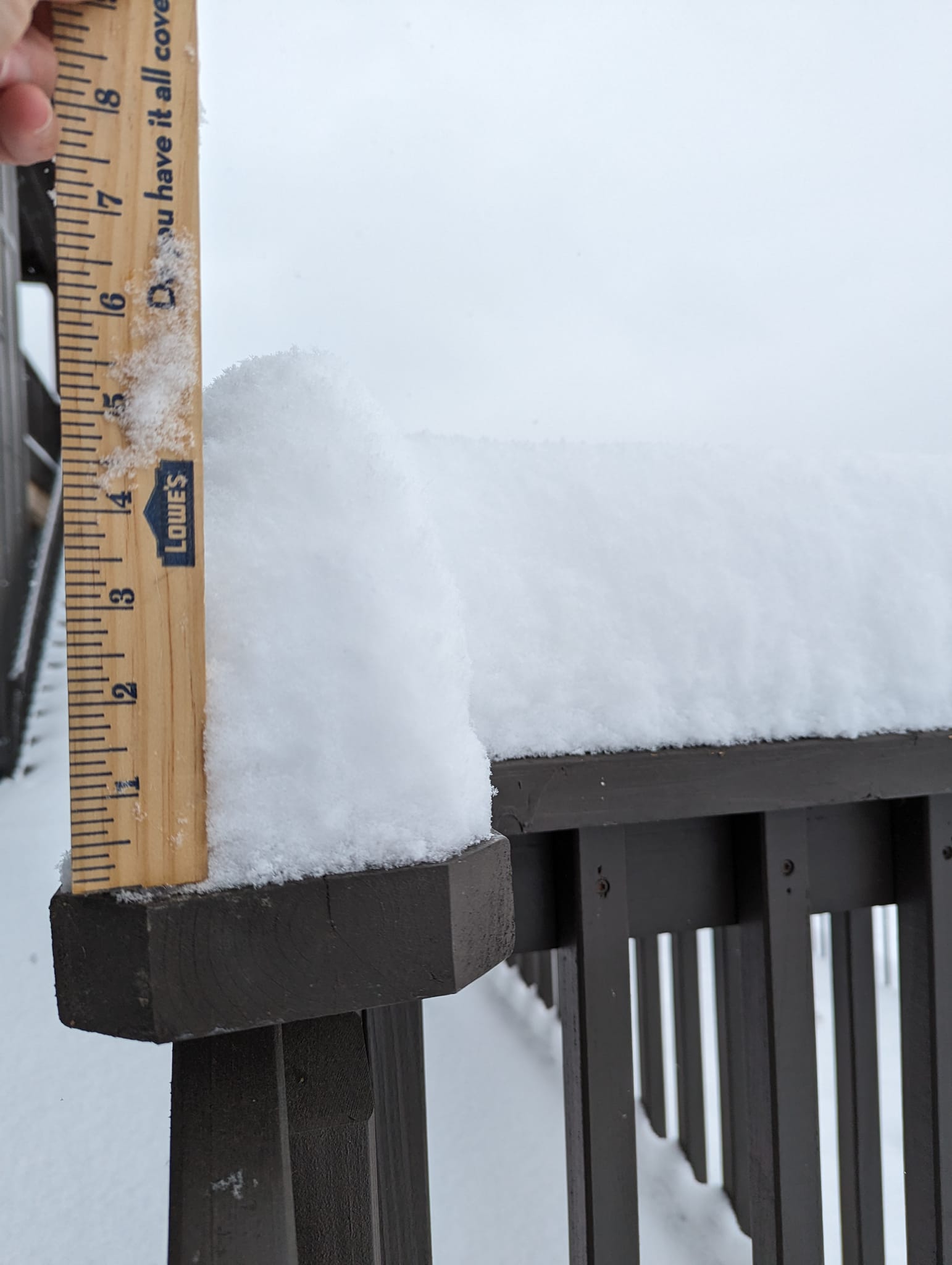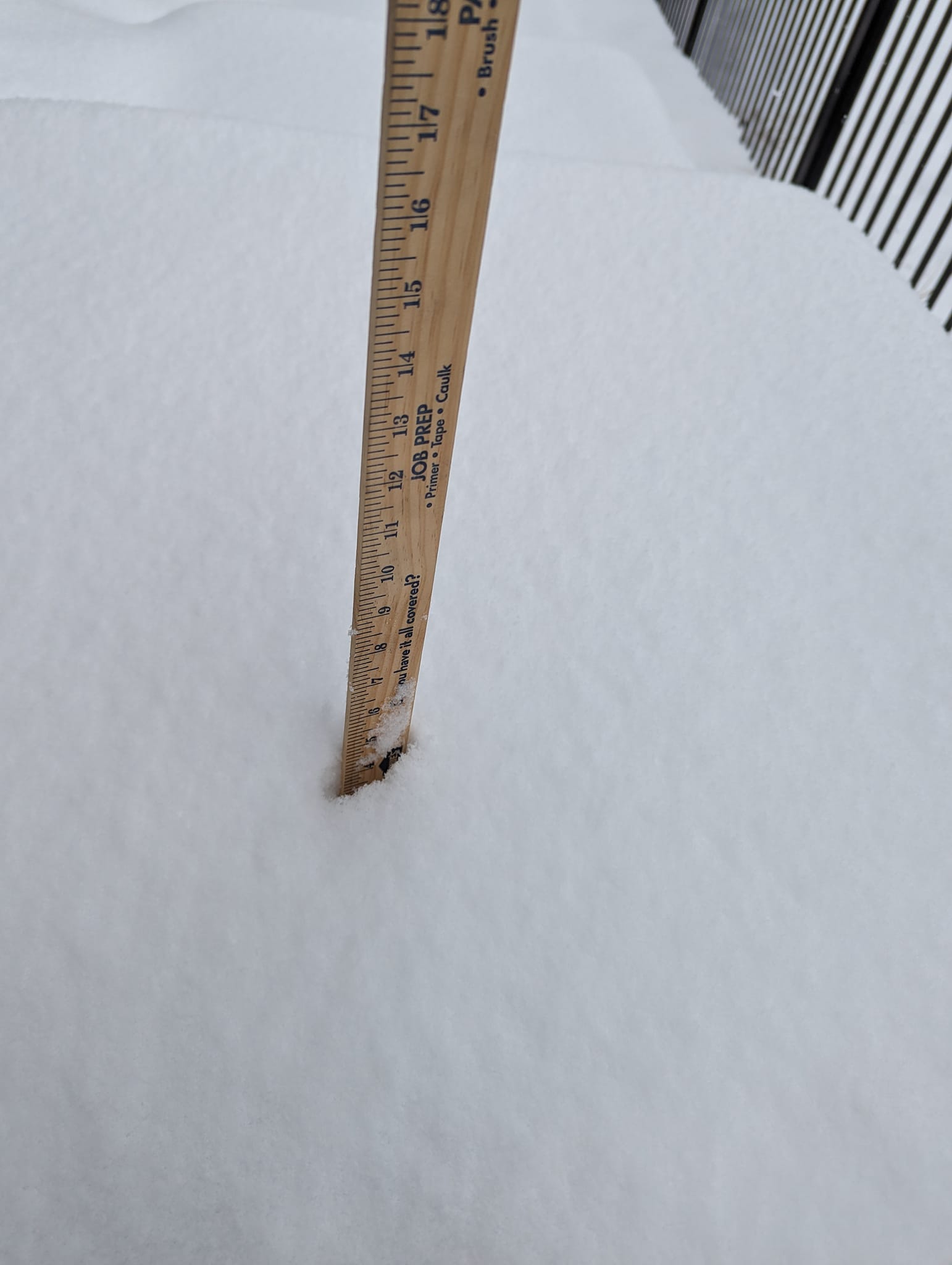 About 8.5 inches (22 cm) of snow in the front yard ??????????????????