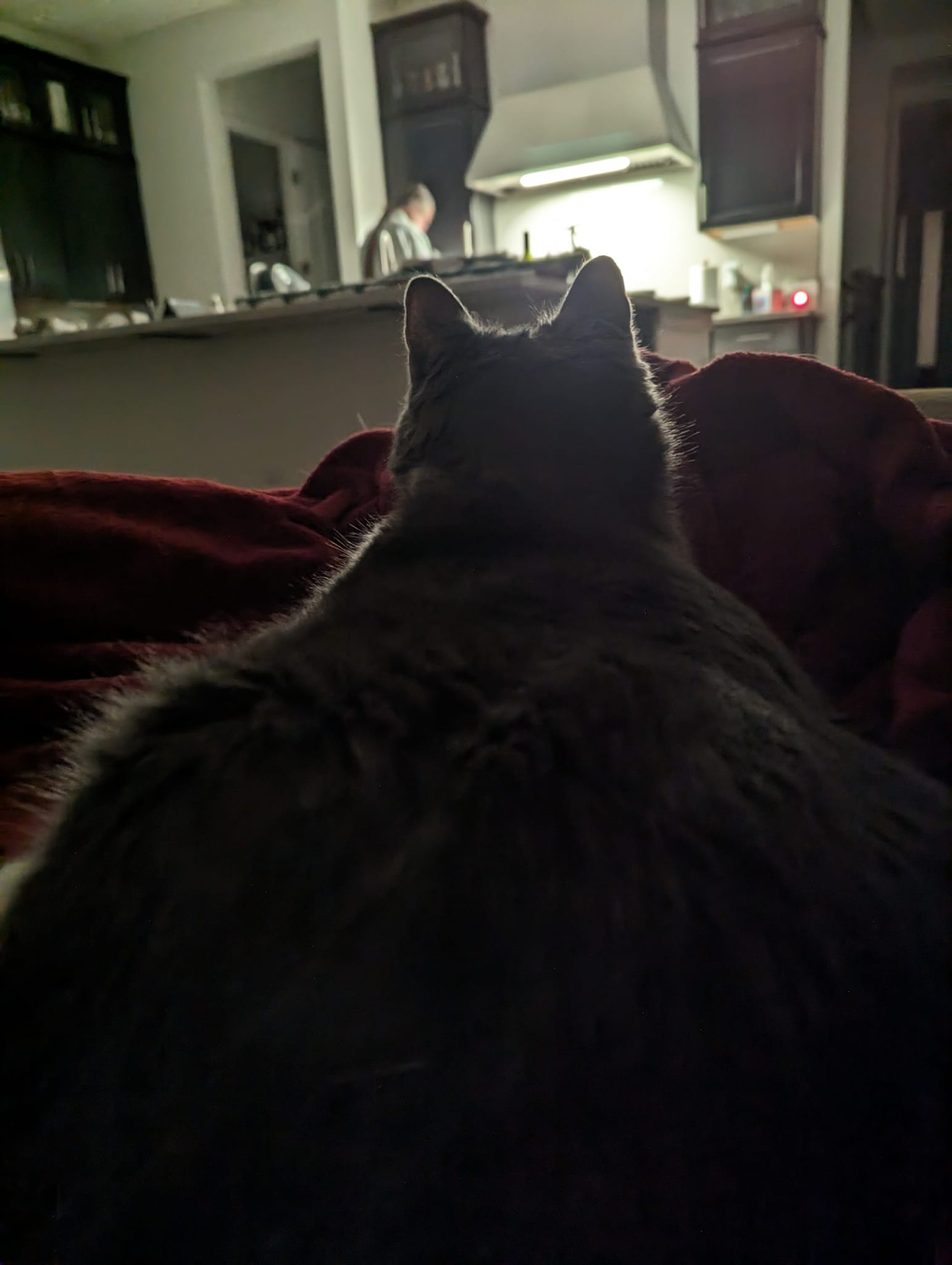 Ziggy was keeping me under observation for suspicious behavior on Thursday. I kidnapped her right before lunch and brought her to the vet. Her blood glucose levels have dropped and she is doing great with her new diet weight-wise. ????