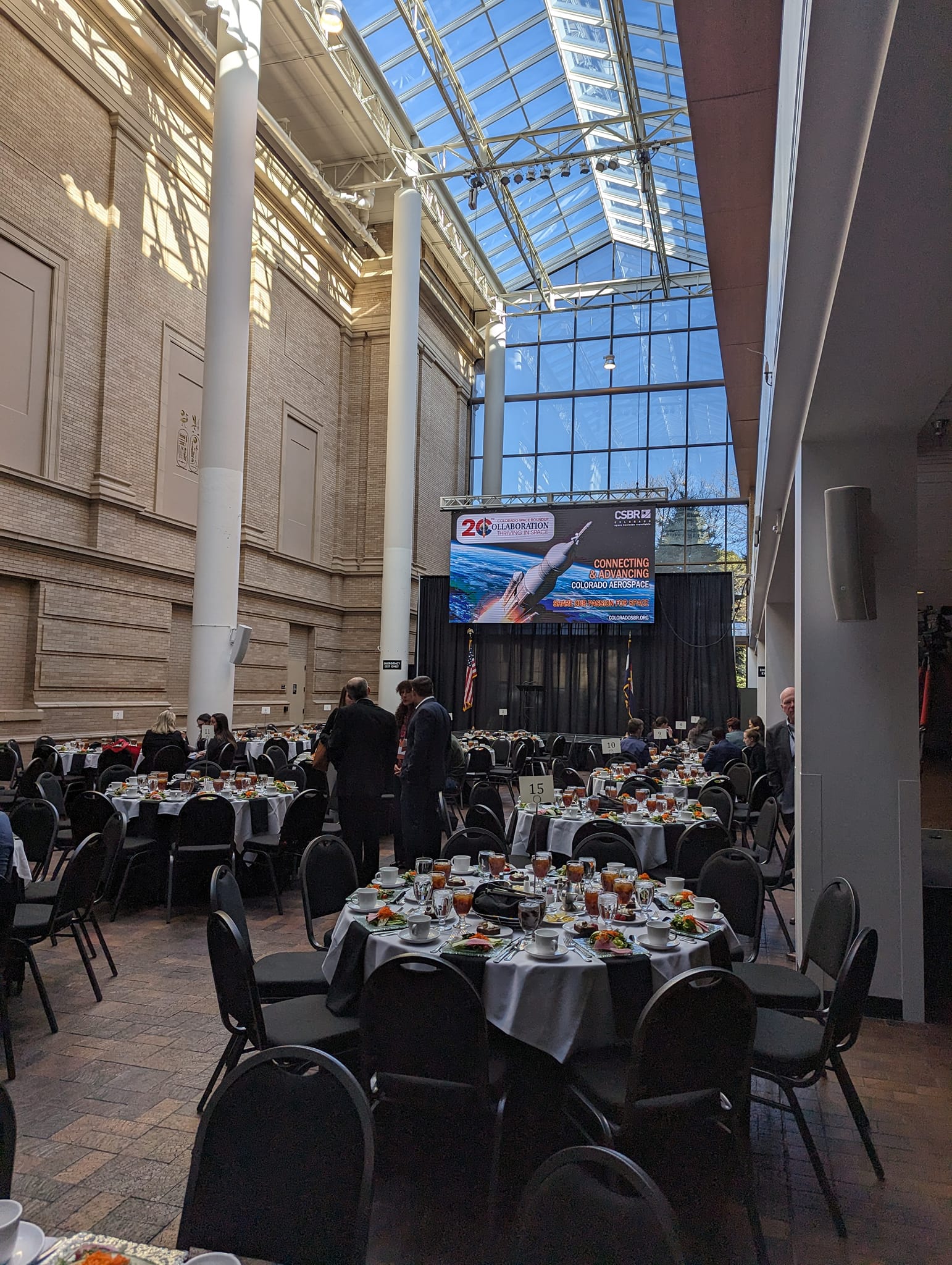 Lovely evening at the Colorado Space Business Roundtable (CSBR) Space Roundup dinner. 160 people at Wings over the Rockies was the right number to catch up with longstanding colleagues, meet new people, and meet in person some people whom I had only seen via video chat! The open mic session where company representatives introduced their companies was the perfect opportunity to talk about Orion Belt Engineering's new government contracting certifications, S Corp structure, and ownership structure.