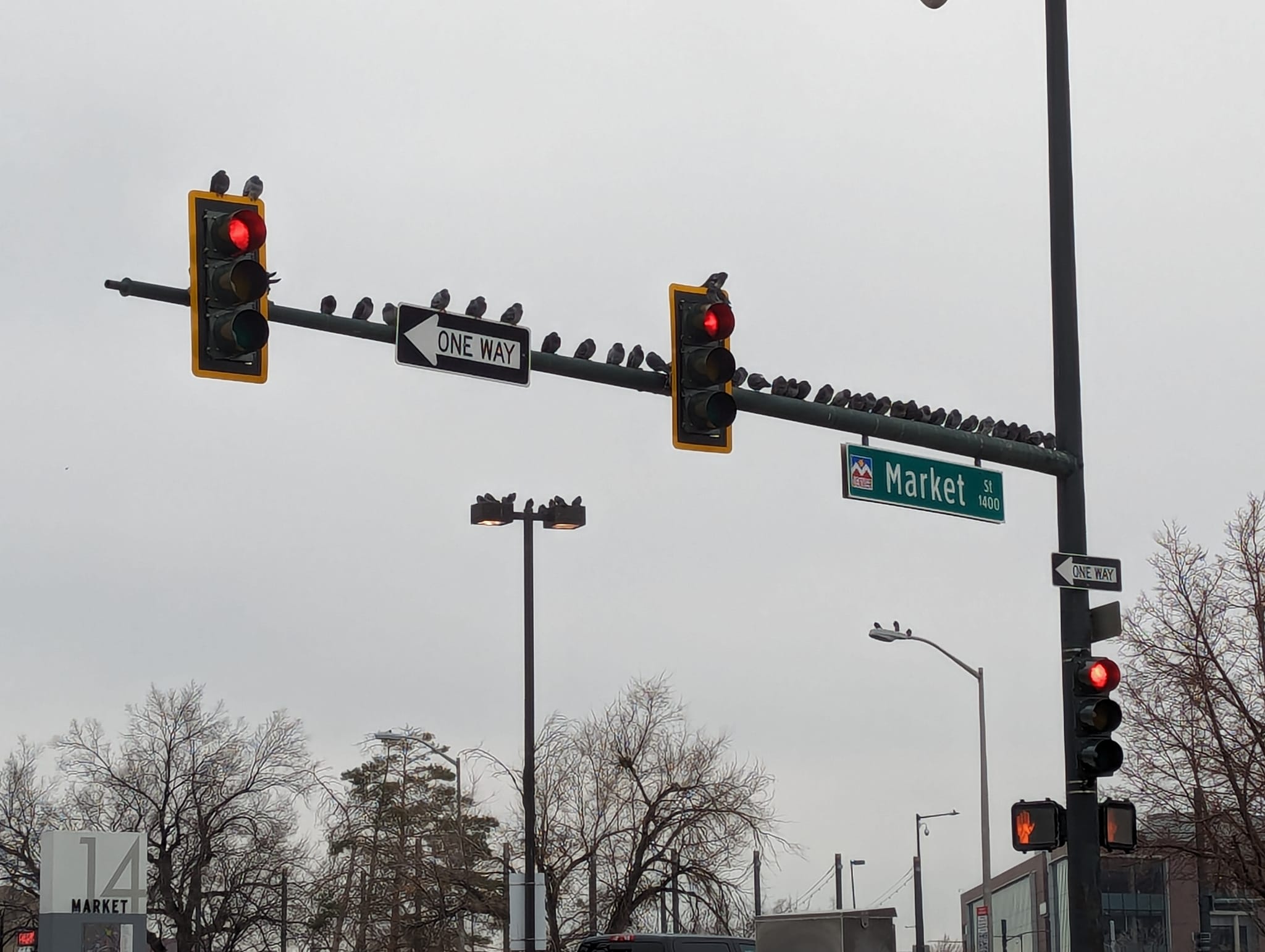 Great meeting on Tuesday - interesting.....Metro Denver introduced some local companies to CNES (like the French DoD and NASA). They are looking to expand international opportunities (in both directions) for space companies and related commercial industries. Christophe, with whom I worked at RUAG, is going to introduce me to the French companies this spring. ... First picture below is the pigeon army that greeted me when I came out of the meeting.