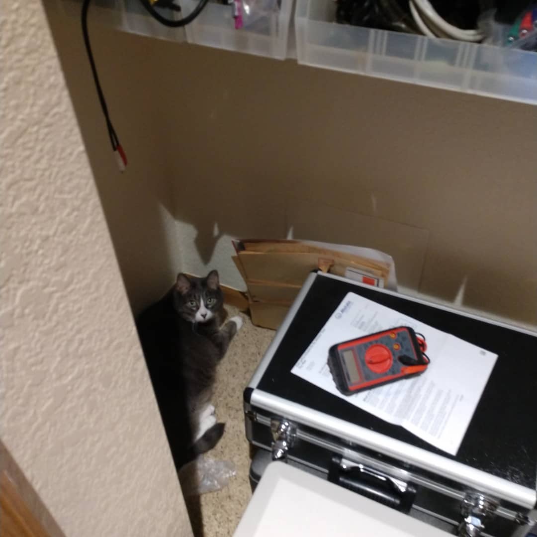 My coworker has been quite busy in the basement office today. (moth hunting)