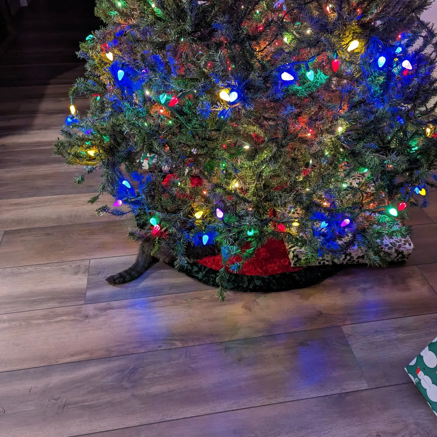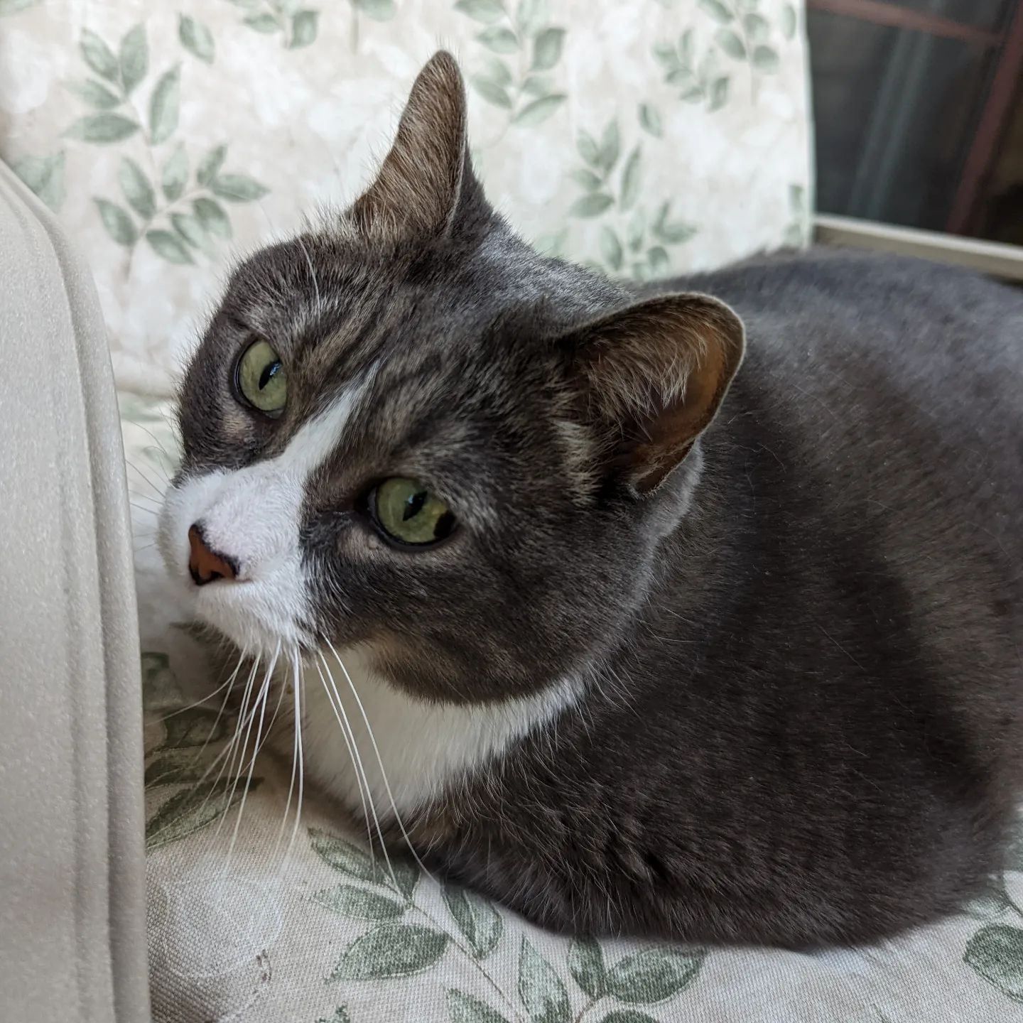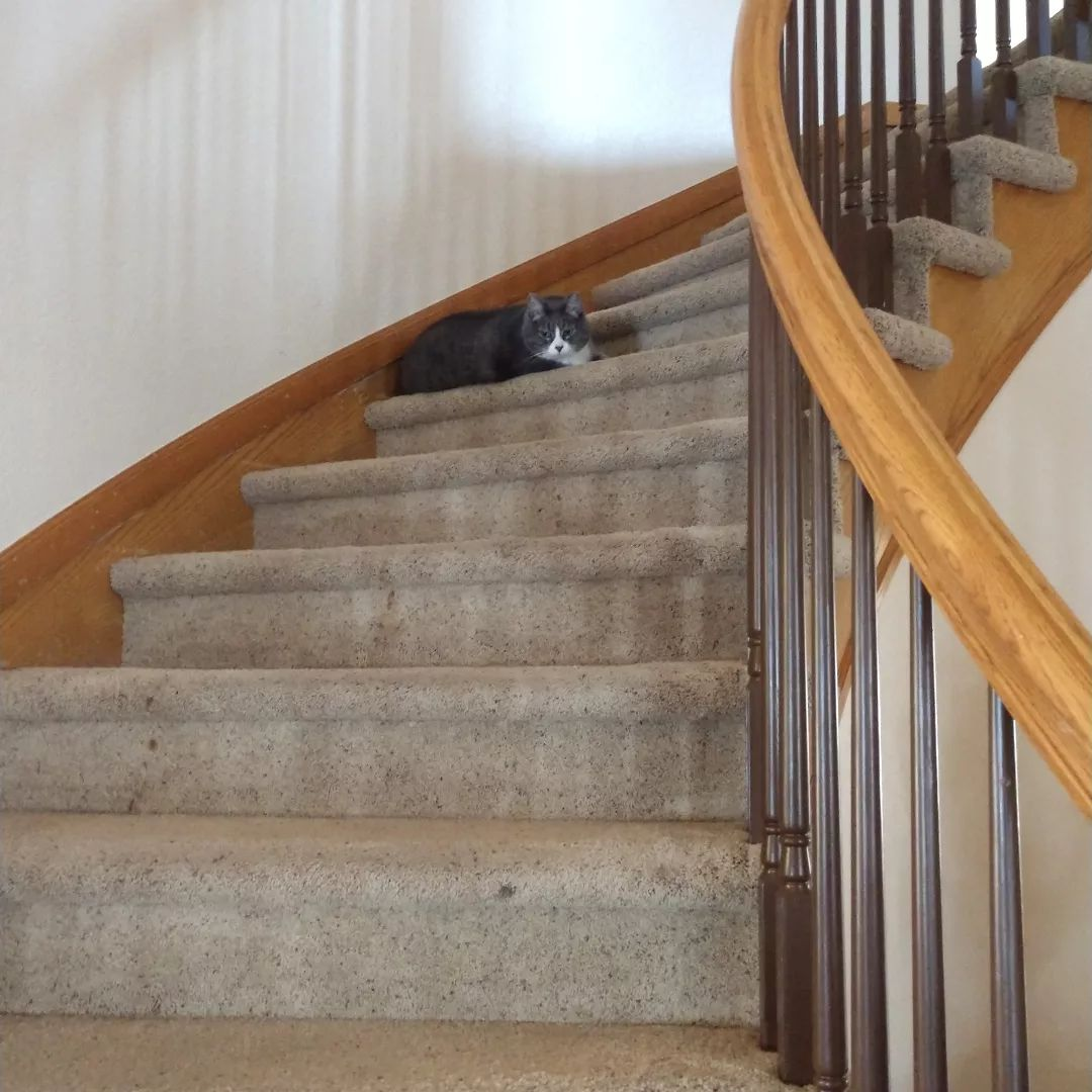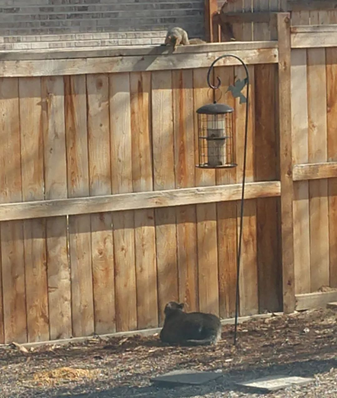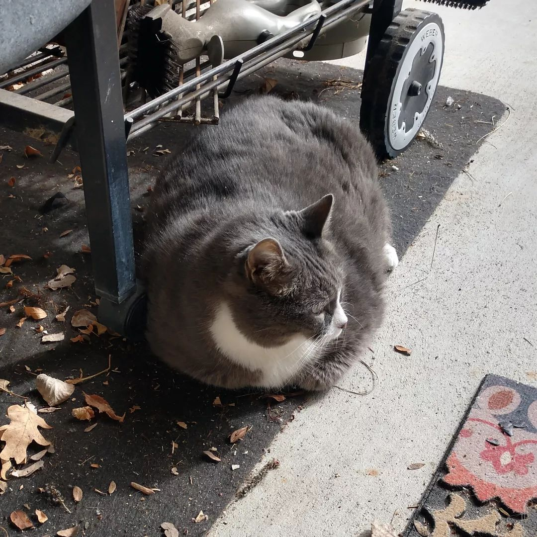 Looks like this is the guard post for the day. I messed up and hopefully we didn't wake up too many neighbors. I let Ziggy out without seeing the shy kitten was under one of the chairs in the back yard. Hissing and yeowls ensued. The kitten quickly realized that 3 feet up in a tree was sufficient to get away from Ziggy. Being reminded that she's an old lady by him sitting there looking down on her didn't make things better. But no one got hurt and the kitten was back at the front door within minutes. All part of the getting to know you process, I suppose. ?????? She's been in this spot for half an hour now.