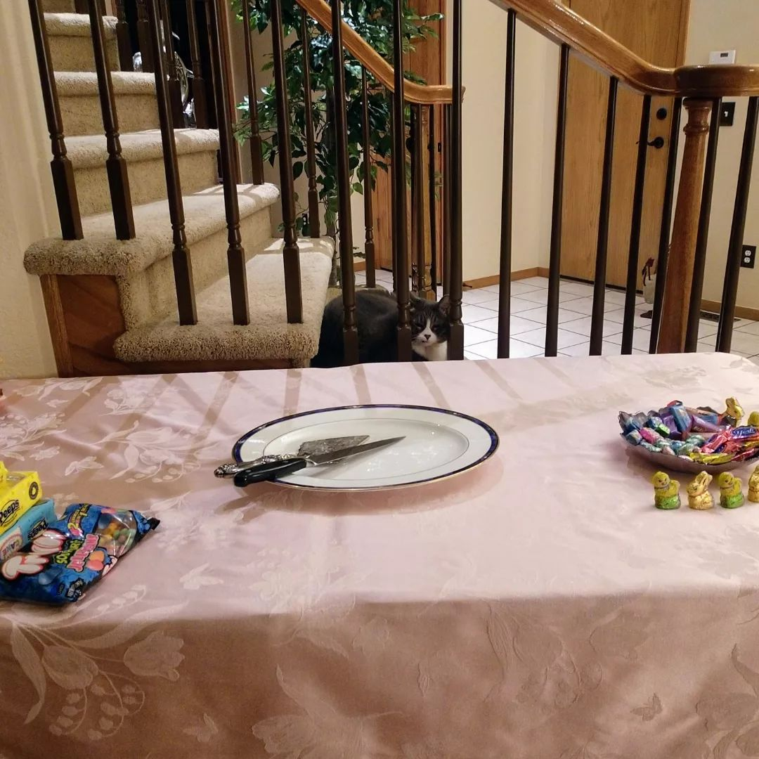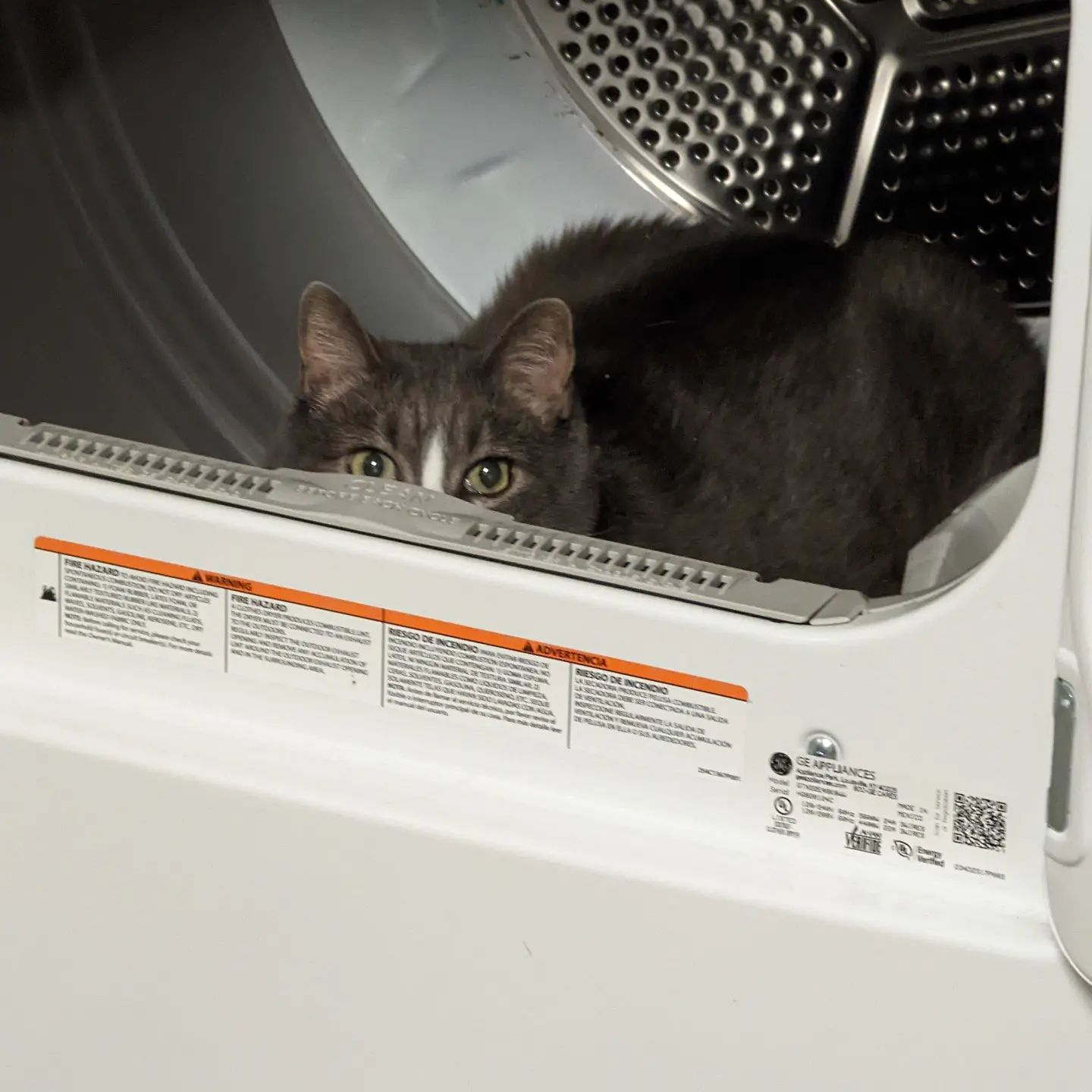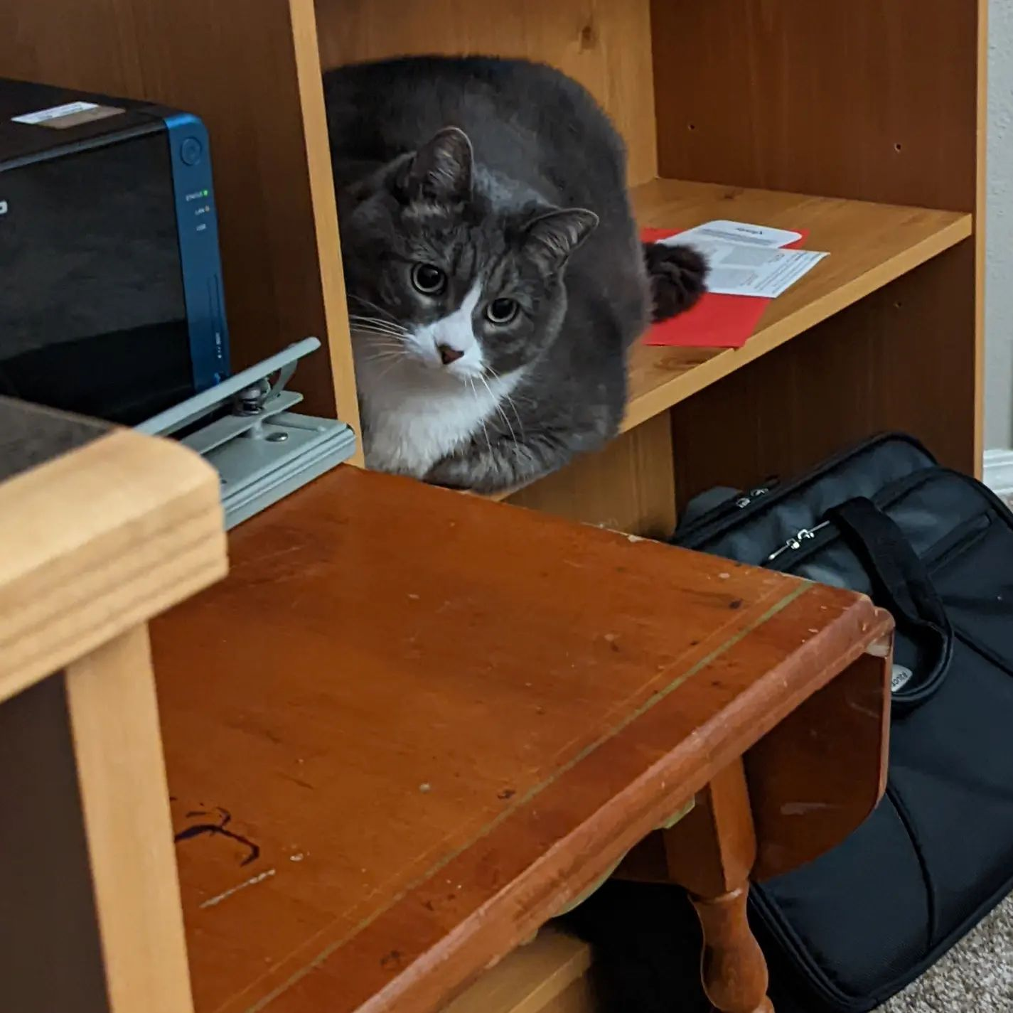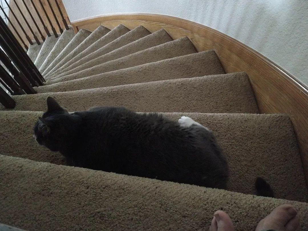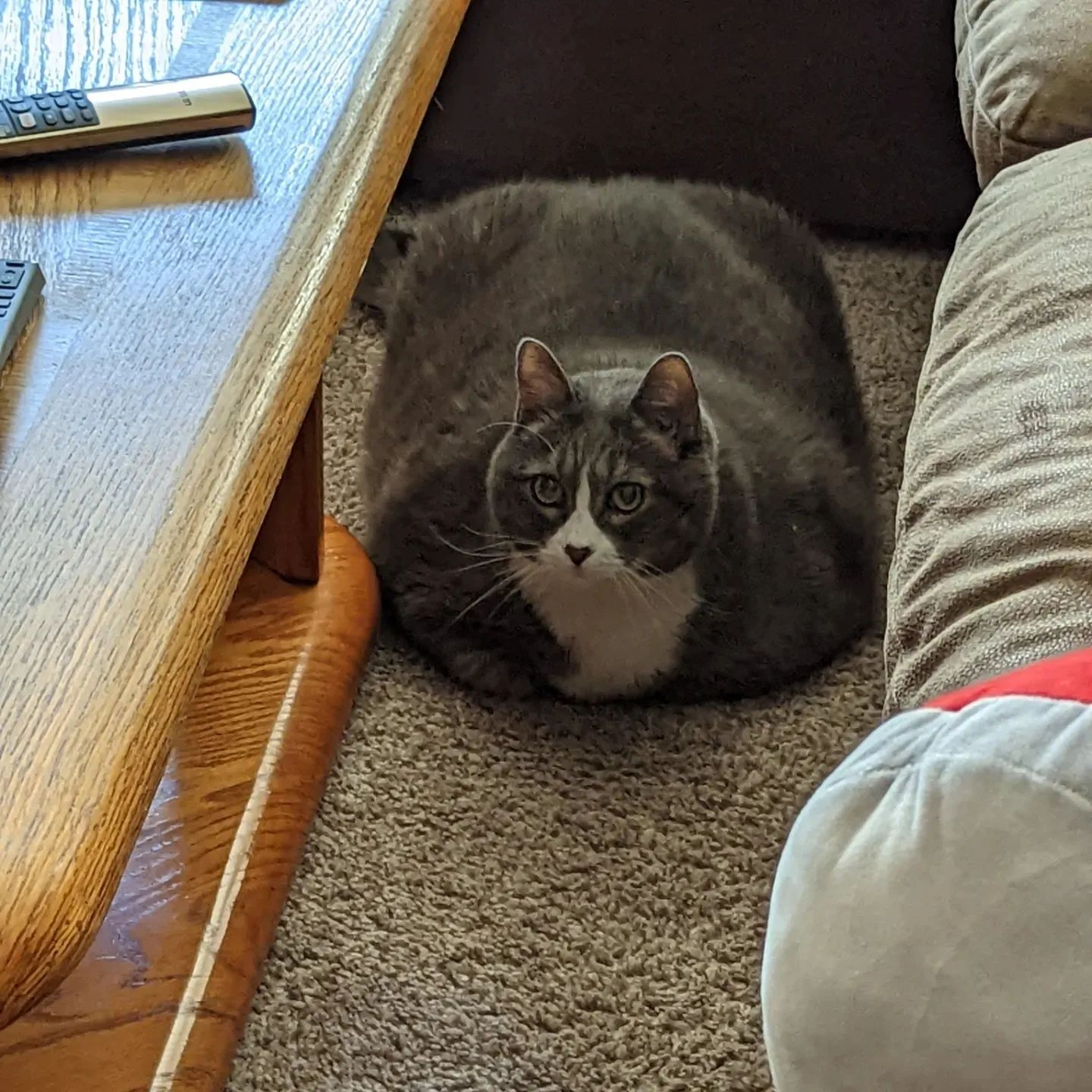 Looks like this is the guard post for the day. I messed up and hopefully we didn't wake up too many neighbors. I let Ziggy out without seeing the shy kitten was under one of the chairs in the back yard. Hissing and yeowls ensued. The kitten quickly realized that 3 feet up in a tree was sufficient to get away from Ziggy. Being reminded that she's an old lady by him sitting there looking down on her didn't make things better. But no one got hurt and the kitten was back at the front door within minutes. All part of the getting to know you process, I suppose. ?????? She's been in this spot for half an hour now.