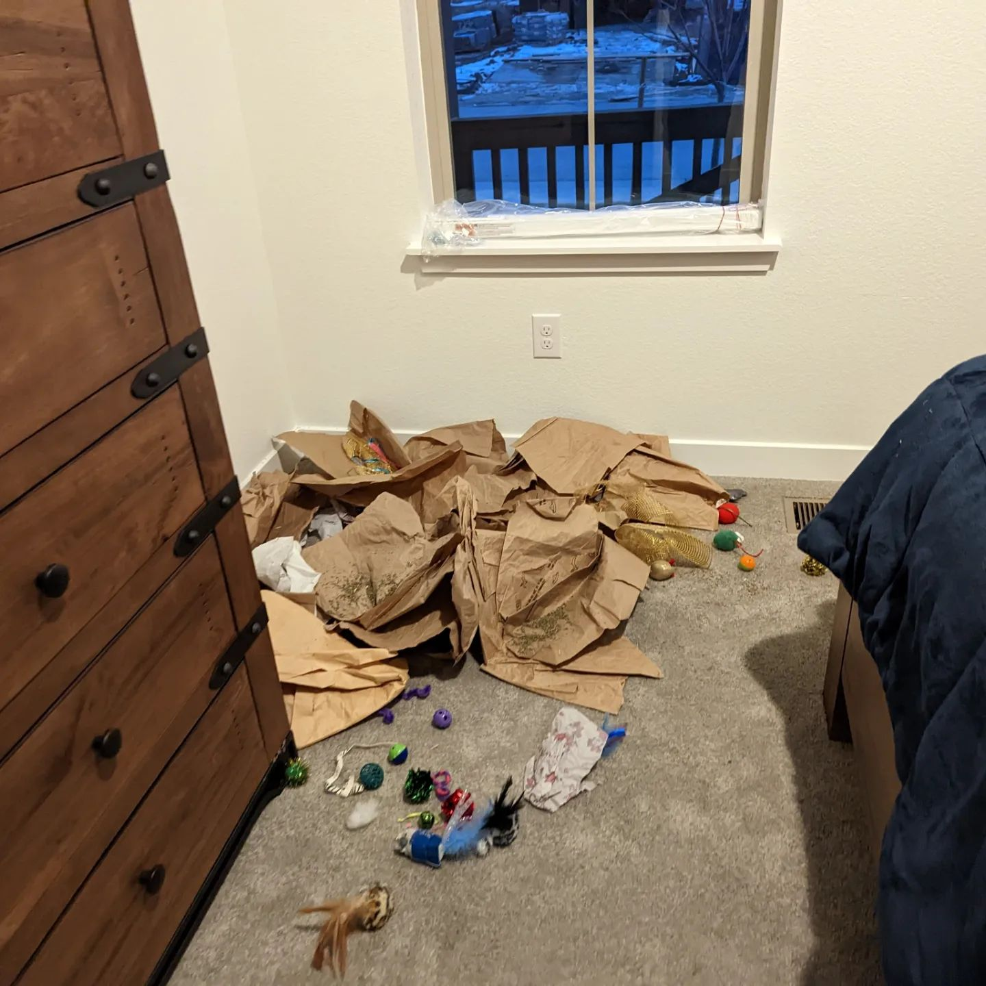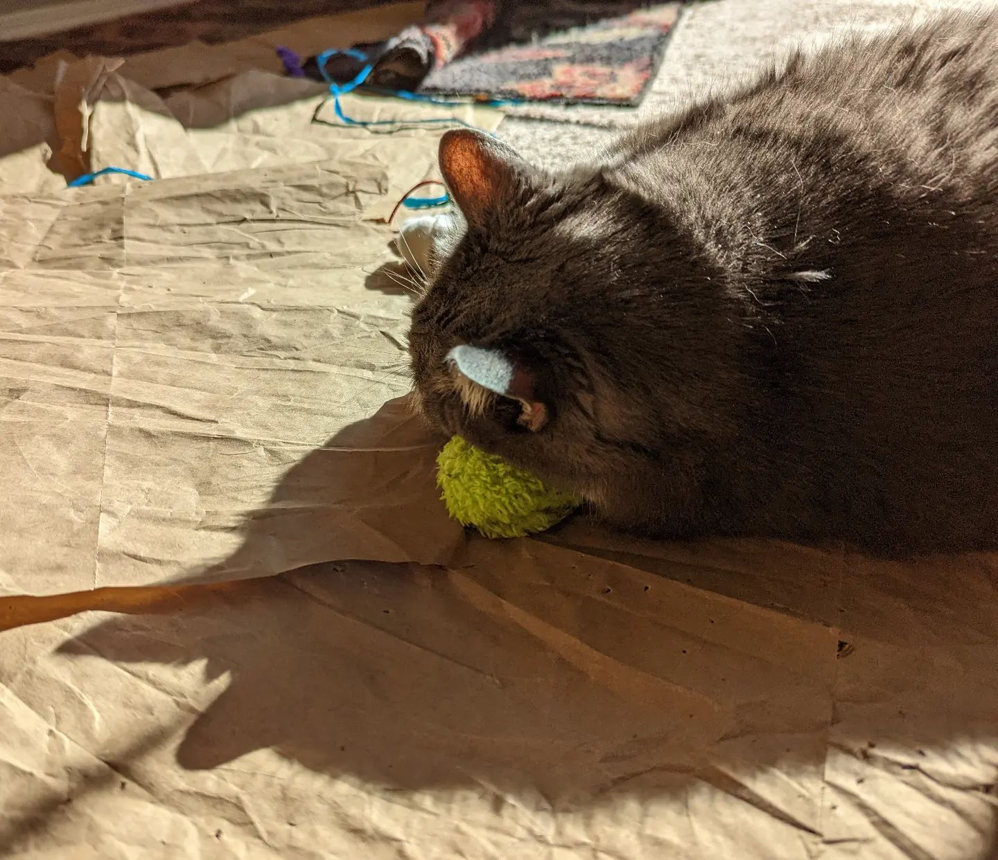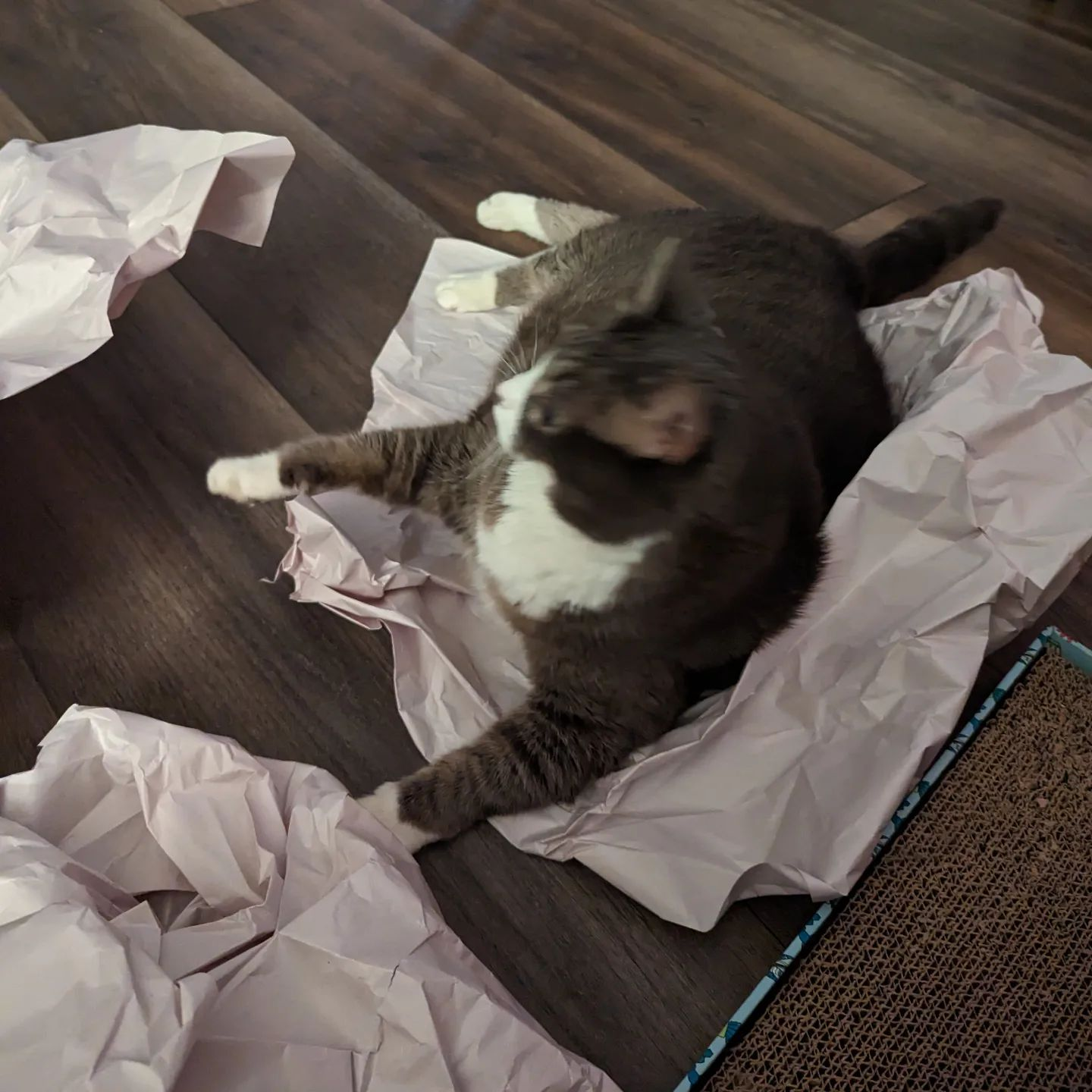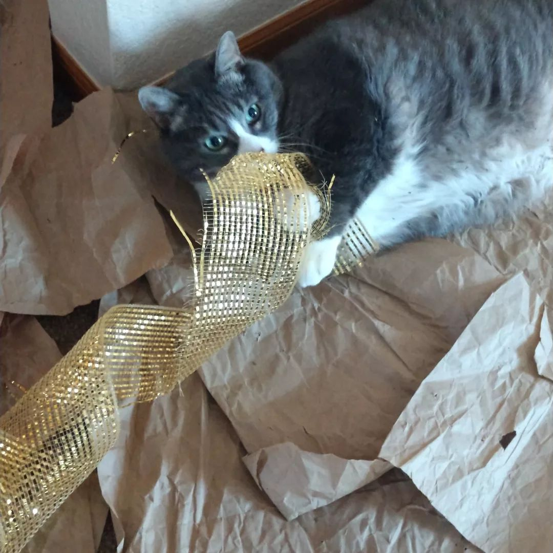 Packages being delivered means new crinkle paper! Crinkle paper that must be tamed! ?? Very serious business, as you can see