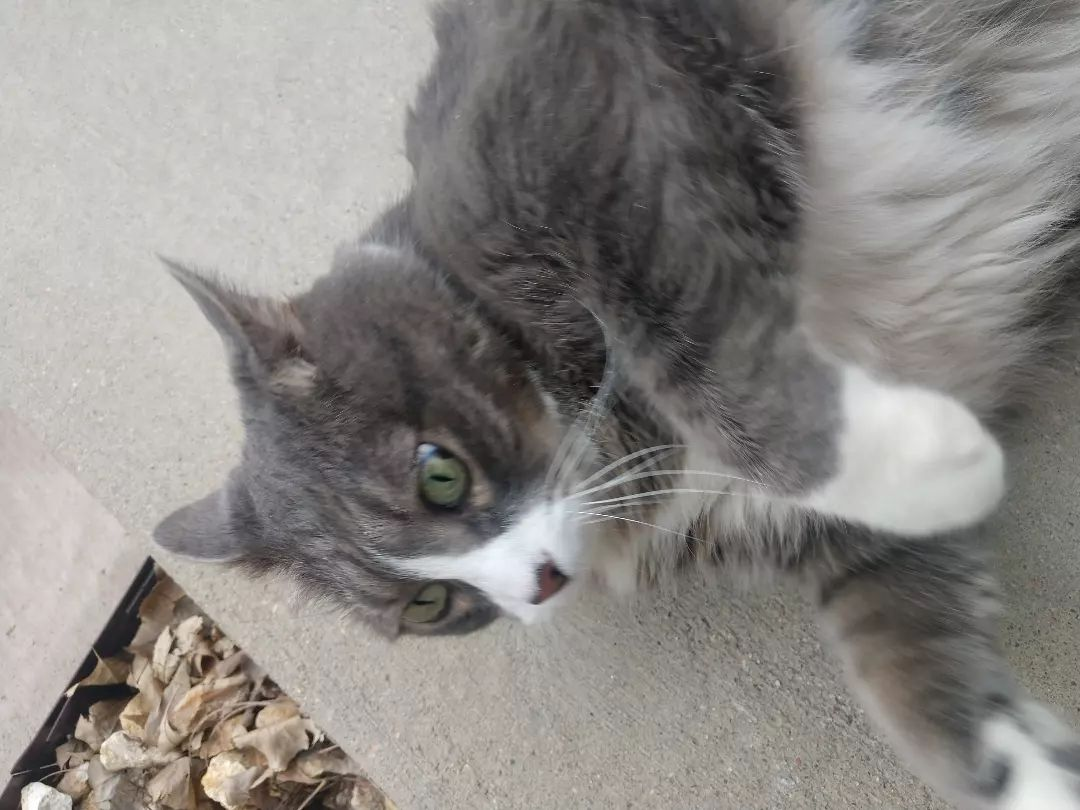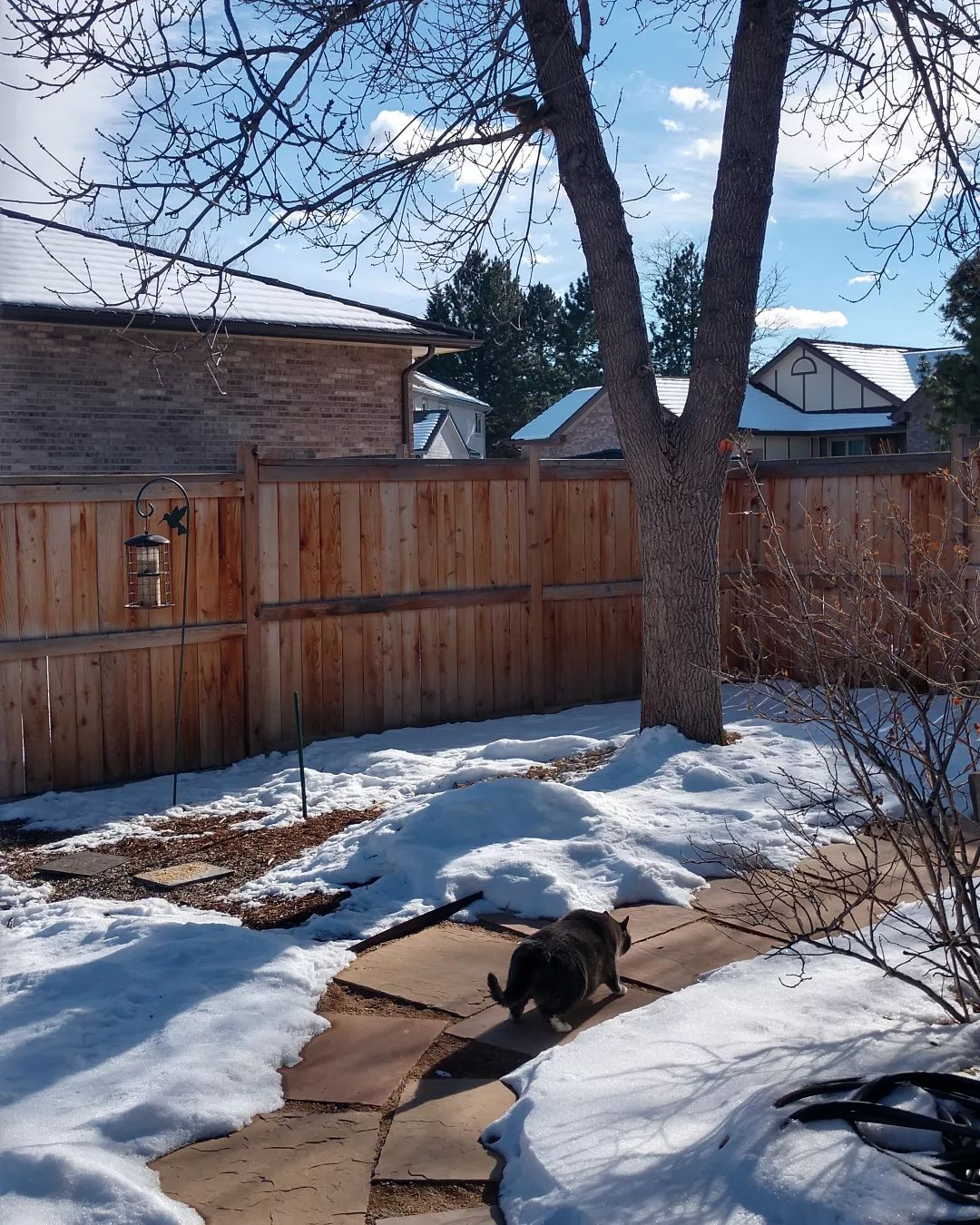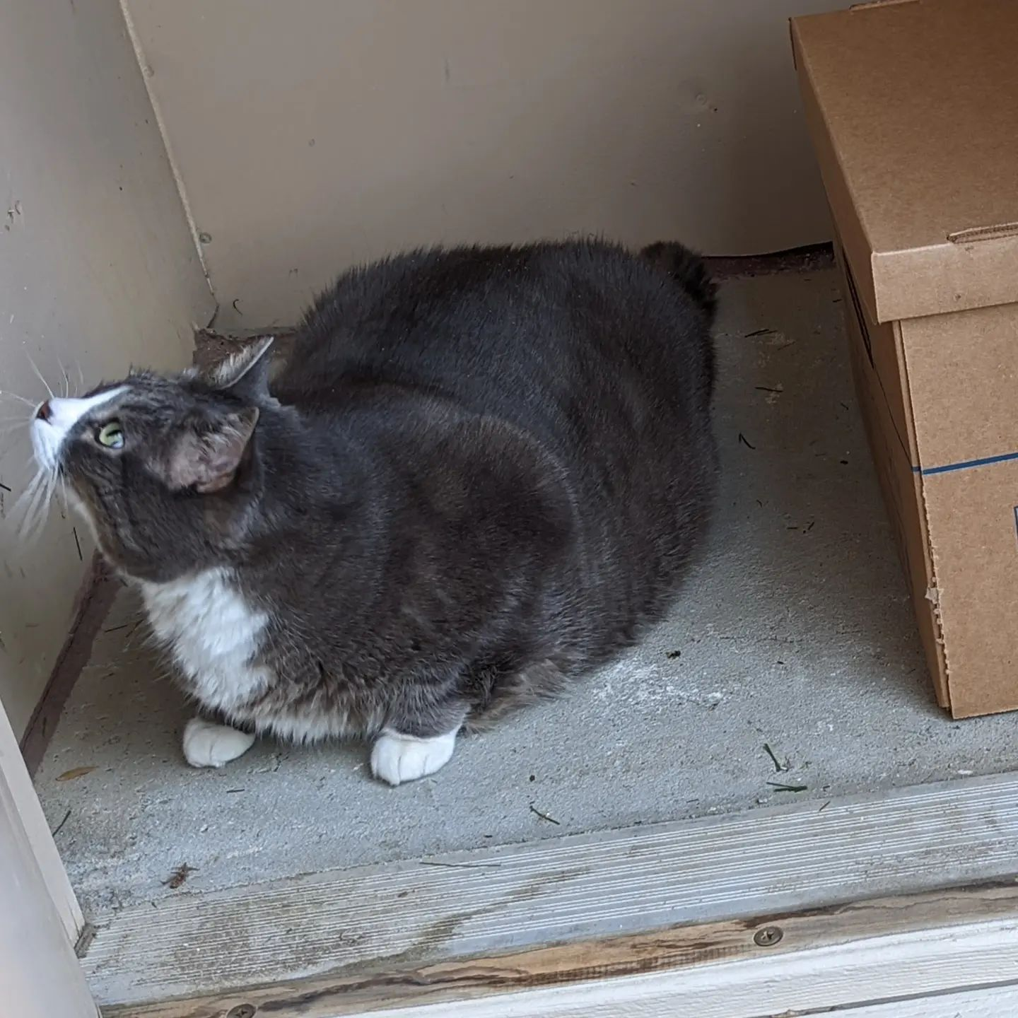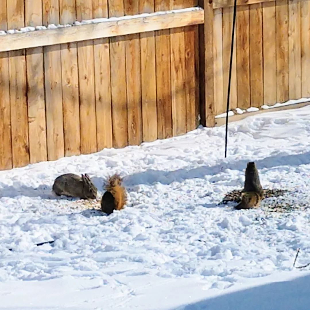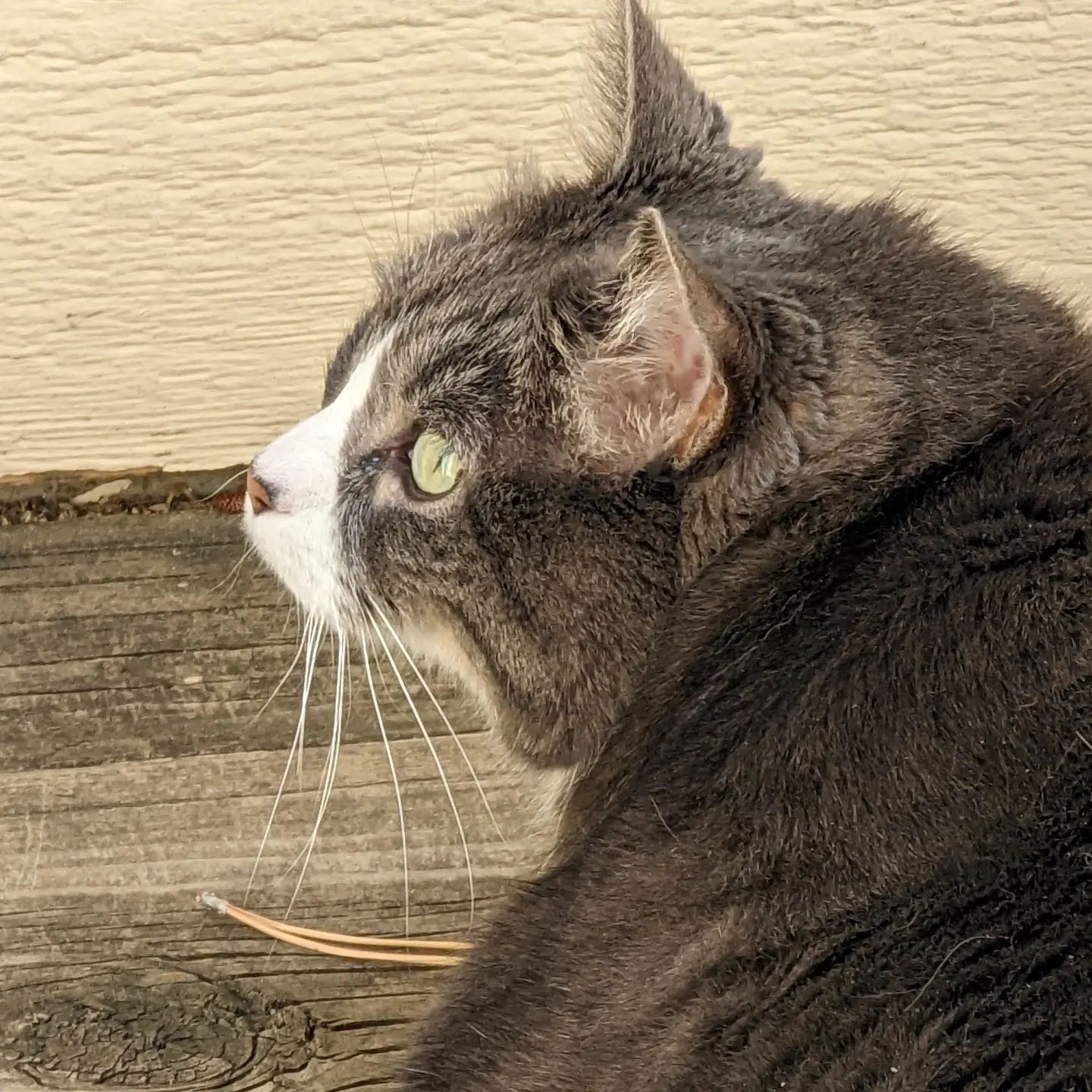 Thankfully, the kittens were in their home during the recent snowy and cold weather. The brave kitten came back this evening. Guard duty - high alert!