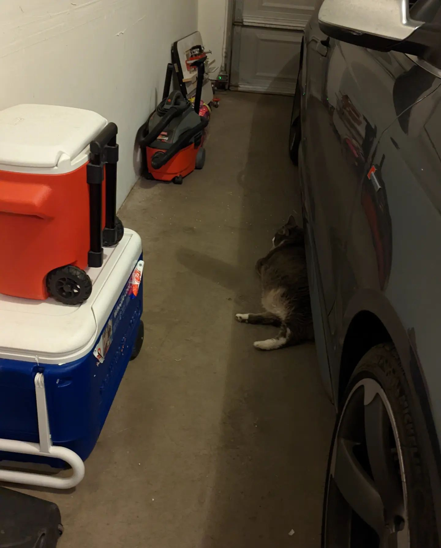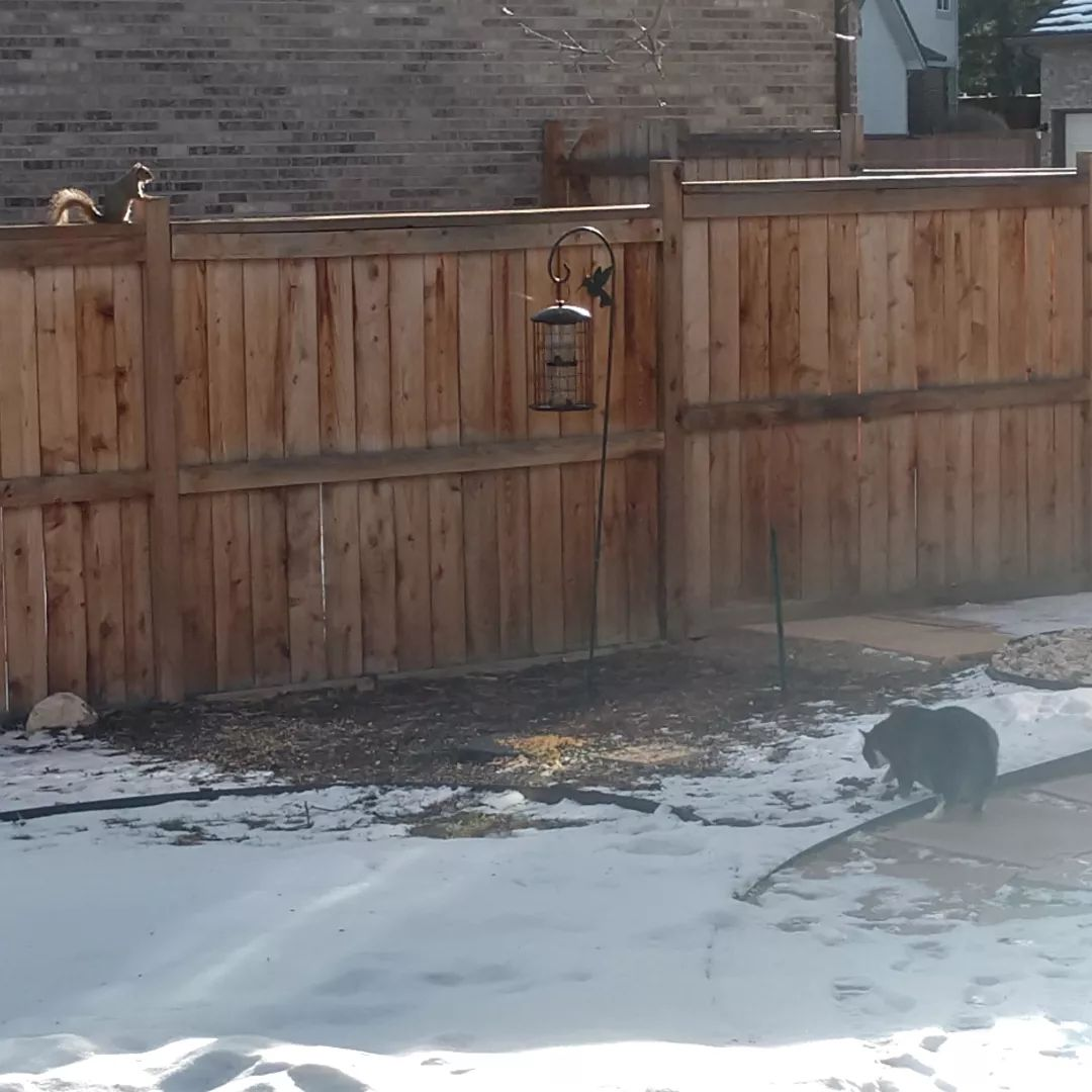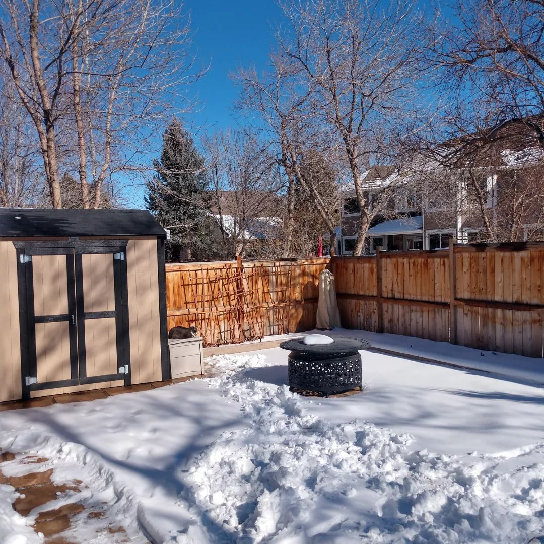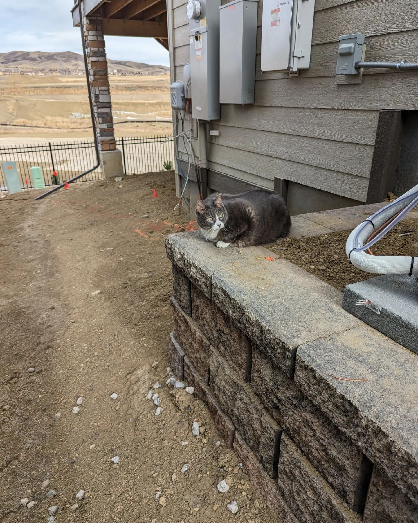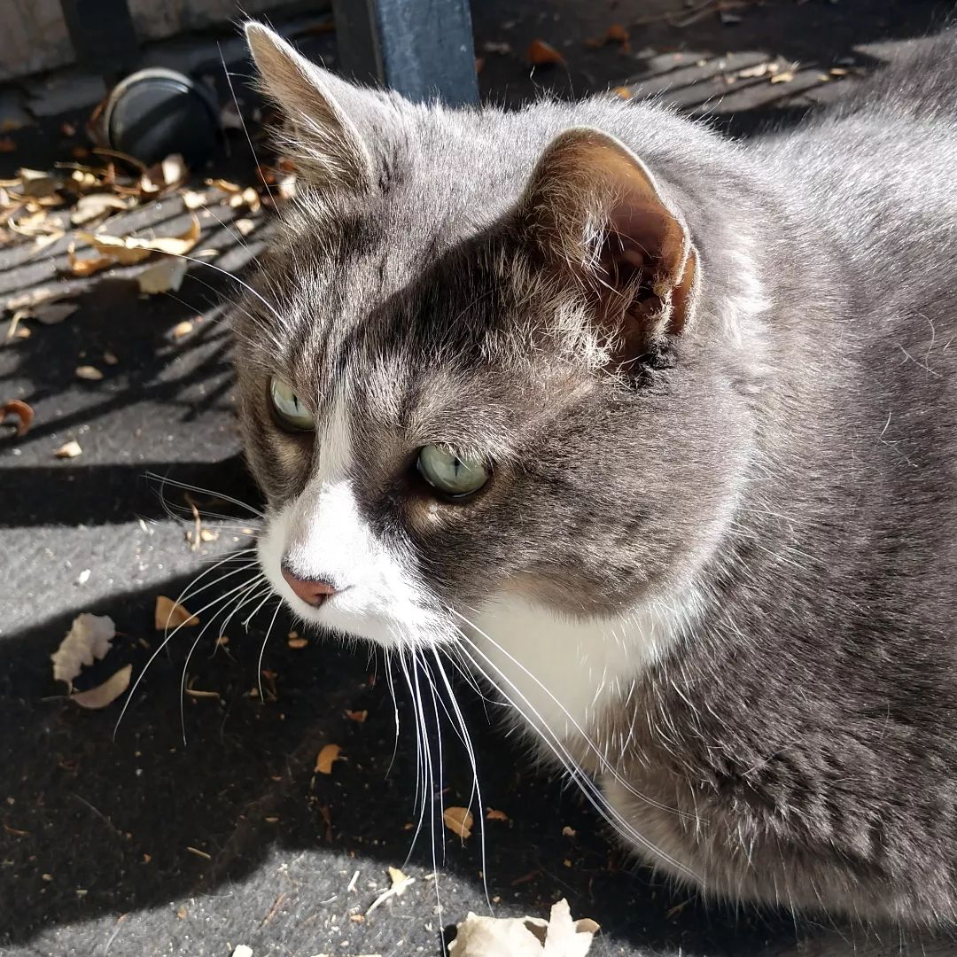 Thankfully, the kittens were in their home during the recent snowy and cold weather. The brave kitten came back this evening. Guard duty - high alert!