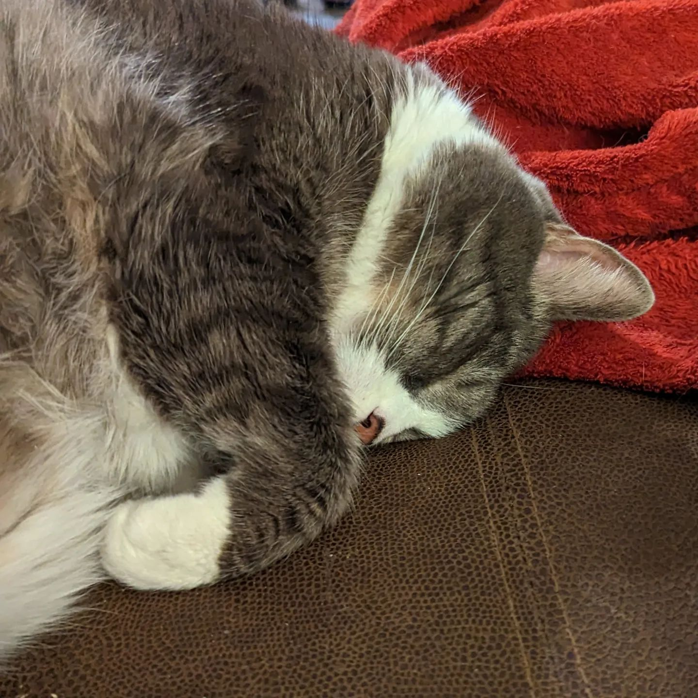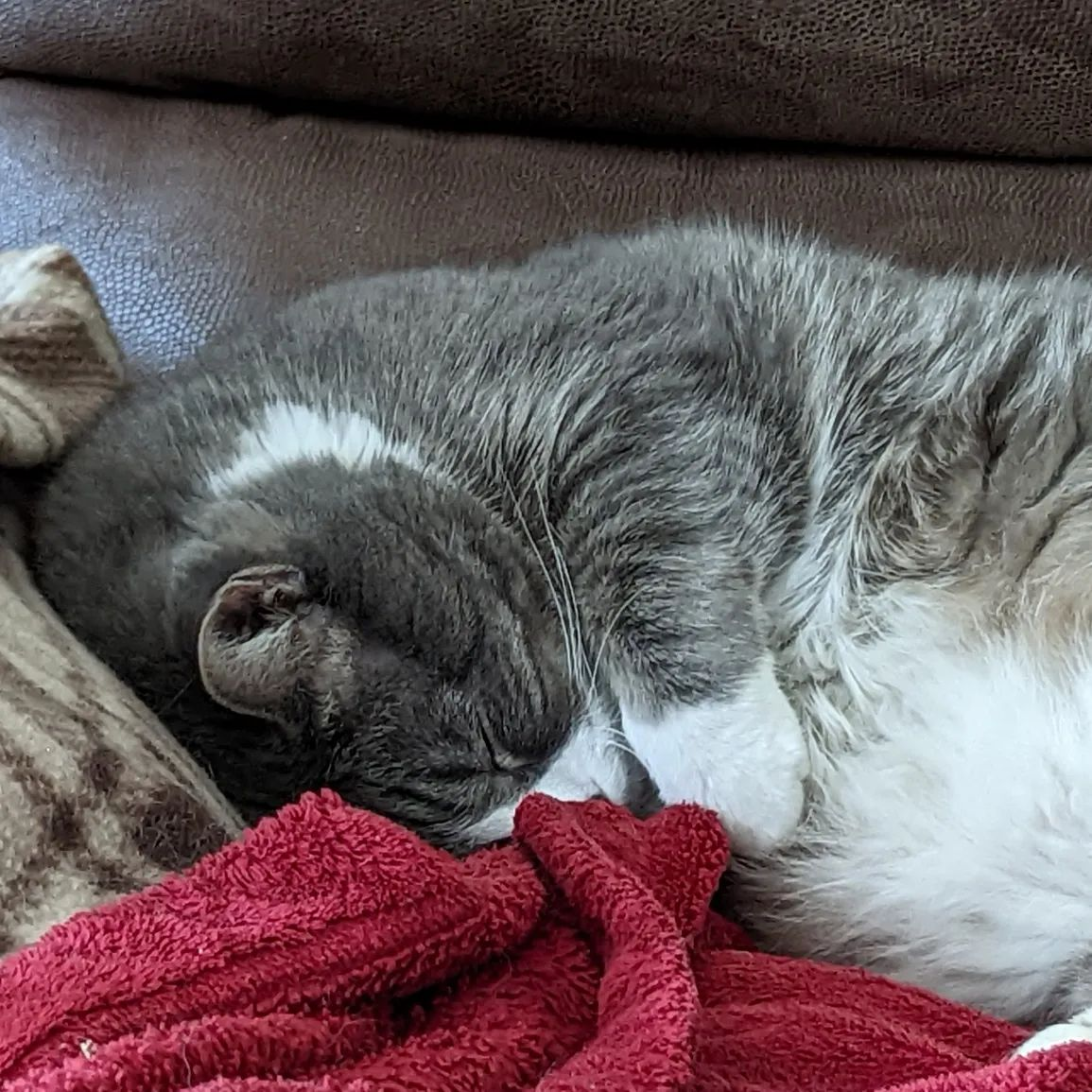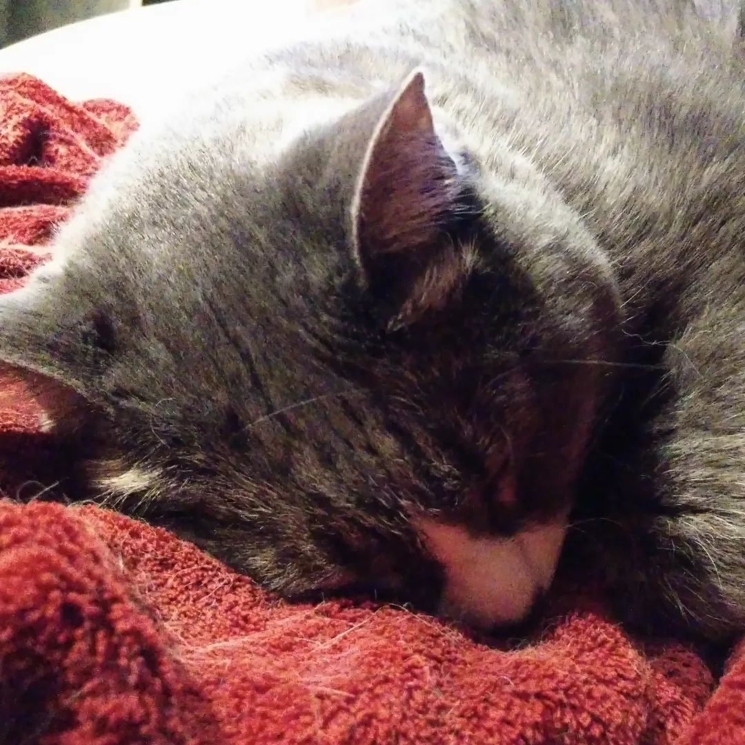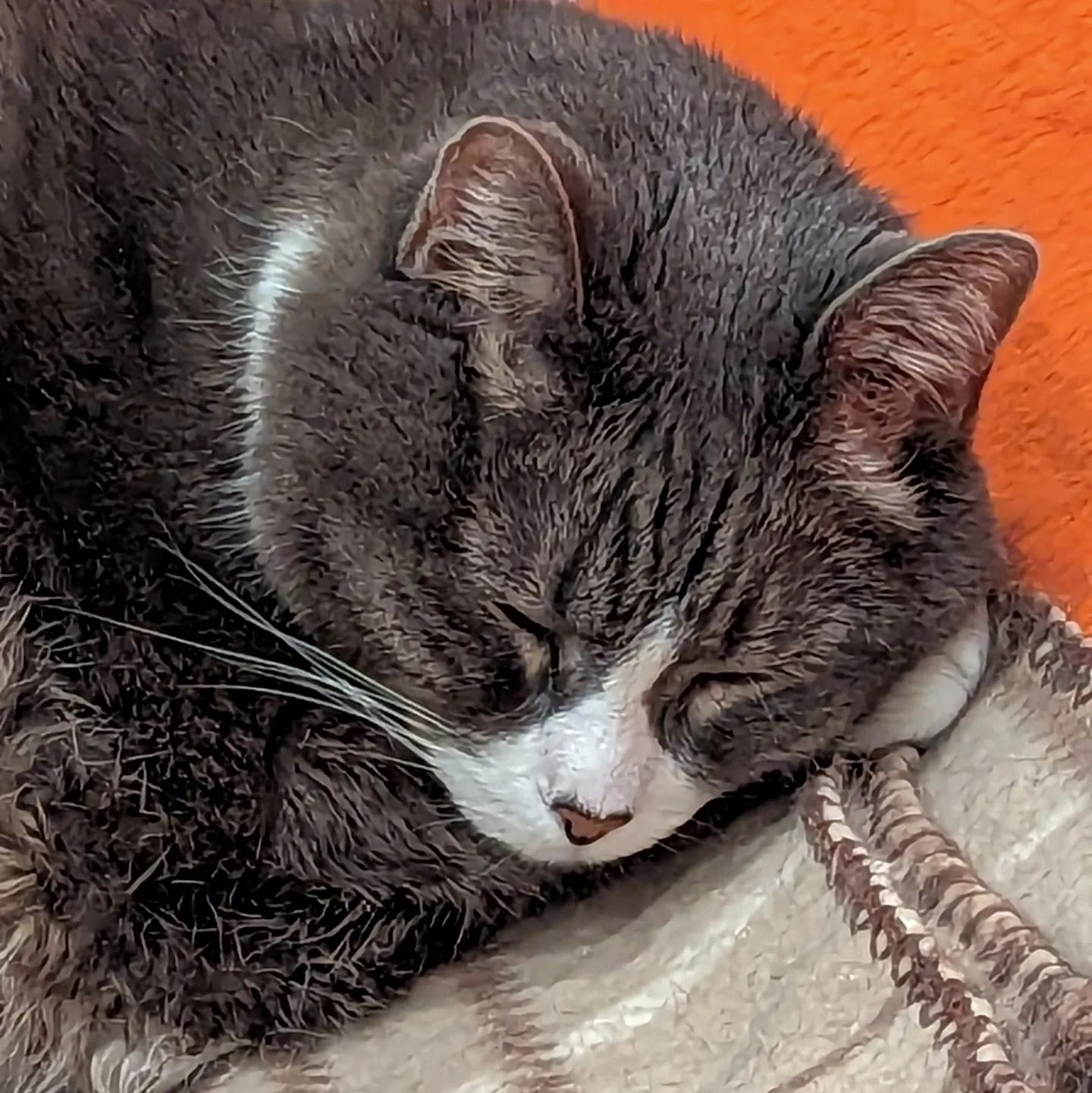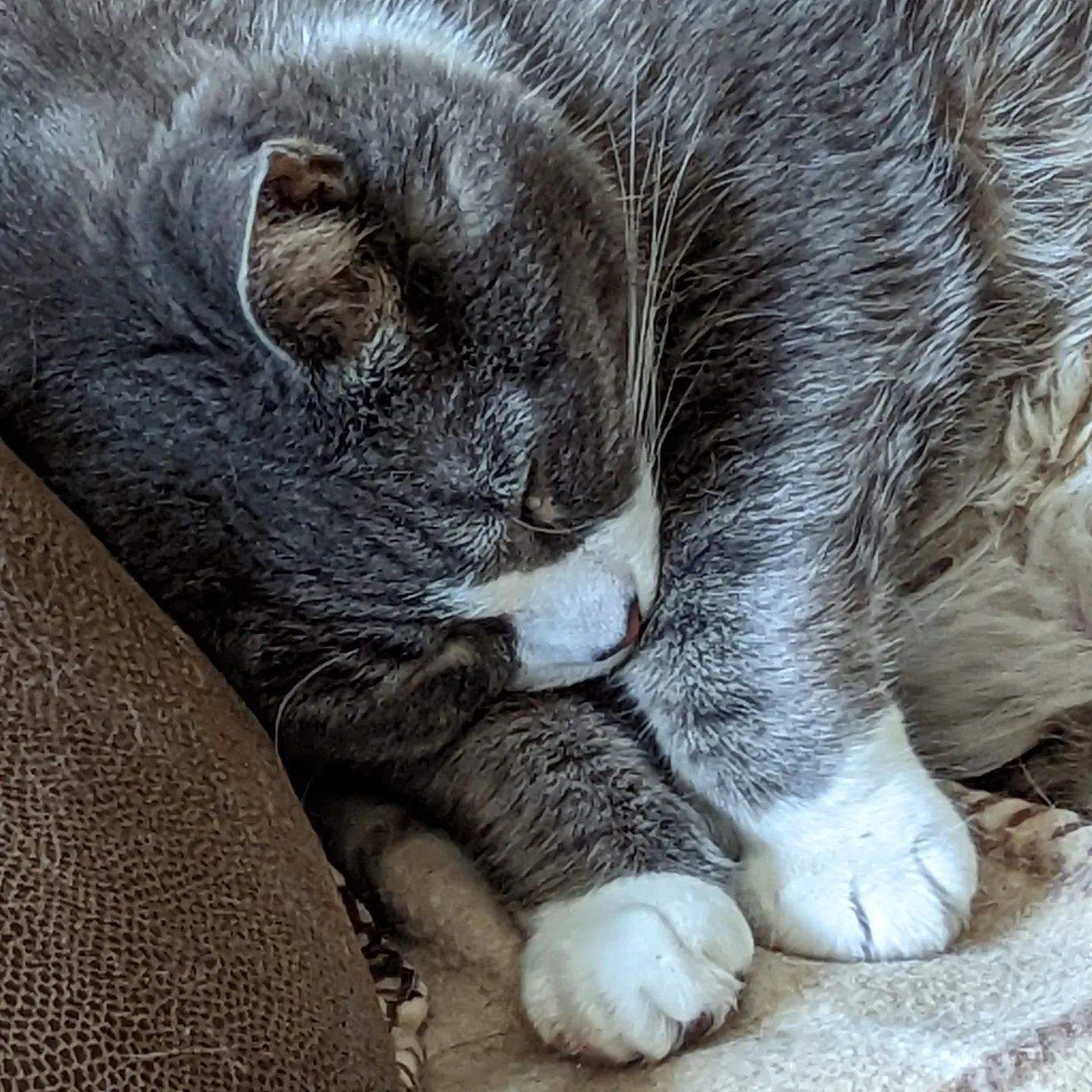 ?????? or awake? Actually, Ziggy is posing and if you look carefully, one eye is checking for when the picture is done. Meowdeling... ??