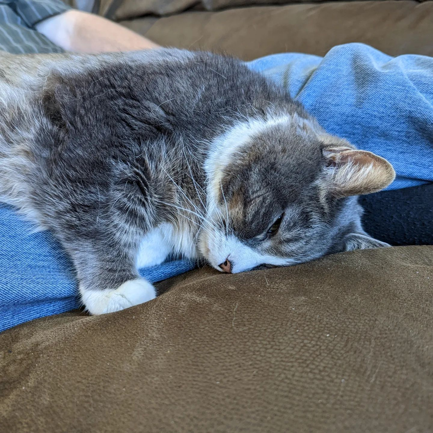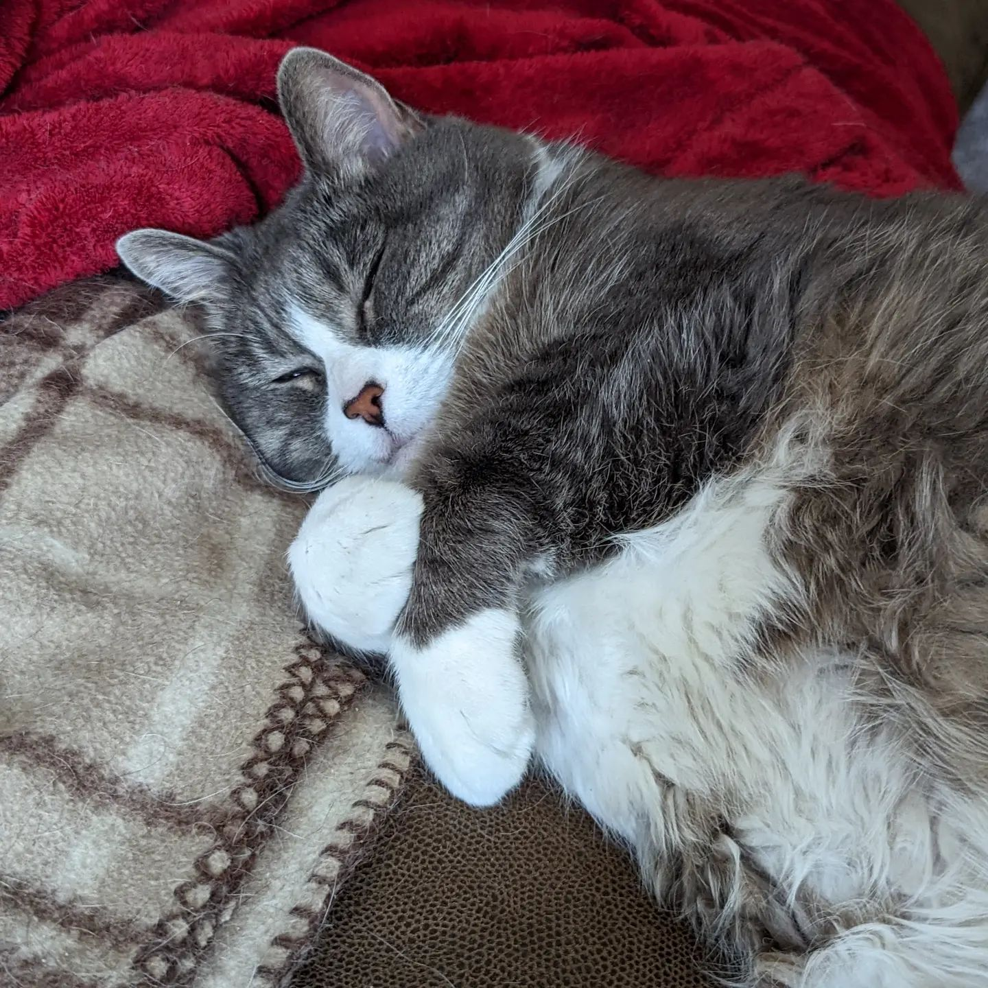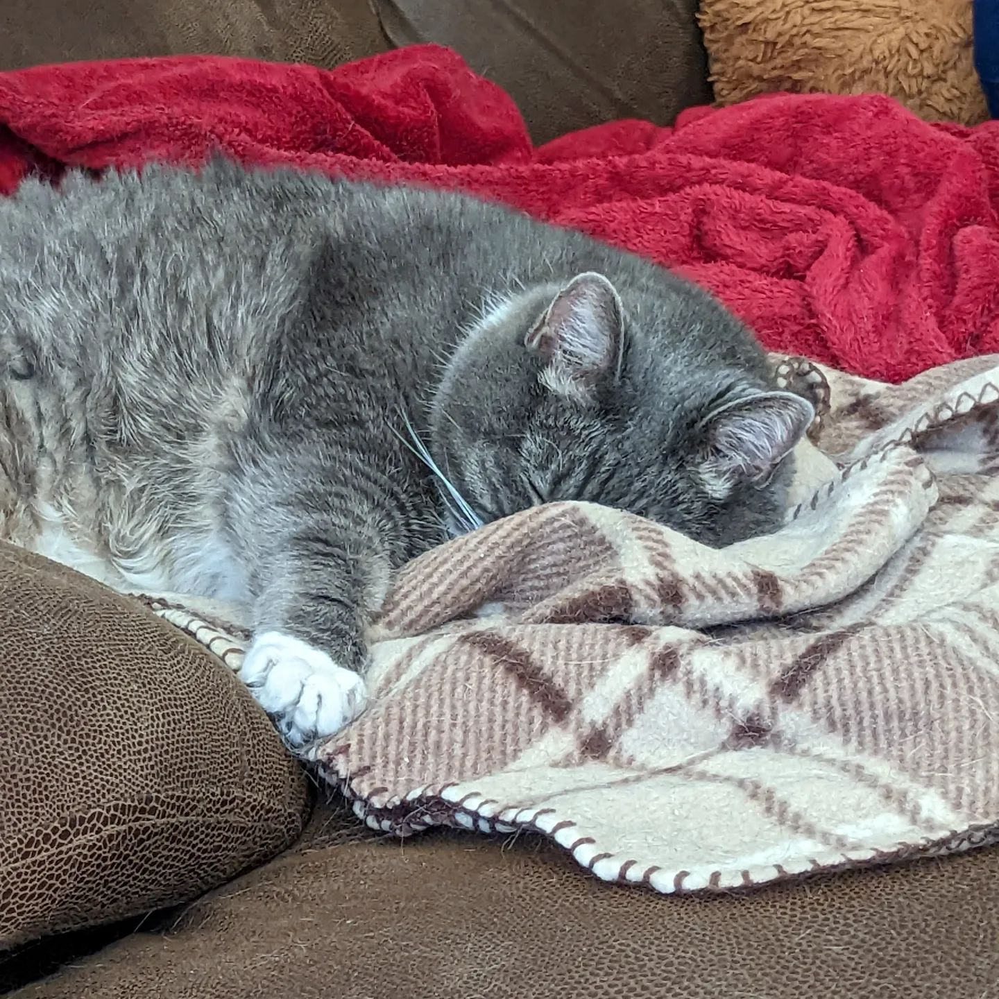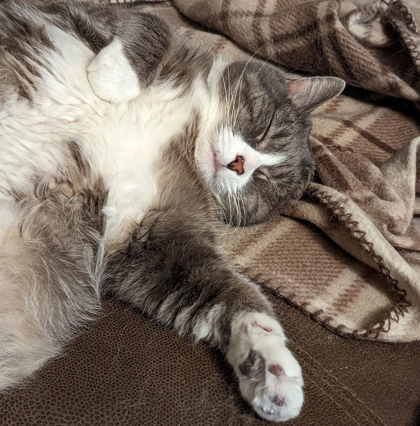 ?????? or awake? Actually, Ziggy is posing and if you look carefully, one eye is checking for when the picture is done. Meowdeling... ??