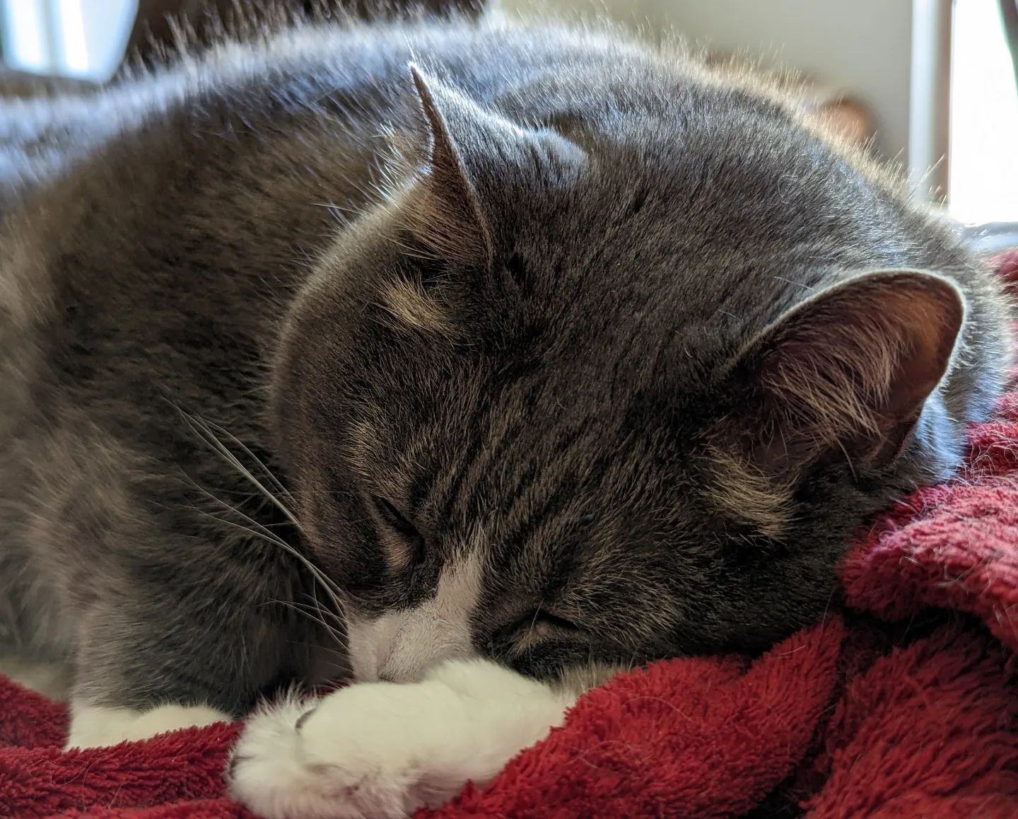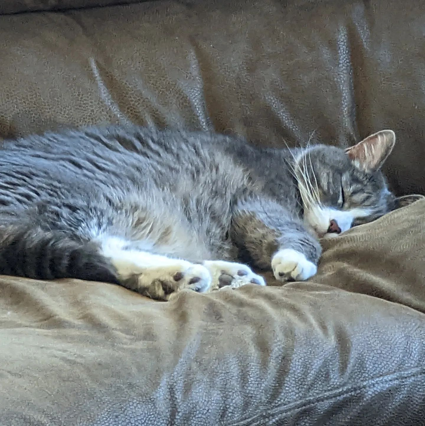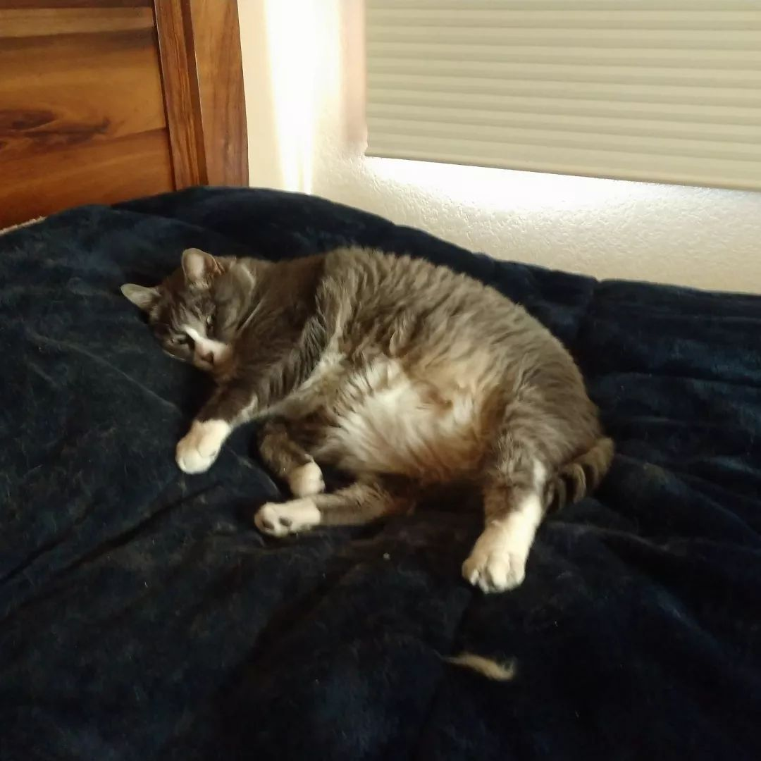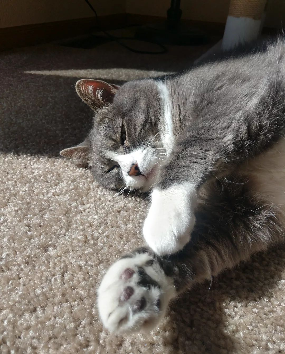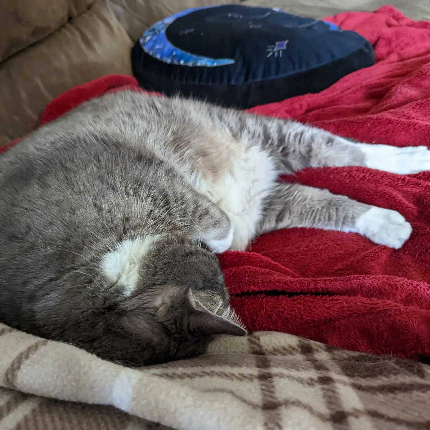 ?????? or awake? Actually, Ziggy is posing and if you look carefully, one eye is checking for when the picture is done. Meowdeling... ??