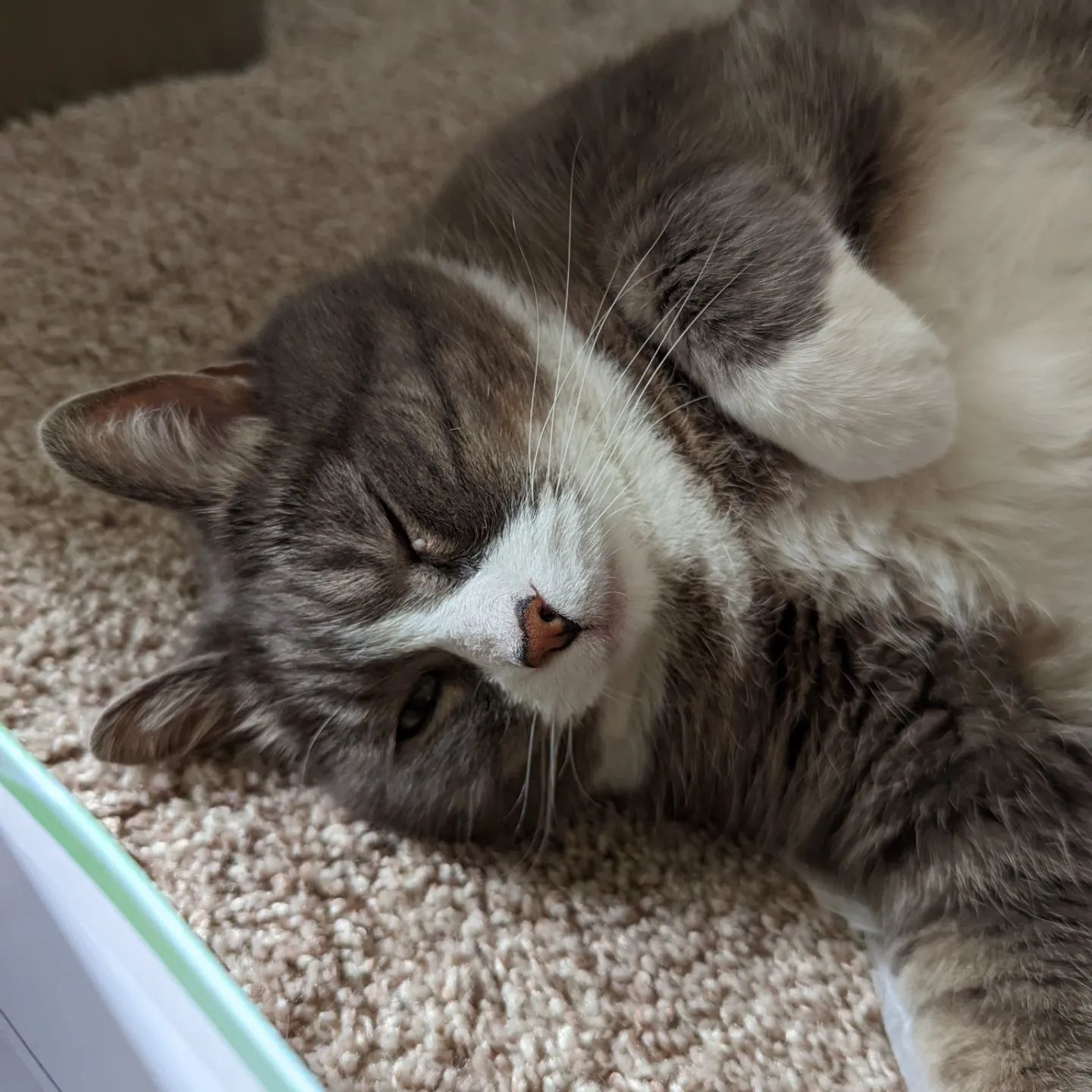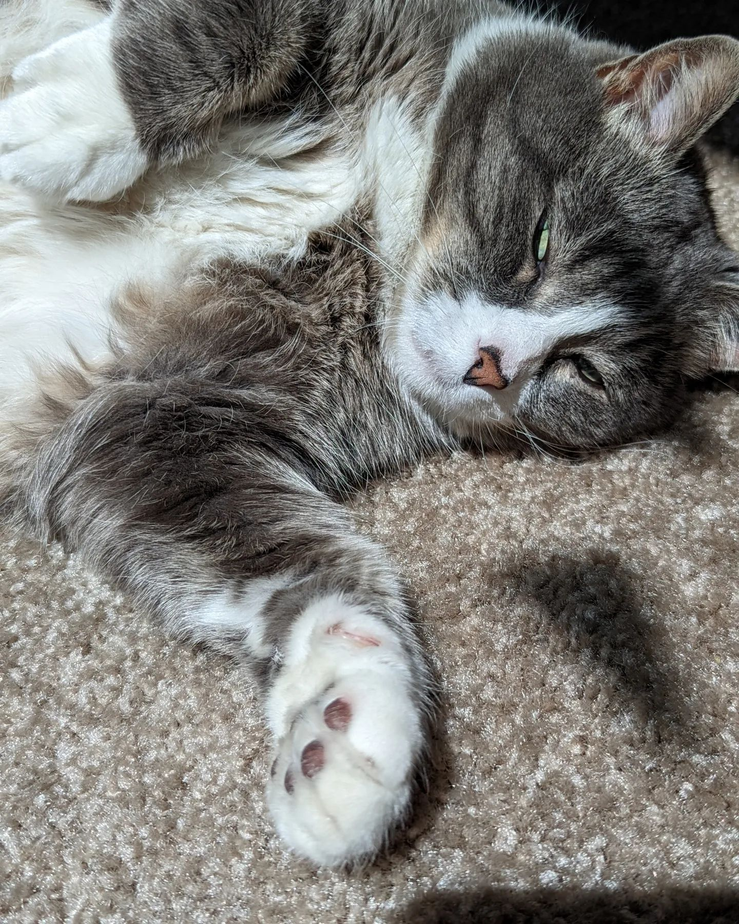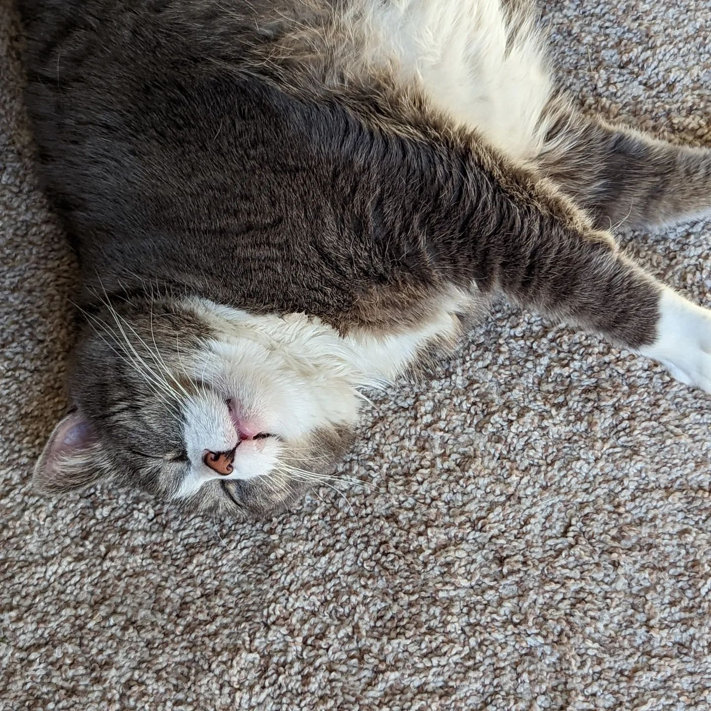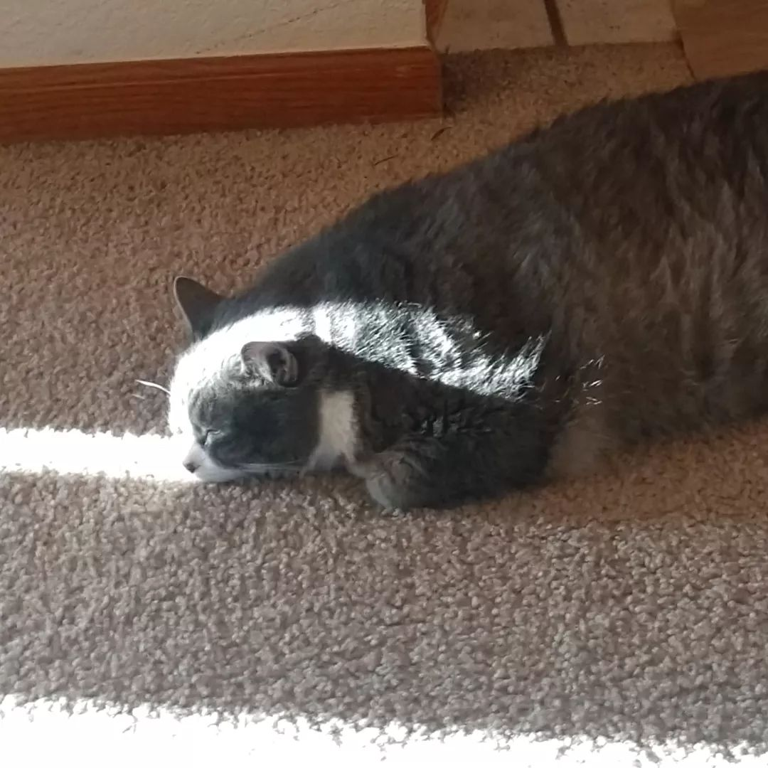 ?????? or awake? Actually, Ziggy is posing and if you look carefully, one eye is checking for when the picture is done. Meowdeling... ??
