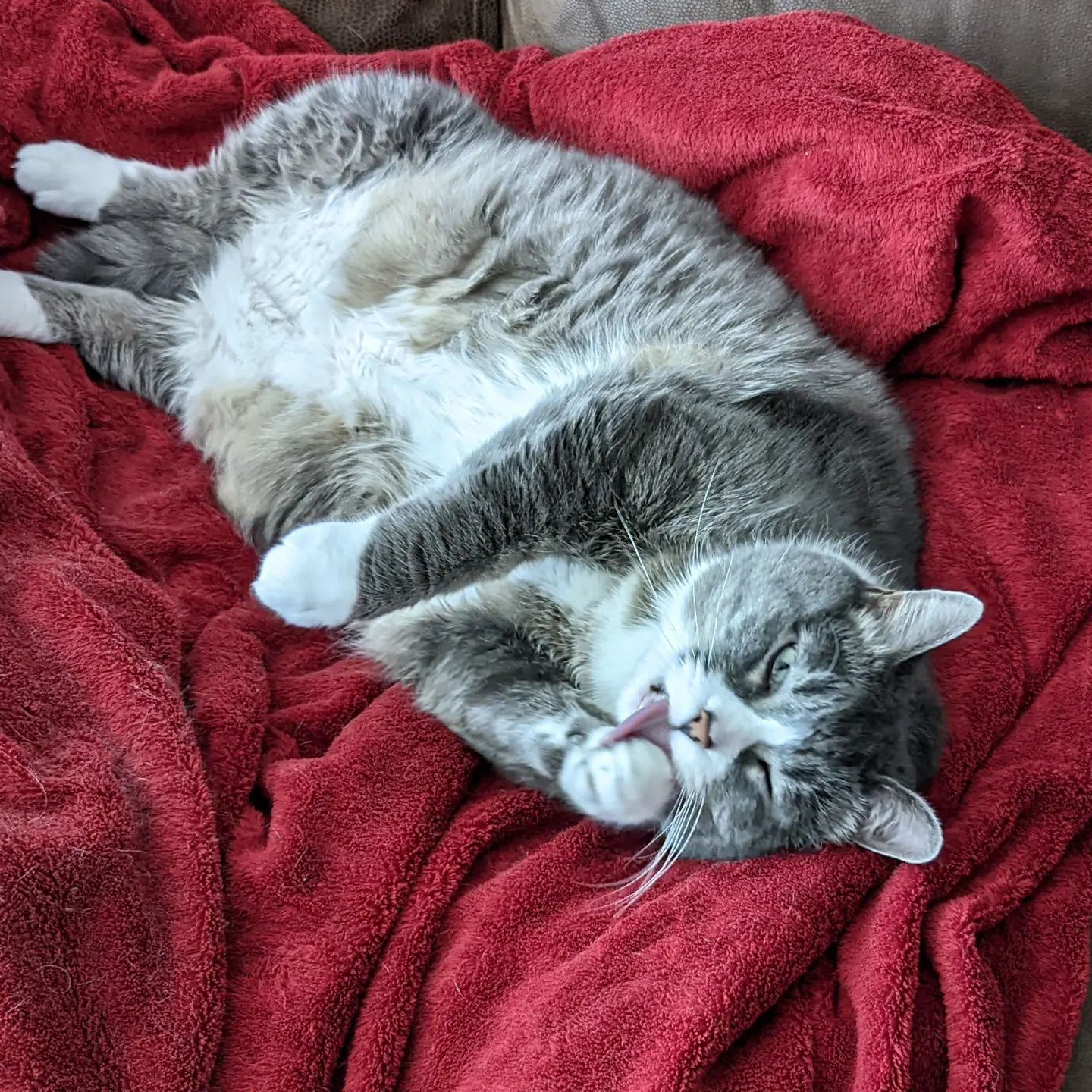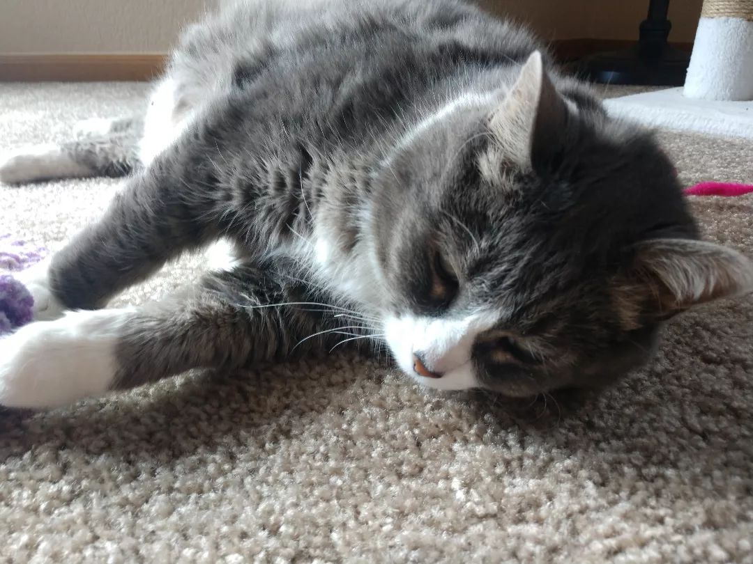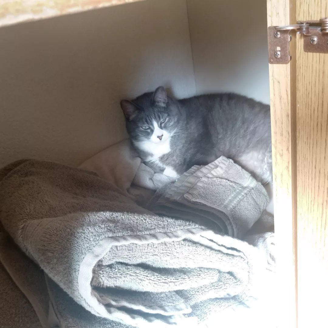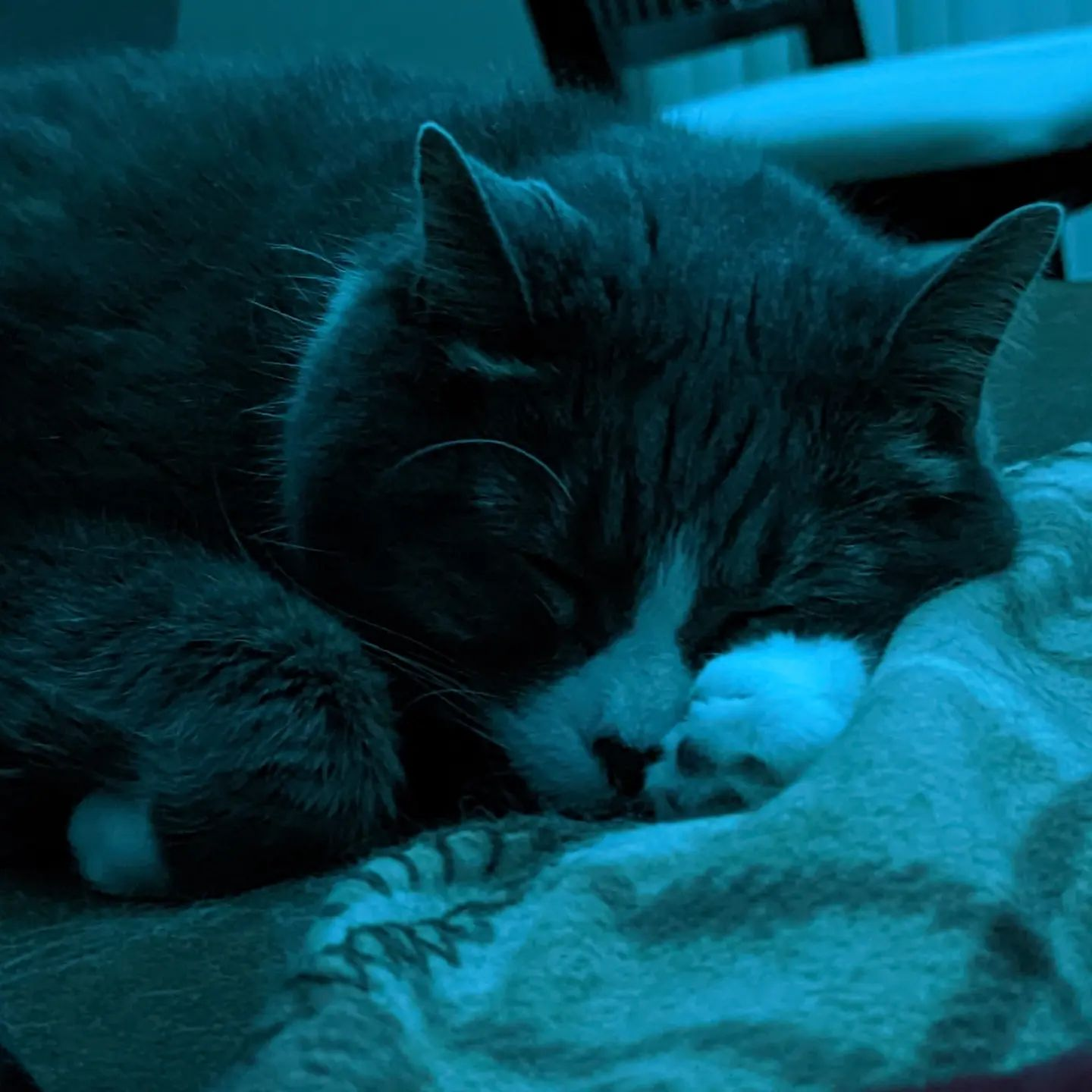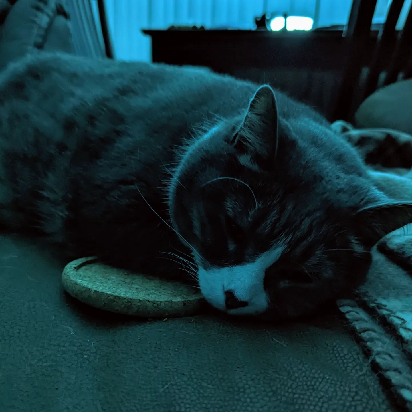 ?????? or awake? Actually, Ziggy is posing and if you look carefully, one eye is checking for when the picture is done. Meowdeling... ??