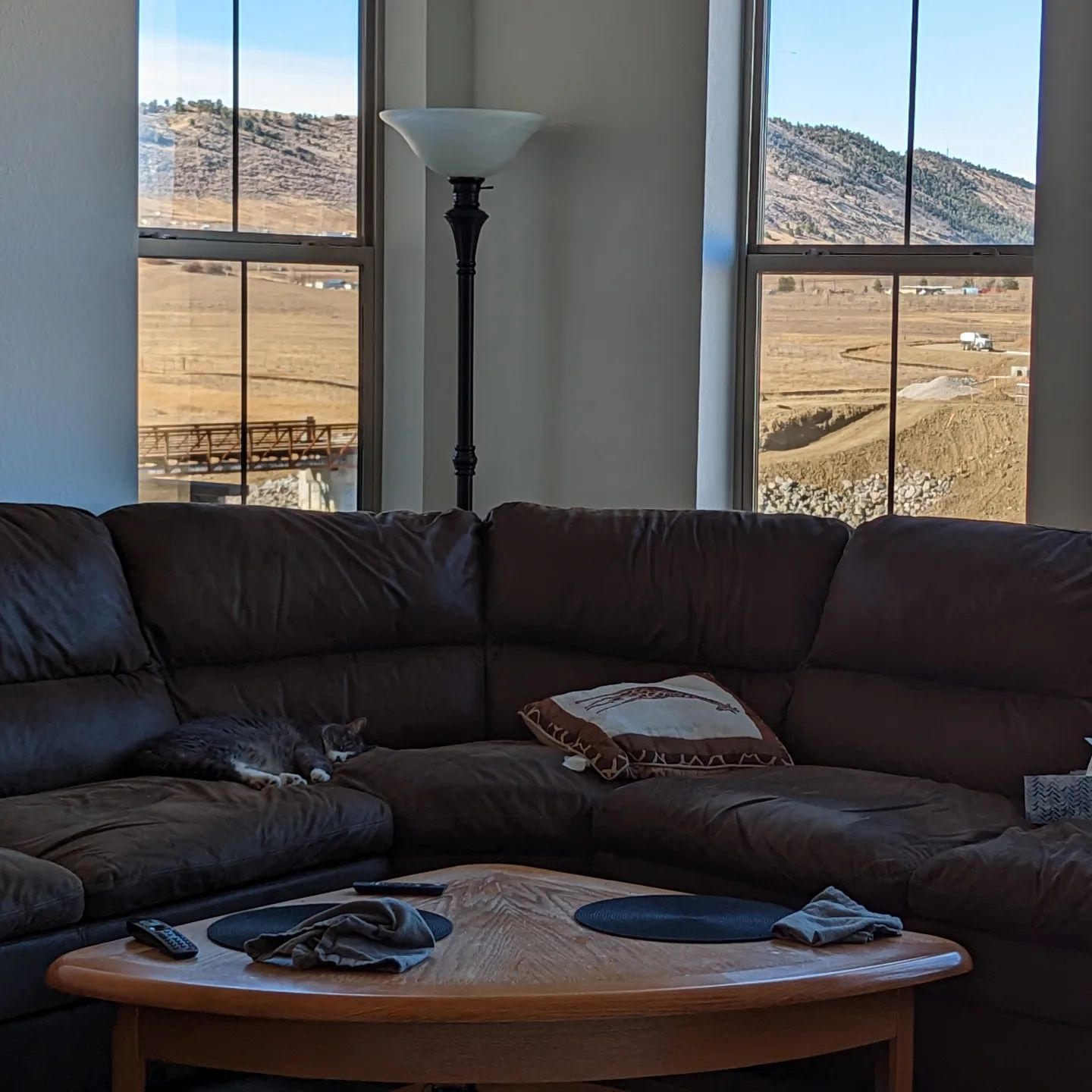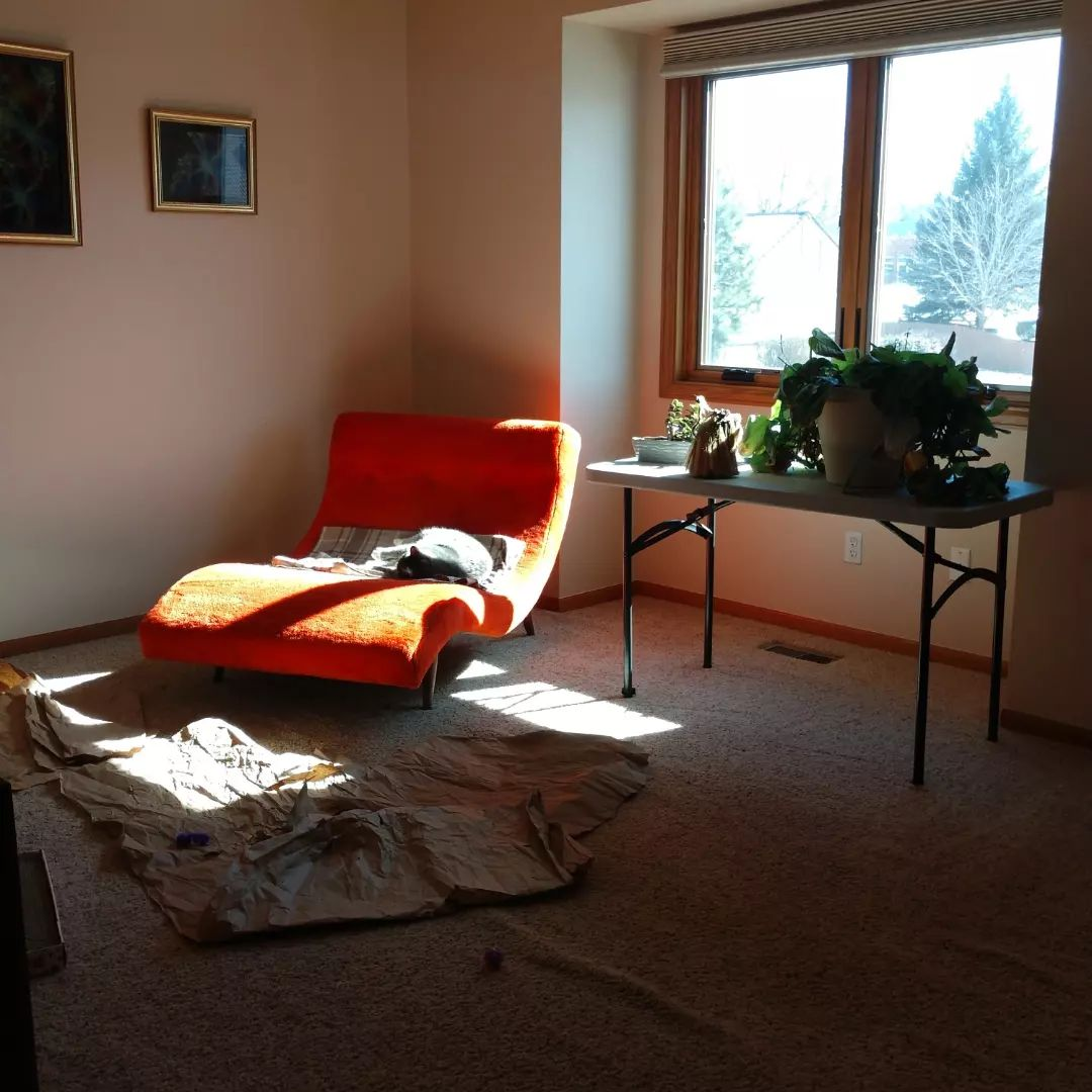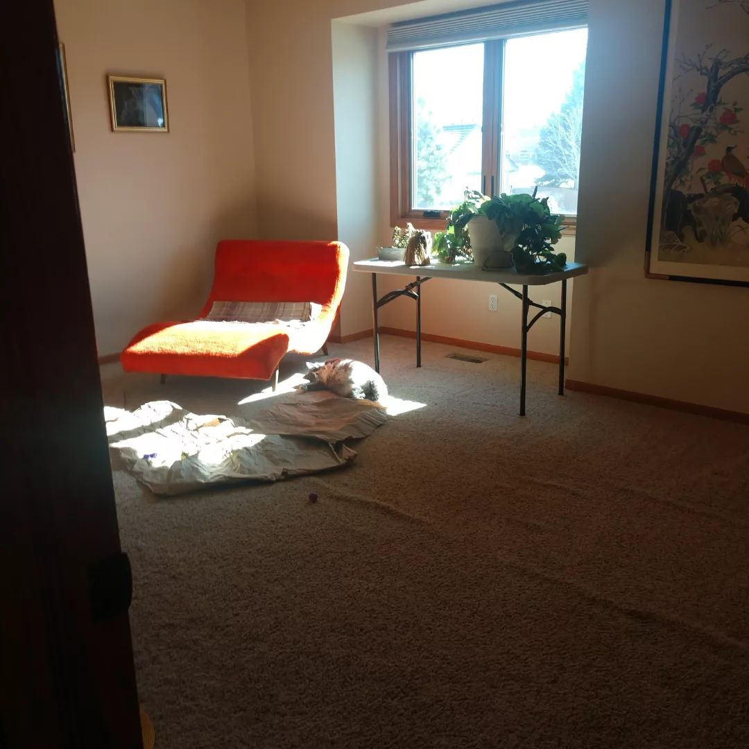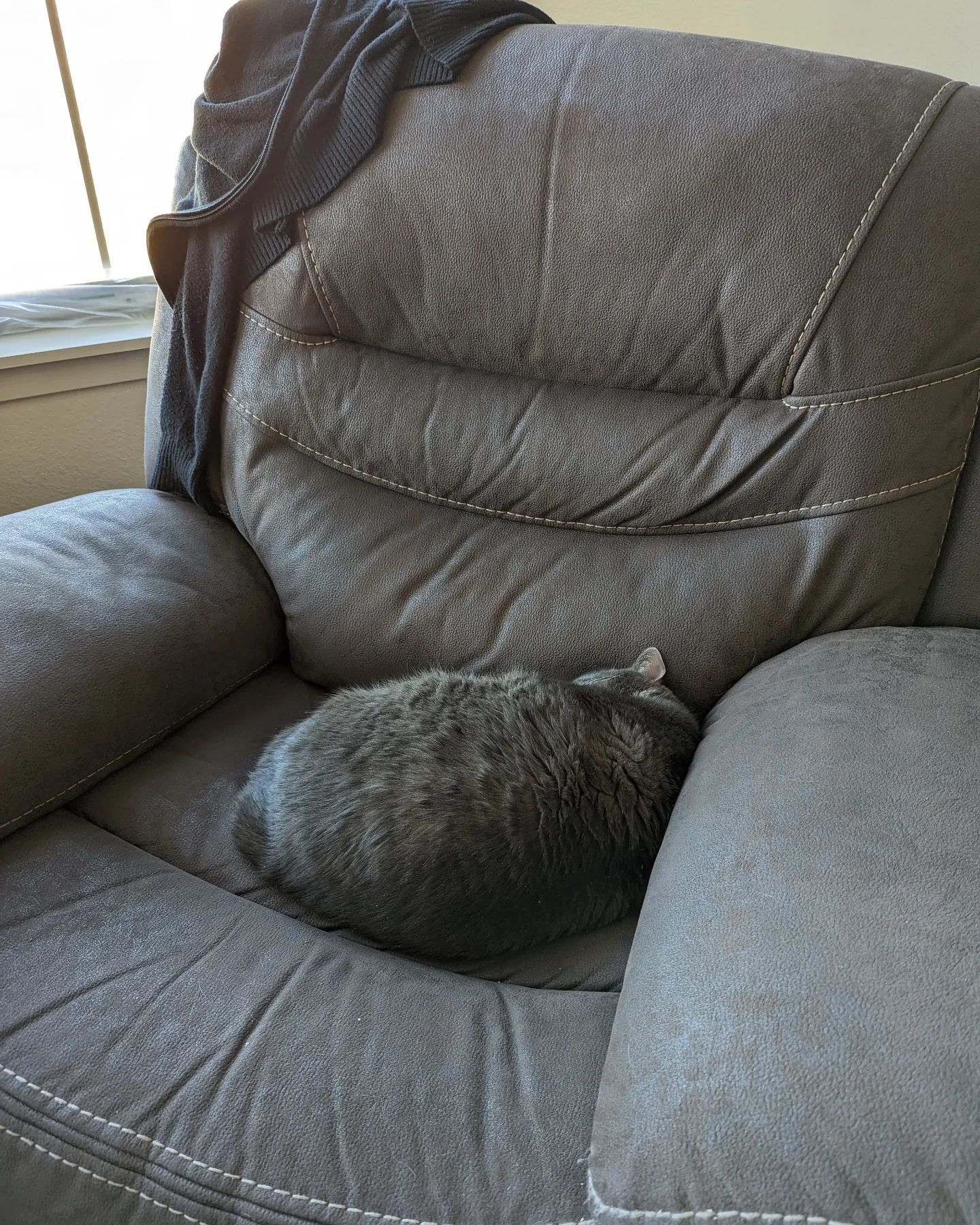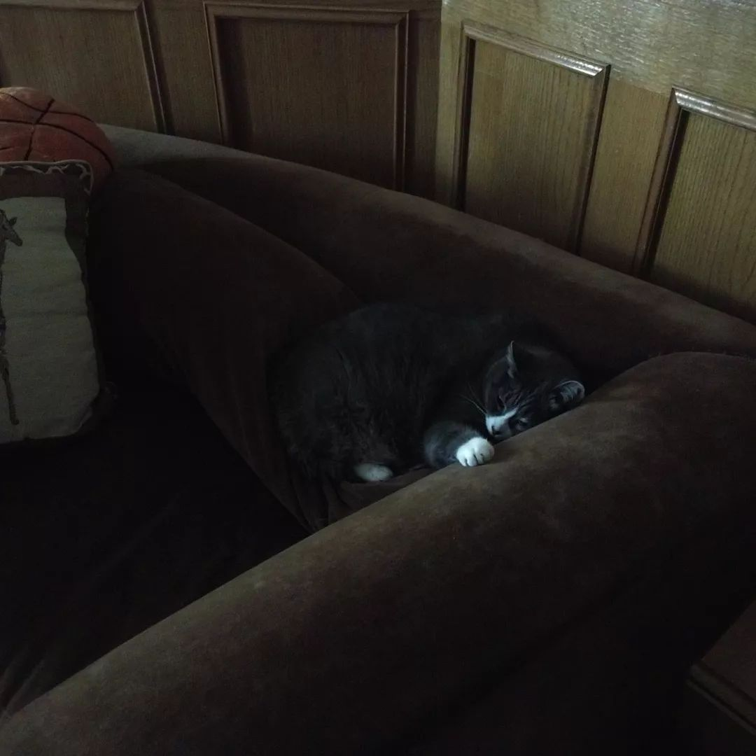 Trying new places... Ziggy found the comfy fluffy brown chair in the loft