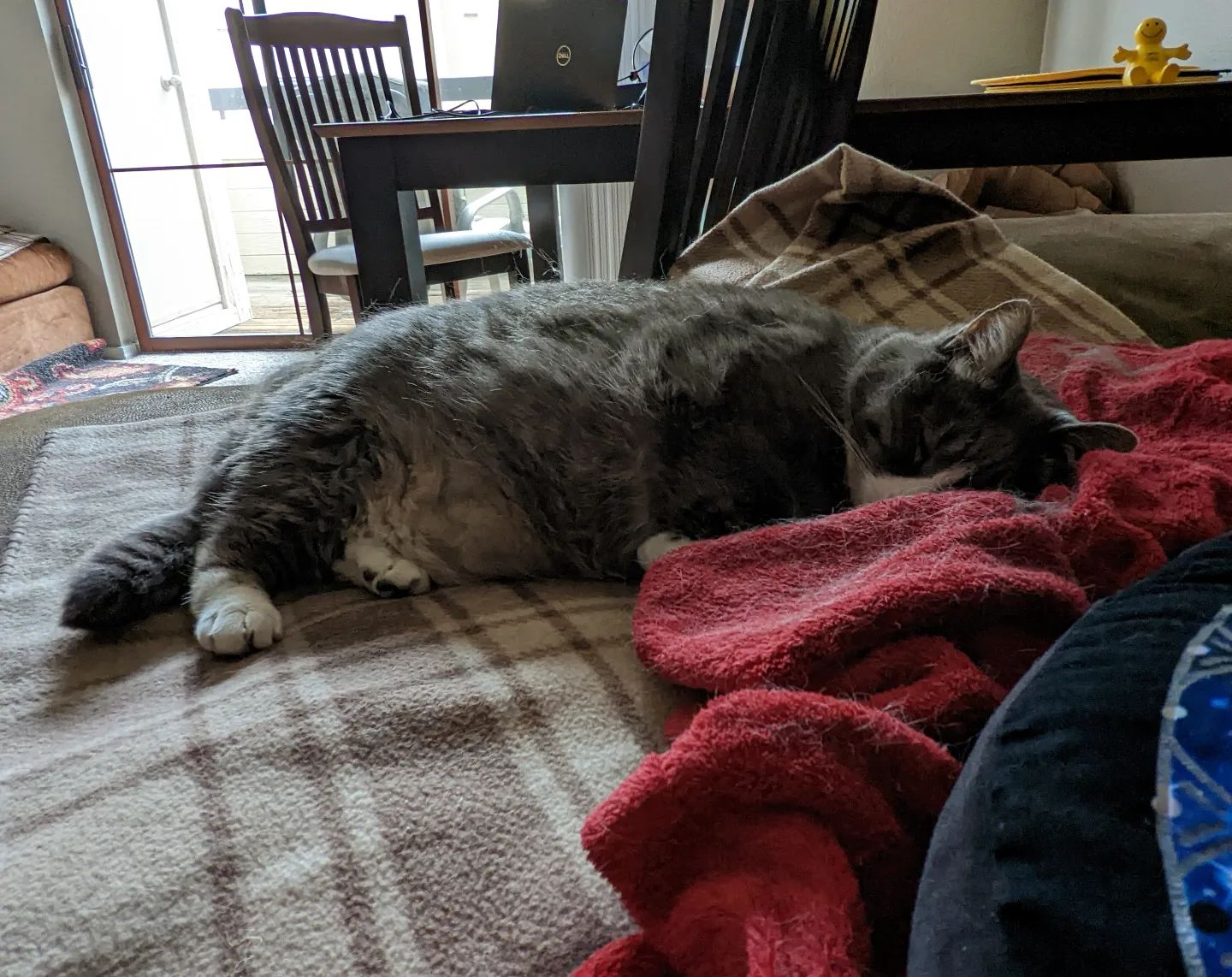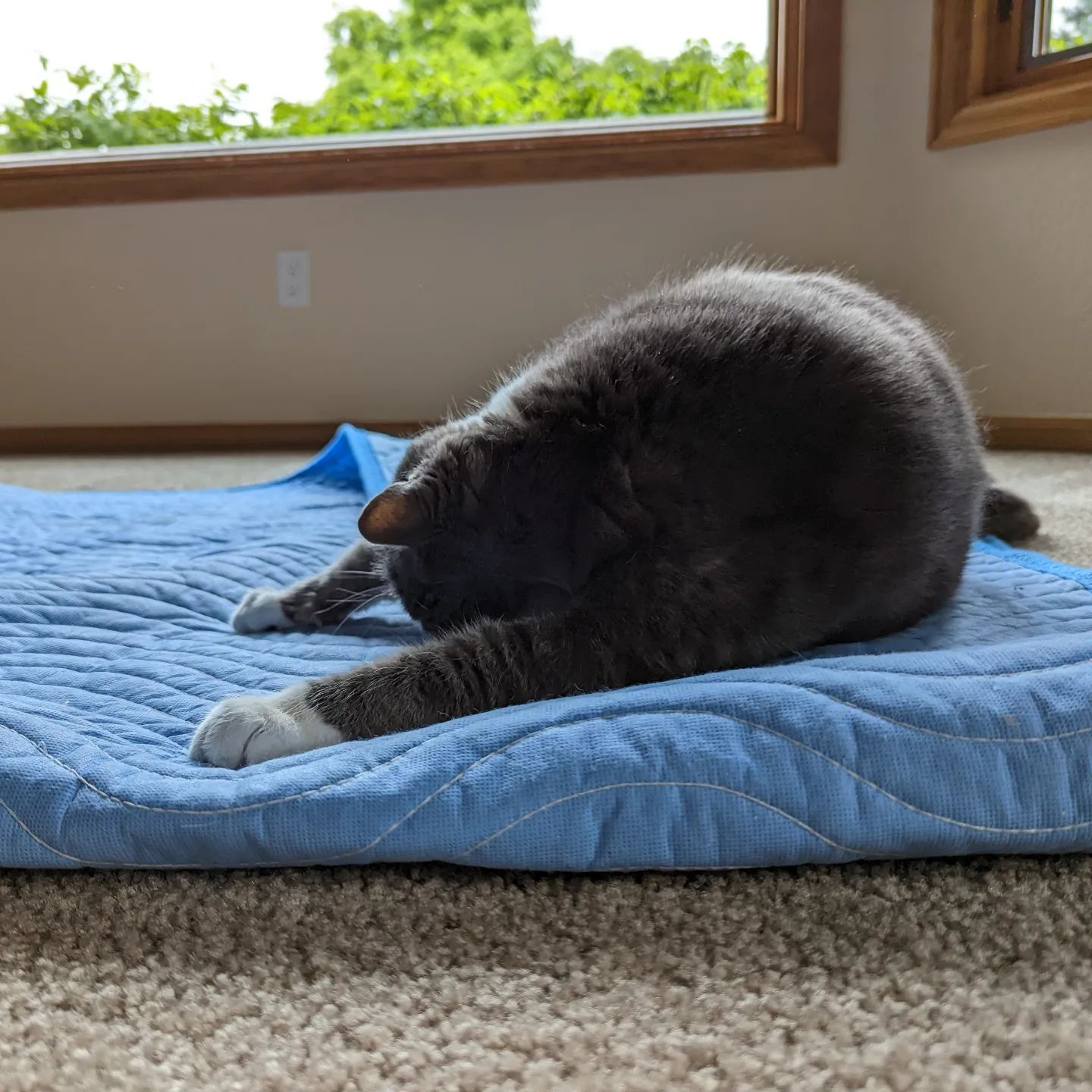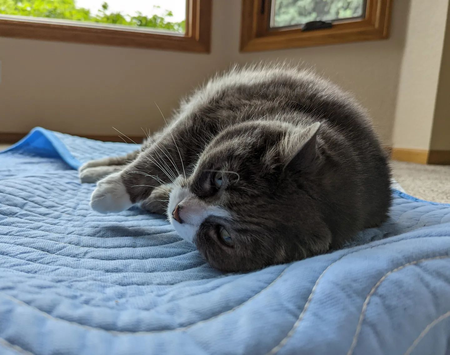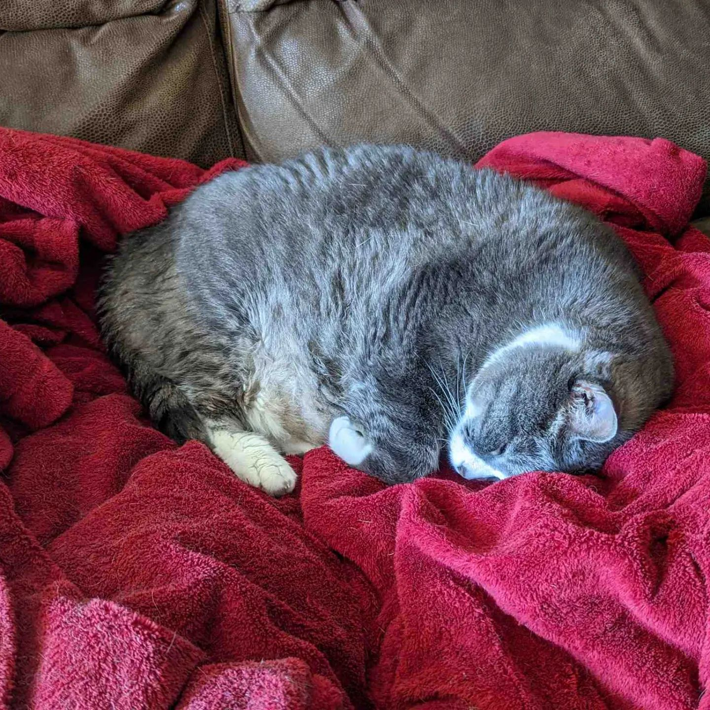 Cat condo as pillow.... Ziggy is not pleased that my hubby is sick and I am working. "Stupid everything"