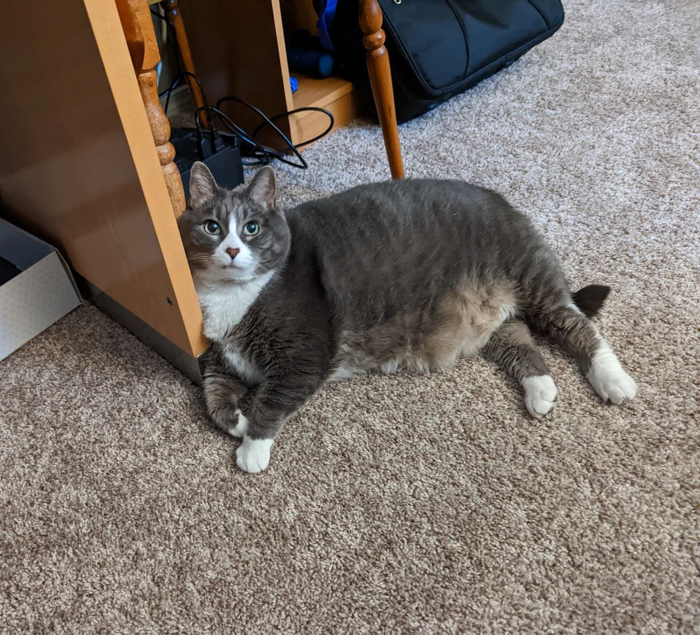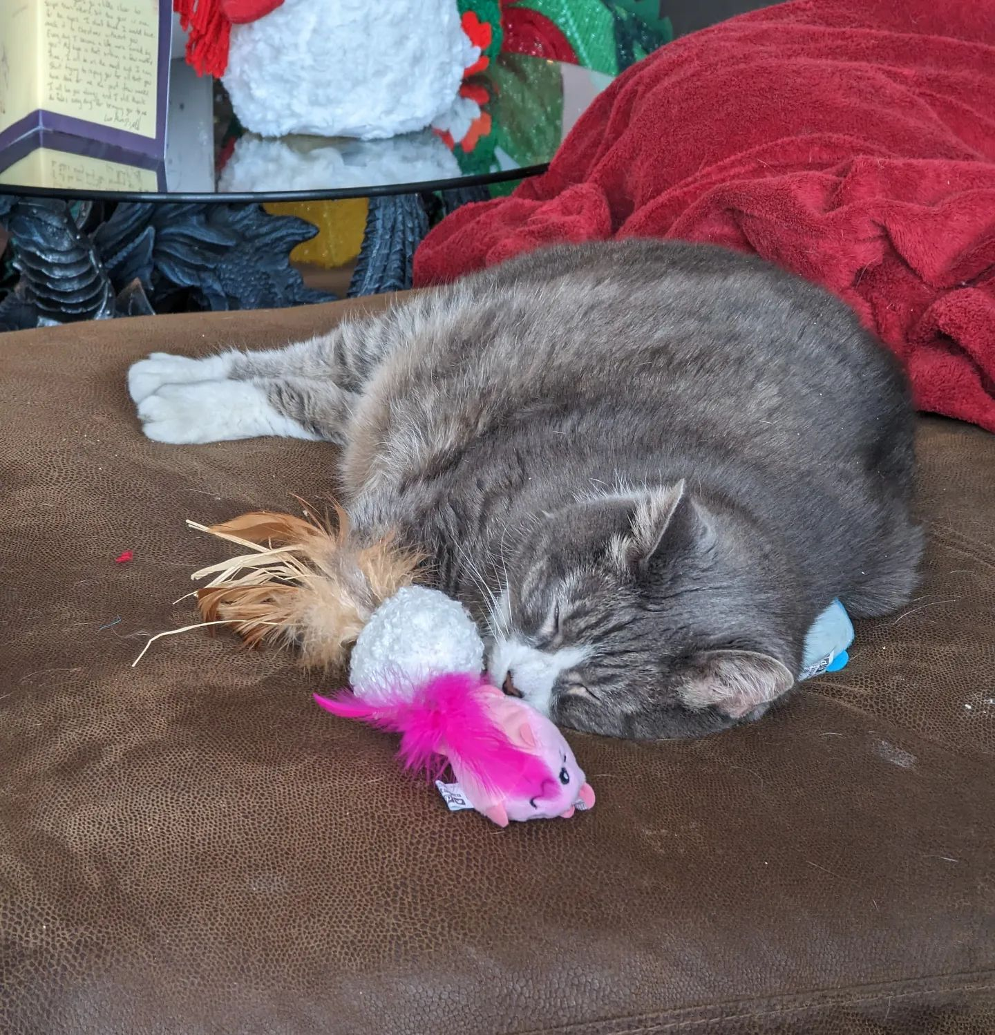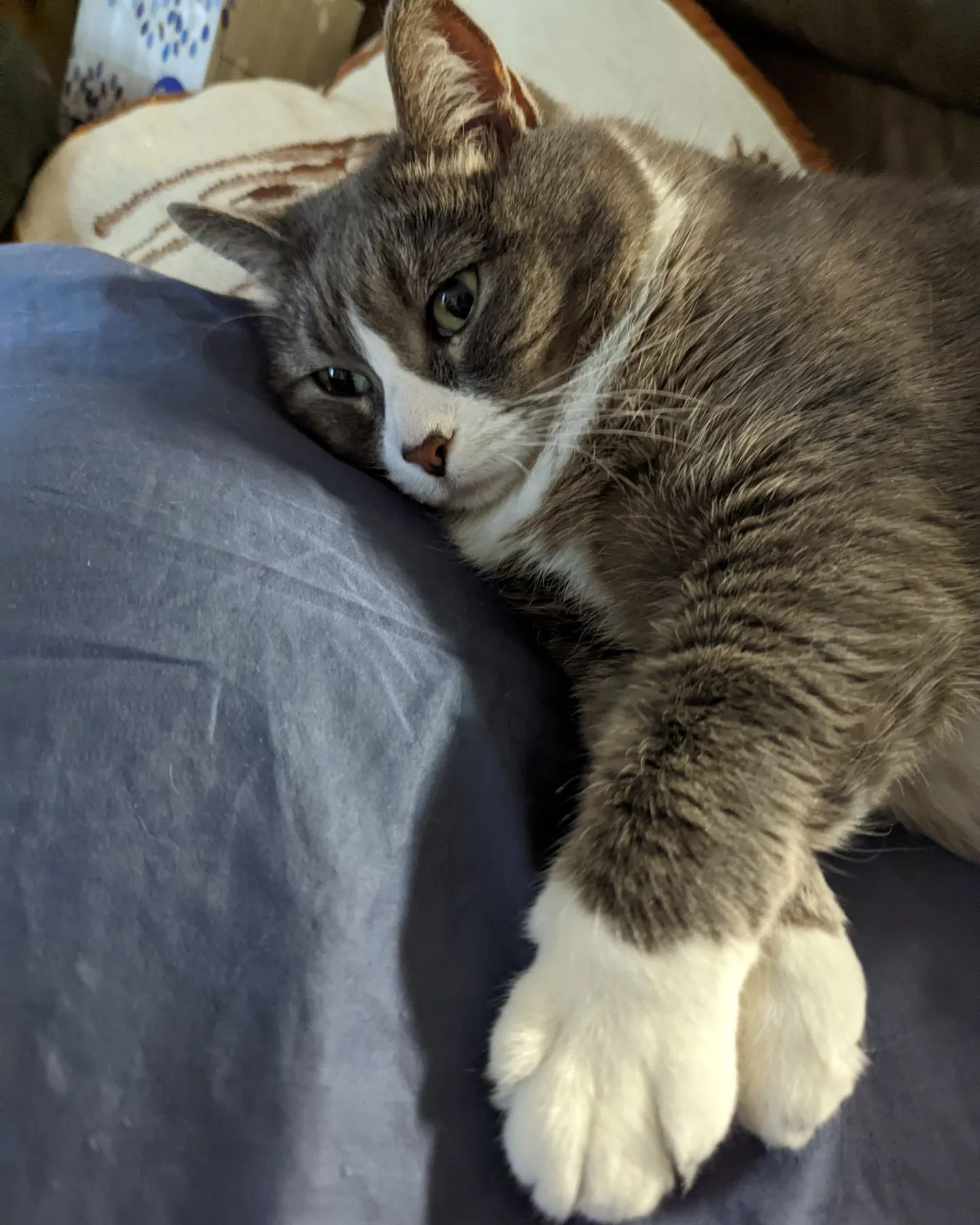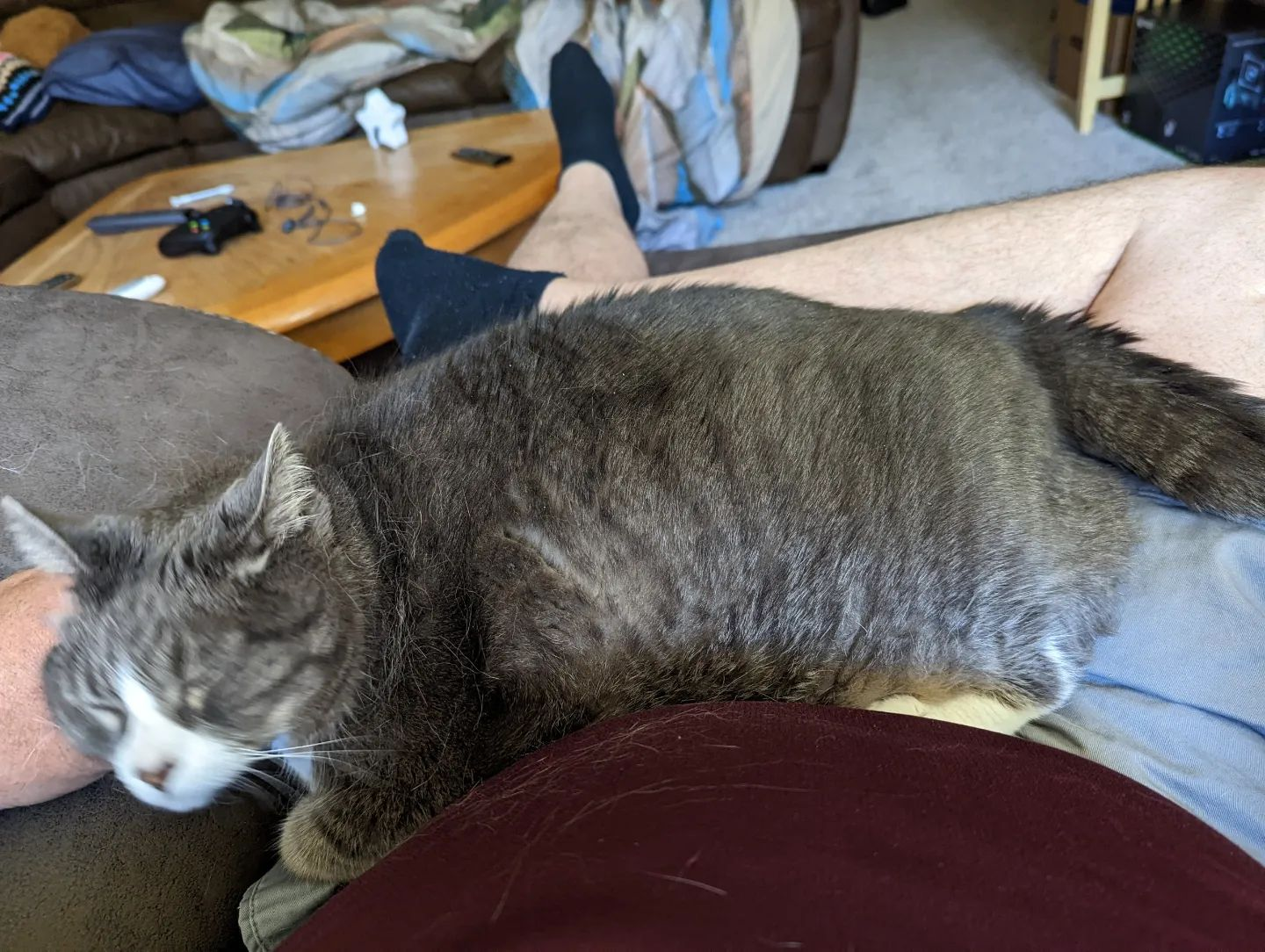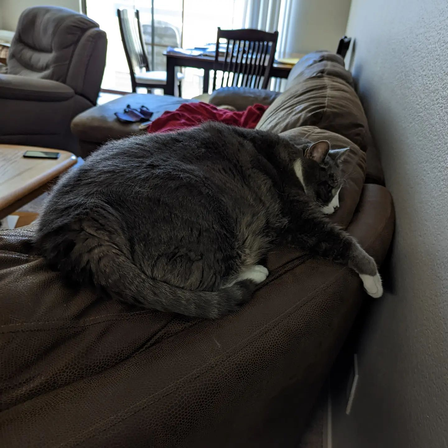 Cat condo as pillow.... Ziggy is not pleased that my hubby is sick and I am working. "Stupid everything"