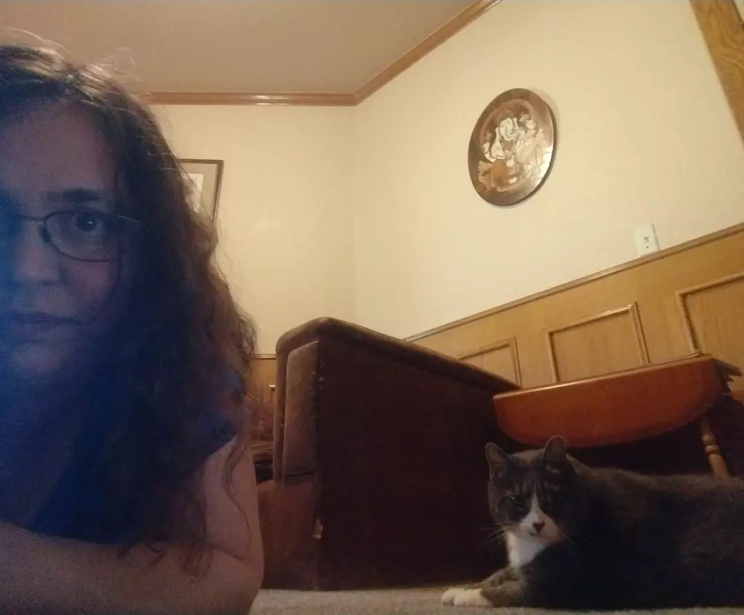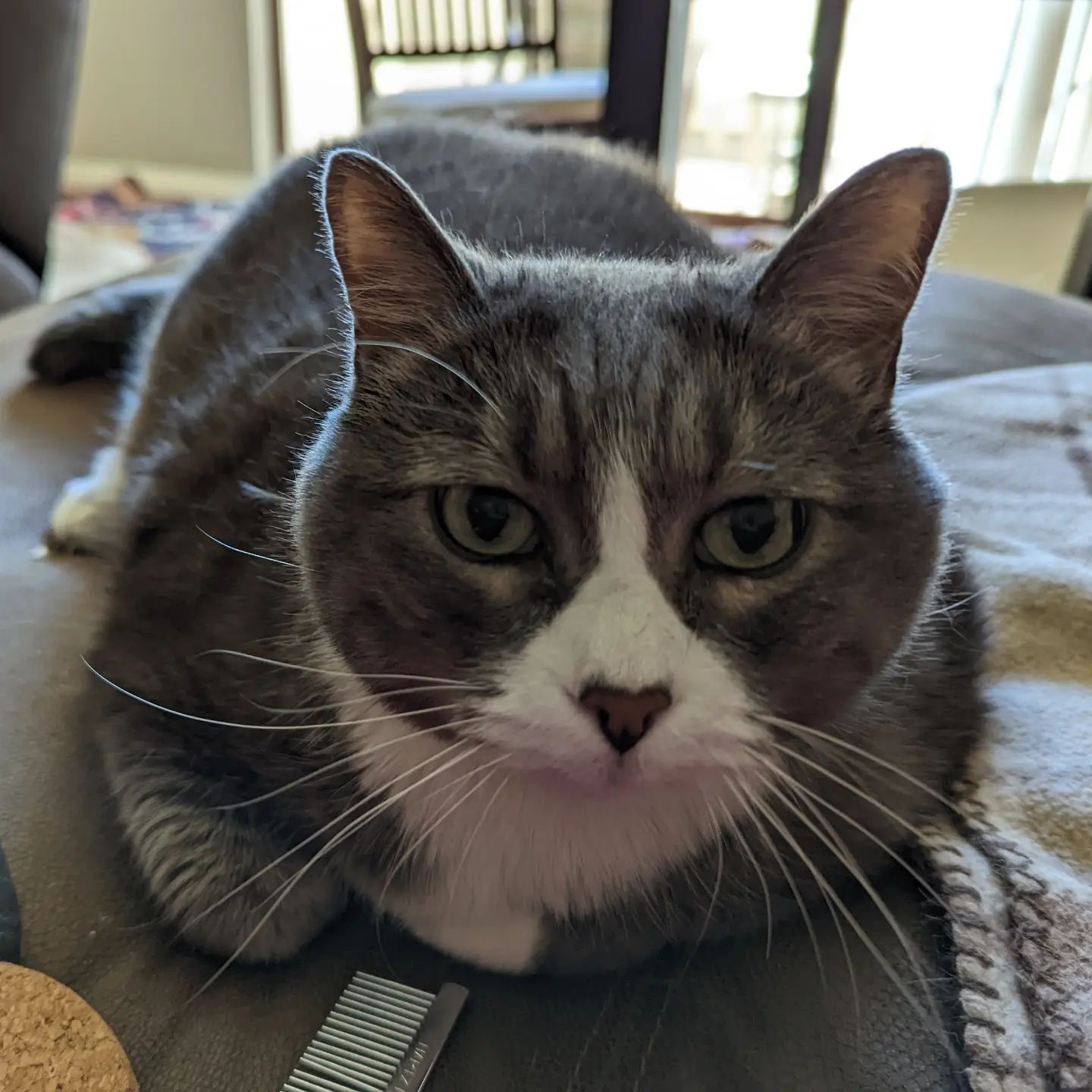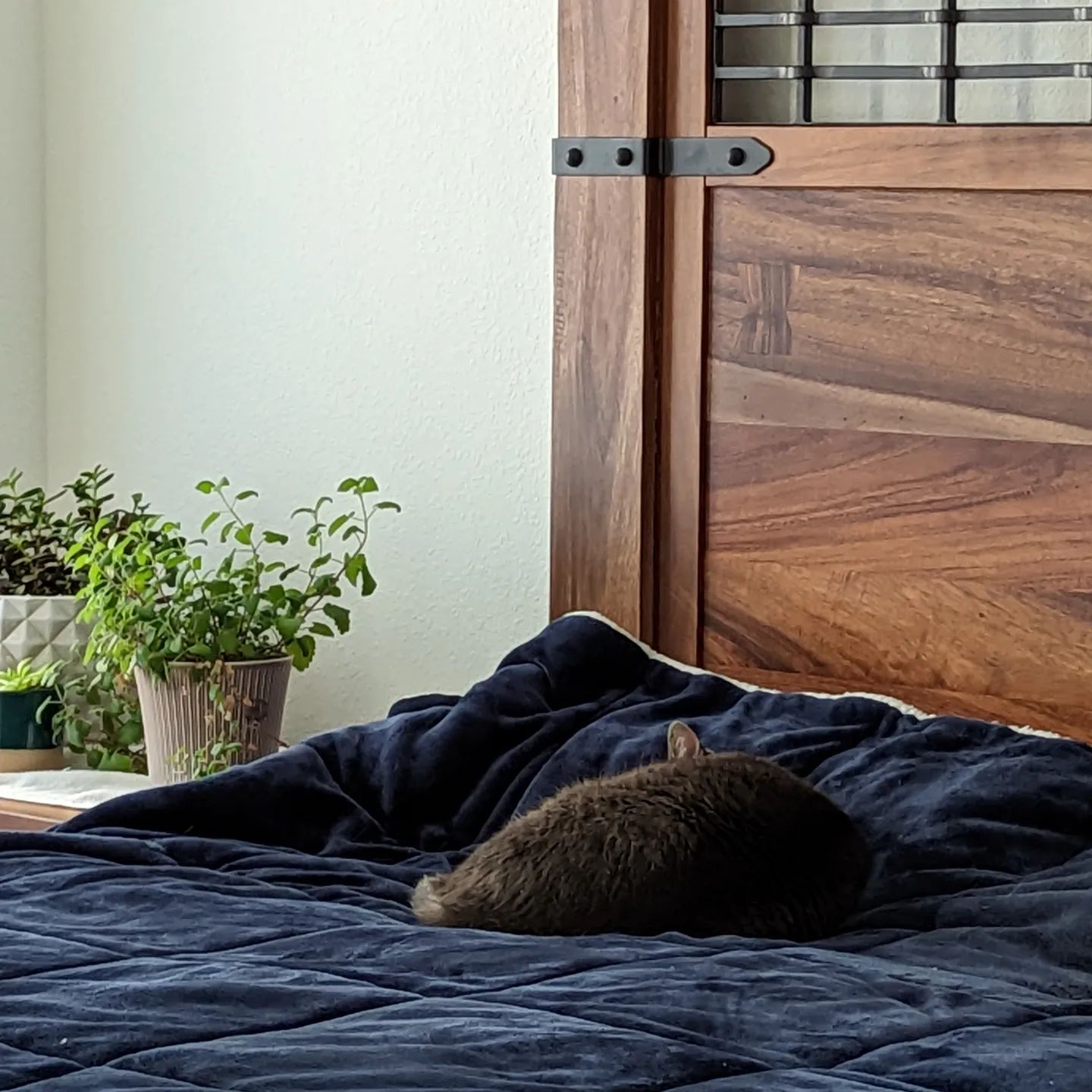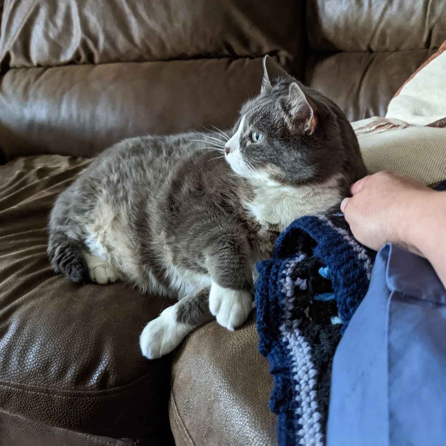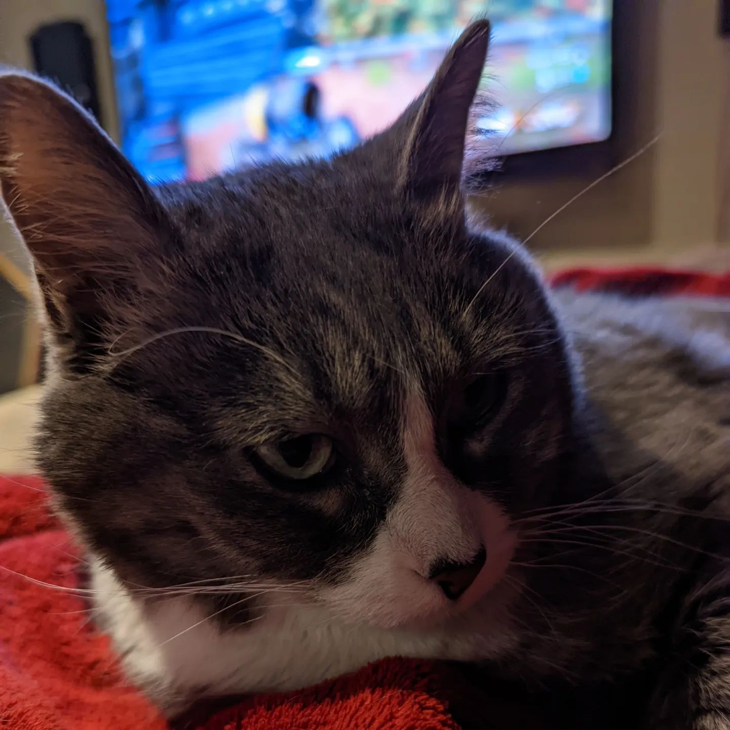 Cat condo as pillow.... Ziggy is not pleased that my hubby is sick and I am working. "Stupid everything"